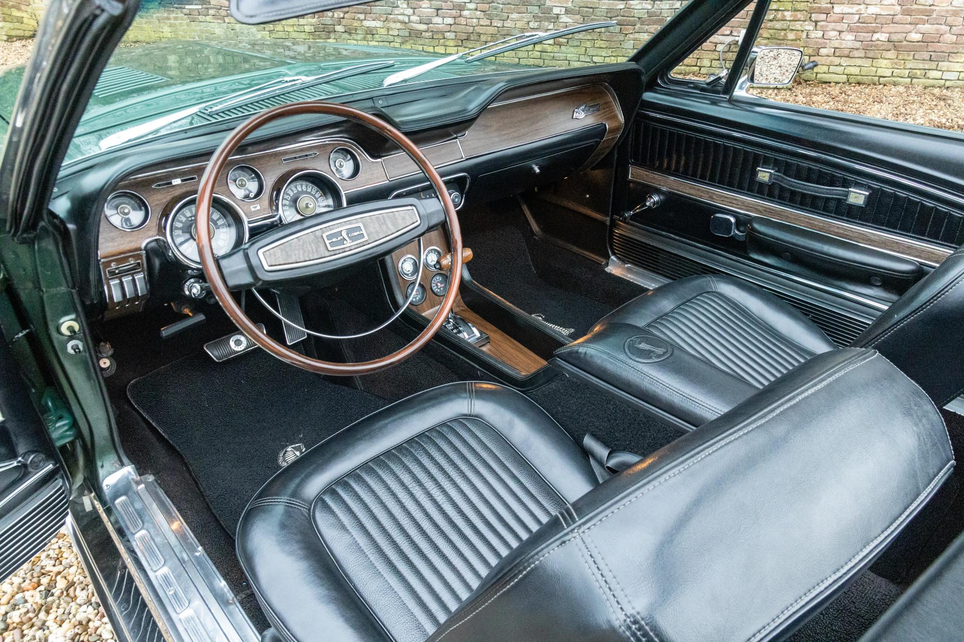 The color combination is exactly what you expect from a GT350 proud of its heritage: Highland Green. The paint presents beautifully—deep, crisp, and full of character—paired with black bucket seats that strike the perfect balance between sporting intent and understated elegance. This example has not been restored and certainly not modified; it is a Shelby that has been exceptionally well-kept. An American icon that shows you exactly what 1968 truly looked and felt like. That, in our opinion, is something genuinely special.