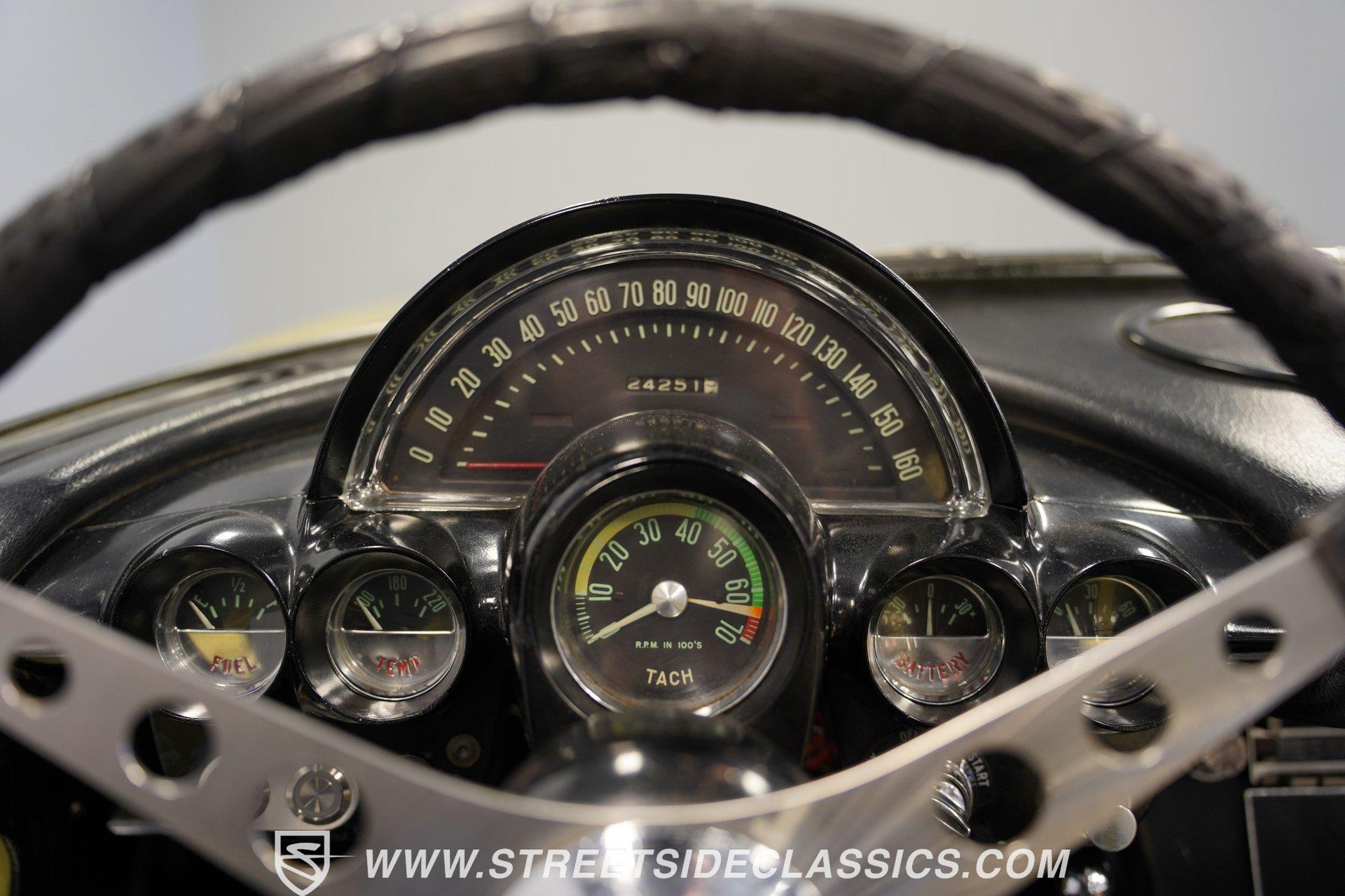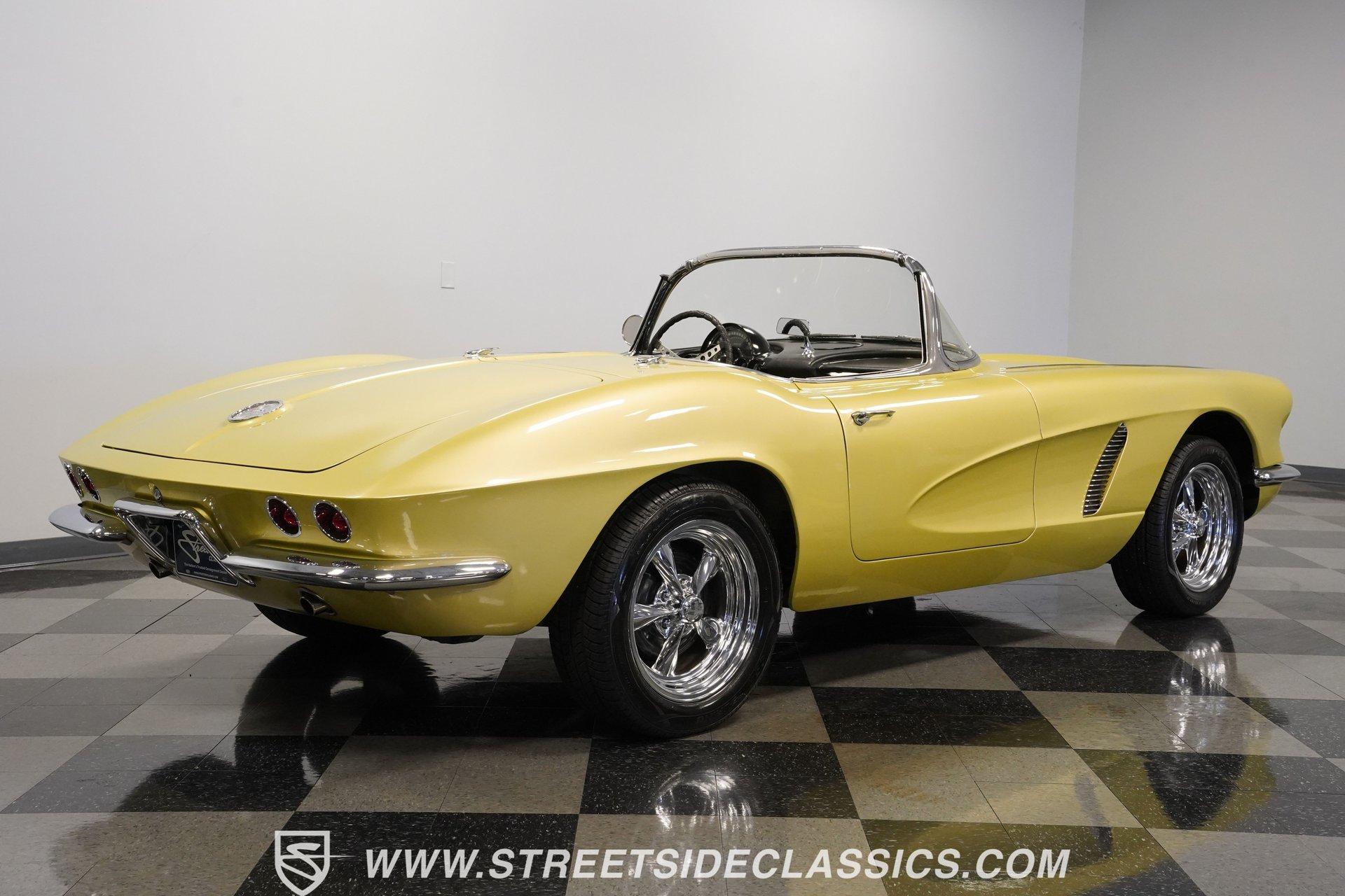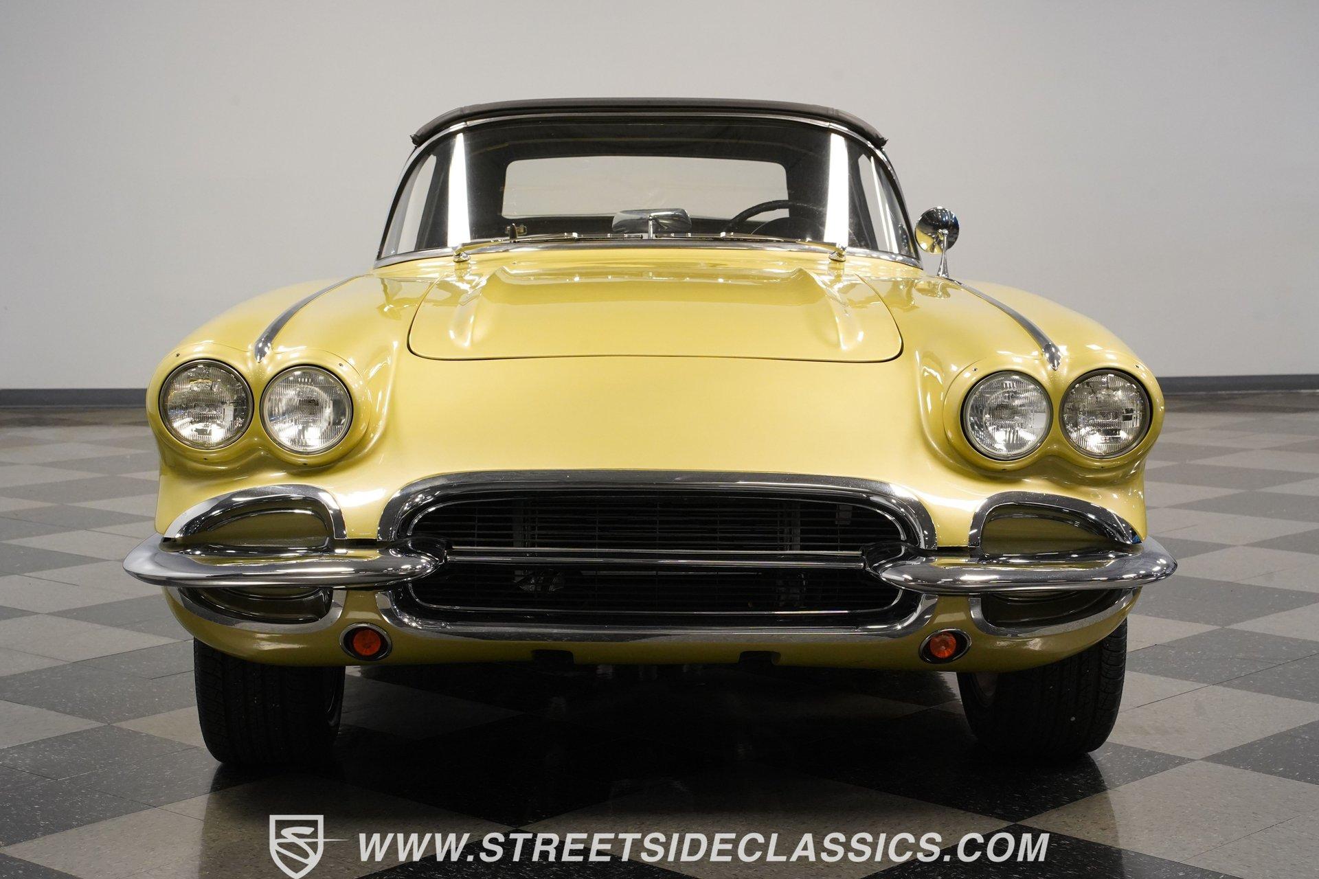 Step back into a golden era of American muscle with this stunning 1962 Chevrolet Corvette Convertible, a true icon celebrating Chevrolet's 50th anniversary. This classic Corvette embodies the spirit of freedom and adventure, offering its owner a chance to relive the excitement of the early 60s with every turn of the wheel. The elegant gold paint, a nod to the golden anniversary, shines with a well-maintained finish that invites admiring glances. Whether you're cruising down the highway or showcasing at a local car show, this Corvette promises to be a head-turner and a heartfelt statement of automotive passion. Inside, the Corvette's interior exudes vintage charm with its original styling preserved and carefully redone to retain authenticity. The black vinyl seats and door cards show character and gentle wear that speaks to the car's history, while the dash, cluster, gauges maintain a classic look. A Panasonic cassette deck and radio, coupled with a digital clock and a Hurst shifter, blend retro appeal with practical touches. The removable hardtop is in very good shape, completing the authentic driving experience. Under the hood, this Corvette is powered by a robust 350 V8 engine, featuring a clean, updated appearance with performance enhancements like an MSD ignition, chrome air cleaner, and Edelbrock four-barrel carburetor and intake. Performer heads and JBA long-tube headers contribute to its spirited performance, while a 4-speed manual transmission ensures engaging control. The Wilwood master brake cylinder and front disc brakes provide confident stopping power, complemented by a newer aluminum radiator and tidy wiring. This well-sorted drivetrain delivers smooth acceleration and an enjoyable drive, making it a perfect weekend cruiser. Highlights: 1962 Chevrolet Corvette Convertible Gold Anniversary Edition Paint 350 V8 Engine With Edelbrock Upgrades 4-Speed Manual Transmission MSD Ignition System Chrome Air Cleaner Edelbrock Four-Barrel Carburetor JBA Long-Tube Headers Wilwood Master Brake Cylinder Front Power Disc Brakes 17" Factory Style Rocket Wheels Black Vinyl Interior Panasonic Cassette Deck And Radio Removable Hard Top Included Well Documented Maintenance Records Financing Available Vehicle Protection Plans Available Worldwide Shipping This 1962 Chevrolet Corvette Convertible is a captivating blend of classic style and spirited performance, ideal for enthusiasts looking to enjoy a legendary American sports car with tasteful upgrades. Don't miss your chance to own a piece of automotive history that's ready to drive and impress. Call, email, or come visit our showroom today!