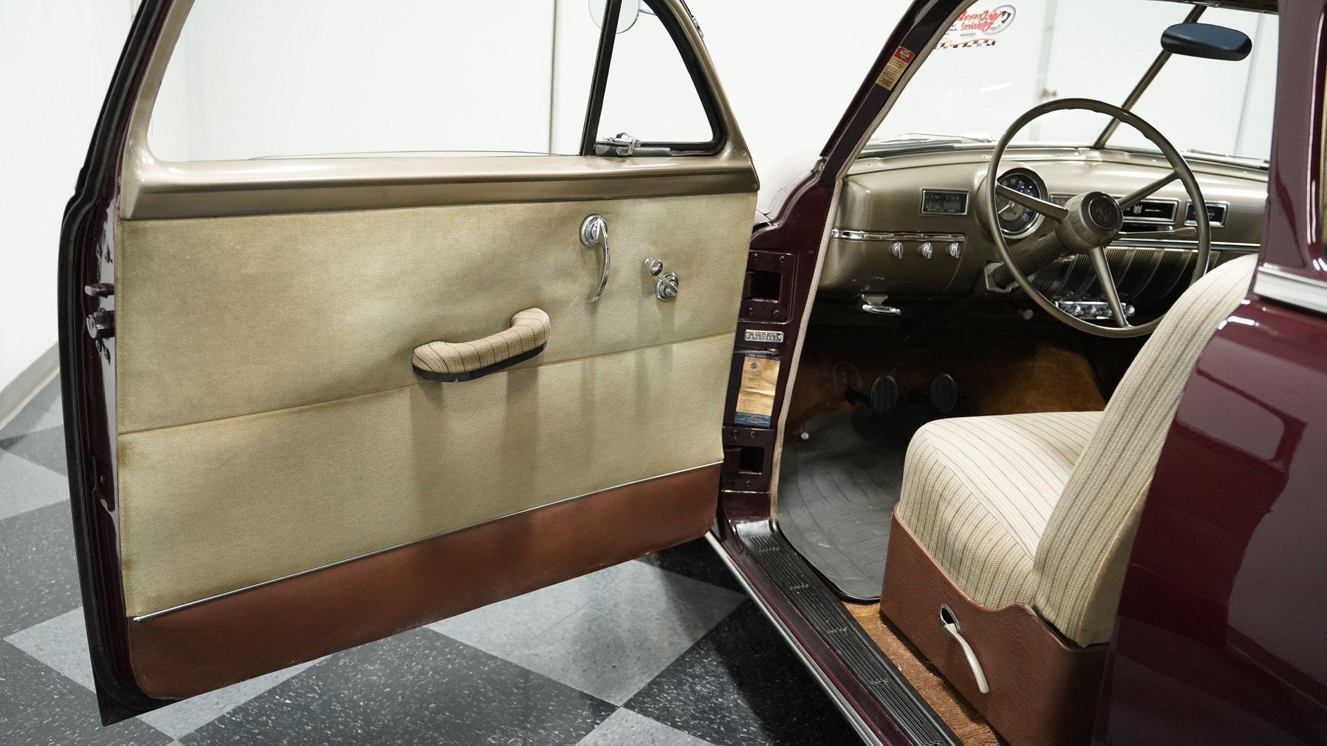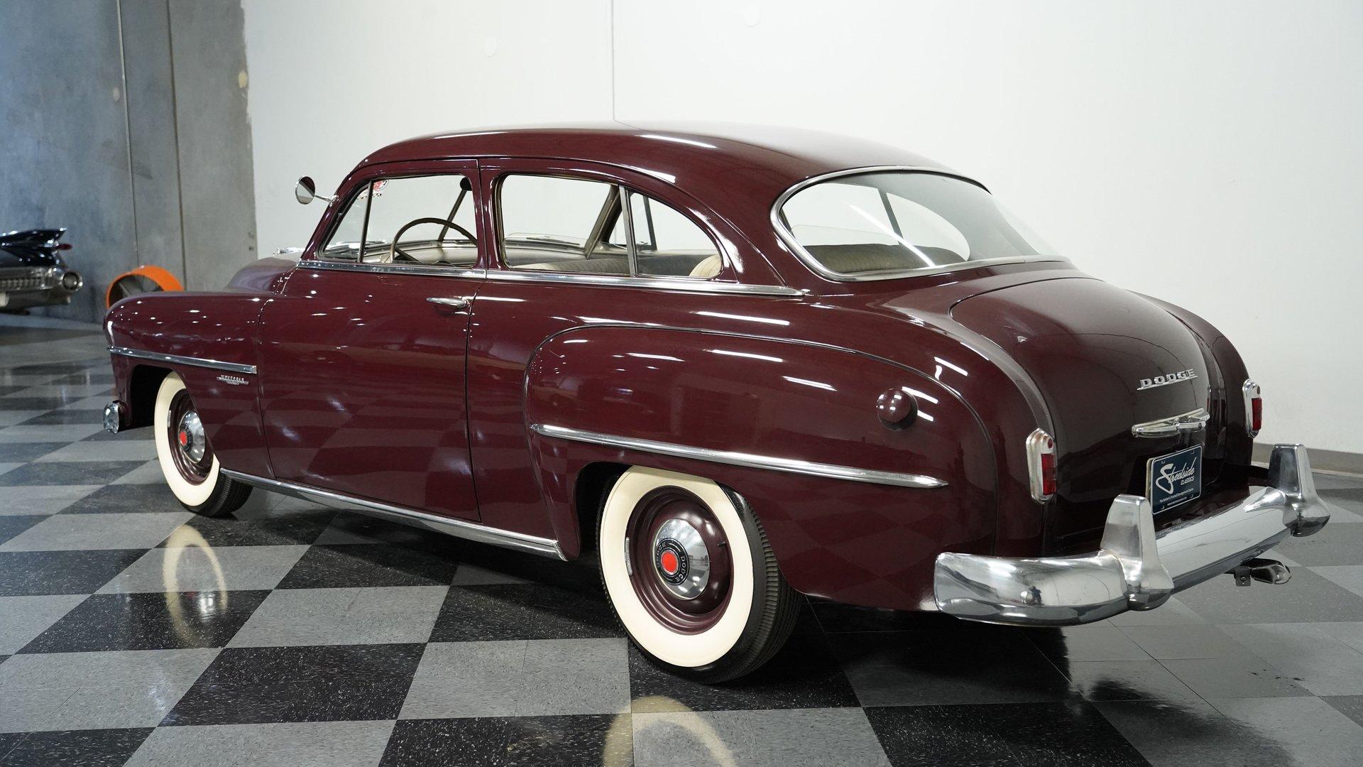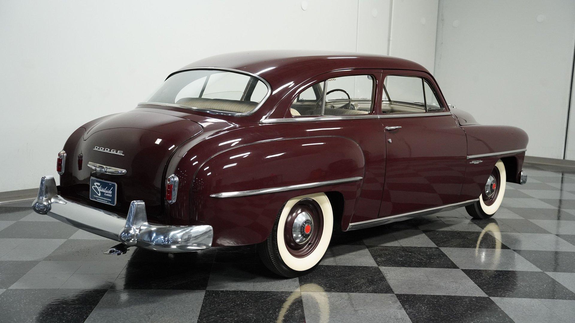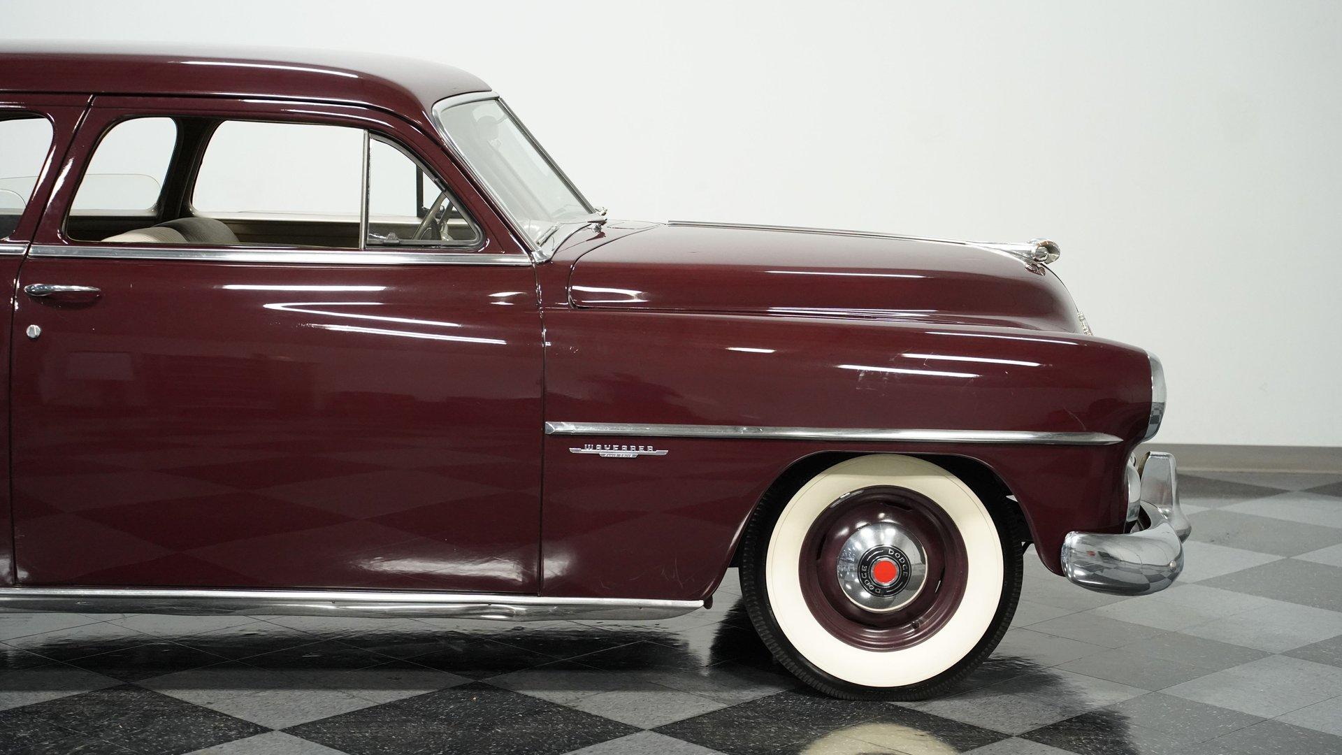 Burgundy elegance radiates from this 1951 Dodge Wayfarer, a true automotive marvel from the post-war period. The rich burgundy paint adds depth to the classic American form. Looking at this Wayfarer after seven decades, the exterior maintains remarkable authenticity. From the distinctive grille to the clean-lined rear, every detail stays true to its origins, while 15" wheels and 6.70-15 tires complete the look with proper proportion. Tan cloth bench seating fills the cabin of this Wayfarer, complemented by burgundy stripes that echo the exterior color. The interior layout follows the straightforward approach of early 50s design with a clean dash and column-mounted shifter for ease of use. The cabin appears incredibly well-maintained with only minor age-appropriate signs on the headliner. Nothing complicated here - just pure, honest American craftsmanship from an era when simplicity and durability mattered most. A 230 cubic inch inline-six sits in the engine bay of this Dodge, thought to be the original motor. The 3-speed manual transmission gives direct control to the driver while maintaining mechanical authenticity. The engine compartment has a factory-correct look with properly placed components and a 6-volt electrical system. For the road, coil springs support the front while leaf springs with shocks handle the rear, and drum brakes manage stopping duties. The single aftermarket exhaust produces a period-correct sound. HIGHLIGHTS: 230 I6 Engine (Believed Original) 3 Speed Manual Transmission 1 Barrel Fuel Delivery Single Exhaust with Aftermarket Muffler Coil Spring Front Suspension Leaf Springs with Shocks Rear Suspension Drum Brakes 6V Electrical System Burgundy Paint 15" Wheels 6.70-15 Tires Tan Interior with Burgundy Stripes Bench Seating Column Shifter 5 Digit Odometer From classic styling to authentic mechanical components, this 1951 Dodge Wayfarer exemplifies American motoring when quality and simplicity defined automobiles. Museum-quality maintenance and possibly original low mileage make this Dodge worth your attention. Call today!