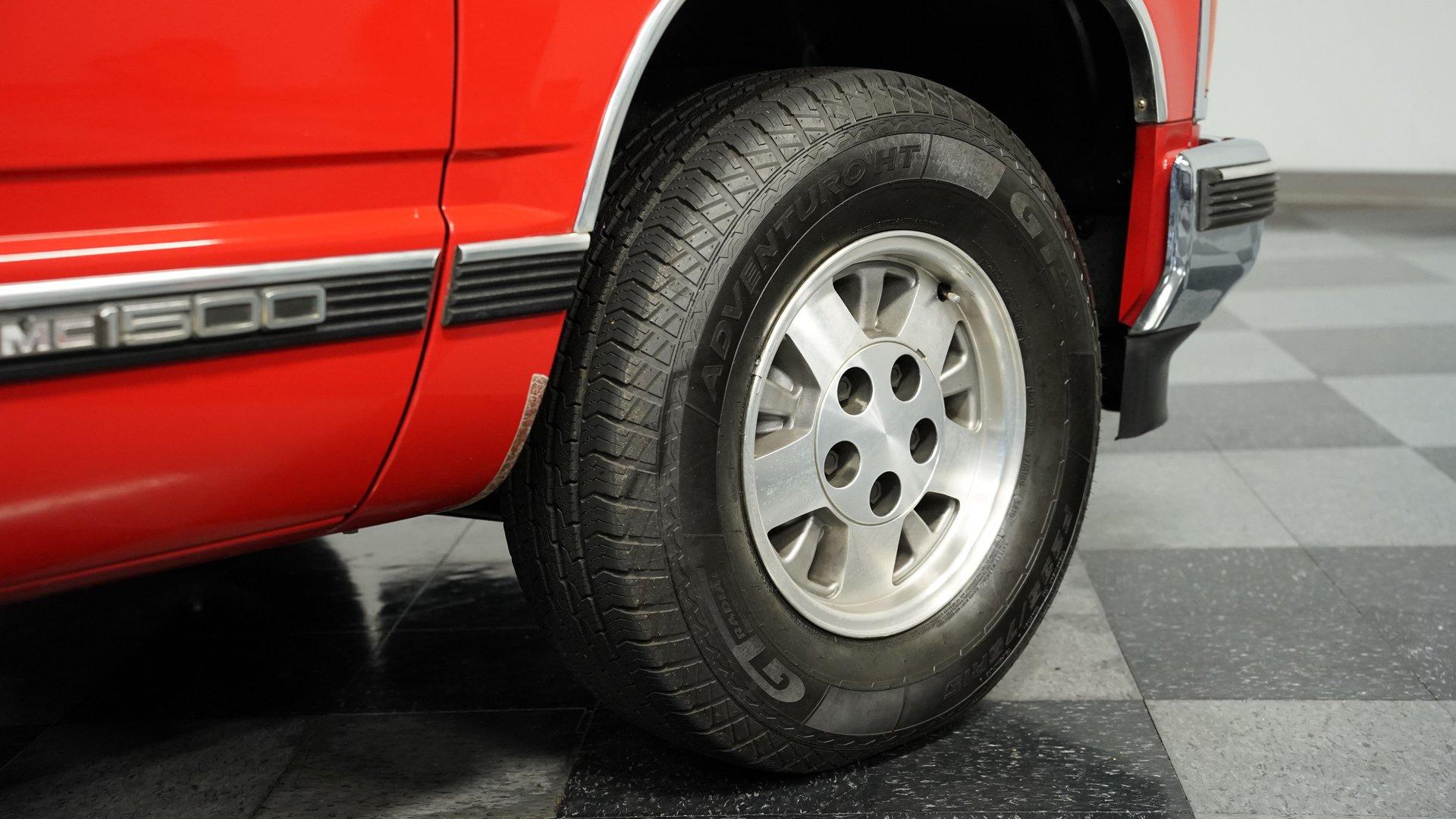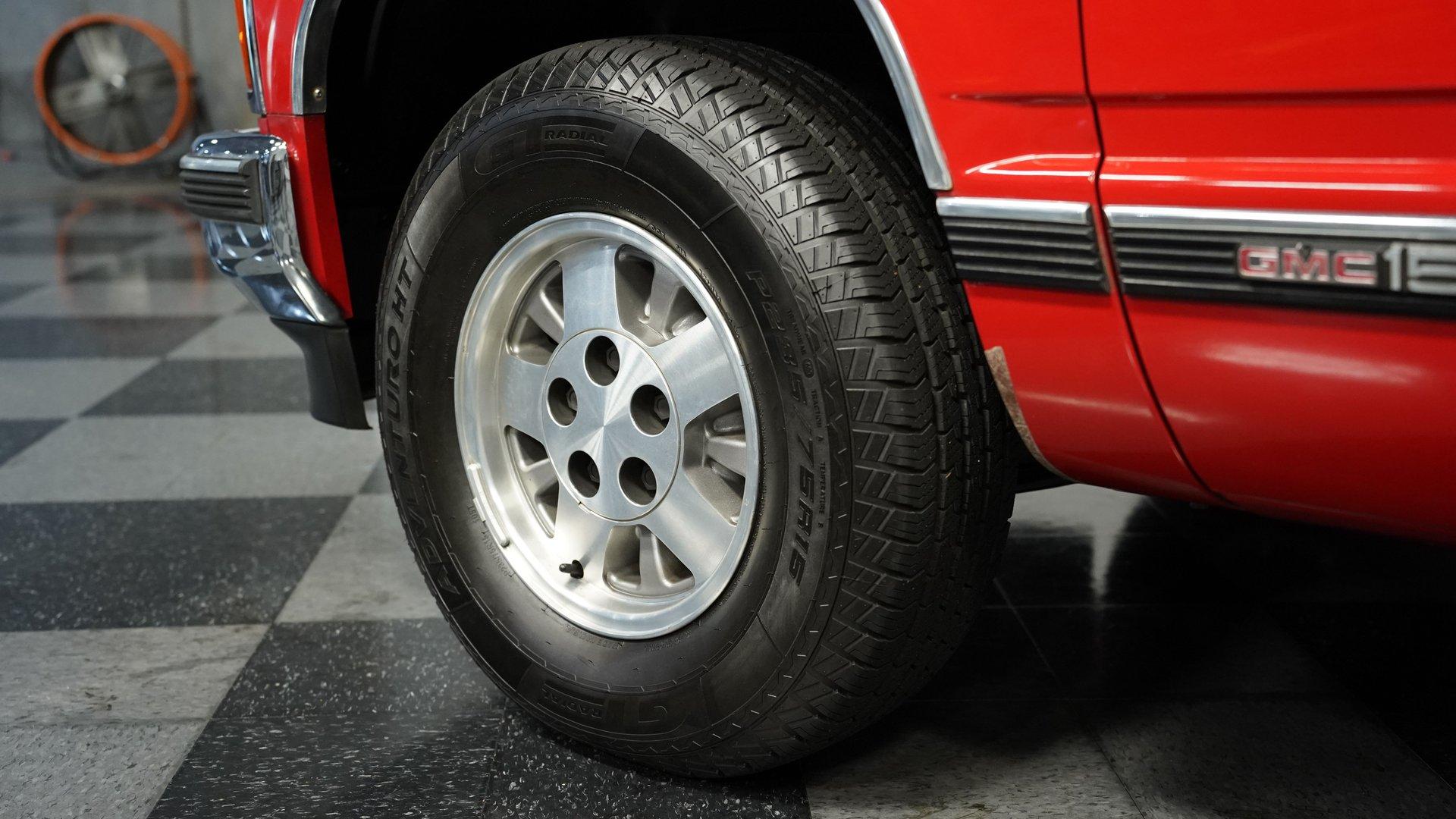 Showing just 67,781 actual miles, this 1993 GMC Sierra 1500 SLE features the original Fire Red exterior finish. The factory chrome and brightwork remain in excellent condition across all original body panels. A tough bedliner protects the cargo area from daily wear and tear. The 15-inch wheels carry 235/75R15 tires that give this truck its proper stance and road-gripping capability without sacrificing ride quality. The gray cloth interior features bench seating with minimal wear, a true indicator of careful ownership. The dash gauges maintain their factory clarity, offering easy readability after decades of service. Driving comfort comes from power windows, power locks, cruise control, tilt wheel, and air conditioning that keep the cabin cool during summer drives. The AM/FM cassette player provides audio entertainment for long highway stretches. Recently replaced, the headliner adds a fresh touch to the otherwise factory-original cabin. The 5.7 Liter V8 engine works with electronic fuel injection to supply consistent output in any condition. A 700R4 4-speed automatic transmission handles shifting duties, making daily driving straightforward and highway trips relaxed. Directional control is effortless thanks to power steering, while the front power disc brakes bring the truck to a stop with minimal pedal effort. The suspension uses A-arms with coil springs and shocks up front, with traditional leaf springs and shocks supporting the rear, yielding a balanced ride that handles both empty cruising and loaded hauling. HIGHLIGHTS: 5.7 Liter V8 Engine 4 Speed Automatic Transmission (700R4) Electronic Fuel Injection Power Disc Brakes (Front) A-Arm with Coil Spring Suspension (Front) Leaf Spring Suspension (Rear) 10 Bolt Rear Axle Fire Red Paint 15" Wheels in 235/75R15 Tires Chrome Brightwork Truck Bedliner Gray Cloth Interior with Bench Seating Power Windows, Locks Air Conditioning Tilt Wheel Power Steering Cruise Control Column Shifter AM/FM Cassette Player New Headliner Original Window Sticker Owner's Manual 67,781 Actual Miles A true survival truck from decades past, this 1993 GMC Sierra 1500 SLE gives you V8 power, comfort features, and remarkable original condition. Its documented history and excellent maintenance make this Sierra an ideal classic pickup for both show and use. Call today!