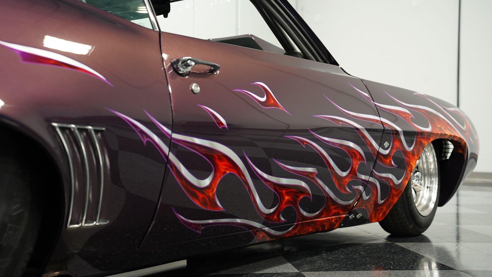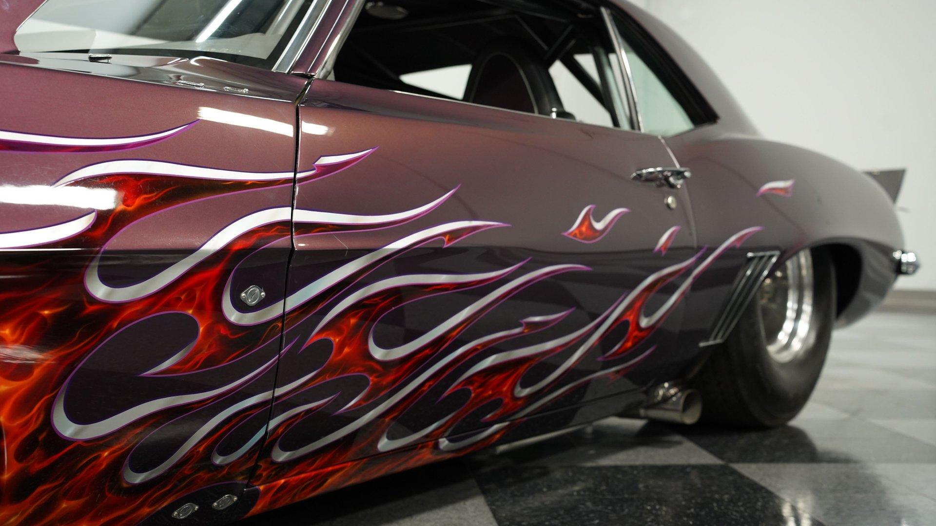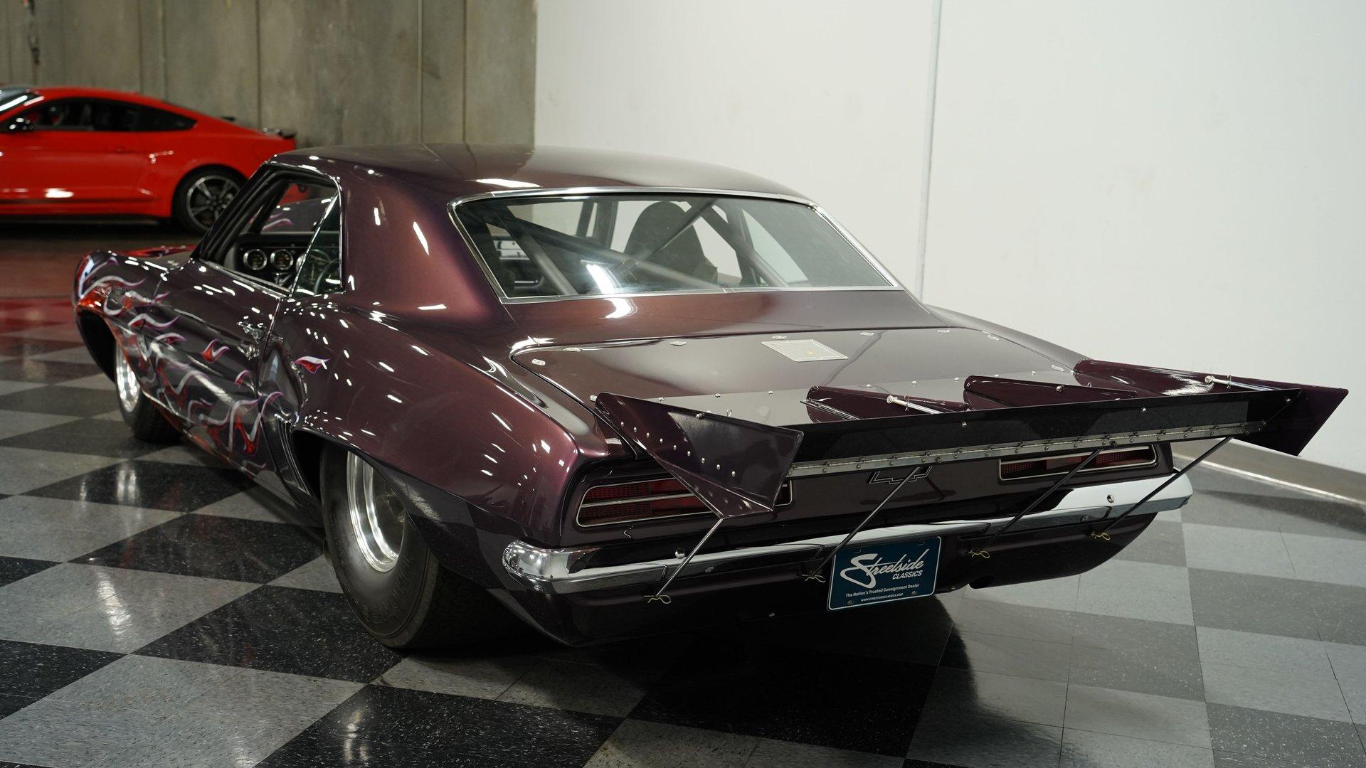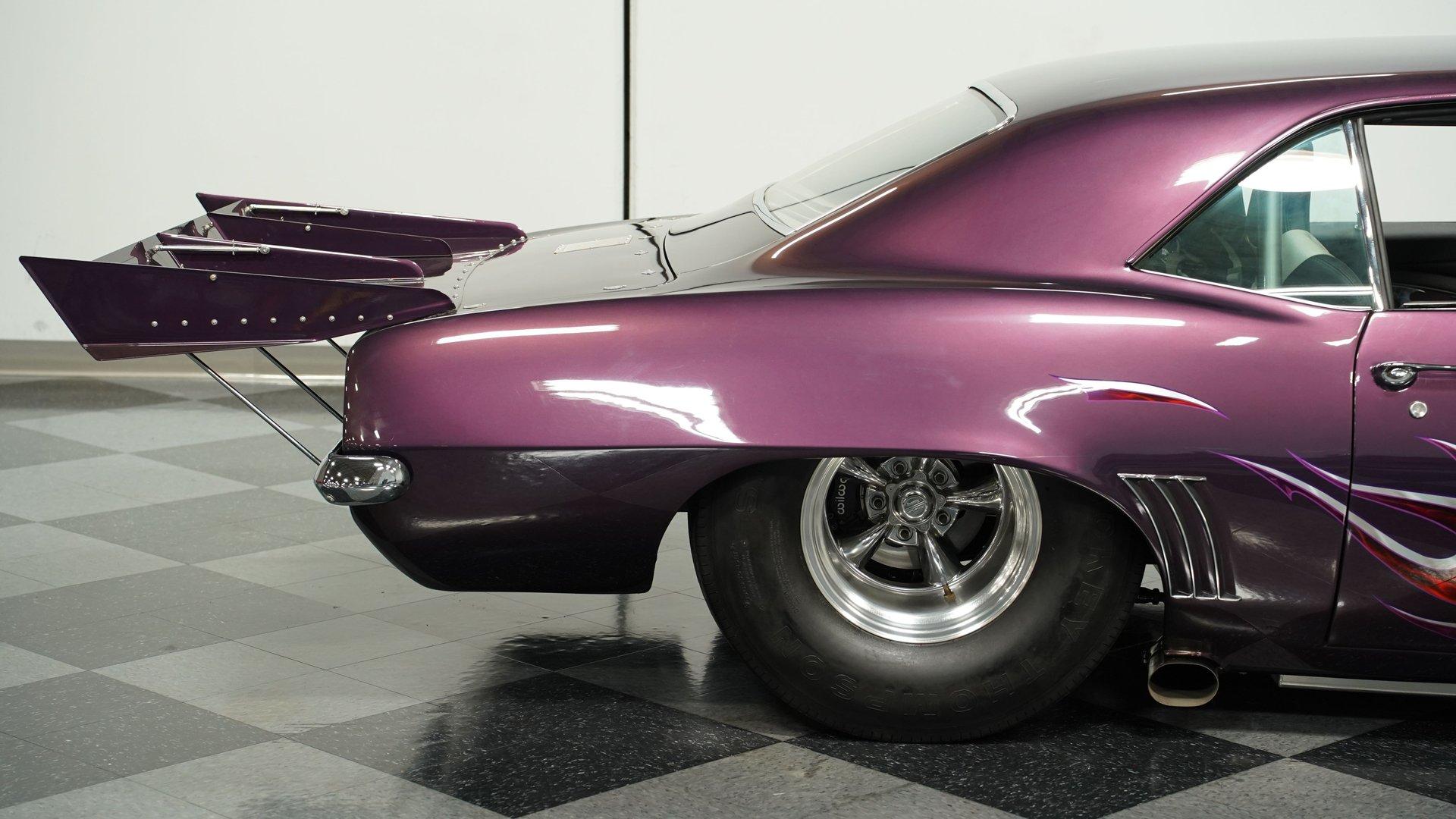 The 1969 Chevrolet Camaro Pro Street, known as "The Plum," is not just a car; it's a thundering force of nature. Cloaked in a deep purple that dances with flame orange, this Camaro flaunts its ferocity with airbrushed flames blazing across its body. It's a visual punch to the senses, a wild and fiery spirit captured in automotive form. The custom fiberglass front clip and fenders set an aggressive stance, while the monstrous 33x19.50-15LT rear tires on 15" American Racing wheels scream raw power. This beast boasts a huge cow hood and a drag spoiler painted to match, ensuring every inch exudes its bad, mean character. Get ready to dominate the streets with this menacing masterpiece. Climb inside where custom-made race seats await to cradle you in victory. The interior is a sanctuary of speed, with gray upholstery and purple inserts, accented by polished tribal flames. The polished center console houses an air rod stereo and all the vital gauges, while the air tank on the passenger side whispers hints of the monstrous capabilities beneath. The Simpson racing harnesses are your only ally as you unleash the fury of "The Plum," a show car built for the strip, yet equally at home stealing the spotlight. Beneath the hood lurks a heart of darkness – a custom-built 482 CID V8 engine. With AFR aluminum heads and dual quick-fuel carbs sitting atop an Offenhauser polished intake, this Camaro doesn't just run; it roars with an authority that demands attention. The TH400 3-speed automatic transmission, built for brutality, channels every ounce of power to the fully fabricated and chromed rear 4-link with a Detroit locker. The adjustable air ride suspension and Wilwood brakes at all corners ensure that this beast's bite is as fearsome as its bark. Feel the earth tremble as "The Plum" comes to life, a symphony of power and aggression. Highlights: o Custom-built 482 CID V8 engine. o Dual 4 Barrel quickfuel carbs. o Wilwood brakes all around. o Fully fabricated and chromed rear 4-link w/ Detroit locker. o Custom airbrushed flame job on deep purple. o 15" American Racing wheels. o Huge cow hood and custom drag spoiler. o Fiberglass front clip and fenders. o Custom race seats with gray upholstery and purple inserts. o Polished center console with an array of switches and gauges. o Simpson racing harnesses. o Featured in multiple performance magazines. o Air Ride Shockwave suspension system. The 1969 Chevrolet Camaro Pro Street is a relentless force, a monster forged in fire and speed. With its 482 V8 engine, it's more than just fast – it's an earth-shattering experience. The interior, a blend of luxury and race-readiness, offers a glimpse into the heart of a champion. And those flames, those mesmerizing flames, are not just a design; they're a warning. This Camaro is not for the faint of heart. It's for the bold, the brave, the ones who dare to unleash the full fury of "The Plum". Call today!