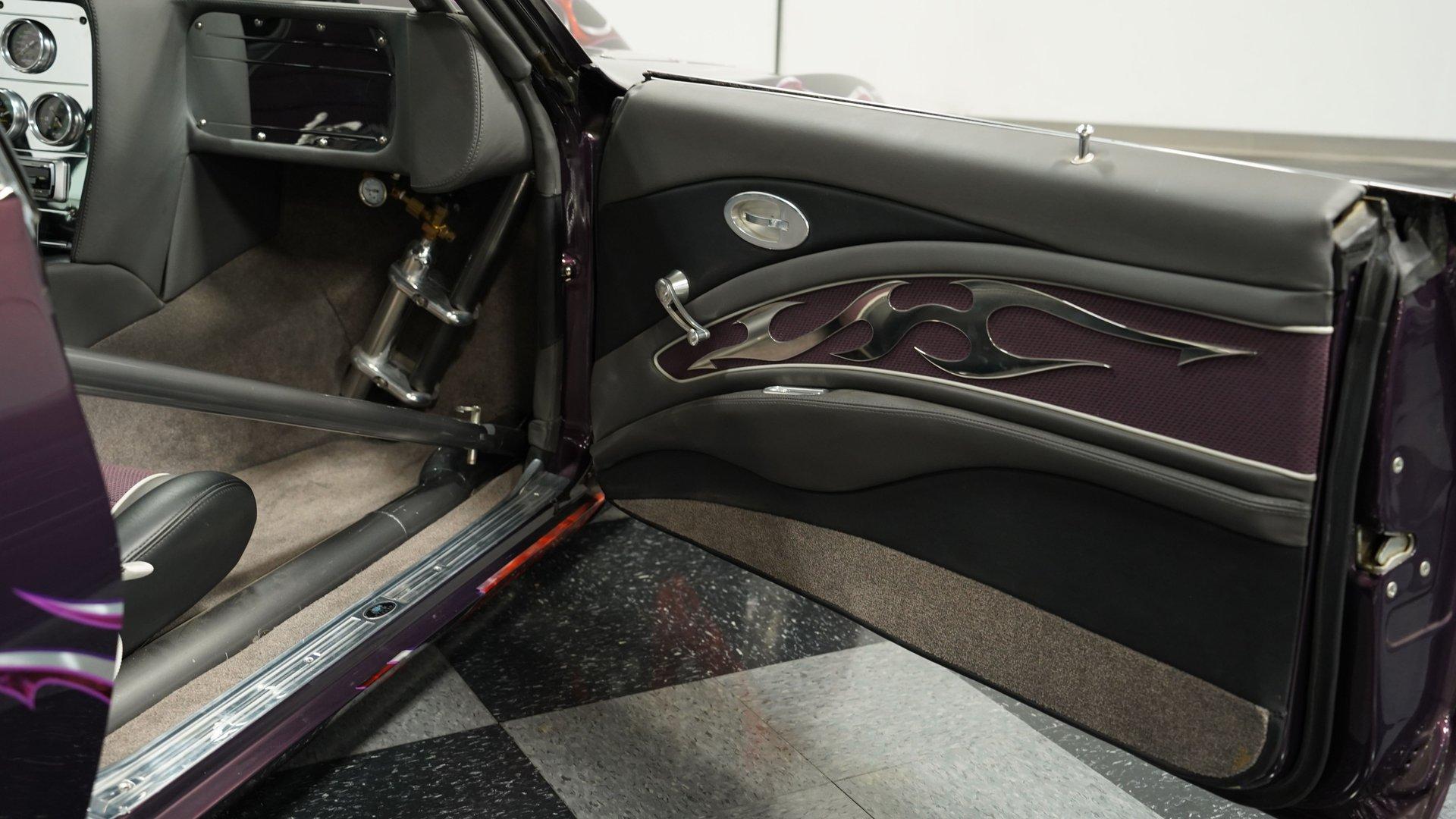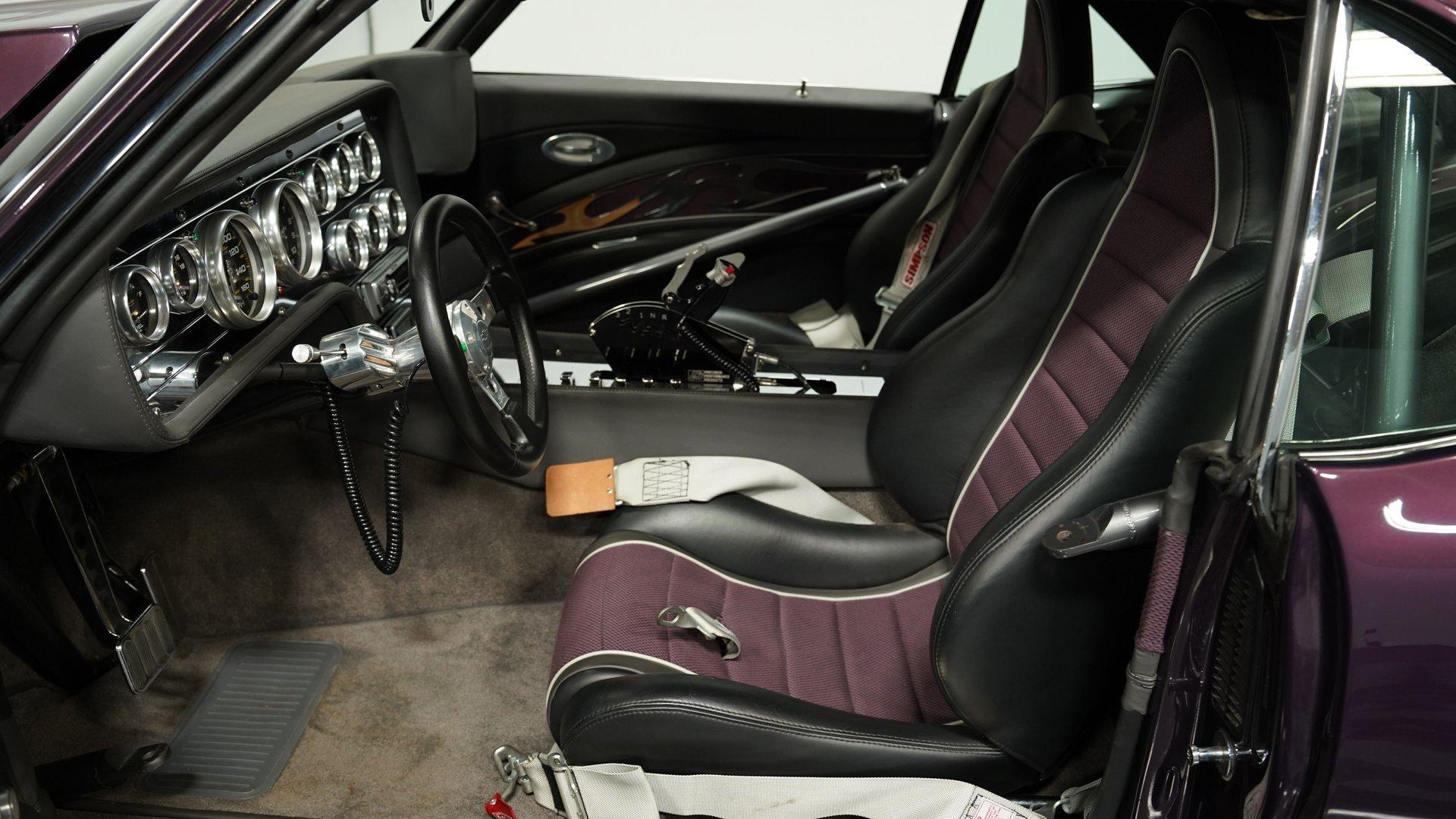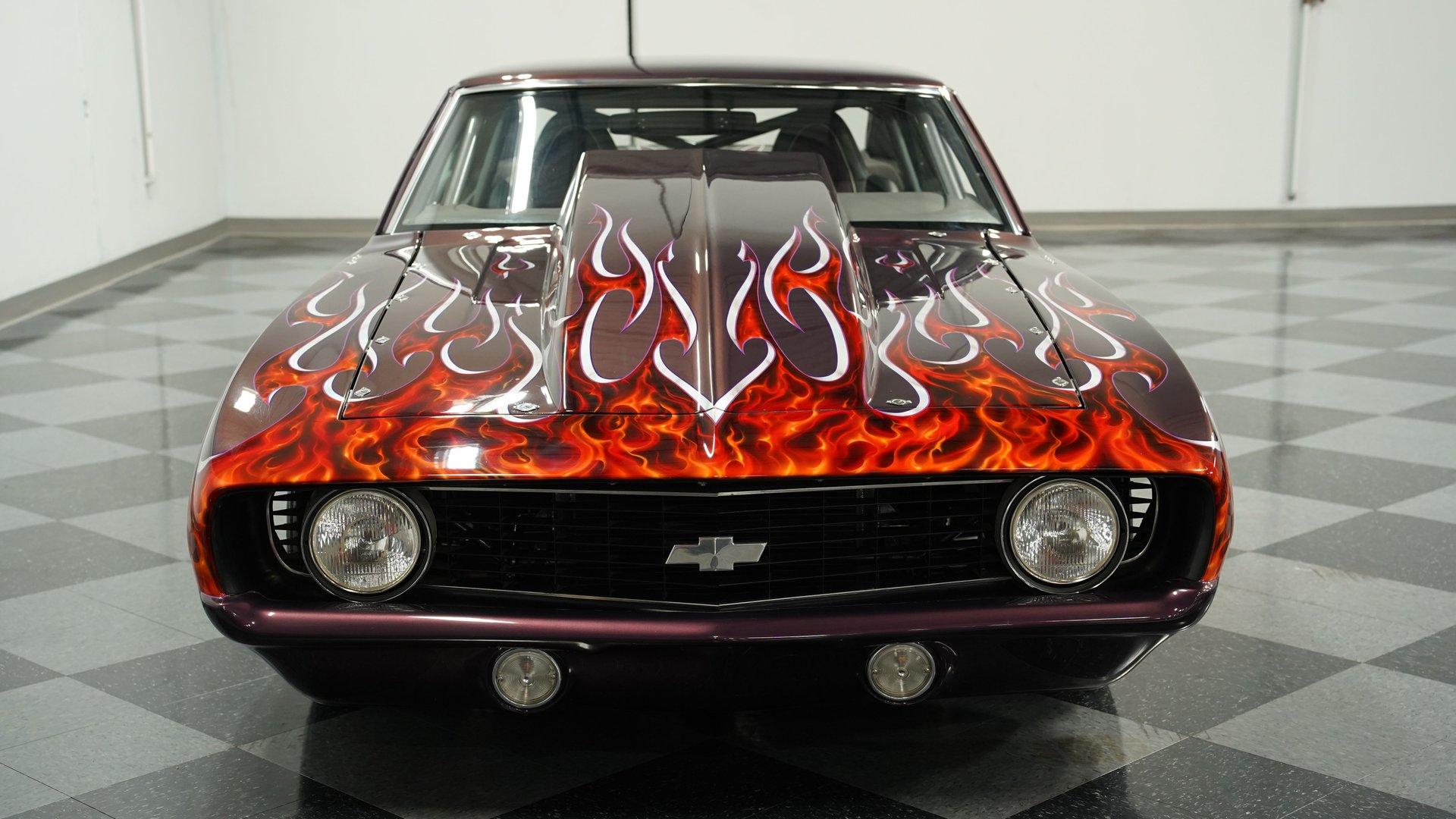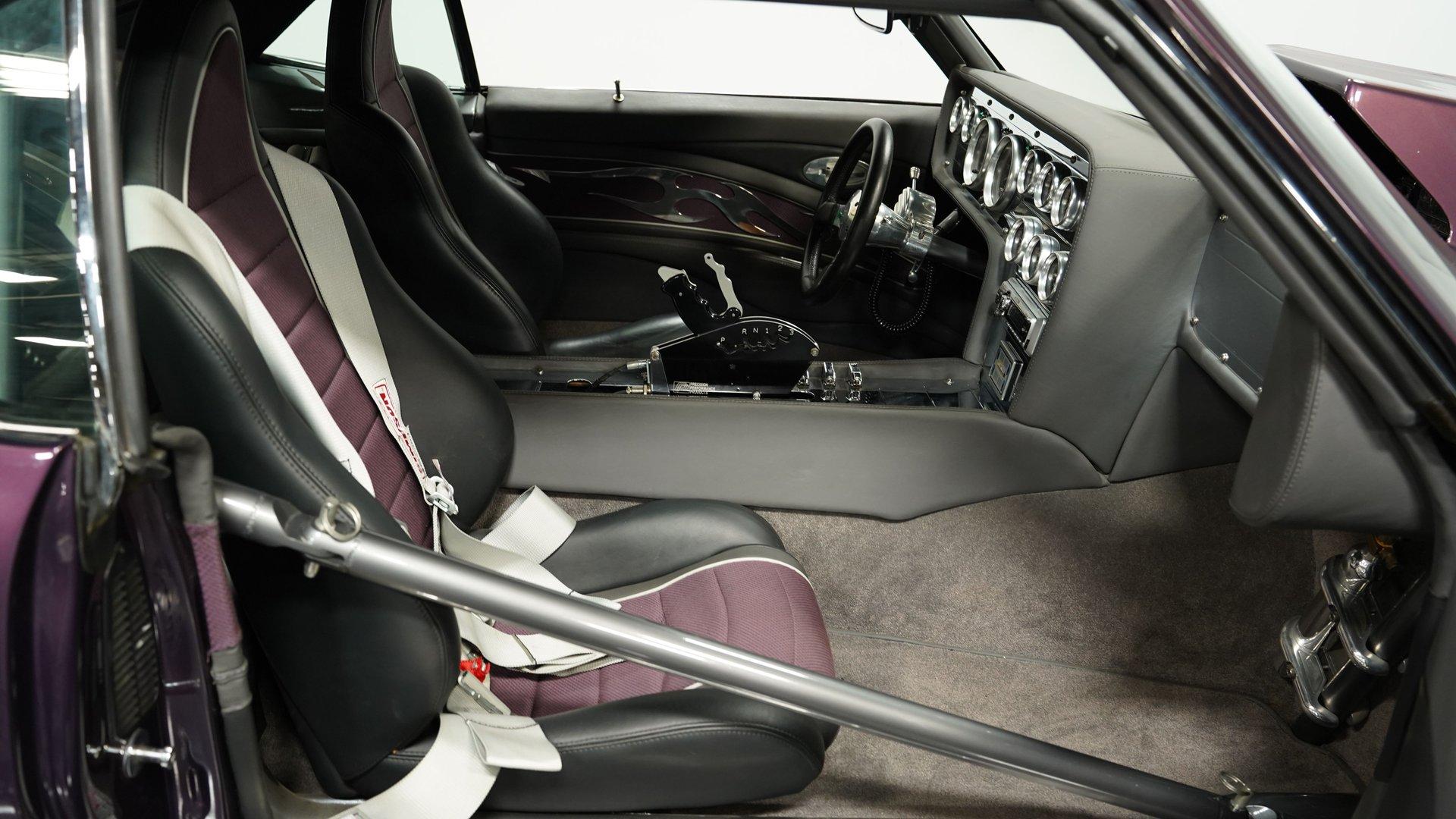 The 1969 Chevrolet Camaro Pro Street, known as "The Plum," is not just a car; it's a thundering force of nature. Cloaked in a deep purple that dances with flame orange, this Camaro flaunts its ferocity with airbrushed flames blazing across its body. It's a visual punch to the senses, a wild and fiery spirit captured in automotive form. The custom fiberglass front clip and fenders set an aggressive stance, while the monstrous 33x19.50-15LT rear tires on 15" American Racing wheels scream raw power. This beast boasts a huge cow hood and a drag spoiler painted to match, ensuring every inch exudes its bad, mean character. Get ready to dominate the streets with this menacing masterpiece. Climb inside where custom-made race seats await to cradle you in victory. The interior is a sanctuary of speed, with gray upholstery and purple inserts, accented by polished tribal flames. The polished center console houses an air rod stereo and all the vital gauges, while the air tank on the passenger side whispers hints of the monstrous capabilities beneath. The Simpson racing harnesses are your only ally as you unleash the fury of "The Plum," a show car built for the strip, yet equally at home stealing the spotlight. Beneath the hood lurks a heart of darkness – a custom-built 482 CID V8 engine. With AFR aluminum heads and dual quick-fuel carbs sitting atop an Offenhauser polished intake, this Camaro doesn't just run; it roars with an authority that demands attention. The TH400 3-speed automatic transmission, built for brutality, channels every ounce of power to the fully fabricated and chromed rear 4-link with a Detroit locker. The adjustable air ride suspension and Wilwood brakes at all corners ensure that this beast's bite is as fearsome as its bark. Feel the earth tremble as "The Plum" comes to life, a symphony of power and aggression. Highlights: o Custom-built 482 CID V8 engine. o Dual 4 Barrel quickfuel carbs. o Wilwood brakes all around. o Fully fabricated and chromed rear 4-link w/ Detroit locker. o Custom airbrushed flame job on deep purple. o 15" American Racing wheels. o Huge cow hood and custom drag spoiler. o Fiberglass front clip and fenders. o Custom race seats with gray upholstery and purple inserts. o Polished center console with an array of switches and gauges. o Simpson racing harnesses. o Featured in multiple performance magazines. o Air Ride Shockwave suspension system. The 1969 Chevrolet Camaro Pro Street is a relentless force, a monster forged in fire and speed. With its 482 V8 engine, it's more than just fast – it's an earth-shattering experience. The interior, a blend of luxury and race-readiness, offers a glimpse into the heart of a champion. And those flames, those mesmerizing flames, are not just a design; they're a warning. This Camaro is not for the faint of heart. It's for the bold, the brave, the ones who dare to unleash the full fury of "The Plum". Call today!