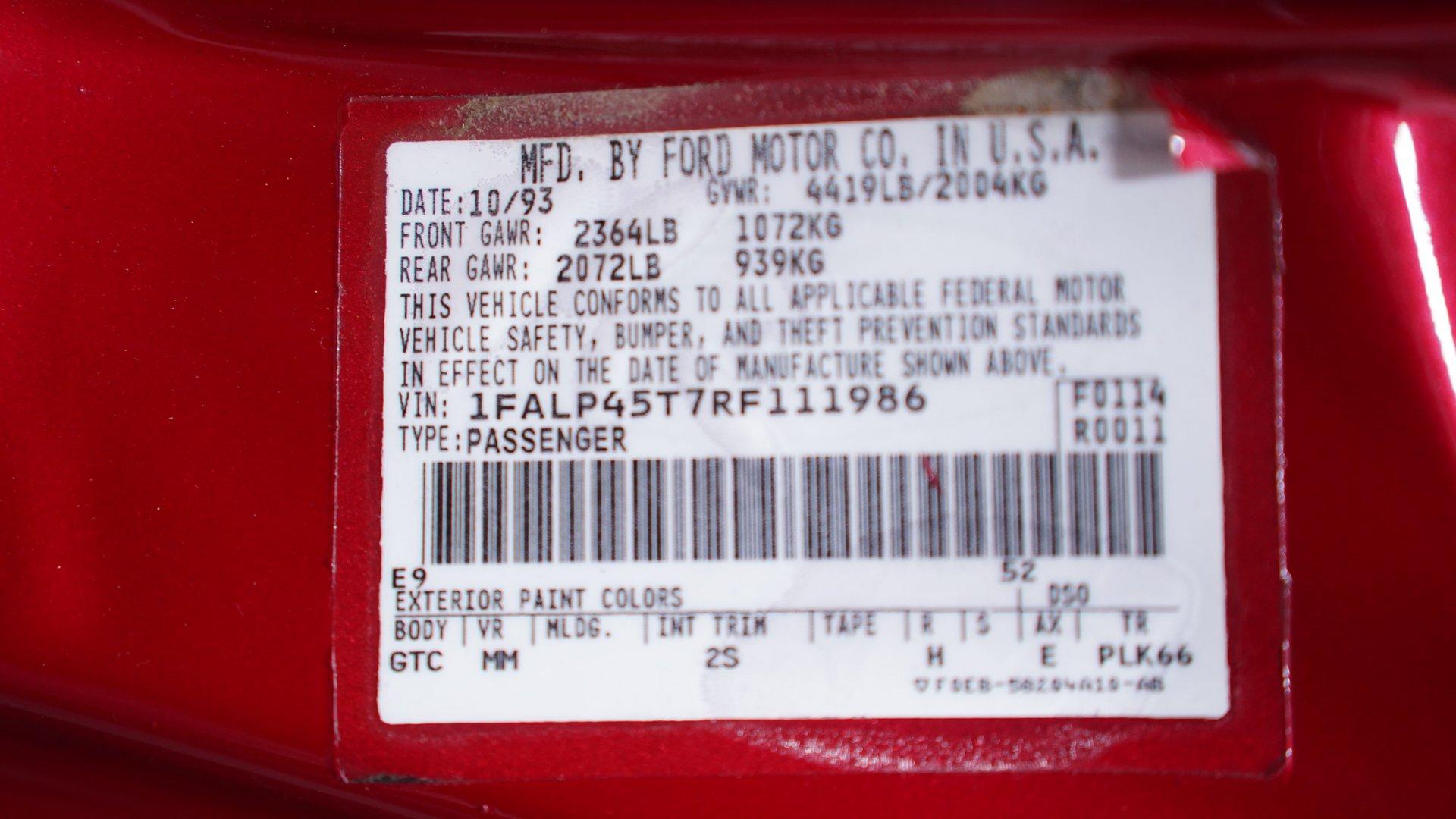 - VIN Code1FALP45T7RF111986