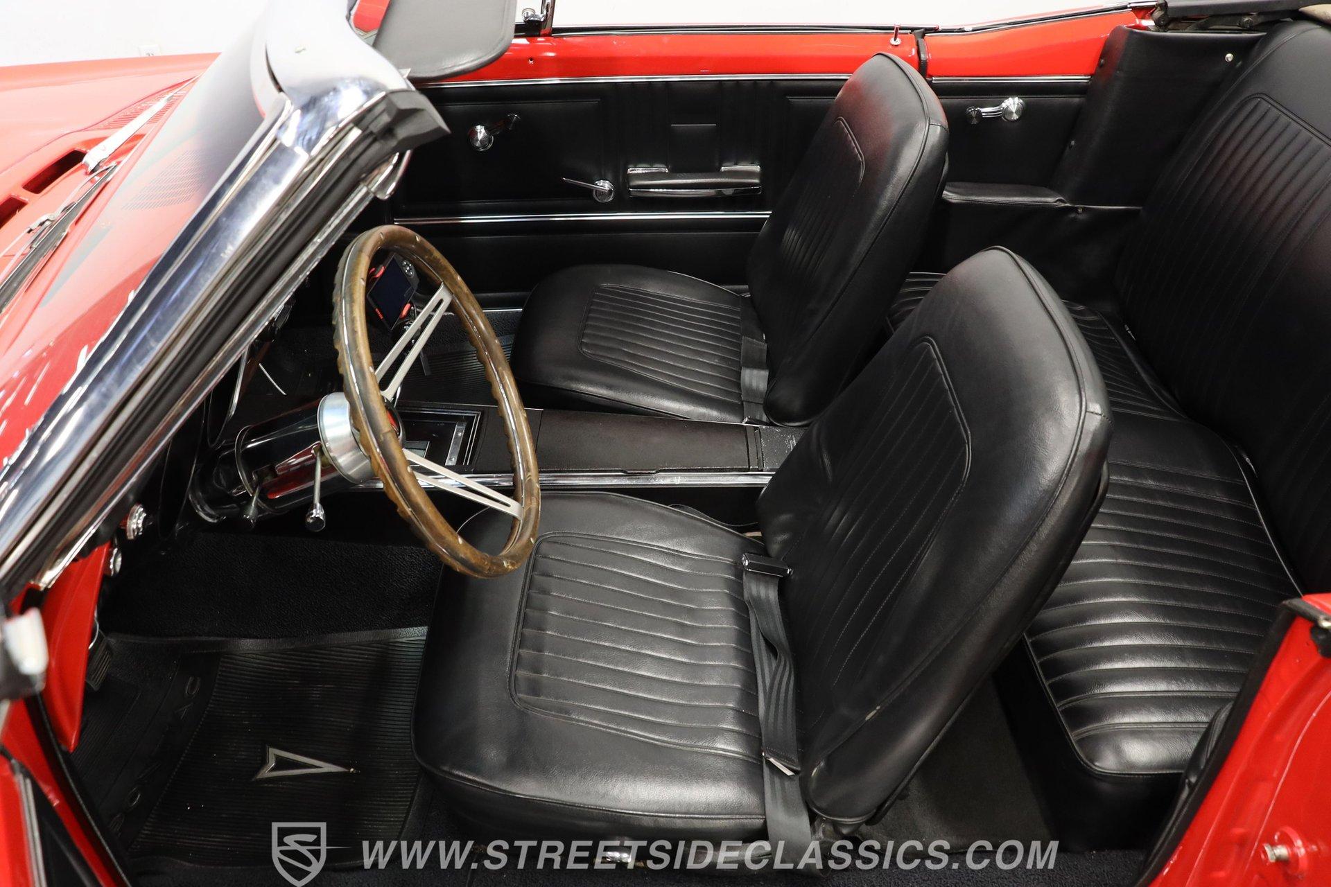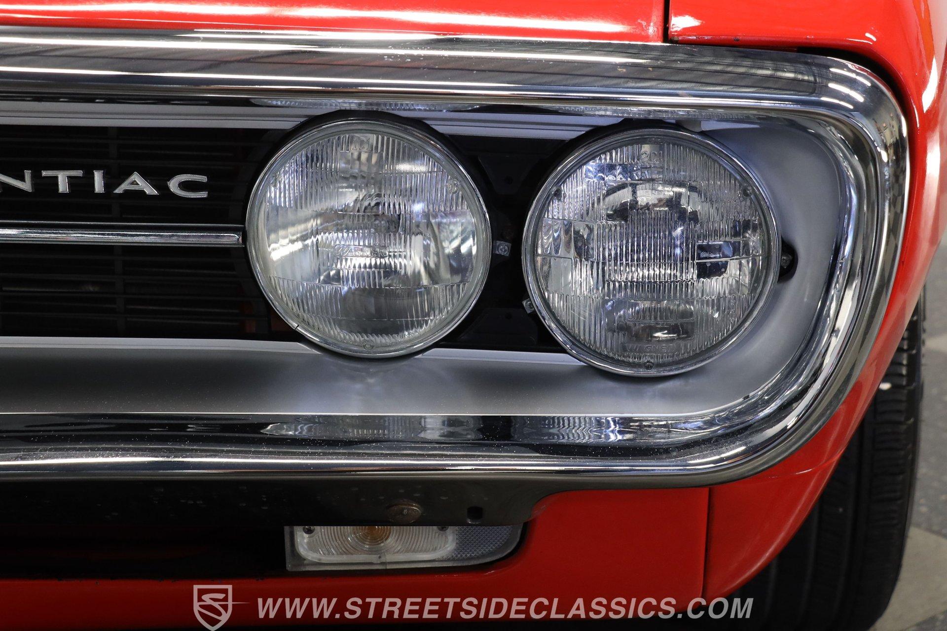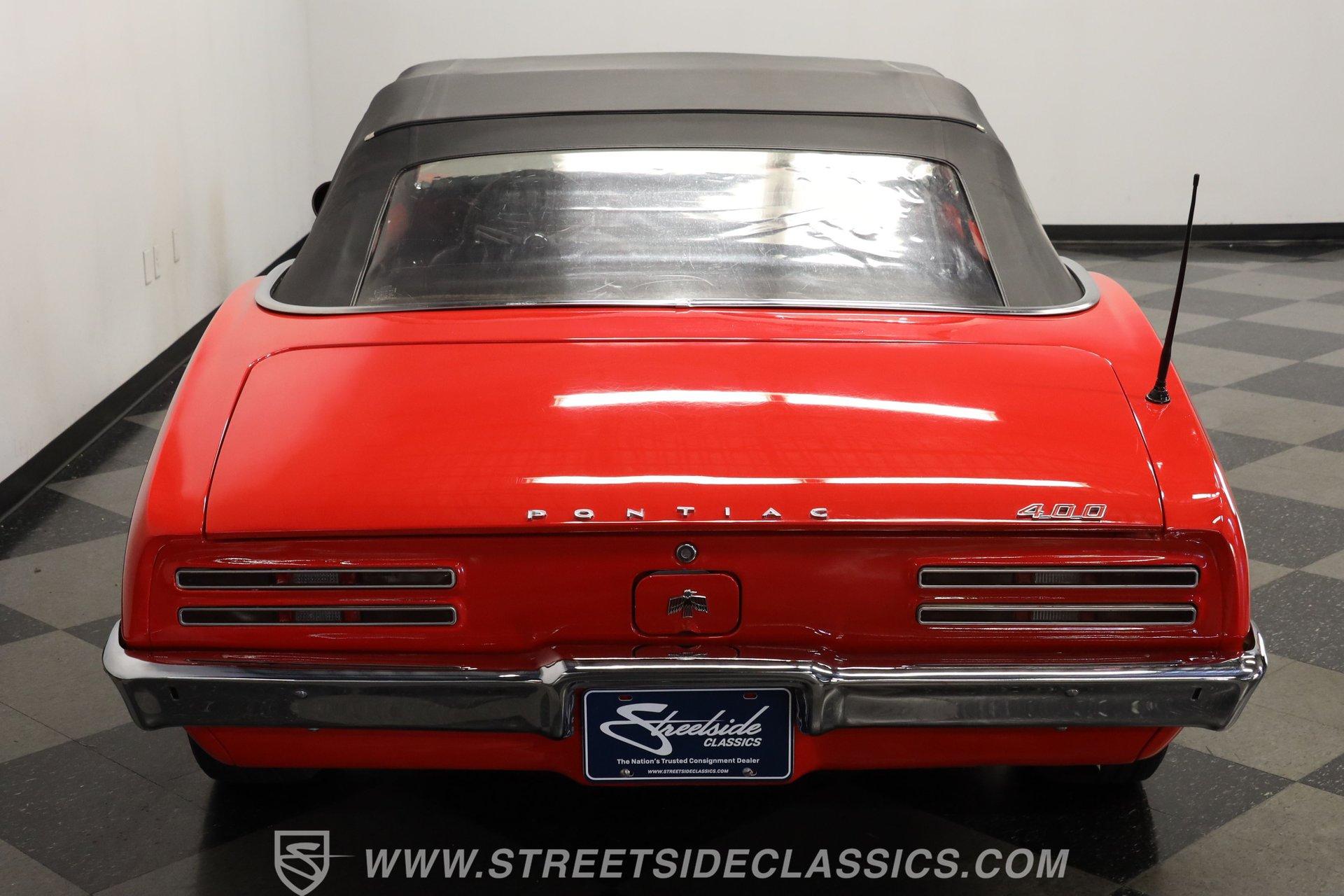 Gone but not forgotten, this fully repainted, bright red 1967 Pontiac Firebird 400 Convertible reminds us why this car was so beloved. With its sculpted Coke bottle styling, quad horizontal taillights, and aggressive scooped hood, this first-year droptop dynamo is a stellar example of the first year of the Firebird's first generation. Inside, we find a well-done black vinyl interior. A center console separates a pair of bucket seats, while a power-assisted woodgrain steering wheel mounted to a tilt column adds the perfect amount of contrasting color. Just ahead of that wheel is an upgraded set of Classic Instruments Gauges, while a woodgrain center stack houses sliding HVAC controls and Road Gear AM/FM/Cassette head unit. A FiTech controller and a 12-volt charging station add a nice touch of modern technology to this old-school interior. Under the hood, we find a clean engine bay with a 400-cubic-inch overhead-valve V-8. Fed by that FiTech electronic fuel injection system, this V8 expels spent gases through a true dual exhaust. That power is routed through a tried-and-true Muncie four-speed manual transmission before being sent out to the ten-bolt rear end. HIGHLIGHTS: First Year Firebird Manual Convertible Top Full Red Repaint 400 CID V8 FiTech EFI Dual Exhaust Muncie Four Speed Manual Ten Bolt Rear 15 Inch PMD Wheels Kumho Tires Black Vinyl Interior Bucket Seats Wood Rimmed Wheel Tilt Column Power Steering Classic Instruments Gauges AM/FM/Cassette 12 Volt Charging Station FiTech Control Module Four Wheel Power Disc Brakes Maintenance Records PHS Documentation This 1967 Pontiac Firebird Convertible features a factory-style suspension. Classic fifteen-inch Pontiac Motor Division wheels are shod in 215/60R-15 Kumho tires. Four-wheel power disc brakes stand ready to scrub off speed at a moment's notice. If you are one of the millions who have adored the iconic Firebird from start to finish, this first-year first-gen droptop, complete with Pontiac Historic Services documentation, is the car you've been searching for. Don't wait, call today! We can assist you with getting an Extended Vehicle Service Plan from Freedom Warranty, which provides comprehensive coverage that can save thousands of dollars on unexpected repairs. Inquire for more details and pricing!