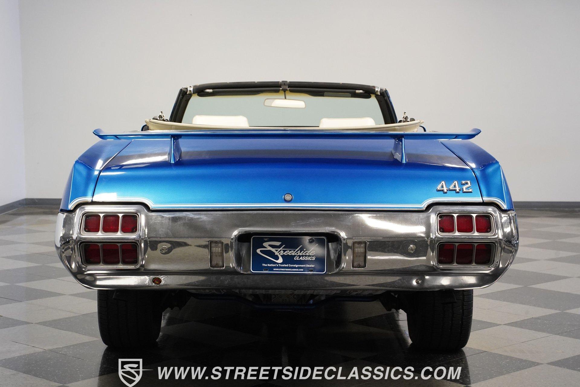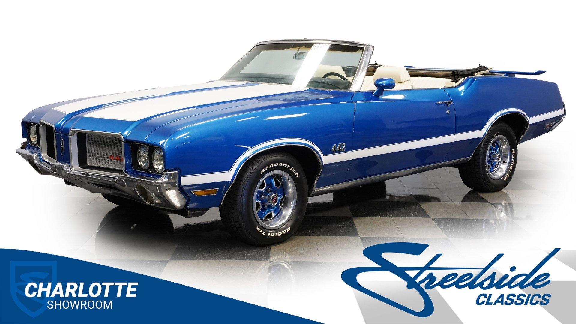 Step back in time and experience the thrill of American muscle with this stunning 1972 Oldsmobile Cutlass 442 Tribute Convertible. This classic car represents more than just a mode of transportation-it's a rolling statement of style, power, and nostalgia. Imagine cruising down open roads with the wind in your hair, turning heads with its striking Viking Blue finish and iconic 442 badging. Whether you're a seasoned collector or a passionate enthusiast, this convertible embodies the spirit of the early '70s muscle car era. Don't miss the chance to own a piece of automotive history that merges timeless design with exhilarating performance. Step inside and enjoy the beautifully restored interior featuring pristine white vinyl upholstery that was redone in 2012, maintaining the correct factory style. The cabin offers a comfortable and stylish environment with bucket seats, a rally steering wheel, and tasteful woodgrain dash trim complete with the Cutlass Supreme badge. Modern touches include white-face AutoMeter gauges, an Alpine CD player, aftermarket speakers, and front lap belts, all blending vintage charm with practical upgrades. Under the hood, this Cutlass boasts a powerful 403ci V8 engine sourced from a 1979 Pontiac Trans Am, complete with an Edelbrock Performer 350 intake, Holley 4-barrel carburetor, and long tube headers for a commanding rumble. The engine features a solid crank from a 1969 Olds and a Mondello cam, delivering a smooth and responsive ride. Paired with a rebuilt TH350 3-speed automatic transmission equipped with a Hurst dual-gated shifter, the drivetrain offers seamless shifting and spirited performance. Additional upgrades include power front disc brakes, power steering that allows effortless handling, heavy-duty F-41 suspension with large sway bars, and a 3.73 posi-traction rear end for confident traction and control. Highlights 1972 Oldsmobile Cutlass 442 Tribute Convertible Viking Blue Metallic Flake Paint, Factory Color Power Convertible Top with New Black Replacement Included 403ci V8 Engine from 1979 Pontiac Trans Am Edelbrock Performer 350 Intake, Holley 4BBL Carburetor TH350 3-Speed Automatic Transmission with Hurst Dual-Gated Shifter Power Front Disc and Rear Drum Brakes with Air Booster Heavy-Duty F-41 Suspension with Front and Rear Sway Bars GM 10 Bolt Rear End with 3.73 Posi-Traction Super Stock Wheels with BFG Radial T/A Tires White Vinyl Bucket Seat Interior Alpine AM/FM CD Player with Aftermarket Speakers Rally Steering Wheel and White-Face AutoMeter Gauges Power Steering Power Trunk Release and Sport Mirrors Service Manuals and Maintenance Records Included Financing Available Vehicle Protection Plans Available Worldwide Shipping This 1972 Oldsmobile Cutlass 442 Tribute Convertible is a fantastic opportunity to own a classic cruiser with impressive upgrades and show-stopping looks. Whether for weekend drives or car shows, this Olds promises fun and style in equal measure. Call, email, or come visit our showroom today!