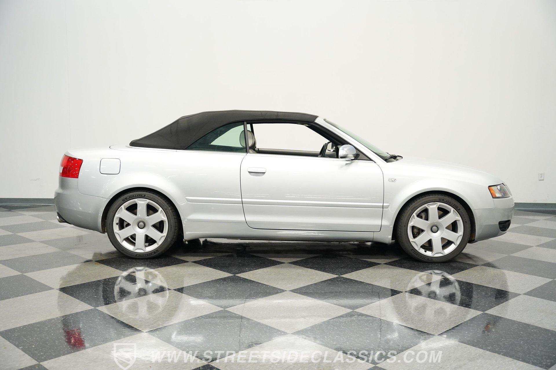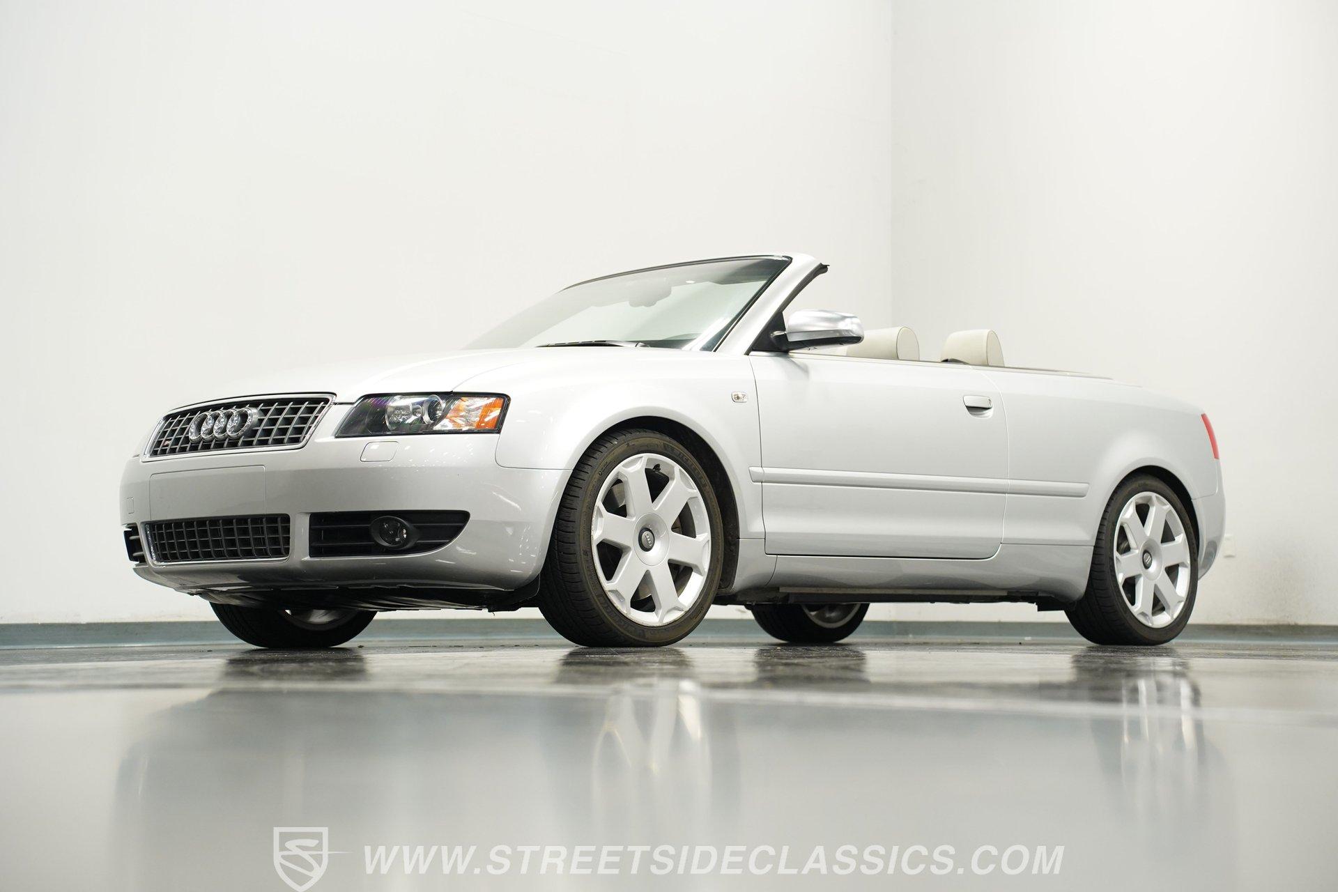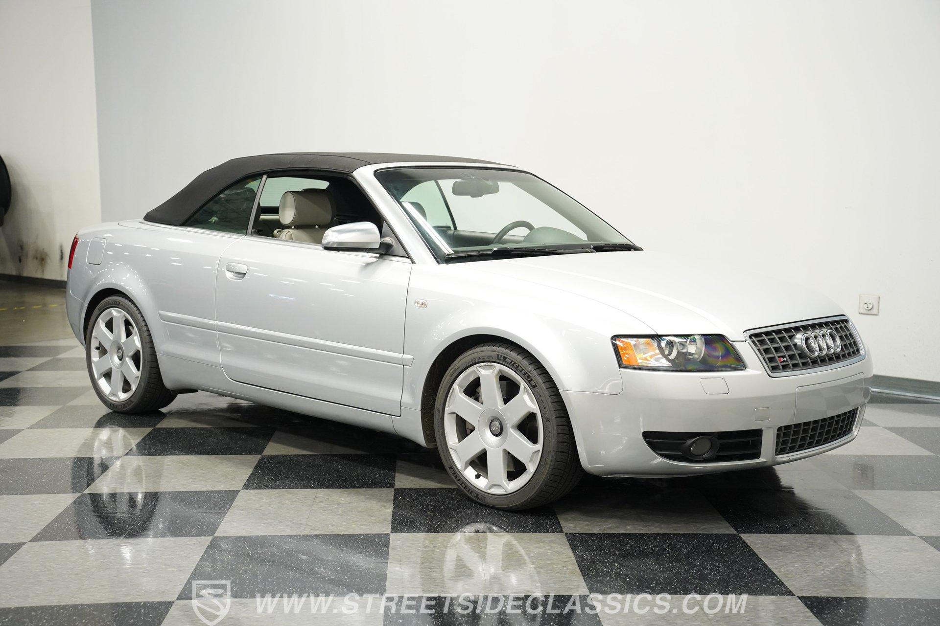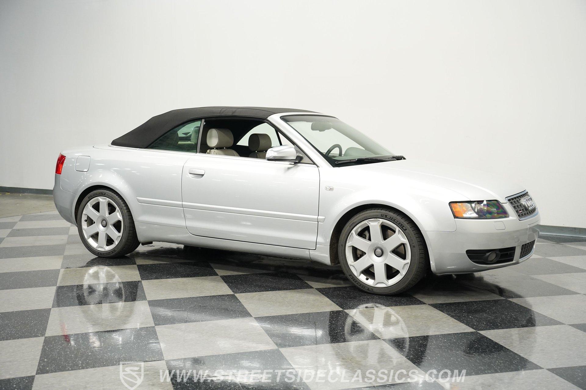There's something undeniably captivating about driving a classic convertible that effortlessly blends performance, style, and open-air freedom. This 2004 Audi S4 Cabriolet is a refined expression of that thrill, offering a rare opportunity to own a well-preserved example that has been lightly enjoyed. With its timeless design and the promise of exhilarating drives on warm days, this Audi represents not just a car, but a lifestyle statement. It's a vehicle that invites you to create memories while appreciating the craftsmanship of a true performance convertible. Step inside to discover a gray leather interior that balances comfort with sophistication. The cabin features premium touches like heated front seats and carbon fiber trim that add a sporty flair. This S4 is equipped with the Audi navigation system and Bose premium audio package, ensuring entertainment and convenience accompany every journey. The multifunction steering wheel, memory seats, and auto-dimming mirrors enhance the driving experience, while the overall interior quality reflects very good restoration with slight use, making it both inviting and stylish. Under the hood, this Audi S4 sports a 4.2-liter V8 engine paired with a 6-speed manual transmission, both likely original and in very good condition. Known for its smooth acceleration and responsive handling, this drivetrain delivers a classic yet thrilling performance. The power steering, four-wheel disc brakes, and fuel injection system work harmoniously to provide confident control and a dynamic driving experience. Recent maintenance includes new tires and a battery, ensuring this convertible is ready for the road with reliability and spirited performance. Highlights: 2004 Audi S4 Cabriolet 4.2 Liter V8 Engine 6 Speed Manual Transmission 31,839 Actual Miles Original Paint Gray Leather Interior Heated Front Seats Audi Navigation System Bose Premium Audio Package Power Convertible Top Power Steering Four Wheel Disc Brakes New Tires and Battery Financing Available Vehicle Protection Plans Available Worldwide Shipping This 2004 Audi S4 Cabriolet offers a unique blend of classic style and modern performance that makes it a standout choice for enthusiasts and casual drivers alike. Its low mileage, well-maintained condition, and tasteful features make it a compelling buy for anyone seeking a quality convertible experience. Call, email, or come visit our showroom today!
