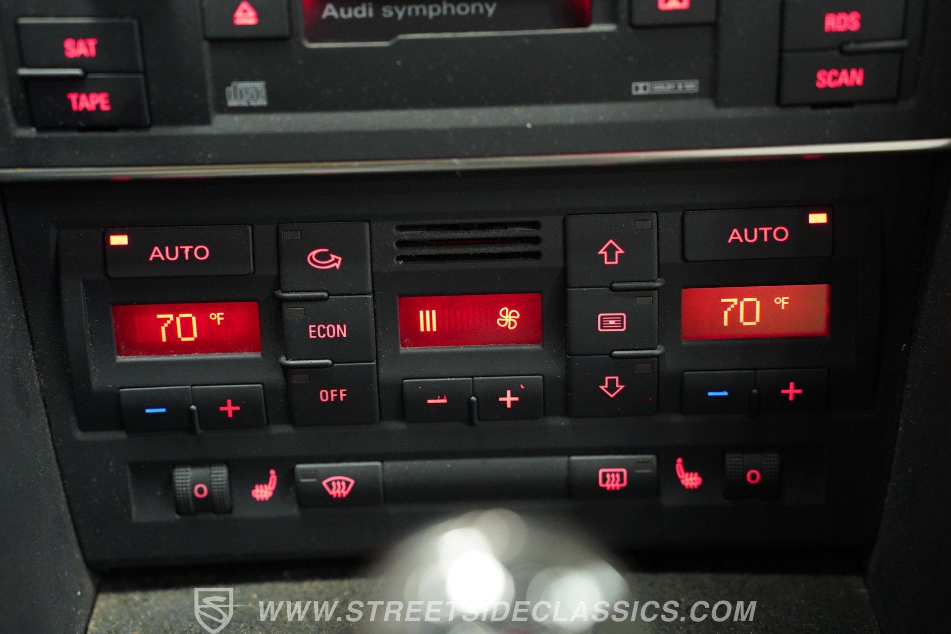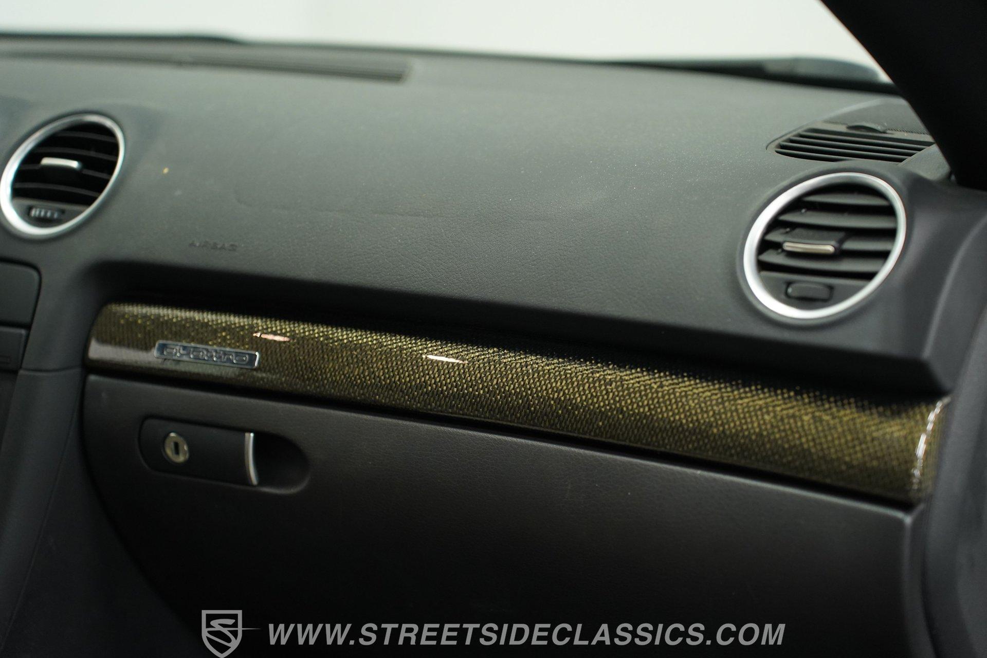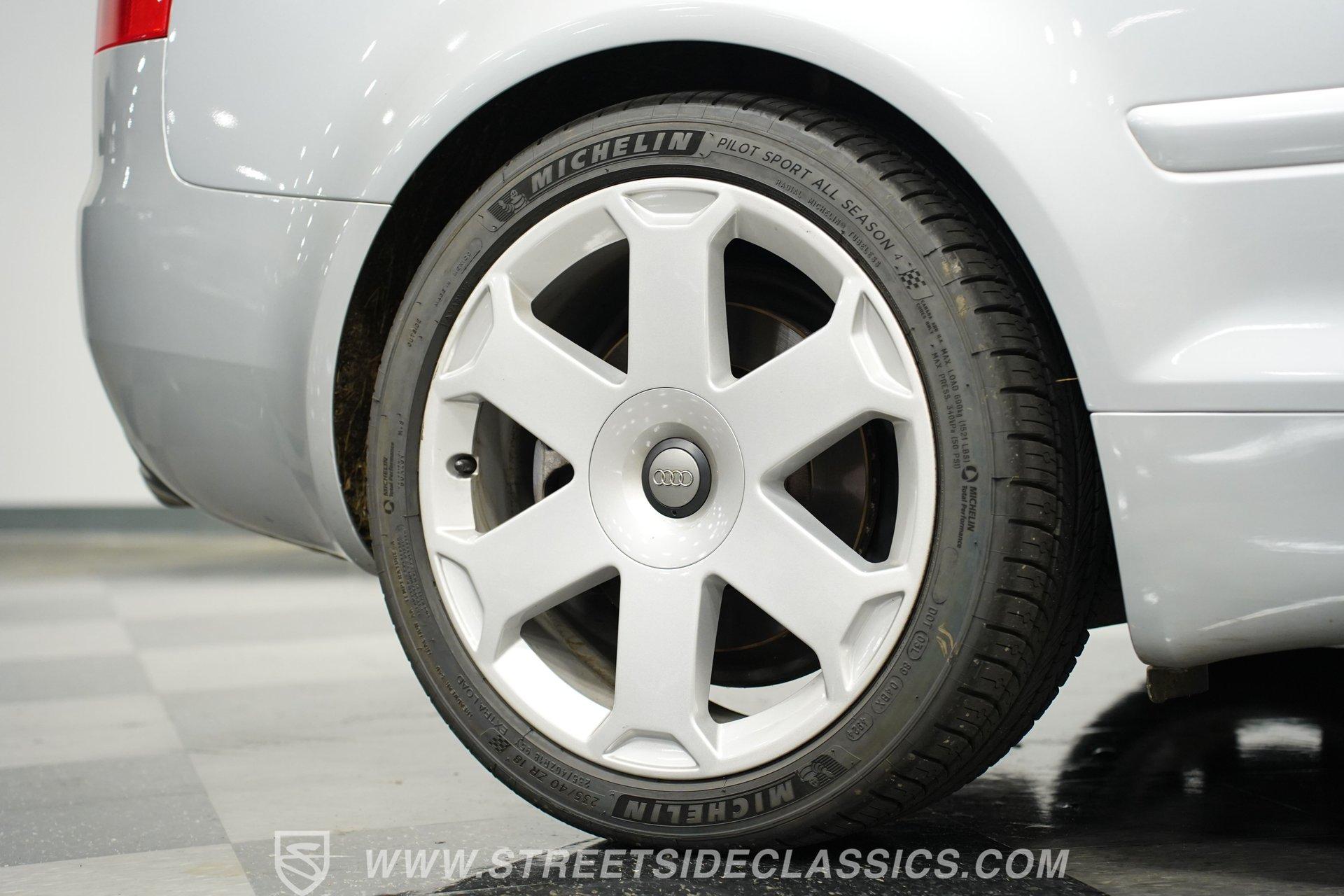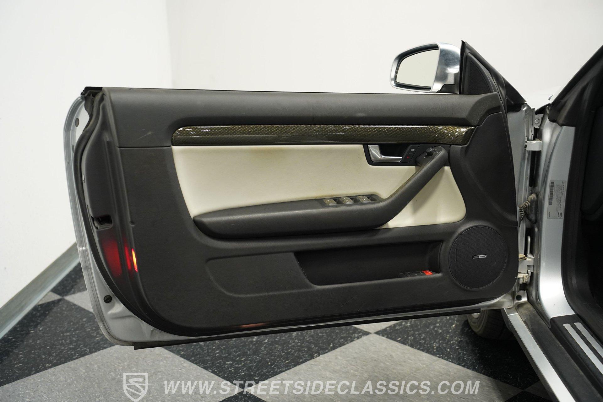 There's something undeniably captivating about driving a classic convertible that effortlessly blends performance, style, and open-air freedom. This 2004 Audi S4 Cabriolet is a refined expression of that thrill, offering a rare opportunity to own a well-preserved example that has been lightly enjoyed. With its timeless design and the promise of exhilarating drives on warm days, this Audi represents not just a car, but a lifestyle statement. It's a vehicle that invites you to create memories while appreciating the craftsmanship of a true performance convertible. Step inside to discover a gray leather interior that balances comfort with sophistication. The cabin features premium touches like heated front seats and carbon fiber trim that add a sporty flair. This S4 is equipped with the Audi navigation system and Bose premium audio package, ensuring entertainment and convenience accompany every journey. The multifunction steering wheel, memory seats, and auto-dimming mirrors enhance the driving experience, while the overall interior quality reflects very good restoration with slight use, making it both inviting and stylish. Under the hood, this Audi S4 sports a 4.2-liter V8 engine paired with a 6-speed manual transmission, both likely original and in very good condition. Known for its smooth acceleration and responsive handling, this drivetrain delivers a classic yet thrilling performance. The power steering, four-wheel disc brakes, and fuel injection system work harmoniously to provide confident control and a dynamic driving experience. Recent maintenance includes new tires and a battery, ensuring this convertible is ready for the road with reliability and spirited performance. Highlights: 2004 Audi S4 Cabriolet 4.2 Liter V8 Engine 6 Speed Manual Transmission 31,839 Actual Miles Original Paint Gray Leather Interior Heated Front Seats Audi Navigation System Bose Premium Audio Package Power Convertible Top Power Steering Four Wheel Disc Brakes New Tires and Battery Financing Available Vehicle Protection Plans Available Worldwide Shipping This 2004 Audi S4 Cabriolet offers a unique blend of classic style and modern performance that makes it a standout choice for enthusiasts and casual drivers alike. Its low mileage, well-maintained condition, and tasteful features make it a compelling buy for anyone seeking a quality convertible experience. Call, email, or come visit our showroom today!