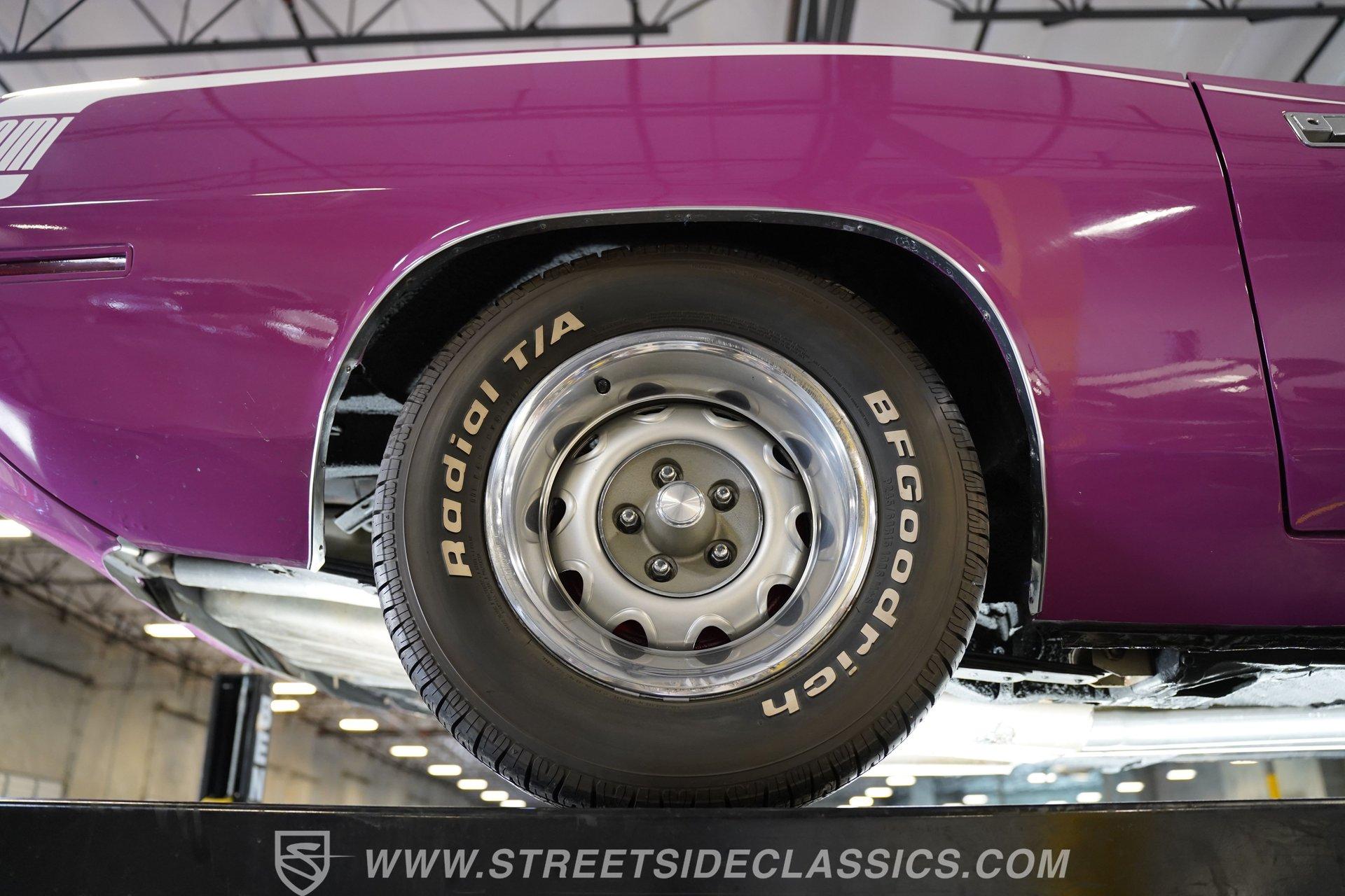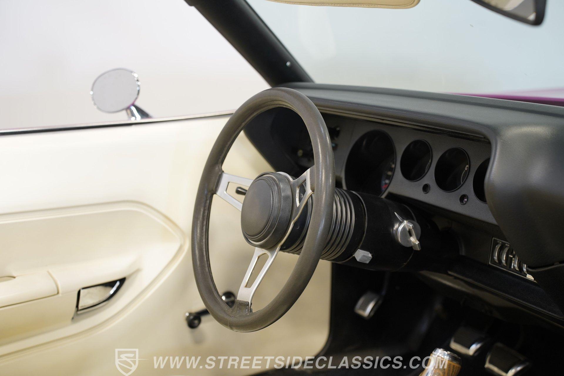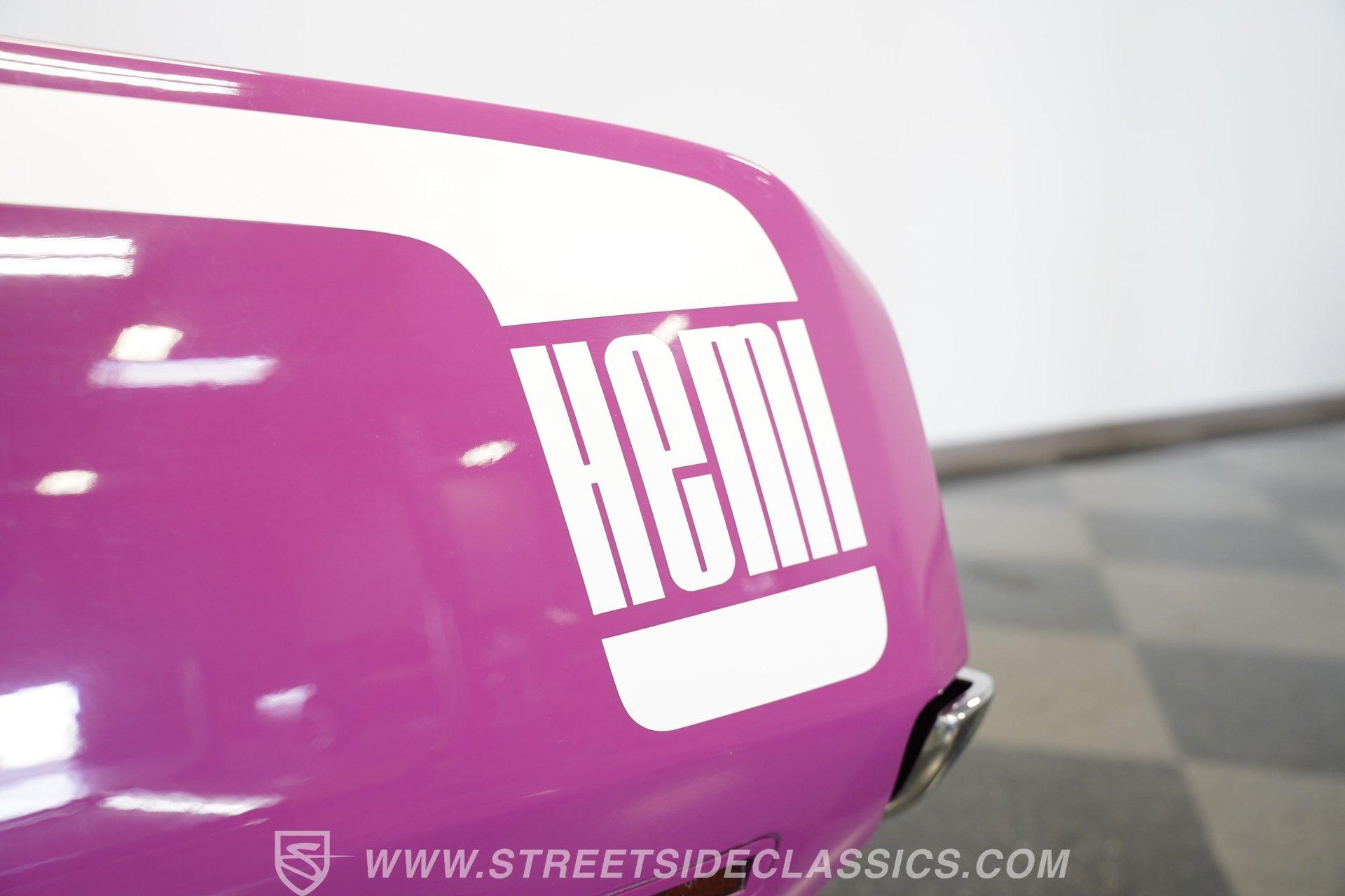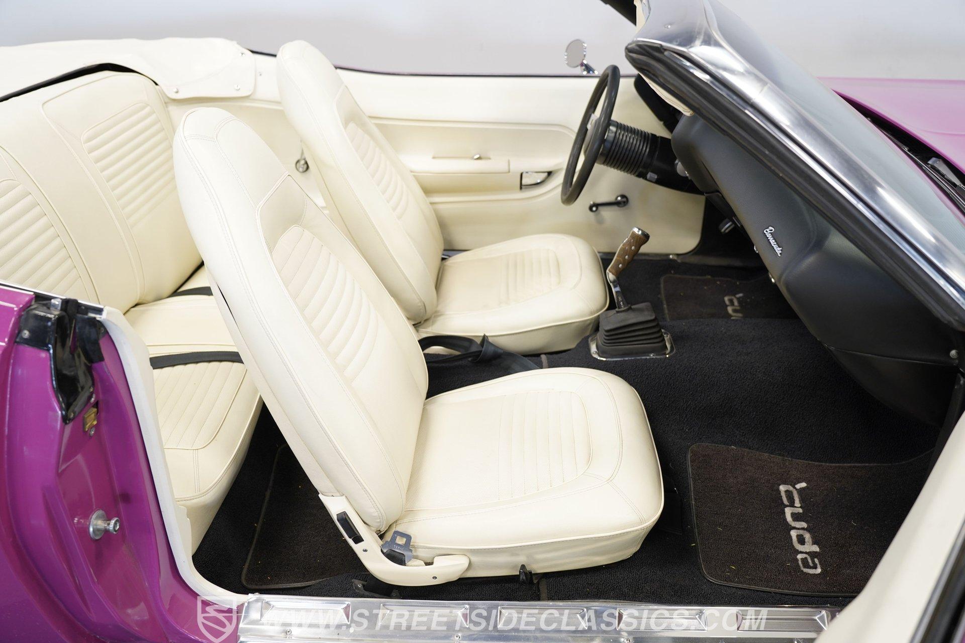 Experience the thrill and nostalgia of American muscle with this stunning 1970 Plymouth Barracuda Convertible, a true icon of its era. Painted in the rare and striking Moulin Rouge color, this 'Cuda embodies the spirit of the muscle car golden age, turning heads wherever it goes. With its bold white "HEMI" stripe and custom air scoop, it's a machine that commands attention and respect. Owning this convertible is not just about driving; it's about making a statement and creating memories that last a lifetime. This 426 Hemi-powered Barracuda Convertible invites you to embrace the power and style that only a classic muscle car can deliver. Step inside to find a clean, well-preserved interior featuring crisp white vinyl seats up front and a matching rear bench. The door panels complement the seats perfectly, creating a cohesive and stylish cabin. The carpet is in good condition, and the interior retains its factory gauge cluster and original radio, now upgraded with an auxiliary input for modern convenience. A floor-mounted shifter and "Cuda" floor mats add to the authentic muscle car ambiance, making every drive both comfortable and exhilarating. Under the hood, this Barracuda roars with a 426 Hemi V8 engine, paired with an Edelbrock single 4-barrel carburetor on an aluminum Mopar intake manifold. The power is delivered through a 4-speed #matching A833 manual transmission, providing a true hands-on driving experience. Equipped with an 8 3/4 rear axle featuring a 3.23 sure grip differential, it offers excellent traction and control. Front disc brakes and power steering enhance the handling, while the BFG Radial T/A tires ensure a smooth and confident ride. Highlights: 1970 Plymouth Barracuda Convertible Moulin Rouge Single-Year Color 426 Hemi V8 Engine Edelbrock Single 4-Barrel Carburetor Aluminum Mopar Intake Manifold 4-Speed A833 Manual Transmission Numbers-Matching 318 Engine with the sale 8 3/4 Rear Axle with 3.23 Sure Grip Front Disc and Rear Drum Brakes Power Steering White Vinyl Interior Auxiliary Input with AM/FM Radio Manual Convertible Top Full Repaint with Original Body Panels 5,013 Actual Miles Since Rebuild Financing Available Vehicle Protection Plans Available Worldwide Shipping This 1970 Plymouth Barracuda Convertible is a fantastic opportunity to own a rare and powerful muscle car that combines classic style with impressive performance. Don't miss your chance to make this iconic 'Cuda yours. Call, email, or come visit our showroom today!