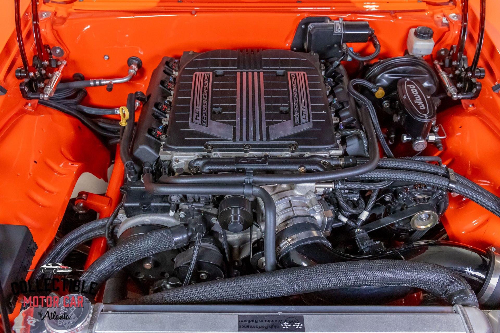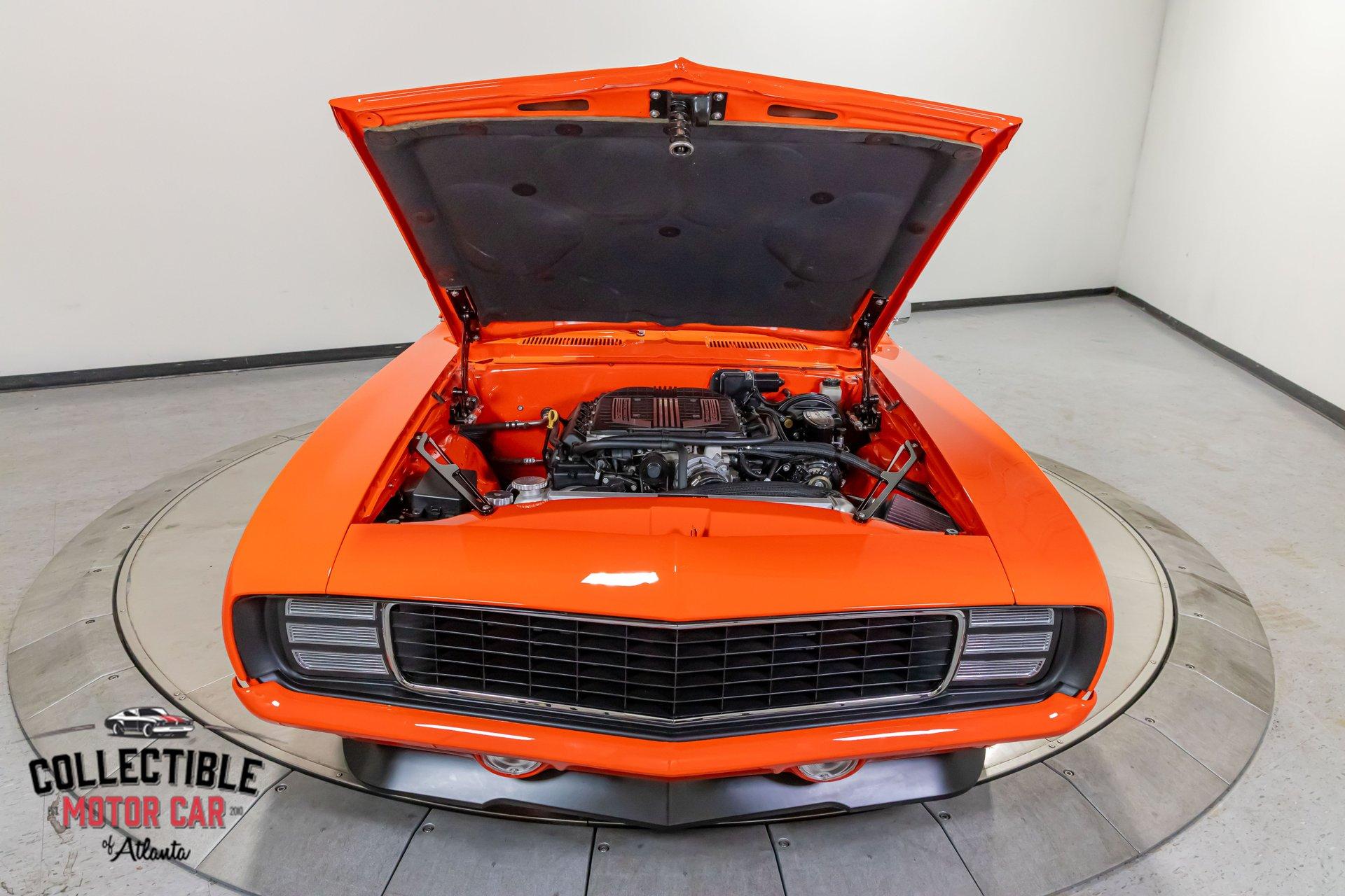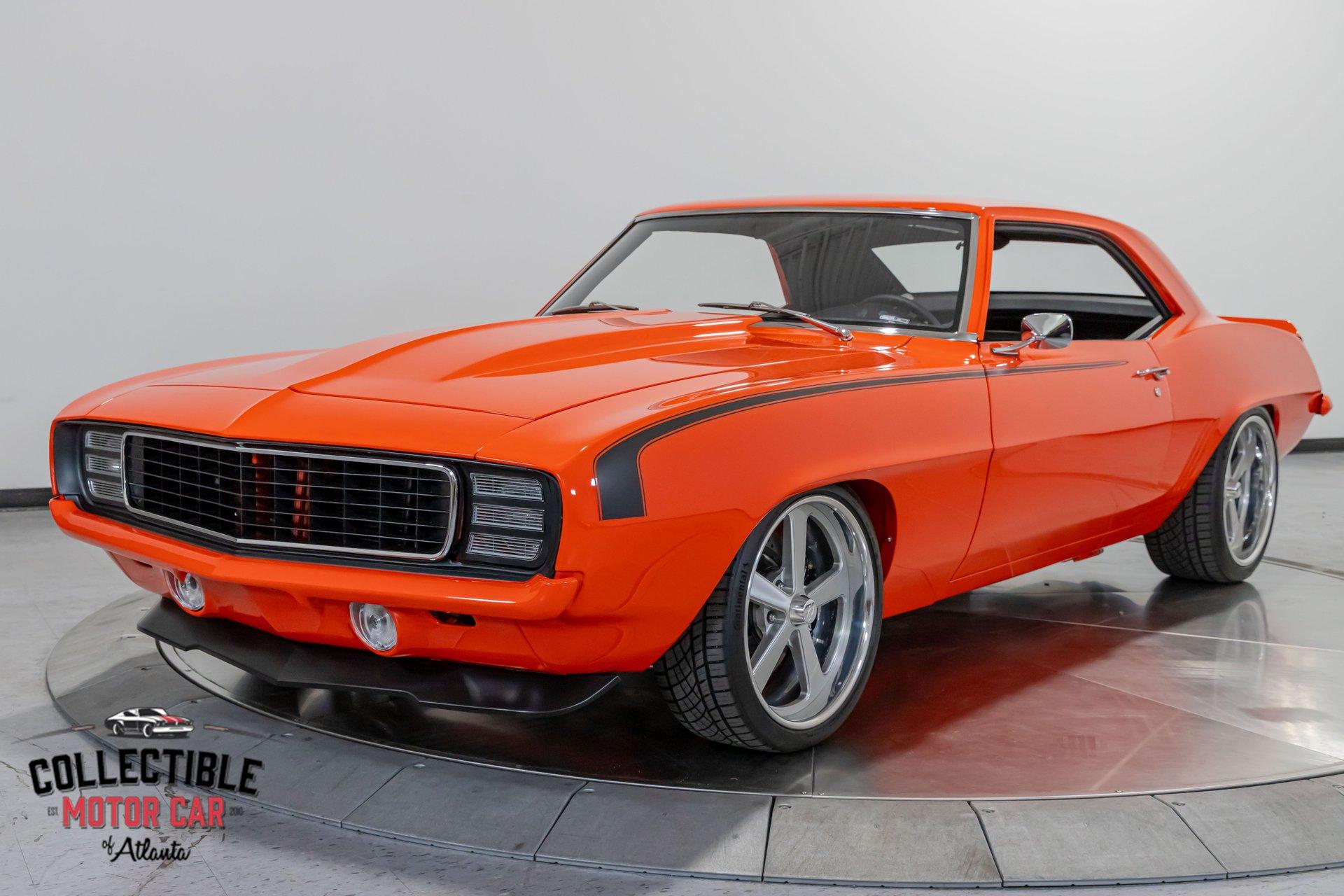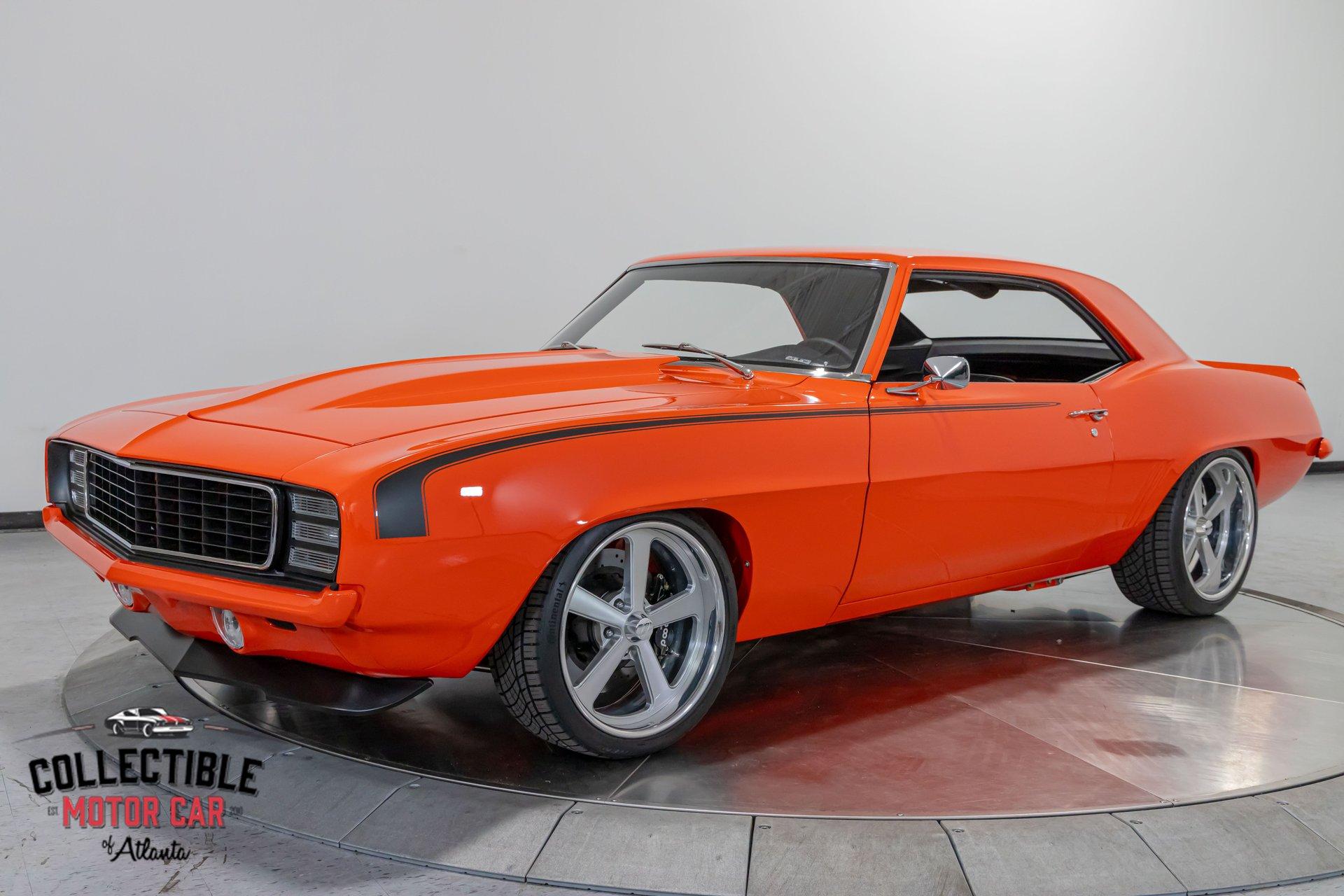 ? 1969 Chevrolet Camaro Restomod – LT4-Powered, No-Expense-Spared Masterpiece ? Offered by Collectible Motorcar of Atlanta Introducing one of the most exceptional first-gen Camaros to hit the market — a nine-year, no-expense-spared build that merges timeless design with cutting-edge performance. Beneath its iconic Hugger Orange finish lies a supercharged LT4 crate engine, a Tremec Magnum 6-speed, and a custom chassis engineered for total domination. This is not just a restomod. This is a statement. ? Power Meets Precision Under the hood is a Chevrolet Performance LT4 crate engine — the same supercharged monster found in the C7 Z06 — producing a jaw-dropping 650 horsepower and 650 lb-ft of torque. 6.2L Supercharged LT4 V8 (10:1 compression, Eaton TVS 1.7L blower) GM Rotocast heads with titanium valves Drive Junky serpentine system DeWitts radiator, SPAL fans, C&R heat exchanger Custom large-diameter exhaust with X-pipe and turbo mufflers Billet detailing and color-keyed closeout panel The LT4 feeds into a Tremec T56 Magnum 6-speed manual, connected to a 9-inch rear axle via a Coleman Racing aluminum driveshaft, ensuring this car can put every bit of power to the pavement reliably and confidently. ? Engineered to Handle This Camaro isn’t just fast — it’s surgically sharp: TCI tubular front clip (120 lbs lighter than stock) 4-link rear suspension QA1 adjustable coilovers front and rear Wilwood 4-wheel power disc brakes (6-piston front, 4-piston rear) Power rack-and-pinion steering Rick’s stainless fuel tank with Aeromotive pump 19” Intro wheels wrapped in BFGoodrich g-Force tires (255/35ZR19 front, 285/35ZR19 rear) The entire chassis is reinforced with TCI subframe connectors, making this F-body feel tight, planted, and modern — while retaining the aggressive, analog feel you crave. ? Luxury Meets Legacy Inside, the cabin is a masterclass in custom craftsmanship and modern convenience. Wrapped in premium leather and LED ambient lighting, every surface has been thoughtfully executed: Custom fiberglass dash and console Touchscreen Bluetooth JVC head unit Vintage Air with automatic climate control Push-button start, tilt column, billet steering wheel Power windows, power door locks, keyless entry JBL processor, dual Kicker amps, multiple Kicker speakers Custom headliner, sills, foot pedals, and an integrated backup camera This interior isn’t just built for the driver — it’s a full sensory experience, combining show-car detail with daily-driver usability. ? Final Details Hugger Orange two-stage paint with black hockey stripes Shaved bumpers, billet lights, and Detroit Speed RS headlight system Seamless roll pan, painted drip rails, and cowl hood All vehicles from Collectible Motorcar of Atlanta receive a comprehensive, multi-point inspection We can arrange shipment of your purchase anywhere in the world ? Why This Car? Owning a classic Camaro is special. Owning one that’s been built to this standard, with a modern LT4 heart, a race-ready chassis, and a show-stopping interior, puts you in a league of your own. Whether you’re a collector, a weekend warrior, or someone who simply appreciates the best — this is the car that ends the search. ? Call us today at Collectible Motorcar of Atlanta to schedule your private showing or to discuss transportation to your garage. Don’t miss your chance to own one of the most exhilarating, high-end Camaros ever built.