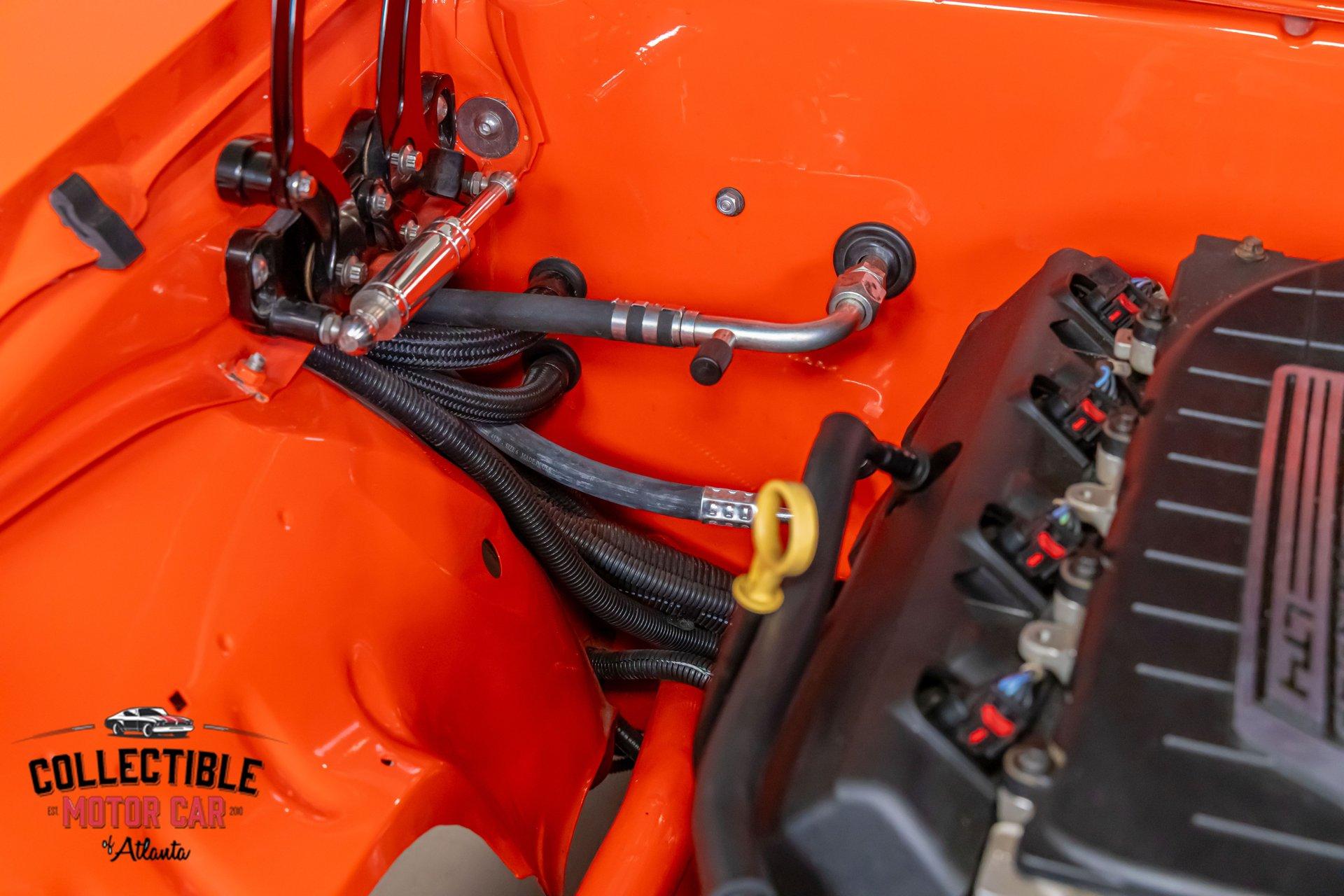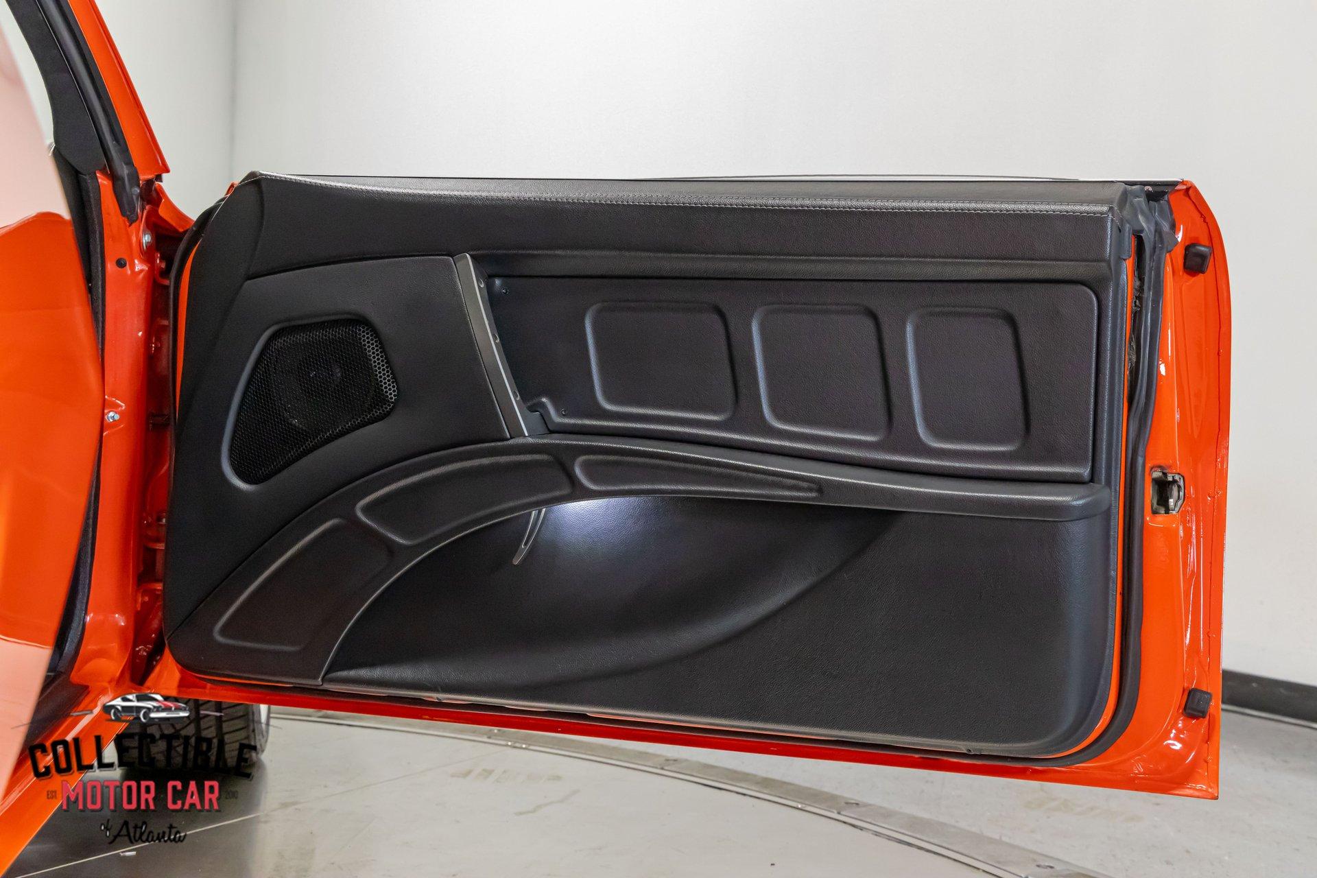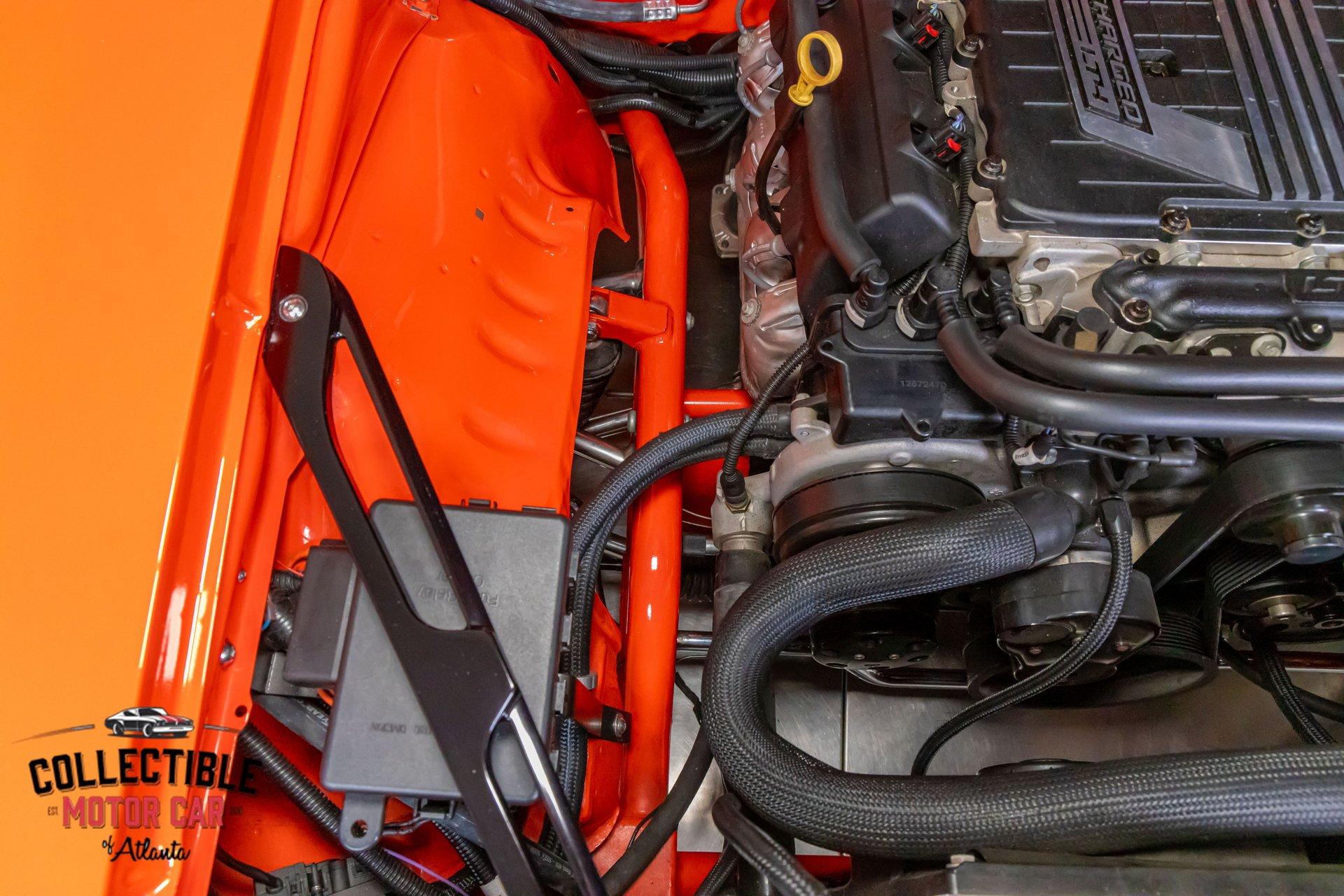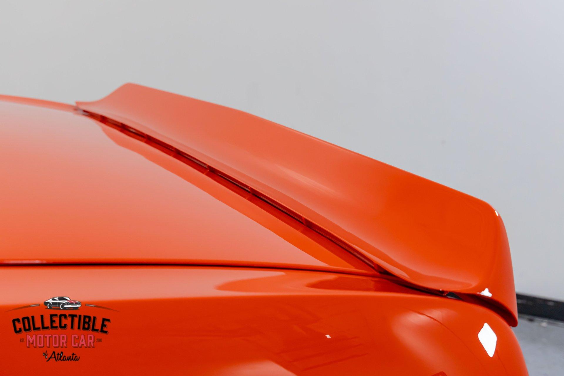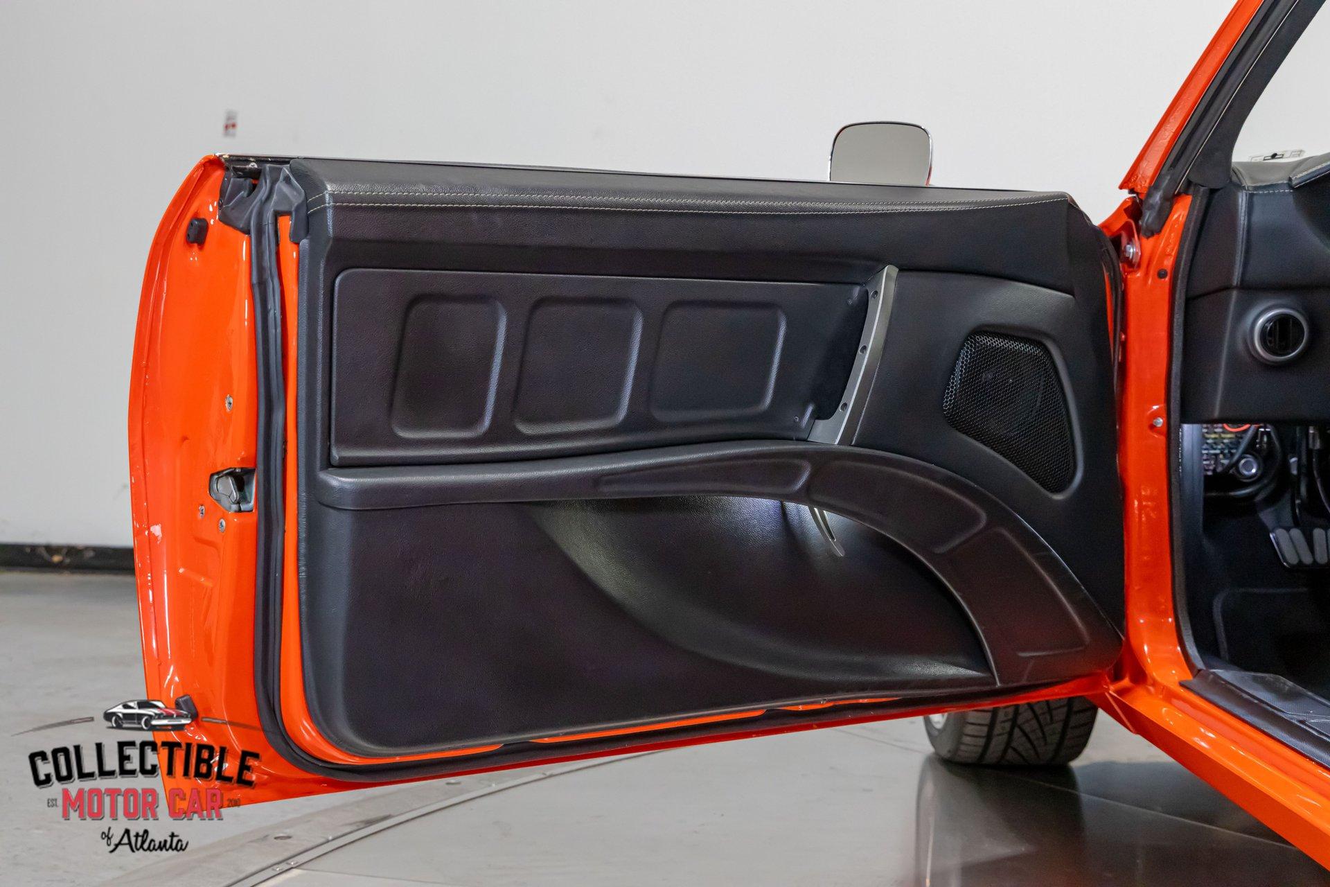 ? 1969 Chevrolet Camaro Restomod – LT4-Powered, No-Expense-Spared Masterpiece ? Offered by Collectible Motorcar of Atlanta Introducing one of the most exceptional first-gen Camaros to hit the market — a nine-year, no-expense-spared build that merges timeless design with cutting-edge performance. Beneath its iconic Hugger Orange finish lies a supercharged LT4 crate engine, a Tremec Magnum 6-speed, and a custom chassis engineered for total domination. This is not just a restomod. This is a statement. ? Power Meets Precision Under the hood is a Chevrolet Performance LT4 crate engine — the same supercharged monster found in the C7 Z06 — producing a jaw-dropping 650 horsepower and 650 lb-ft of torque. 6.2L Supercharged LT4 V8 (10:1 compression, Eaton TVS 1.7L blower) GM Rotocast heads with titanium valves Drive Junky serpentine system DeWitts radiator, SPAL fans, C&R heat exchanger Custom large-diameter exhaust with X-pipe and turbo mufflers Billet detailing and color-keyed closeout panel The LT4 feeds into a Tremec T56 Magnum 6-speed manual, connected to a 9-inch rear axle via a Coleman Racing aluminum driveshaft, ensuring this car can put every bit of power to the pavement reliably and confidently. ? Engineered to Handle This Camaro isn’t just fast — it’s surgically sharp: TCI tubular front clip (120 lbs lighter than stock) 4-link rear suspension QA1 adjustable coilovers front and rear Wilwood 4-wheel power disc brakes (6-piston front, 4-piston rear) Power rack-and-pinion steering Rick’s stainless fuel tank with Aeromotive pump 19” Intro wheels wrapped in BFGoodrich g-Force tires (255/35ZR19 front, 285/35ZR19 rear) The entire chassis is reinforced with TCI subframe connectors, making this F-body feel tight, planted, and modern — while retaining the aggressive, analog feel you crave. ? Luxury Meets Legacy Inside, the cabin is a masterclass in custom craftsmanship and modern convenience. Wrapped in premium leather and LED ambient lighting, every surface has been thoughtfully executed: Custom fiberglass dash and console Touchscreen Bluetooth JVC head unit Vintage Air with automatic climate control Push-button start, tilt column, billet steering wheel Power windows, power door locks, keyless entry JBL processor, dual Kicker amps, multiple Kicker speakers Custom headliner, sills, foot pedals, and an integrated backup camera This interior isn’t just built for the driver — it’s a full sensory experience, combining show-car detail with daily-driver usability. ? Final Details Hugger Orange two-stage paint with black hockey stripes Shaved bumpers, billet lights, and Detroit Speed RS headlight system Seamless roll pan, painted drip rails, and cowl hood All vehicles from Collectible Motorcar of Atlanta receive a comprehensive, multi-point inspection We can arrange shipment of your purchase anywhere in the world ? Why This Car? Owning a classic Camaro is special. Owning one that’s been built to this standard, with a modern LT4 heart, a race-ready chassis, and a show-stopping interior, puts you in a league of your own. Whether you’re a collector, a weekend warrior, or someone who simply appreciates the best — this is the car that ends the search. ? Call us today at Collectible Motorcar of Atlanta to schedule your private showing or to discuss transportation to your garage. Don’t miss your chance to own one of the most exhilarating, high-end Camaros ever built.