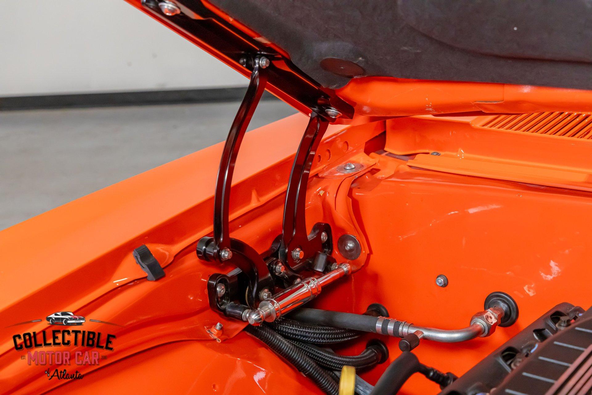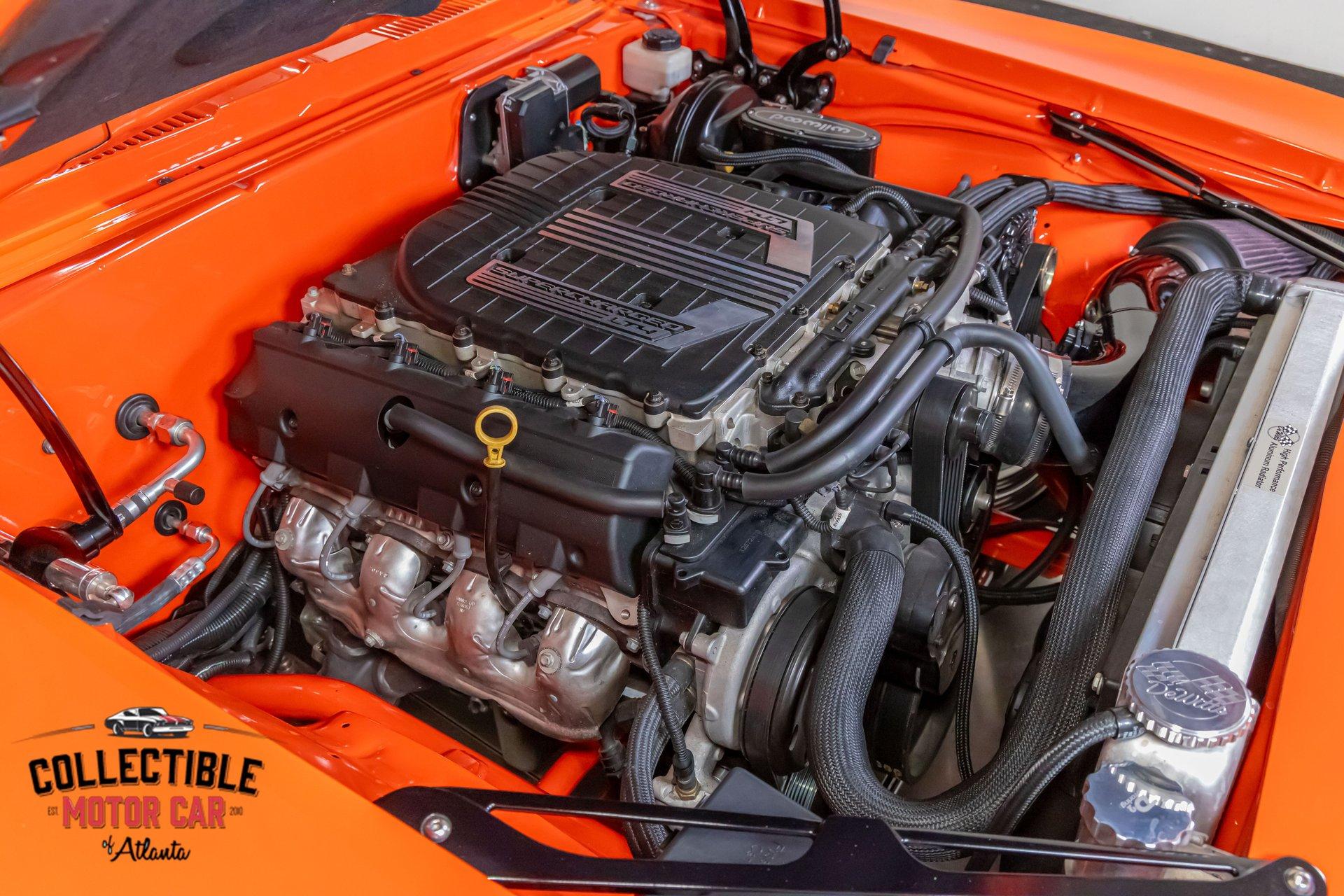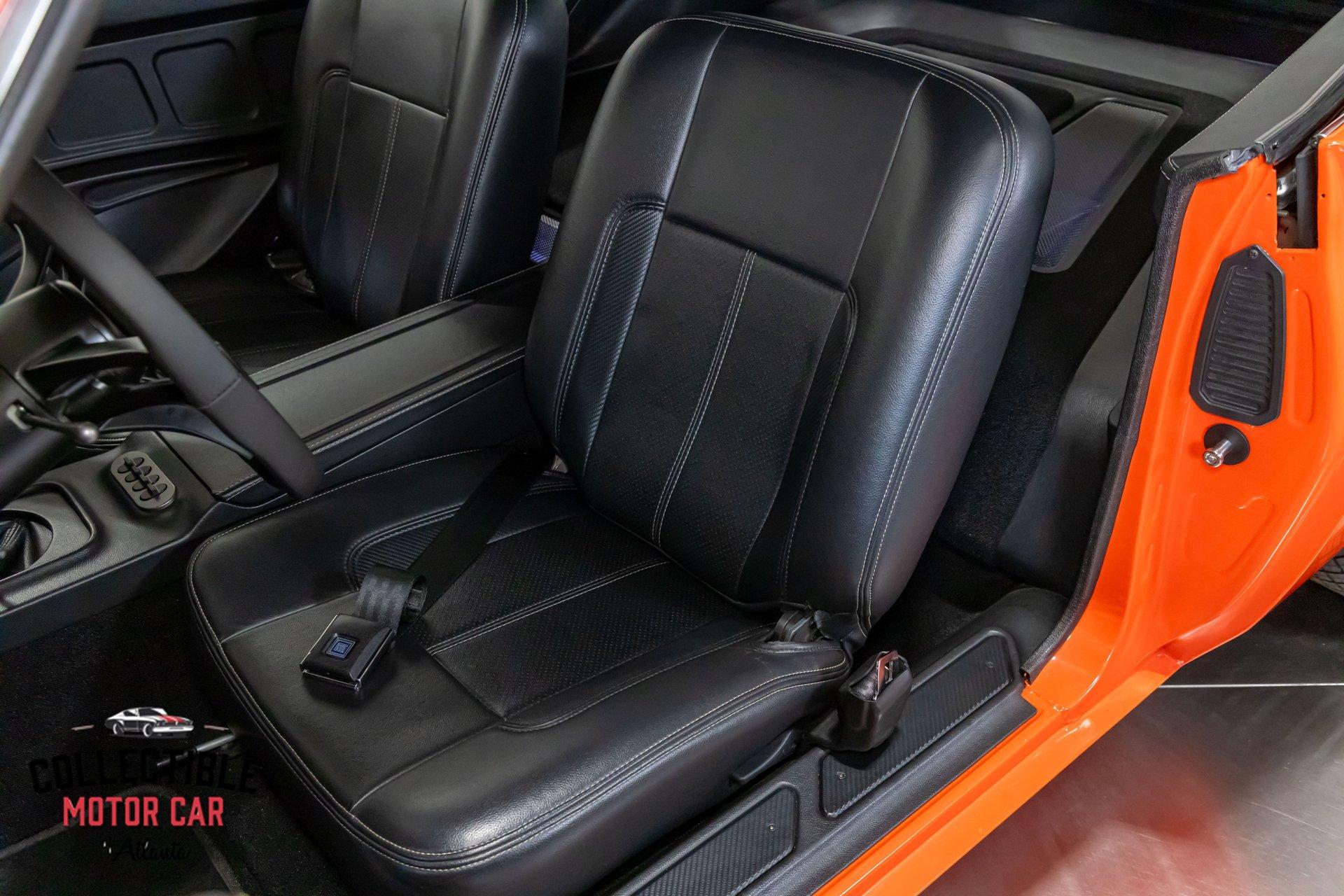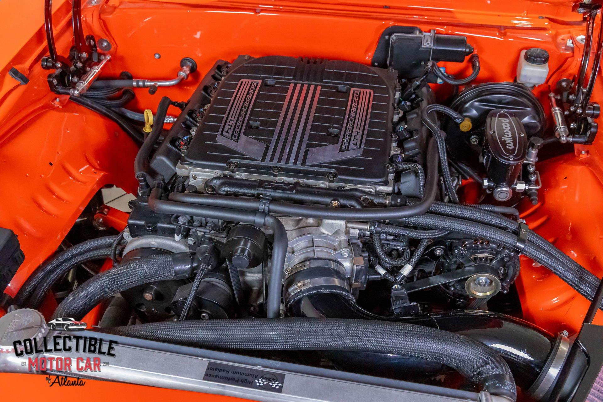 ? 1969 Chevrolet Camaro Restomod – LT4-Powered, No-Expense-Spared Masterpiece ? Offered by Collectible Motorcar of Atlanta Introducing one of the most exceptional first-gen Camaros to hit the market — a nine-year, no-expense-spared build that merges timeless design with cutting-edge performance. Beneath its iconic Hugger Orange finish lies a supercharged LT4 crate engine, a Tremec Magnum 6-speed, and a custom chassis engineered for total domination. This is not just a restomod. This is a statement. ? Power Meets Precision Under the hood is a Chevrolet Performance LT4 crate engine — the same supercharged monster found in the C7 Z06 — producing a jaw-dropping 650 horsepower and 650 lb-ft of torque. 6.2L Supercharged LT4 V8 (10:1 compression, Eaton TVS 1.7L blower) GM Rotocast heads with titanium valves Drive Junky serpentine system DeWitts radiator, SPAL fans, C&R heat exchanger Custom large-diameter exhaust with X-pipe and turbo mufflers Billet detailing and color-keyed closeout panel The LT4 feeds into a Tremec T56 Magnum 6-speed manual, connected to a 9-inch rear axle via a Coleman Racing aluminum driveshaft, ensuring this car can put every bit of power to the pavement reliably and confidently. ? Engineered to Handle This Camaro isn’t just fast — it’s surgically sharp: TCI tubular front clip (120 lbs lighter than stock) 4-link rear suspension QA1 adjustable coilovers front and rear Wilwood 4-wheel power disc brakes (6-piston front, 4-piston rear) Power rack-and-pinion steering Rick’s stainless fuel tank with Aeromotive pump 19” Intro wheels wrapped in BFGoodrich g-Force tires (255/35ZR19 front, 285/35ZR19 rear) The entire chassis is reinforced with TCI subframe connectors, making this F-body feel tight, planted, and modern — while retaining the aggressive, analog feel you crave. ? Luxury Meets Legacy Inside, the cabin is a masterclass in custom craftsmanship and modern convenience. Wrapped in premium leather and LED ambient lighting, every surface has been thoughtfully executed: Custom fiberglass dash and console Touchscreen Bluetooth JVC head unit Vintage Air with automatic climate control Push-button start, tilt column, billet steering wheel Power windows, power door locks, keyless entry JBL processor, dual Kicker amps, multiple Kicker speakers Custom headliner, sills, foot pedals, and an integrated backup camera This interior isn’t just built for the driver — it’s a full sensory experience, combining show-car detail with daily-driver usability. ? Final Details Hugger Orange two-stage paint with black hockey stripes Shaved bumpers, billet lights, and Detroit Speed RS headlight system Seamless roll pan, painted drip rails, and cowl hood All vehicles from Collectible Motorcar of Atlanta receive a comprehensive, multi-point inspection We can arrange shipment of your purchase anywhere in the world ? Why This Car? Owning a classic Camaro is special. Owning one that’s been built to this standard, with a modern LT4 heart, a race-ready chassis, and a show-stopping interior, puts you in a league of your own. Whether you’re a collector, a weekend warrior, or someone who simply appreciates the best — this is the car that ends the search. ? Call us today at Collectible Motorcar of Atlanta to schedule your private showing or to discuss transportation to your garage. Don’t miss your chance to own one of the most exhilarating, high-end Camaros ever built.