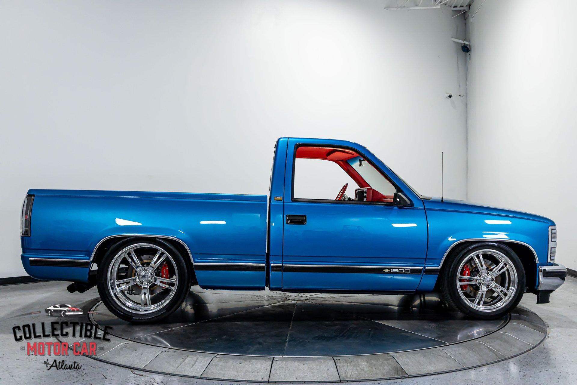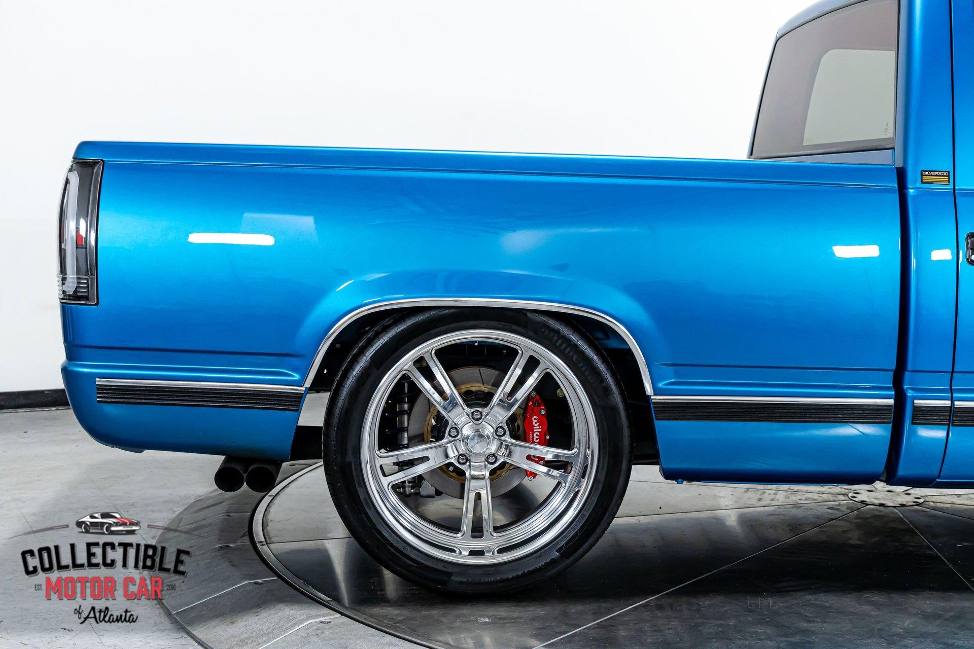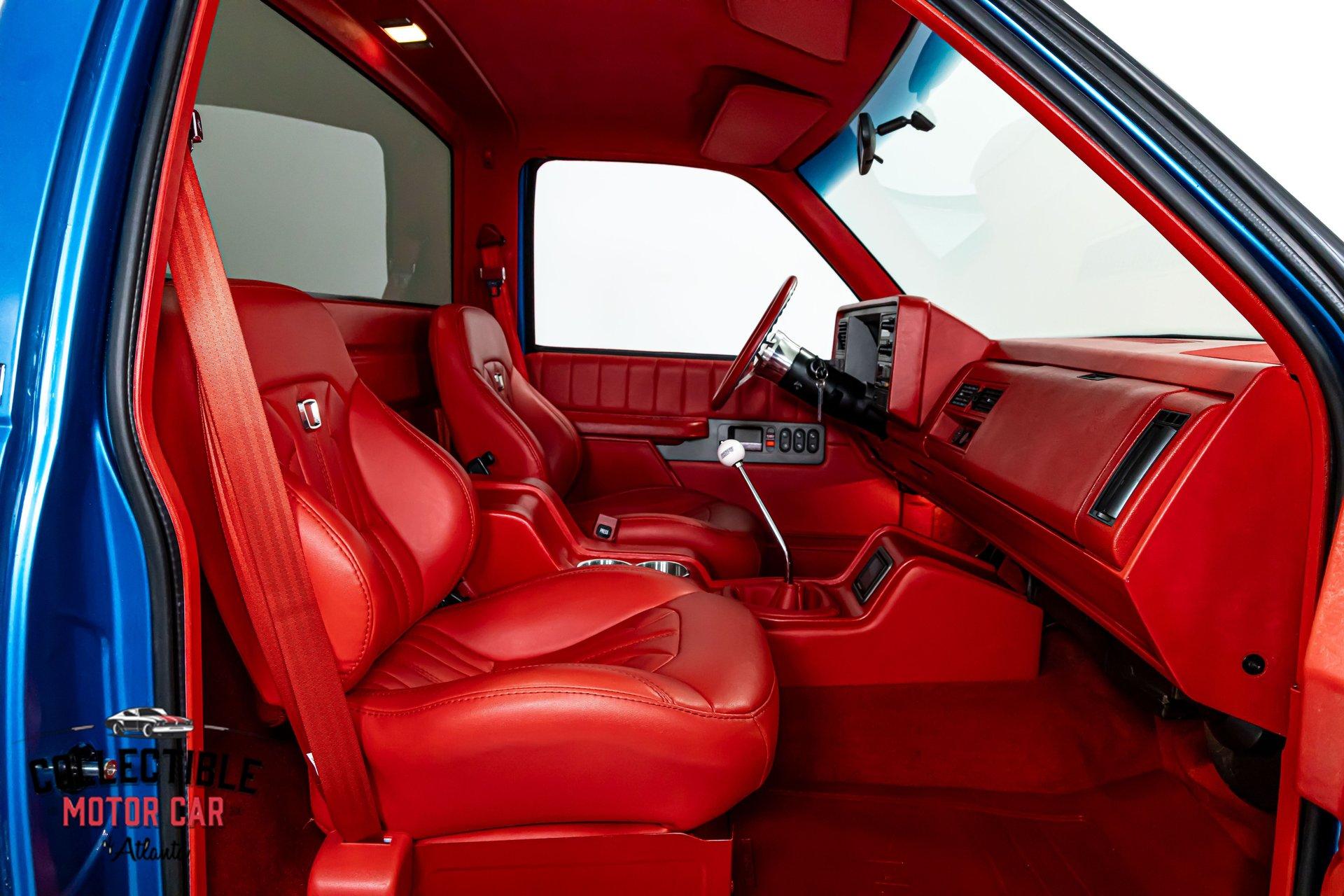 1992 Chevrolet C1500 Restomod – $120k Frame-Off Build, Only 700 Miles This is far more than a simple LS swap—it’s a complete frame-off, no-expense-spared build with over $120,000 invested. Every inch of this truck has been professionally crafted, powder-coated, and upgraded to the highest standard. With only 700 miles since completion, this C1500 presents like a brand-new custom build. Performance & Drivetrain 6.2L LSA Supercharged V8 Air-to-water intercooler mounted beneath the bumper, fed by a custom airdam cut-out and boxed section forcing airflow directly through the core T56 6-Speed Manual Transmission 11-inch “High Grab” clutch, rated for 750+ horsepower Full Holley fuel system with flex-fuel sensor Holley Terminator X management system LSX Concepts front drive system 3-inch custom exhaust Suspension, Brakes & Wheels Full RideTech coilover suspension 14-inch Wilwood disc brakes on all four corners Narrowed & reinforced rear end, built to handle power Schott wheels – 20” front / 22” rear Interior & Comfort Custom full red leather interior with bucket seats Dakota Digital dash Power windows & power locks Ice-cold air conditioning Build Quality Everything underneath professionally powder-coated Absolutely everything is new – no reused parts Only 700 miles on the full build This is one of the cleanest, highest-quality OBS builds on the market today—a show truck that drives as good as it looks. If you’re searching for a ’92 C1500 that’s already been built to the highest standard, this is the one. Phone 770-738-7111 Address 1750 Enterprise Way Suite 109Marietta, GA 30067 Hours of Operation Monday- Friday - 9-5pm Saturday - 9-3pm (Appointment only) Sunday - Closed