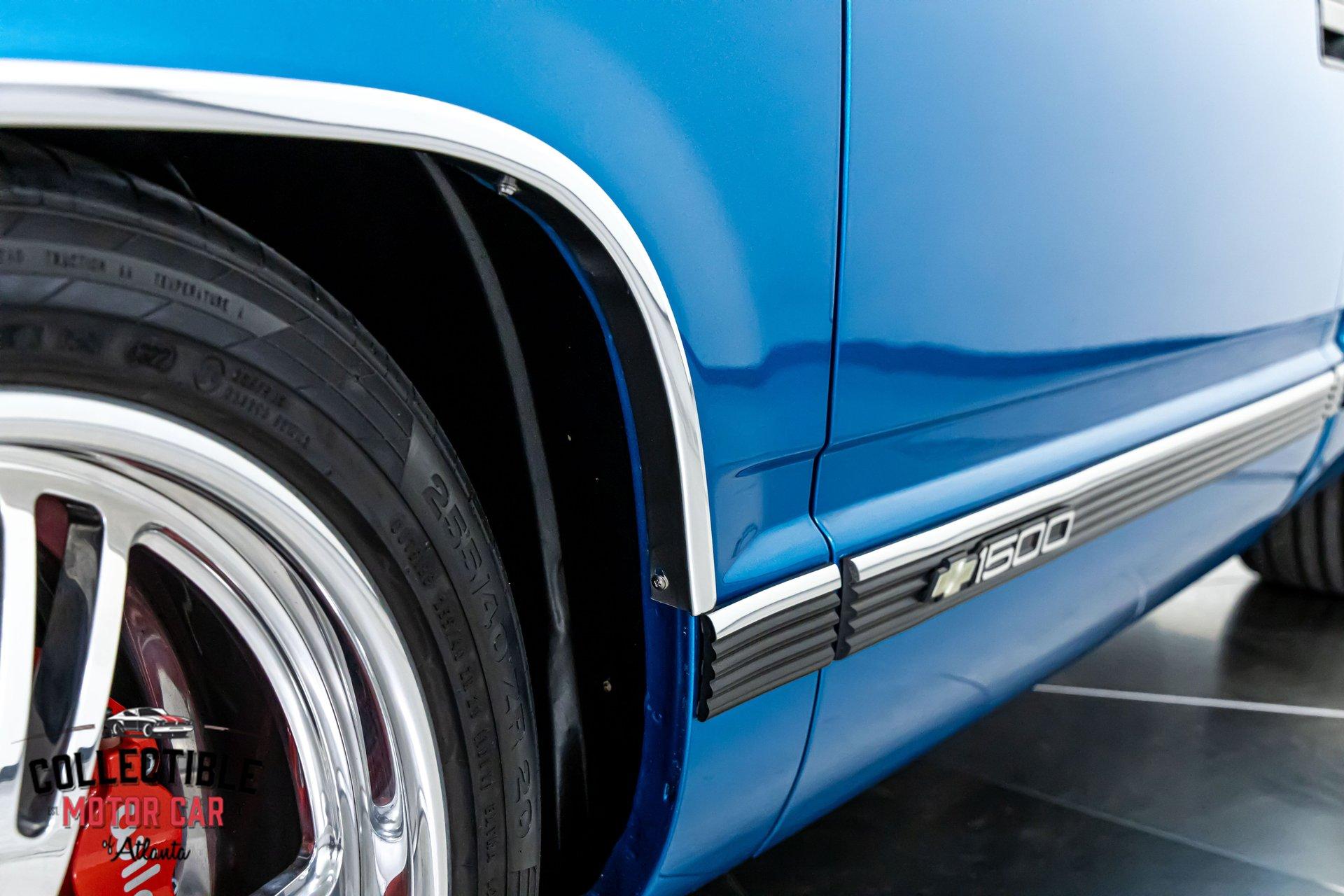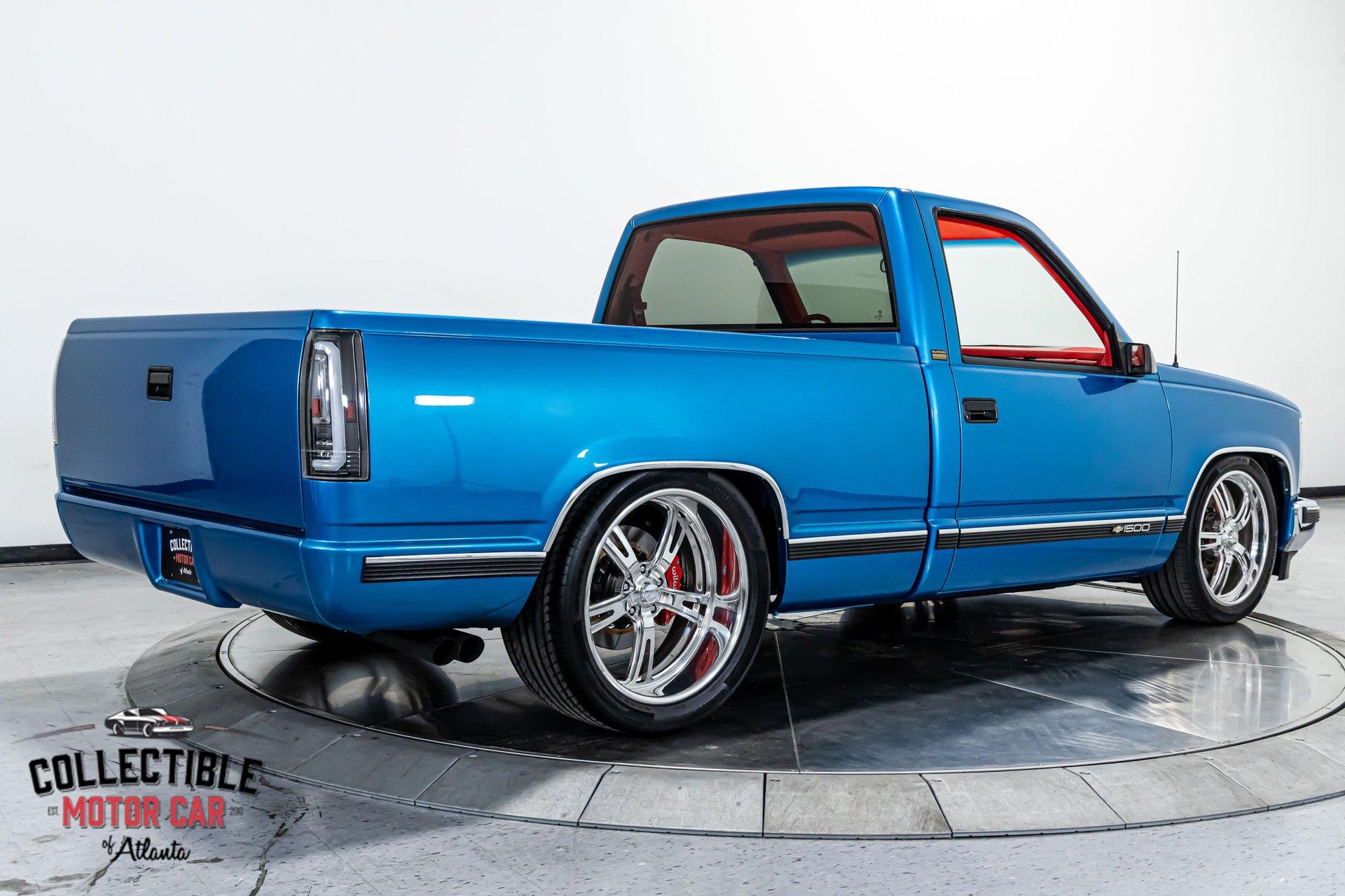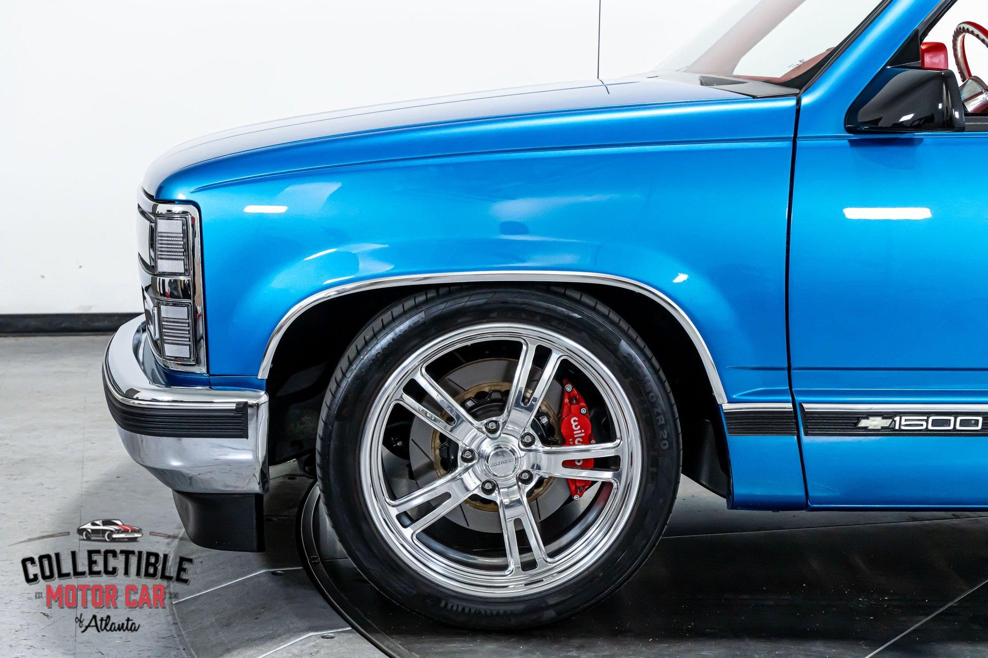 1992 Chevrolet C1500 Restomod – $120k Frame-Off Build, Only 700 Miles This is far more than a simple LS swap—it’s a complete frame-off, no-expense-spared build with over $120,000 invested. Every inch of this truck has been professionally crafted, powder-coated, and upgraded to the highest standard. With only 700 miles since completion, this C1500 presents like a brand-new custom build. Performance & Drivetrain 6.2L LSA Supercharged V8 Air-to-water intercooler mounted beneath the bumper, fed by a custom airdam cut-out and boxed section forcing airflow directly through the core T56 6-Speed Manual Transmission 11-inch “High Grab” clutch, rated for 750+ horsepower Full Holley fuel system with flex-fuel sensor Holley Terminator X management system LSX Concepts front drive system 3-inch custom exhaust Suspension, Brakes & Wheels Full RideTech coilover suspension 14-inch Wilwood disc brakes on all four corners Narrowed & reinforced rear end, built to handle power Schott wheels – 20” front / 22” rear Interior & Comfort Custom full red leather interior with bucket seats Dakota Digital dash Power windows & power locks Ice-cold air conditioning Build Quality Everything underneath professionally powder-coated Absolutely everything is new – no reused parts Only 700 miles on the full build This is one of the cleanest, highest-quality OBS builds on the market today—a show truck that drives as good as it looks. If you’re searching for a ’92 C1500 that’s already been built to the highest standard, this is the one. Phone 770-738-7111 Address 1750 Enterprise Way Suite 109Marietta, GA 30067 Hours of Operation Monday- Friday - 9-5pm Saturday - 9-3pm (Appointment only) Sunday - Closed