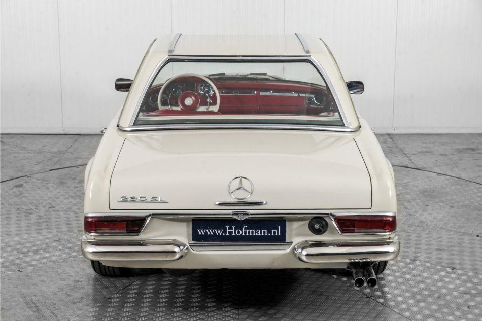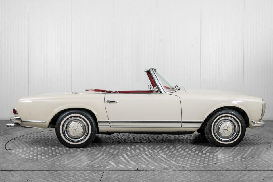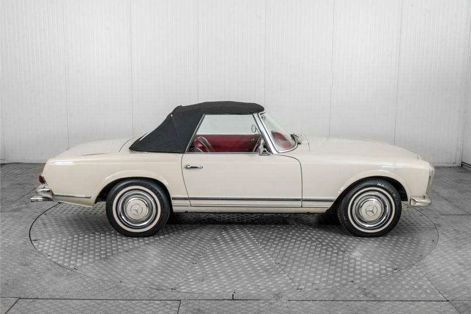 The 1964 Mercedes-Benz 230 SL is the earliest and lightest variant of the iconic W113 SL series, which was in production from 1963 to 1967. Known by its nickname 'Pagoda', this SL is loved for its timeless design and excellent driving performance. Later variants such as the 250 SL and 280 SL followed with a larger displacement, but the 230 SL remains one of the purest versions of this series. This particular example is finished in ivory white with an elegant red leather interior, and is powered by a 2.3-litre six-cylinder inline engine. The car features both a soft top and a hard top, with the hard top having its famous 'Pagoda' roofline. The car also features 14-inch steel wheels with matching hubcaps, giving it a stylish and original look. The car was delivered new in the Netherlands, complete with classic blue registration plates and the original spare wheel. The previous owner cherished the car for more than 20 years. This Mercedes-Benz 230 SL not only offers elegance, but is also fully ready for regular use. With its manual gearbox and good overall condition, it makes a wonderful addition to any enthusiast or collector looking for a classic convertible with a rich history.