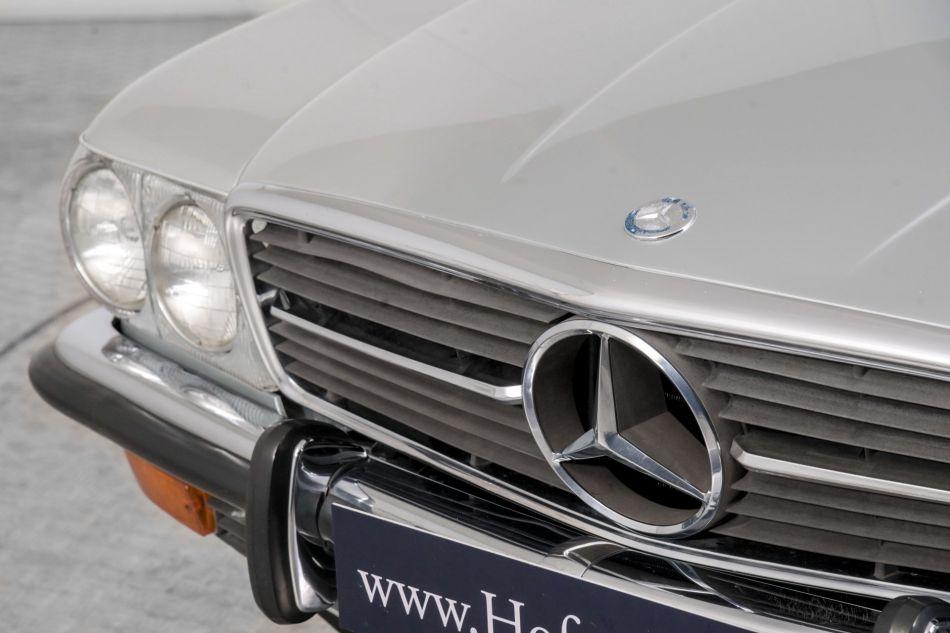 Beautiful Mercedes-Benz 450 SL with the sought-after ''narrow bumpers''. This is a 1973 example with the powerful 4.5 8-cylinder engine which is in a very healthy and great running condition. Originally this car was delivered in the United States and has been imported to Europe in the past. The bodywork is painted in a beautiful elegant silver paint. A beautiful combination with the blue colour of the neat leather interior. This car also comes with the original hard top painted in the body colour. The underside of the car is in a particularly cool and solid condition.