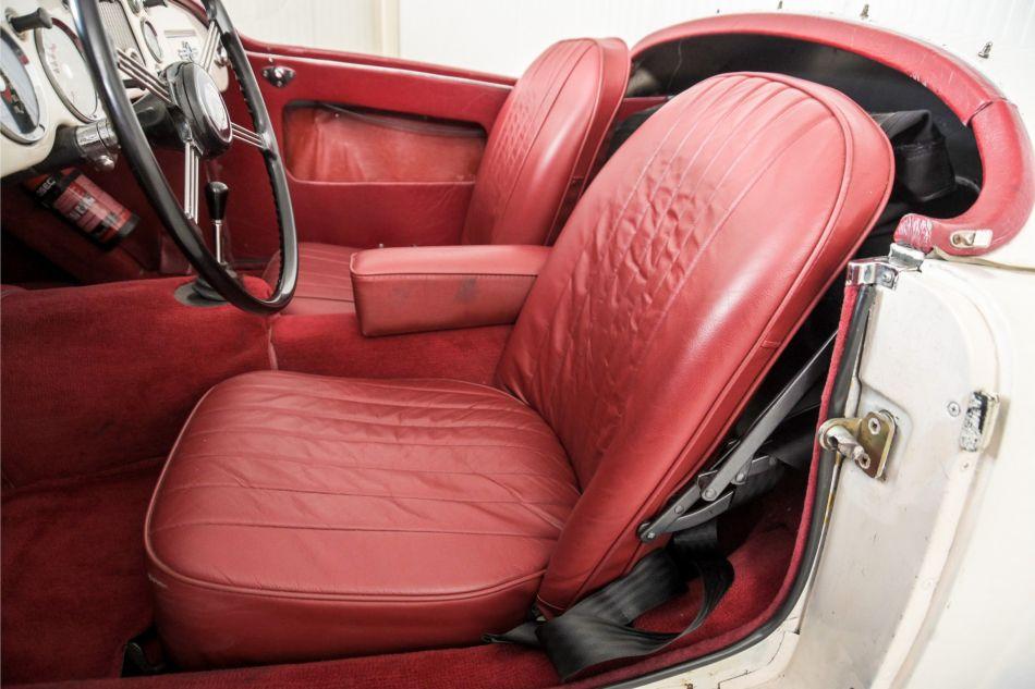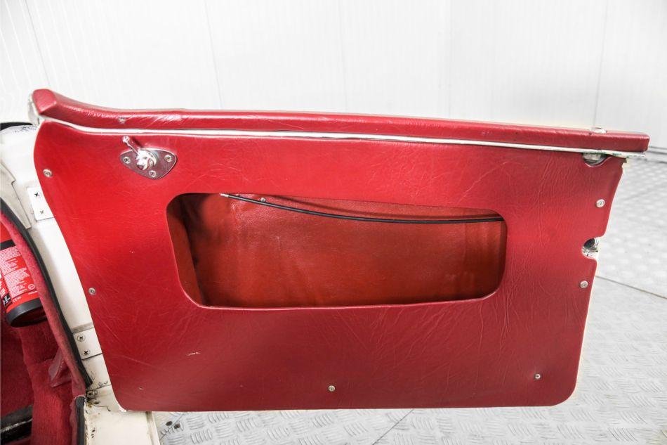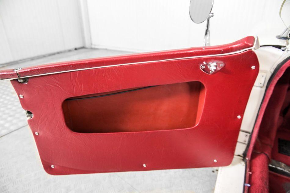 MG MGA Roadster in the colour Old English White! The very sleek body with neat fit looks beautiful in Old English white. The design of the MGA still captures the imagination, a very elegant line with beautiful curves. The original dates back to the early 1950s when MG designer Syd Enever drew a streamlined body for Le Mans driver George Philips. At the time, it was driven with the chassis of an MG T-Type which proved unsuitable and, before the MGA went into production, a completely new chassis was designed. The interior of this example was finished in a distinctive red colour, a nice combination with the white bodywork, the beautiful original clocks in the sleek dashboard completes this car. Technically a delightful classic to drive and, thanks to excellent comfort, extremely suitable for longer journeys. This classic features a 1500 cc engine. At its introduction, this 1489 cc four-cylinder engine produced 68 hp, enabling a top speed of around 155 km/h at the time. Known for its reliability and smooth character, the engine came not only in the open roadster, but also in the coupe version of the MG A. The combination of its light weight, four-speed manual gearbox and lively engine ensures that driving an MG A 1500 is still an enjoyable and authentic experience.