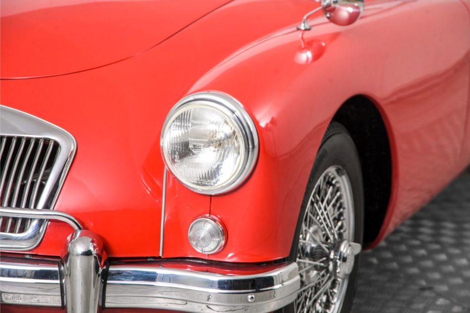 Perfectly restored MGA , trunk rack, wooden steering wheel, chrome wire wheels and leather upholstery.