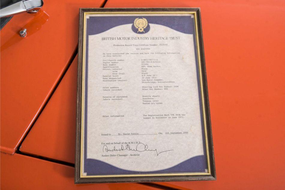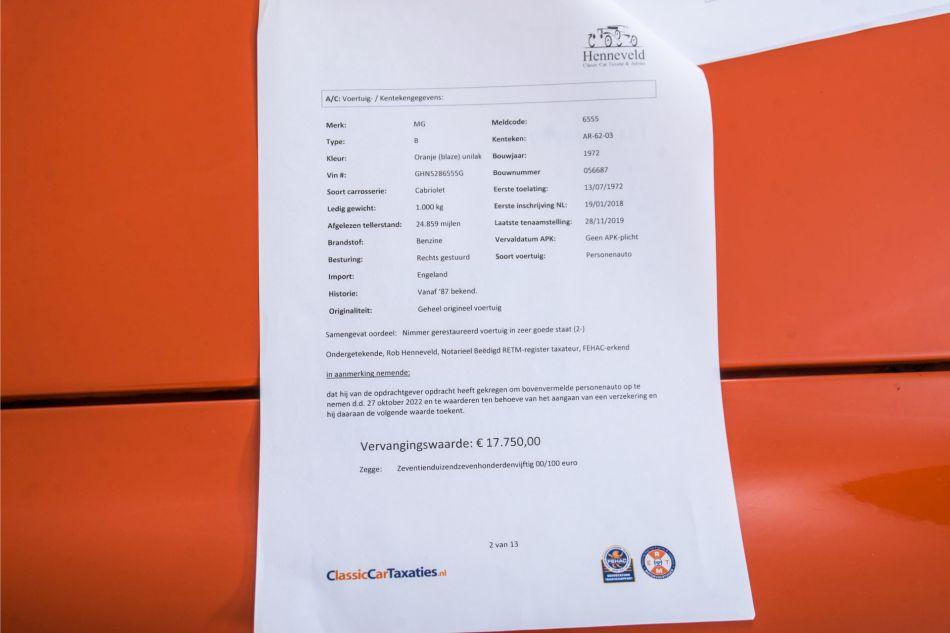In sublime condition MG MGB Roadster from year 1972! This MG was imported by us in the Netherlands from England in 2018 and was in exceptionally good rust-free condition. Maintained in perfect condition by the previous owner here in the Netherlands. The quality of the car is still high, both technically and optically a fantastic classic. The bodywork is finished in the beautiful Blaze colour, has neat paintwork and tight fits. The combination of it all and the beautiful chrome is class. The interior is also in very nice original condition and stylish black ! The technology is nicely up-to-date and the 1800 cc engine runs sublime and has plenty of power. Extra features include overdrive, stainless steel exhaust, aluminium rims, metal dashboard with wood overlay, chrome luggage rack and a beautiful leather steering wheel. A fantastic classic suitable for regular use.