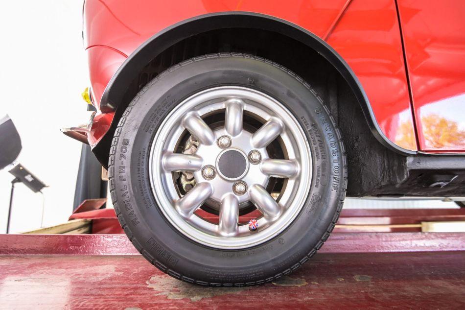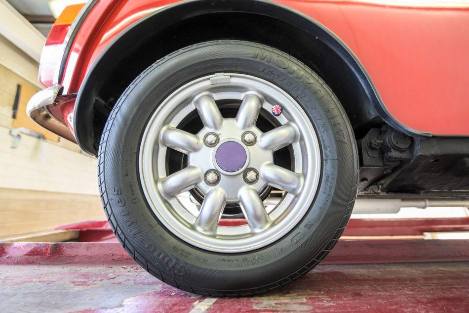 Nice and still original cool 1985 Mini with alloy wheels, wooden steering wheel, tinted glass, retro instrument panel in the centre of the dashboard.