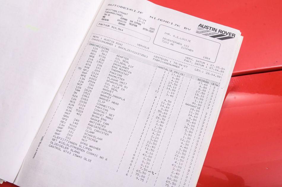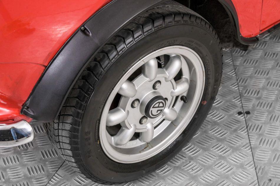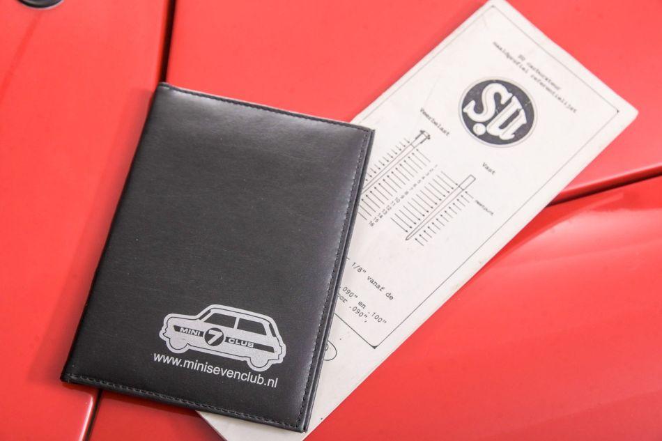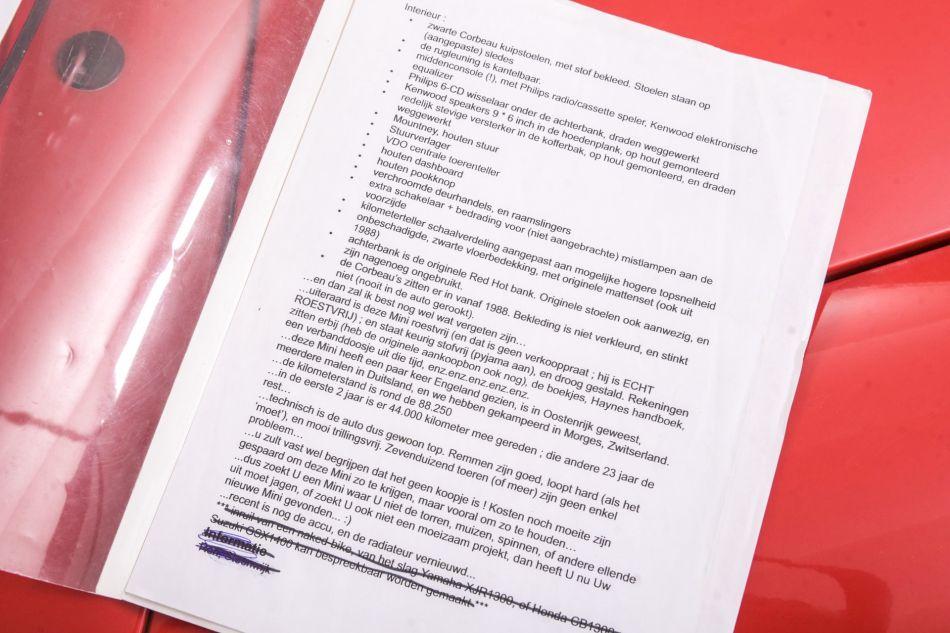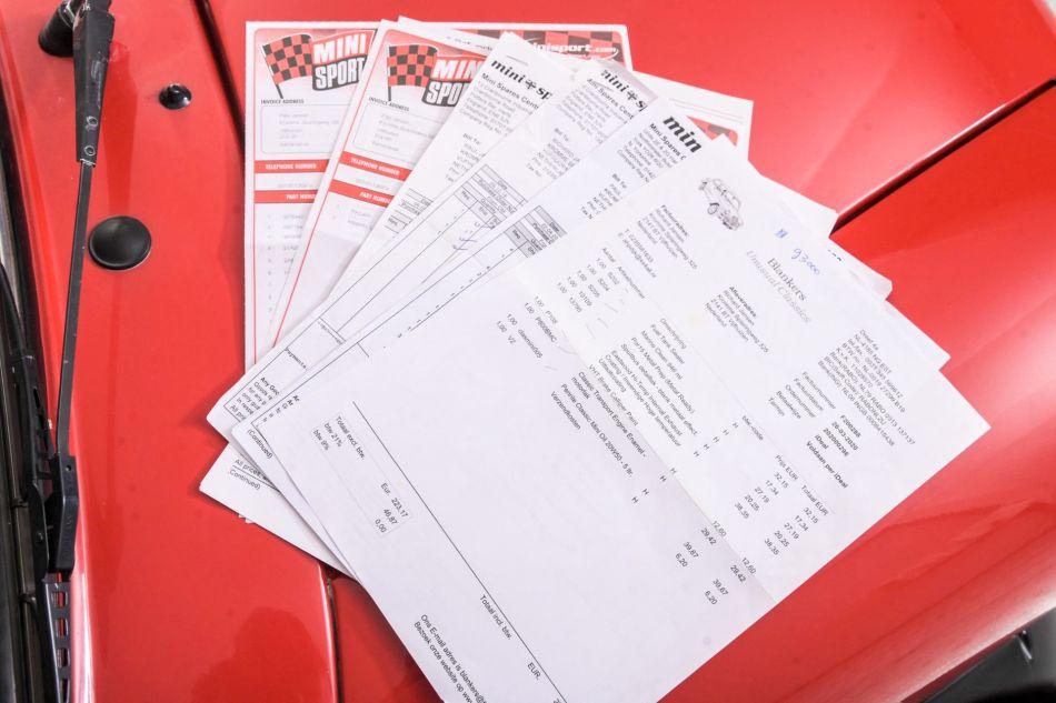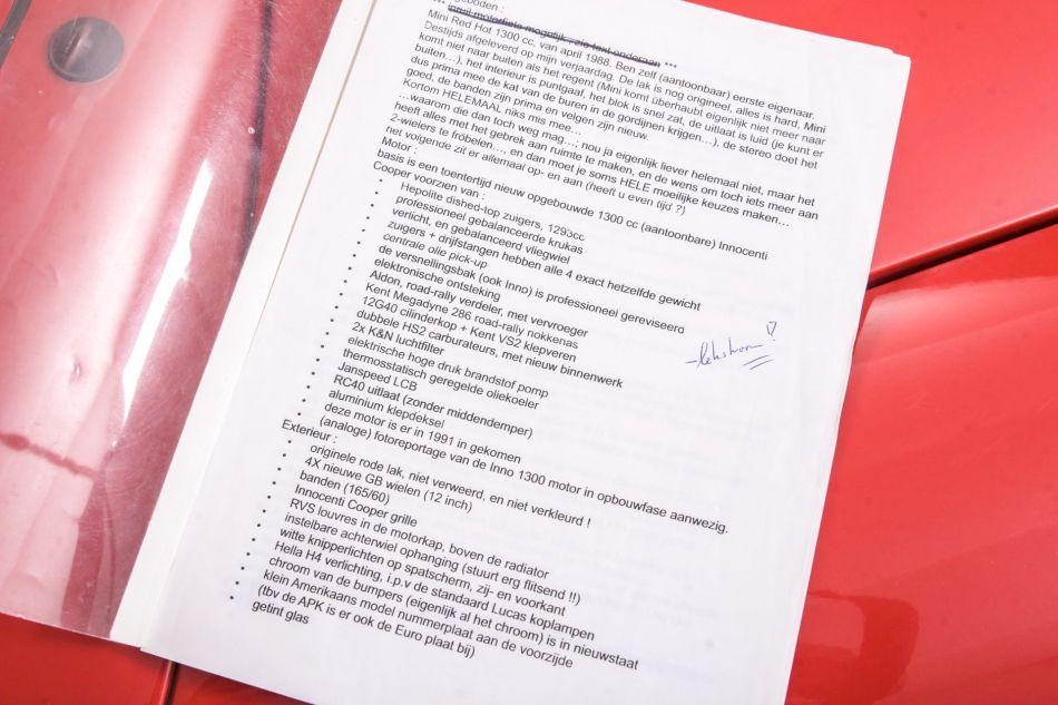 Very neat example from 1988, original MIni Red Hot with full history and rust free bodywork. In this mini was a 998 cc engine, now a very special 1275 cc engine, built with all details and bills to 1292 cc, twin SU carburettors , KN filters, disc brakes etc. Equipped with a nice wooden dashboard, It weighs only 620 kilos. Mini Cooper wheels and wings, sport interior. this model was released in 1959 and built until 2000. Legendary were the Cooper versions that won the Monte Carlo rally 3 times. Included with the car is the full history from new.