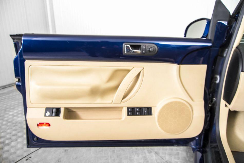 The Volkswagen New Beetle Cabriolet 1.4 Highline is a practical convertible with a dark blue colour and a mileage of 112,000 km. The car features an electric roof, which makes opening and closing easy. It also features electric door mirrors and seat heating, which increase comfort, especially in colder weather, it is great to turn on the seat heating or on a late summer evening to still be able to enjoy the lovely fresh air. The 1.4 petrol engine produces 75 hp, giving the car enough power for everyday use. The car has a 5-speed manual transmission. On average, it consumes about 7.1 litres of fuel per 100 km. The maintenance has been neatly done in recent years and stamped in the booklet and it has a usable boot of around 200 litres. The trim focuses mainly on simplicity and ease of use without elaborate technical gadgets. With no frills, this Volkswagen New Beetle Cabriolet is suitable for people looking for a convertible with basic comfort and the Beetle's familiar beetle look.