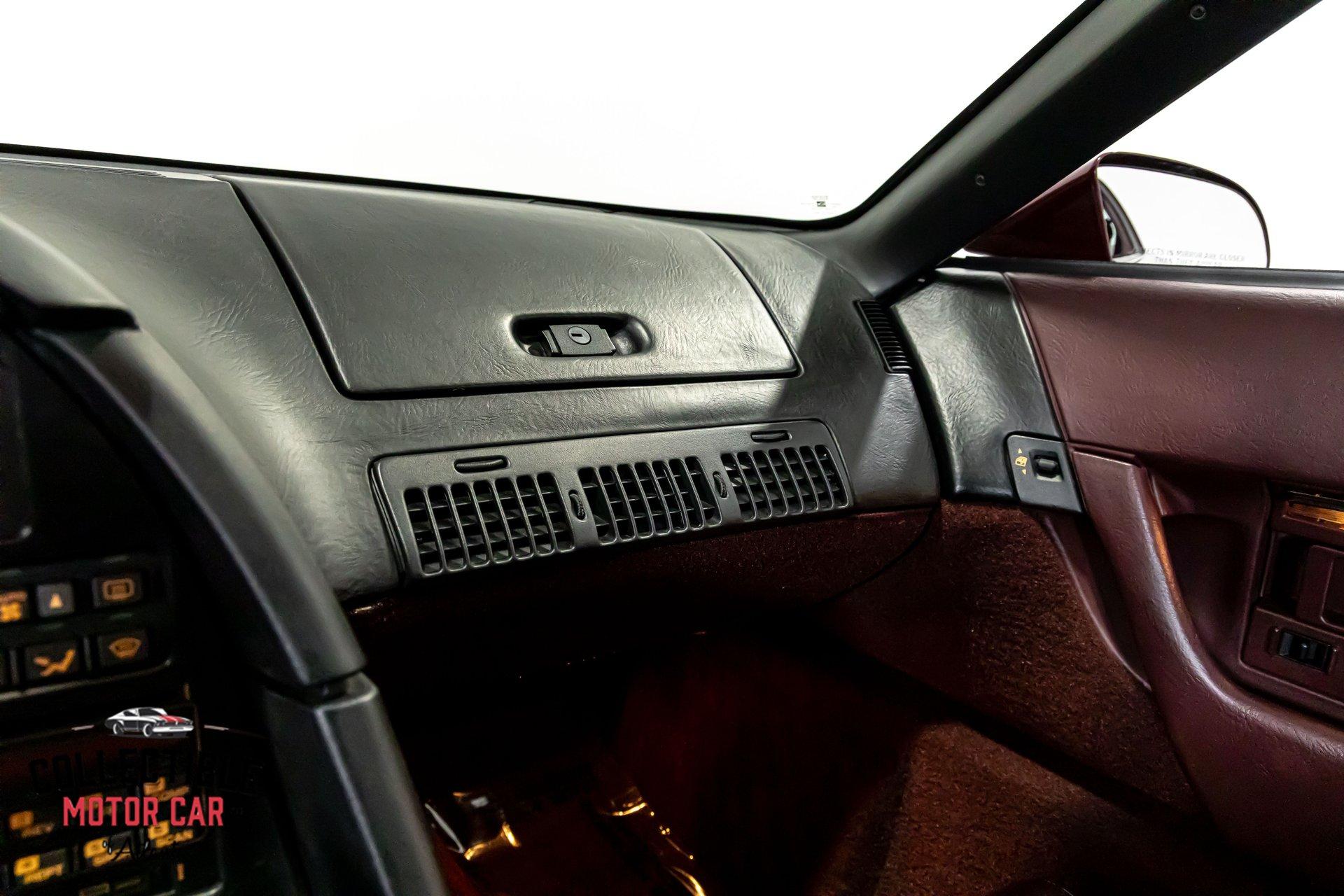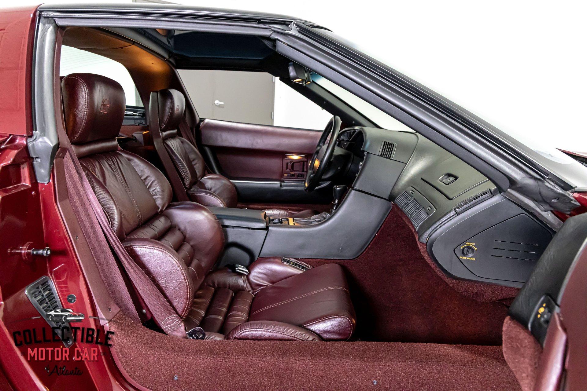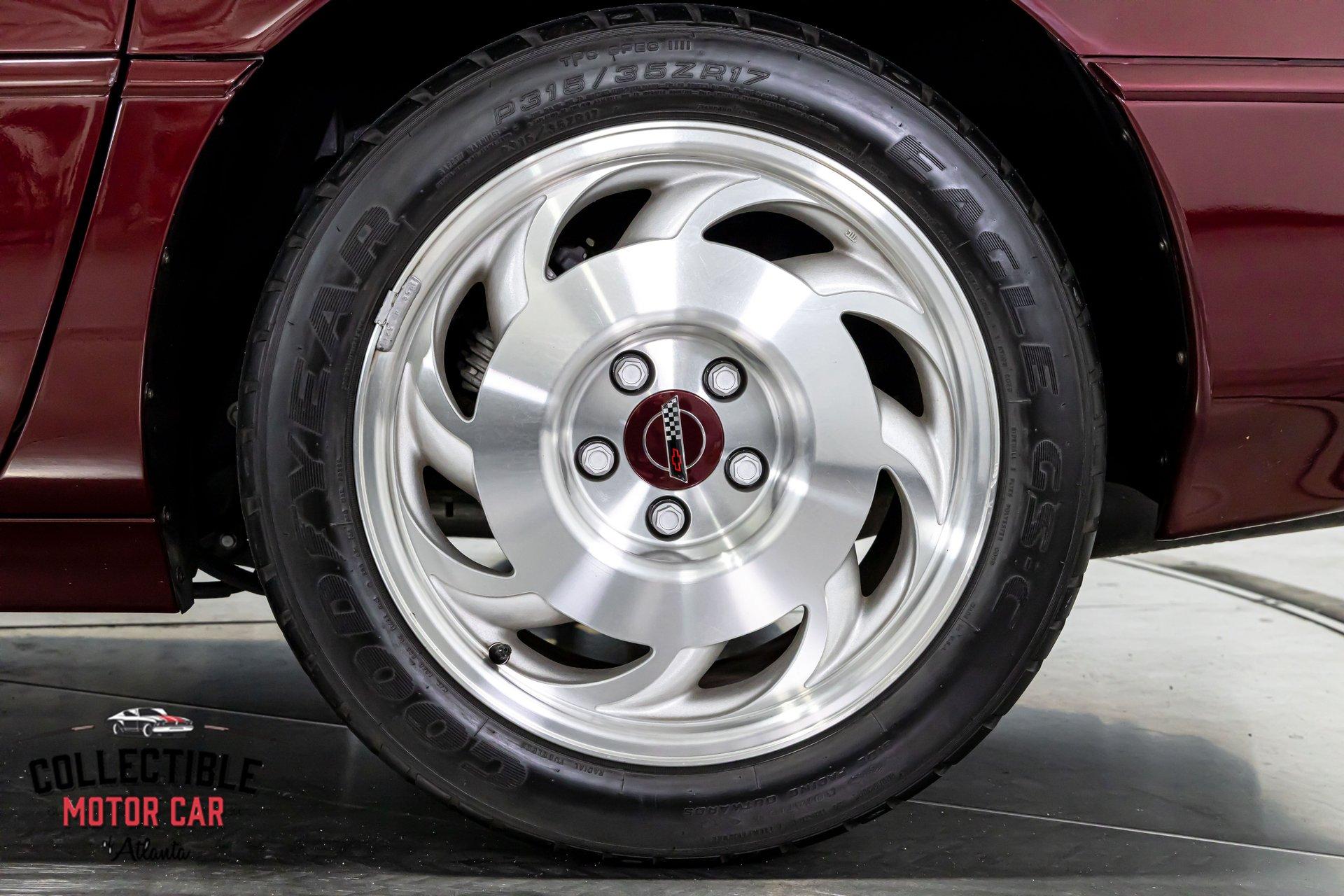 1993 Chevrolet Corvette ZR-1 — 40th Anniversary 6,403 Miles 2-Owner Clean Carfax Two Roof Panels (Painted & Glass) A time-capsule C4 halo car in the most collectible spec: 1993 ZR-1, 40th Anniversary in Ruby Red Metallic over Burgundy with just 6,403 actual miles, a 6-speed manual, two owners, clean Carfax, and both targa tops (body-color painted and transparent glass). The ’93 model year ushered in the final, most potent LT5 tune—405 hp—and this example presents beautifully top to bottom, with crisp Anniversary cues and an exceptionally clean underbody. Highlights 6,403 miles from new; two-owner history; clean Carfax 40th Anniversary Package: Ruby Red Metallic paint, Burgundy leather interior, embroidered 40th seat headrests, Anniversary badging Legendary LT5 5.7L DOHC V8 (Lotus-designed, Mercury Marine-built), factory rated 405 hp / 385 lb-ft (’93-’95 tune) ZF 6-speed manual transmission FX3 Selective Ride Control (typical ZR-1 fitment) with cockpit-adjustable damping Two roof panels: body-color painted and transparent glass (hatch storage pictured) ZR-1 wide-body with 11-inch rear wheels and massive rear rubber from the factory Original Ruby/Burgundy presentation throughout; clean trim, lenses, and glass Build date 04/93 decal present; Bowling Green “Corvette Proud” UAW badge pictured Exceptionally clean engine bay and underbody (see lift photos) Exterior Finished in Ruby Red Metallic (exclusive to the 40th), the body shows the ZR-1’s distinctive wide rear quarters and deep front fascia, with paint that retains excellent depth and uniform gloss. Lighting is clear front to back; seals and weatherstripping present fresh. The painted roof and transparent top both fit properly; the clear panel stows in the hatch on the factory mounts (shown). Factory wheels remain bright with clean center caps; panel fit is consistent with low-mile cars. Details to note from our photos Clean door jambs with intact FMVSS & tire-loading decals (dated 04/93) Crisp “ZR-1” and 40th Anniversary badges Smooth, even finish across bumper covers, rockers, and hatch Interior The Burgundy leather cockpit is pure ’93 ZR-1, with embroidered 40th headrests, power sport seats, and the driver-focused C4 dash. Leather shows light, honest creasing in the bolsters commensurate with mileage and age, with strong color and sheen. Switchgear graphics are bright; the digital/analog cluster is clear; carpets and hatch area are tidy. Climate control, Bose audio, power windows/locks/mirrors, and selective ride switchgear present cleanly. What stands out Two roof panels included; hatch storage hardware intact Clean door panels and sill plates; factory fasteners and plastics undisturbed look Original-style shifter/boot and console trim in excellent condition Drivetrain The heart of the King is the LT5 5.7L DOHC 32-valve V8—a hand-built alloy masterpiece developed with Lotus and assembled by Mercury Marine. For 1993, output rose to 405 hp via cylinder-head and calibration revisions, making these late cars the most desirable. The engine bay on this example is remarkably original and clean, with correct castings, tags, routing, and hardware visible. The ZF S6-40 6-speed shifts with trademark precision. Exhaust, catalysts, and heat shielding appear factory-correct in the underbody photos. Chassis, Wheels & Brakes As a ZR-1, this car features the FX3 Selective Ride Control system and the wider rear wheels/tires that required the unique rear quarters. The undercarriage photos show clean floor pans, tidy brake/fuel lines, intact composites, and OE mufflers, supporting the low-mile, gently-used history. Brakes and suspension components present dry and orderly. 40th Anniversary Content (’93) Ruby Red Metallic exterior with matching Burgundy interior Embroidered 40th headrests and Anniversary exterior badging Special presentation unique to the 1993 model year Documentation & Condition Notes Clean Carfax, two-owner history Both targa tops included (painted & glass) Keys, books, and any available ZR-1 materials that accompany the car will be provided at delivery As with all vintage performance cars, certain original rubber/plastic items may show age from time rather than use—this car remains exceptionally clean throughout Why It Matters The late-run, 405-hp ZR-1s (’93–’95) are the pinnacle of C4 engineering—hand-built LT5, wide-body, FX3, and true 180-mph capability—made rarer still in 40th Anniversary Ruby. With 6k miles, two owners, clean Carfax, and both tops, this is a blue-chip ZR-1 you can show, preserve, or drive sparingly with confidence. Phone: 770-738-7111 Address: 1750 Enterprise Way Suite 109 Marietta GA 30067 Hours of Operation: Monday- Friday - 9-5pm Saturday - Appointment Only Sunday - Closed