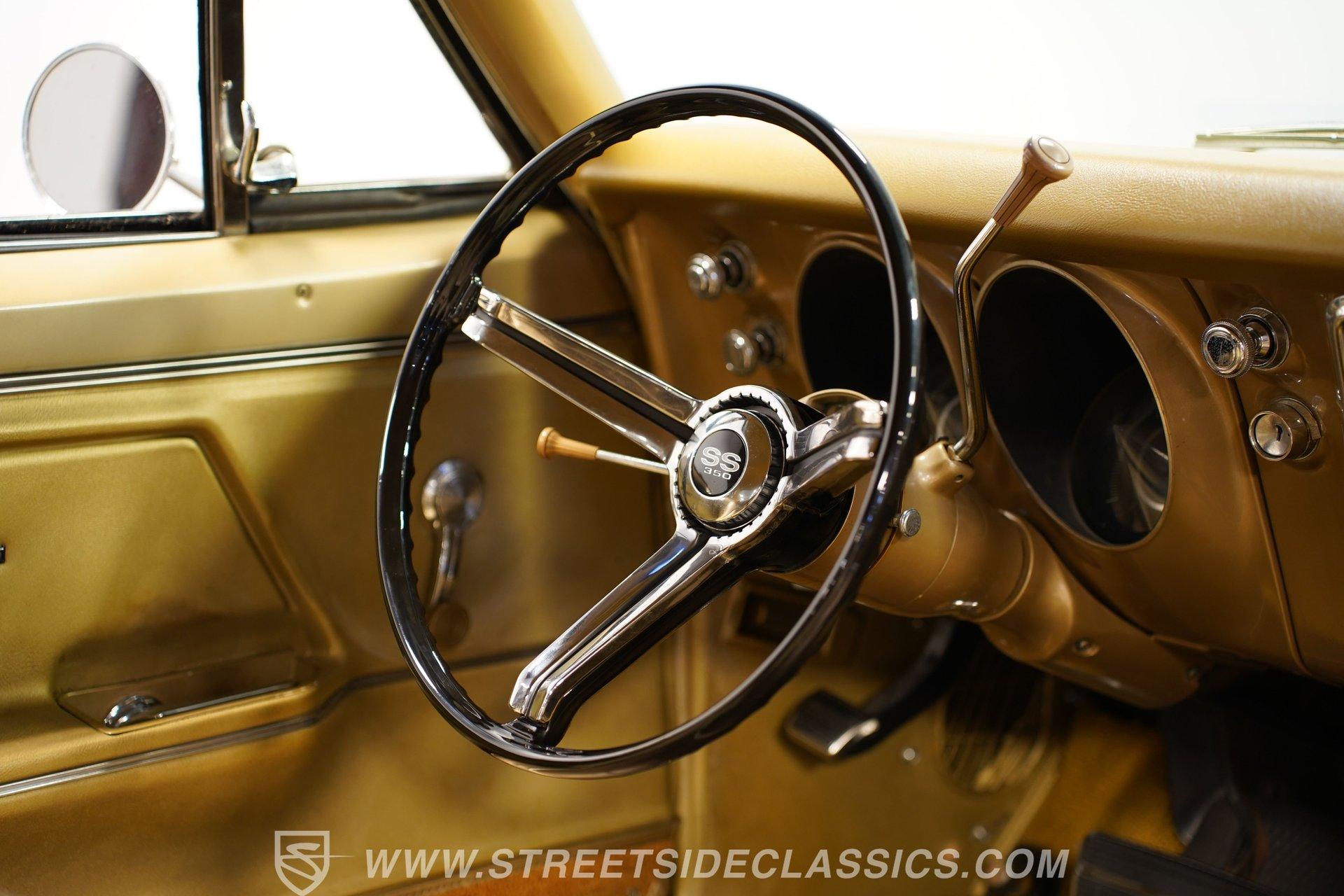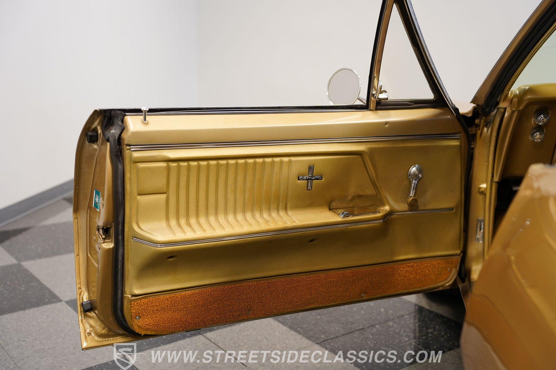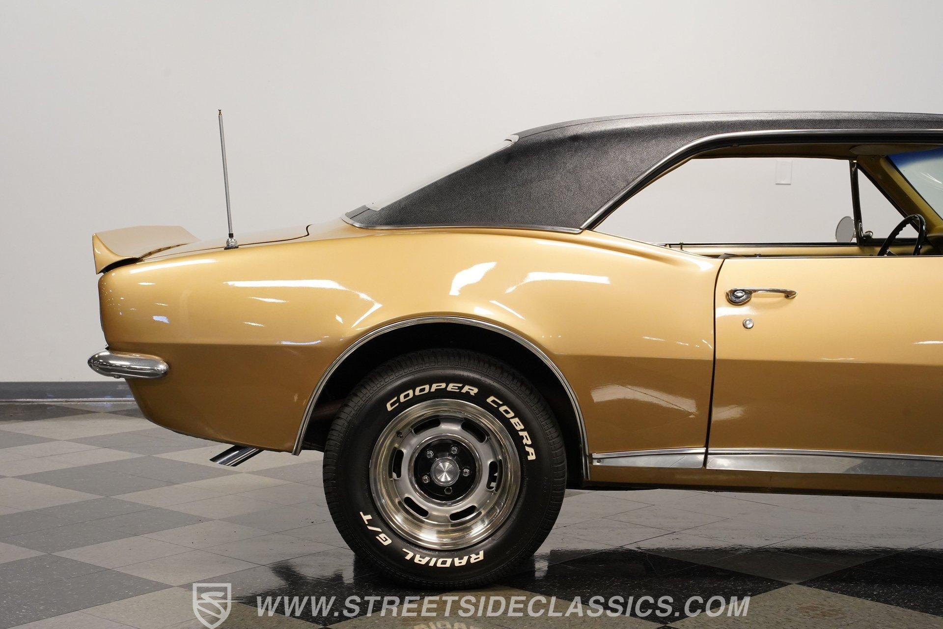 Step back into the golden era of muscle cars with this stunning 1967 Chevrolet Camaro RS/SS 350, a true icon of American automotive history. This classic Camaro embodies the spirit of the 60s, combining bold style with raw performance that continues to captivate enthusiasts today. Its sleek lines, hideaway headlights, and signature black vinyl top make a powerful statement wherever it goes. Whether you're cruising down the highway or showing off at a car meet, this Camaro offers an experience that's both nostalgic and exhilarating. Don't miss your chance to own a piece of muscle car legend. Inside, the Camaro welcomes you with a well-preserved interior that balances original charm and thoughtful updates. The seats show very little wear, complemented by newly installed gold carpet that adds a fresh, vibrant touch. The dashboard and gauges are in excellent condition, maintaining a classic look with modern reliability. Vinyl upholstery remains intact without any rips or stains, while the steering wheel and headliner show only minor wear. This cabin offers a comfortable and stylish environment for your drives. Under the hood, the numbers-matching 350 V8 engine delivers a robust performance, paired with a smooth-shifting 2-speed Powerglide automatic transmission. The motor feels healthy and responsive, offering a driving experience that is both powerful and dependable. Power steering and four-wheel manual drum brakes ensure confident handling and control. Dual exhaust with FlowMaster mufflers adds a throaty growl, enhancing the classic muscle car soundtrack. Recent upgrades include new electric headlight RS door motors and a fresh heater core, contributing to both convenience and comfort. Highlights 1967 Chevrolet Camaro RS/SS 350 Numbers Matching 350 V8 Engine 2-Speed Powerglide Automatic Transmission Dual Exhaust with FlowMaster Mufflers Power Steering Four-Wheel Manual Drum Brakes Hideaway Headlights Black Vinyl Top Classic Sounds Stereo 15" Pontiac Style Rally Wheels with New Cooper Tires Additional Set of 15" Chevy Rally 1 Wheels with Redline Tires Financing Available Vehicle Protection Plans Available Worldwide Shipping This 1967 Chevrolet Camaro RS/SS 350 represents a rare opportunity to own a muscle car that's as functional as it is iconic. With its blend of original features and tasteful upgrades, it's ready to deliver thrilling rides and turn heads wherever you go. Call, email, or come visit our showroom today!