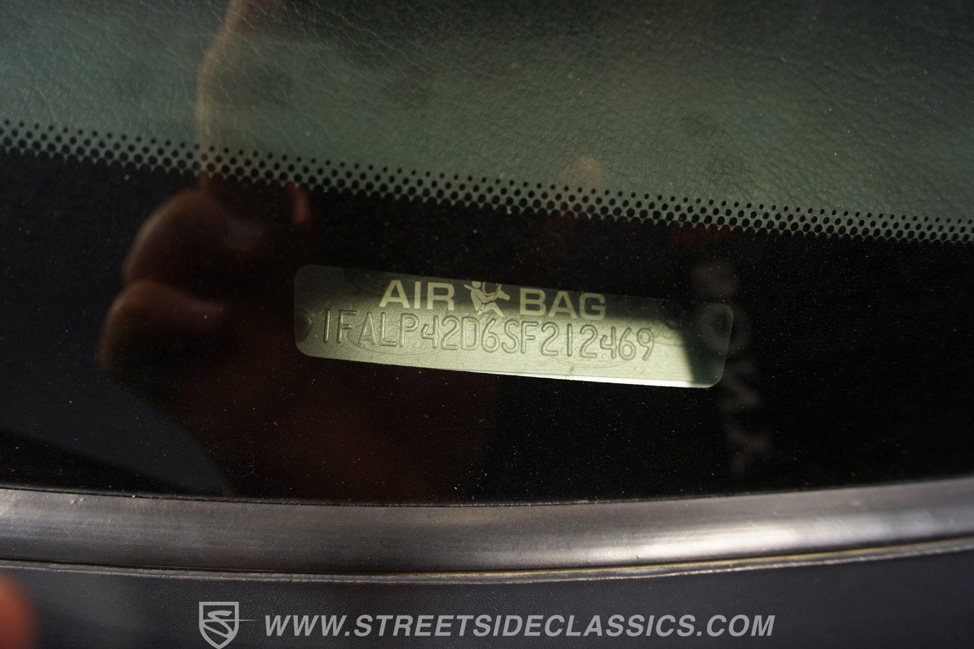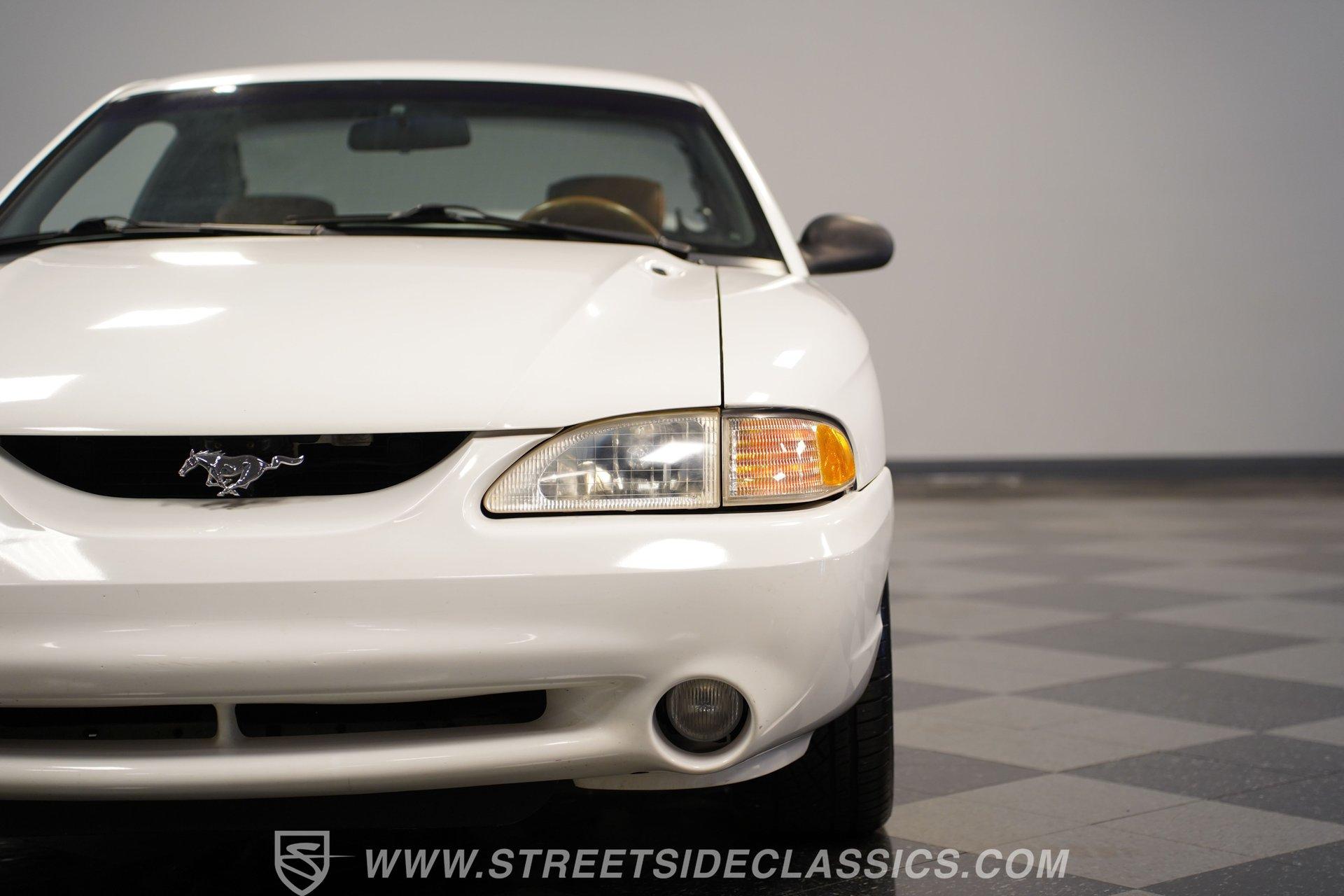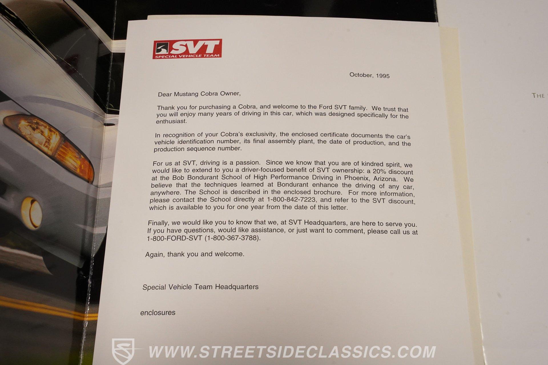 Experience the thrill of owning a true American classic with this 1995 Ford Mustang SVT Cobra. This model marks the last year of the robust 302/5.0 V8 engine, a symbol of raw power and timeless performance. More than just a car, it represents an era of muscle and style, perfect for enthusiasts who appreciate heritage and performance. Whether you're cruising city streets or showing at car meets, this Mustang makes a bold statement. With 58,386 actual miles, it blends history and capability, inviting you to be part of its ongoing story. Step inside to discover a well-maintained interior featuring a tasteful color combo that adds to the cabin's appeal. The leather seats still present like new. The factory dash and gauges remain in good shape, complemented by power locks, power mirrors, power windows, tilt wheel, and air conditioning for added comfort and convenience. While the carpet could use a cleaning, the overall interior quality invites you to enjoy every ride. Under the hood, this Mustang packs a 5.0L V8 engine paired with a 5-speed manual transmission, delivering an engaging and responsive driving experience. The motor feels healthy and well-maintained, with electronic fuel injection ensuring smooth acceleration. Four-wheel power disc brakes, power steering, and a factory rear axle contribute to confident handling and stopping power. The car drives like new with no steering pull or brake issues, making it a reliable and exciting cruiser. Highlights: 1995 Ford Mustang SVT Cobra 58,386 Actual Miles Last Year of 302/5.0 V8 Engine 5.0L V8 Engine 5-Speed Manual Transmission Electronic Fuel Injection Four Wheel Power Disc Brakes Power Steering Factory Rear Axle Aluminum Wheels Dual Chrome Tip Exhaust Air Conditioning Leather Seats Factory Buildsheet Included Financing Available Vehicle Protection Plans Available Worldwide Shipping This 1995 Ford Mustang SVT Cobra is a fantastic opportunity for anyone seeking a classic muscle car with excellent driving dynamics and authentic features. Don't miss your chance to own a piece of automotive history that's ready to hit the road. Call, email, or come visit our showroom today!