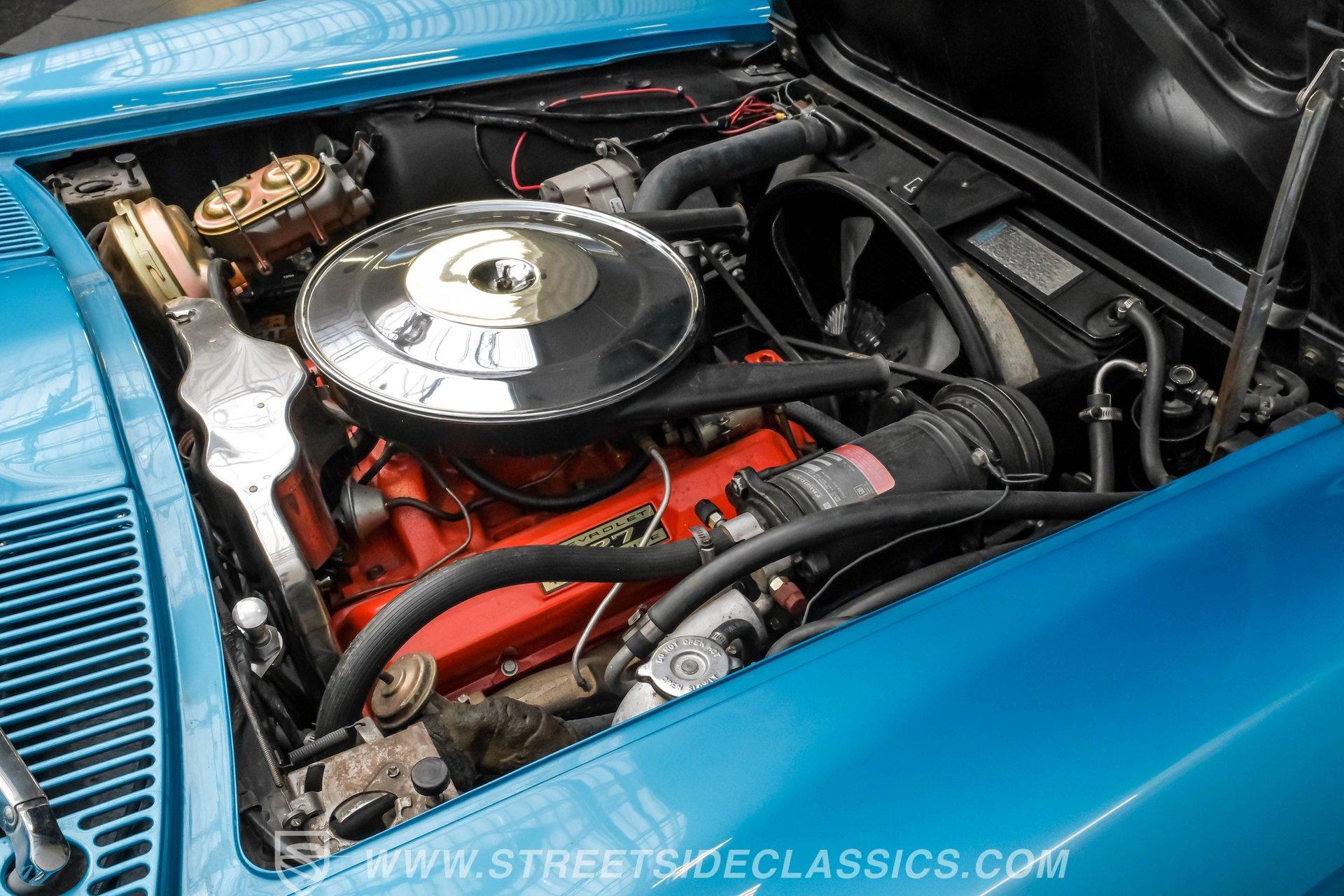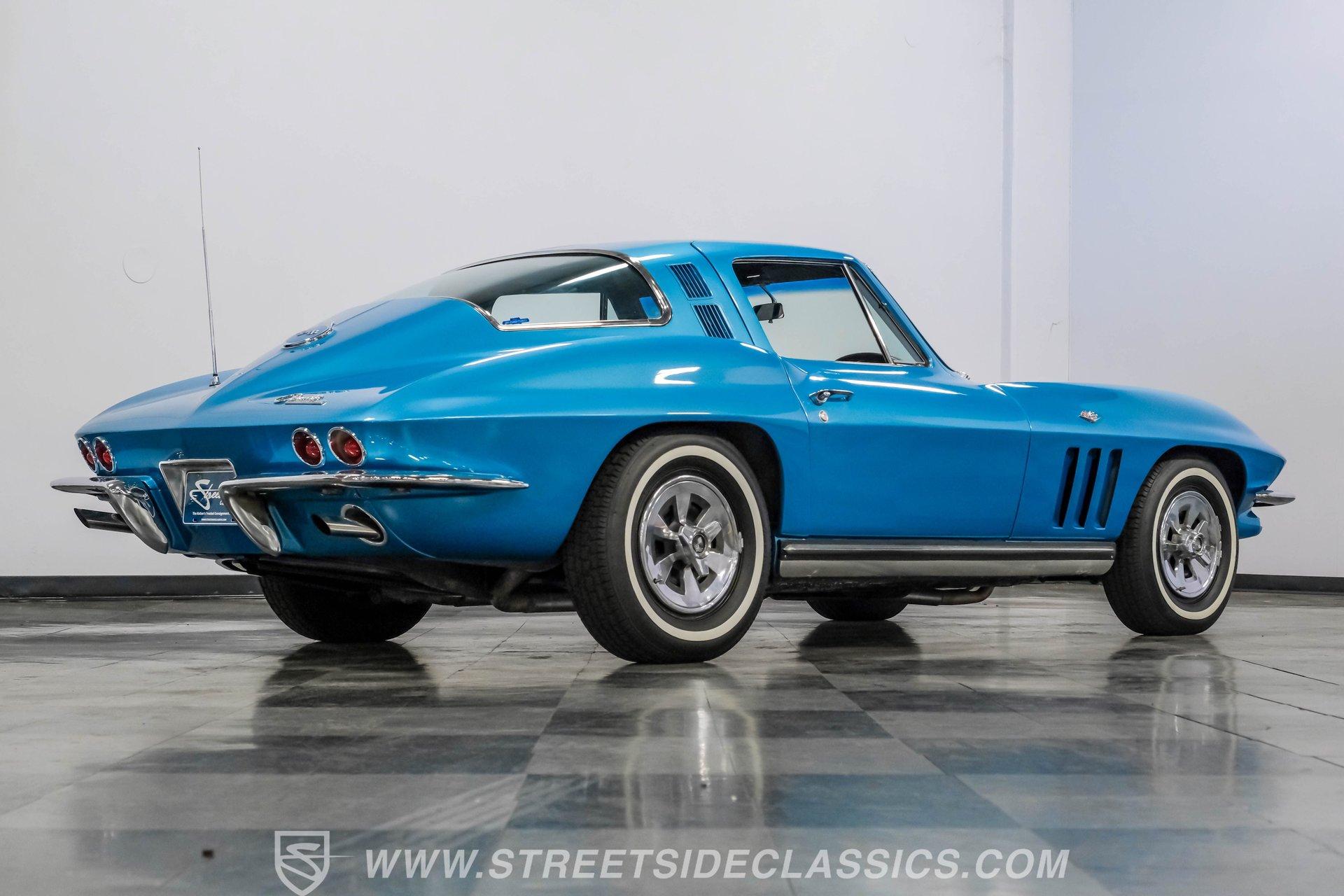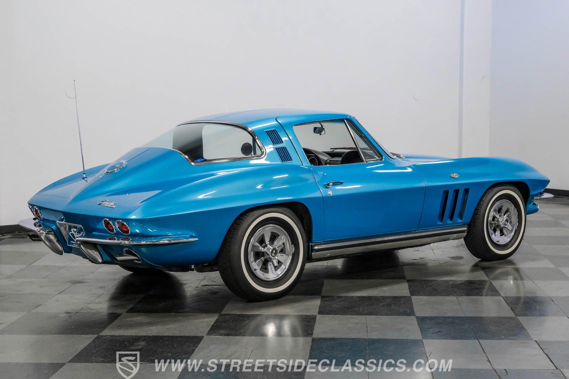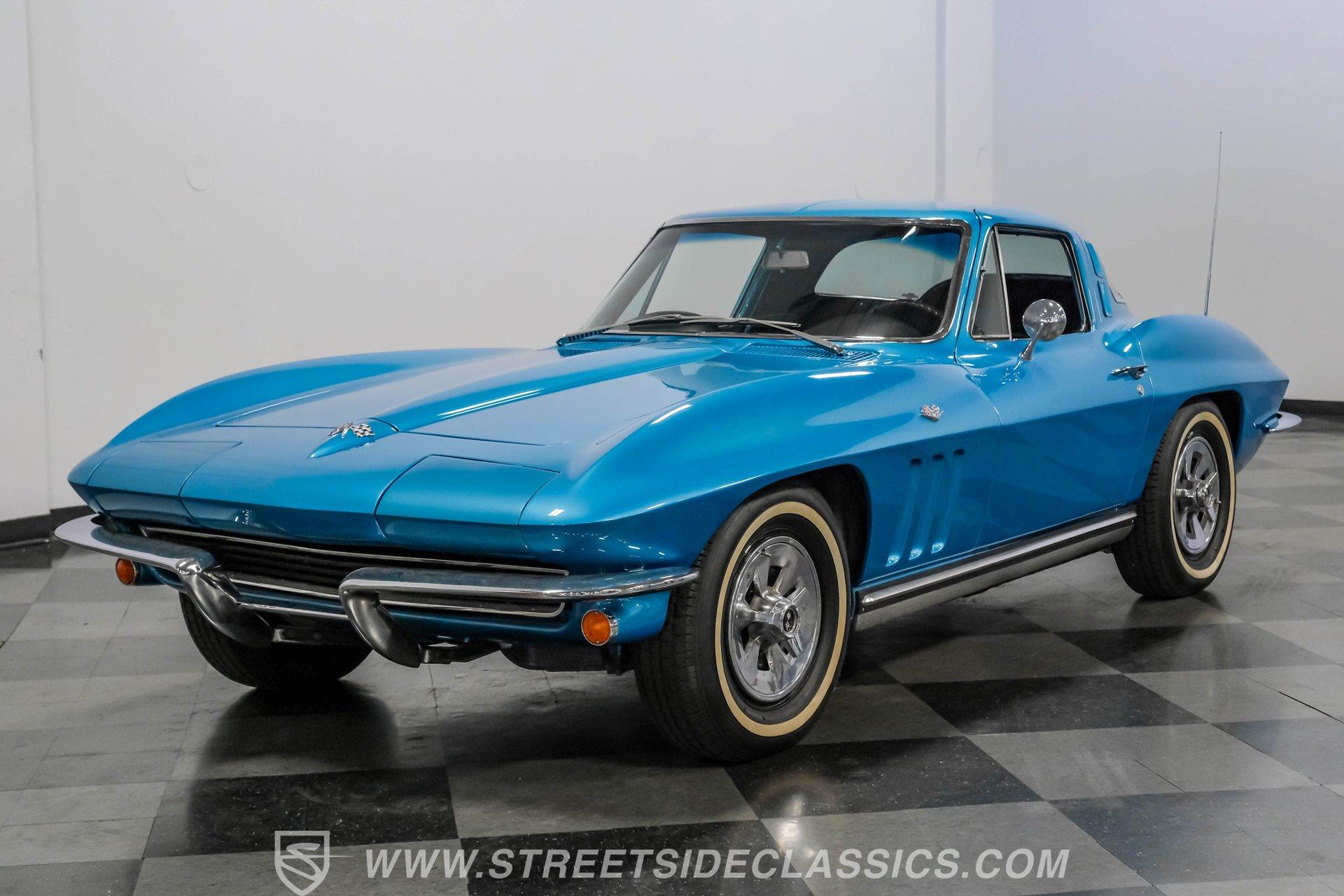 Few cars personify the automotive spirit of the 1960s quite like this numbers-matching 1965 Chevrolet Corvette. Fully repainted in this beautiful Nassau Blue, which showcases its sleek hardtop coupe body style. With plenty of receipts and restoration photos, this well-cared-for C2 is ready to make its next owner a very happy member of the Corvette club. Inside, we find a fully restored black leather interior. A center console separates the dual bucket seats, while a three-spoke, power-assisted, wood-rimmed steering wheel sits just ahead of the C2 six-pod gauge cluster, featuring a 7,000-rpm tachometer and a 160-mph speedometer. A large analog clock sits high atop the center stack, and while the vertical radio is still where it belongs, this head unit has been upgraded to a modern AM/FM/AUX head, while a CD changer is hidden behind the passenger seat. Thanks to the coupe setup, this 'Vette also sports a sizeable cargo area, making road trips equal parts practical and fun. Under that front-hinged hood, we find a clean engine bay that houses a numbers-matching 327 cubic-inch L75 V-8. Thanks to a single four-barrel carburetor and 10.5:1 compression ratio, this small block pumped out an impressive advertised 300 horsepower and 360 pound-feet of torque. That power is routed through a TH350 three-speed automatic transmission that replaced the original Powerglide auto before heading out to the rear wheels. HIGHLIGHTS: Numbers Matching 327 CID V8 L75 300 HP 360 LB FT Full Nassau Blue Repaint Single Four Barrel Carb TH350 Three Speed Auto Corvette Rear End Factory Style Suspension Four Wheel Power Disc Brakes Power Steering Wood Rimmed Wheel Black Leather Interior Bucket Seats AM/FM/AUX Head Unit CD Changer Owner's Manual Receipts Restoration Photos This 1966 Chevrolet Corvette rides on fully independent factory-style suspension, while four-wheel power disc brakes stand ready to rein in speed whenever called upon, allowing you to simply enjoy the ride. If you've been on the hunt for a numbers-matching embodiment of the Golden Age of muscle cars, then this is the car you've been waiting for. But don't wait, call today!