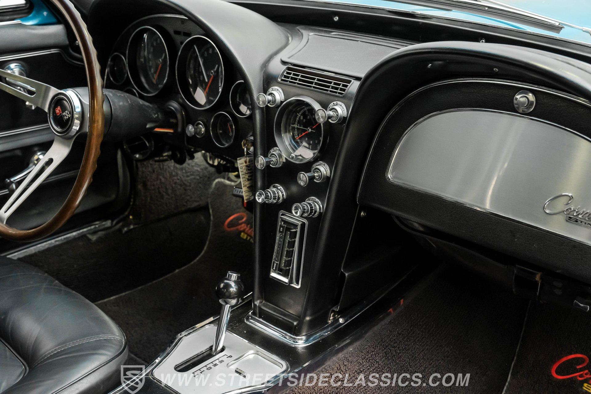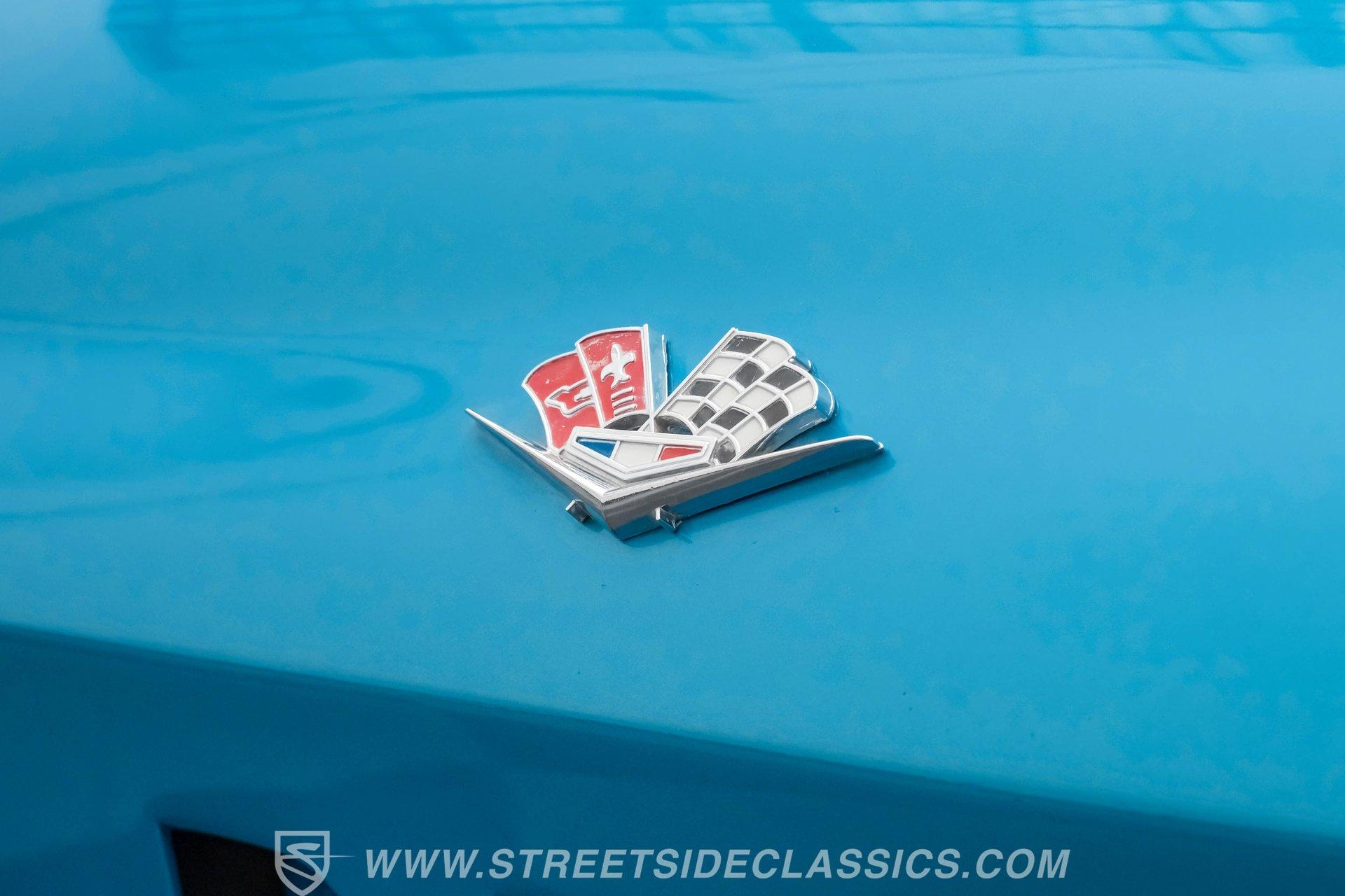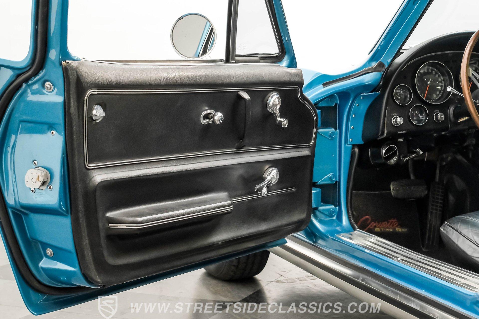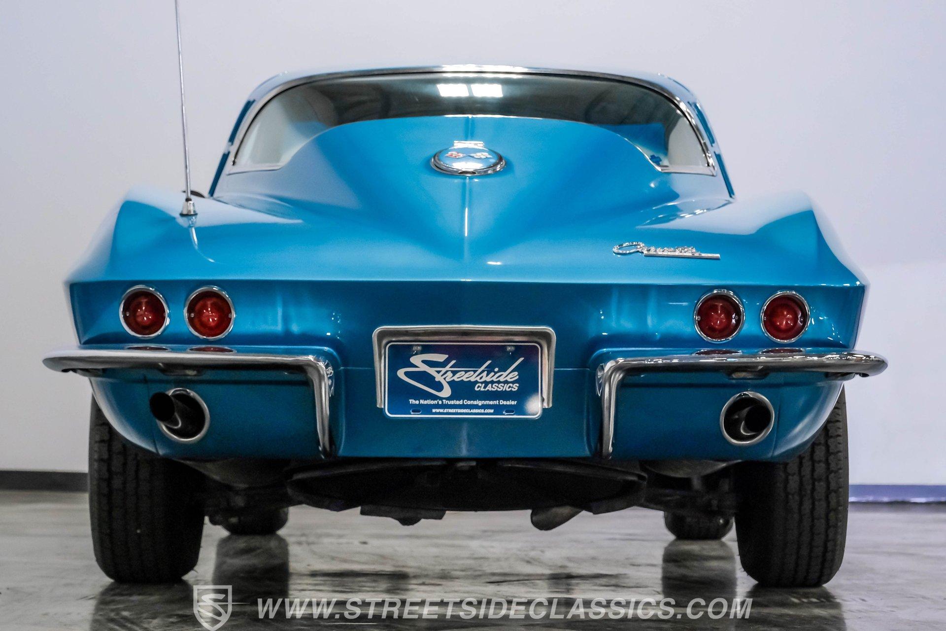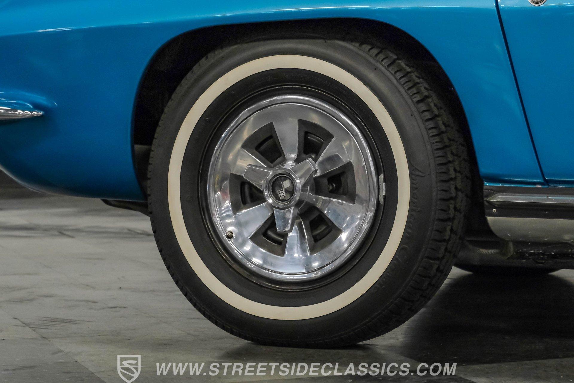 Few cars personify the automotive spirit of the 1960s quite like this numbers-matching 1965 Chevrolet Corvette. Fully repainted in this beautiful Nassau Blue, which showcases its sleek hardtop coupe body style. With plenty of receipts and restoration photos, this well-cared-for C2 is ready to make its next owner a very happy member of the Corvette club. Inside, we find a fully restored black leather interior. A center console separates the dual bucket seats, while a three-spoke, power-assisted, wood-rimmed steering wheel sits just ahead of the C2 six-pod gauge cluster, featuring a 7,000-rpm tachometer and a 160-mph speedometer. A large analog clock sits high atop the center stack, and while the vertical radio is still where it belongs, this head unit has been upgraded to a modern AM/FM/AUX head, while a CD changer is hidden behind the passenger seat. Thanks to the coupe setup, this 'Vette also sports a sizeable cargo area, making road trips equal parts practical and fun. Under that front-hinged hood, we find a clean engine bay that houses a numbers-matching 327 cubic-inch L75 V-8. Thanks to a single four-barrel carburetor and 10.5:1 compression ratio, this small block pumped out an impressive advertised 300 horsepower and 360 pound-feet of torque. That power is routed through a TH350 three-speed automatic transmission that replaced the original Powerglide auto before heading out to the rear wheels. HIGHLIGHTS: Numbers Matching 327 CID V8 L75 300 HP 360 LB FT Full Nassau Blue Repaint Single Four Barrel Carb TH350 Three Speed Auto Corvette Rear End Factory Style Suspension Four Wheel Power Disc Brakes Power Steering Wood Rimmed Wheel Black Leather Interior Bucket Seats AM/FM/AUX Head Unit CD Changer Owner's Manual Receipts Restoration Photos This 1966 Chevrolet Corvette rides on fully independent factory-style suspension, while four-wheel power disc brakes stand ready to rein in speed whenever called upon, allowing you to simply enjoy the ride. If you've been on the hunt for a numbers-matching embodiment of the Golden Age of muscle cars, then this is the car you've been waiting for. But don't wait, call today!