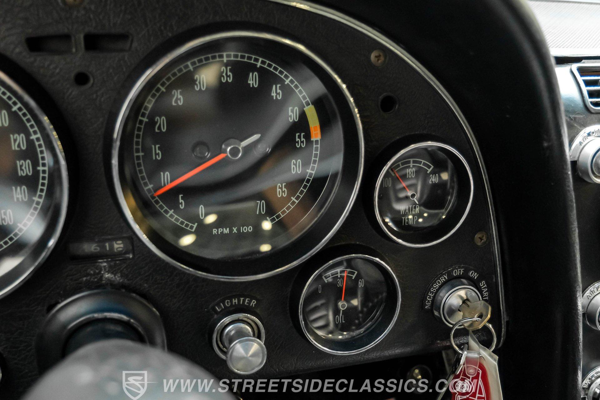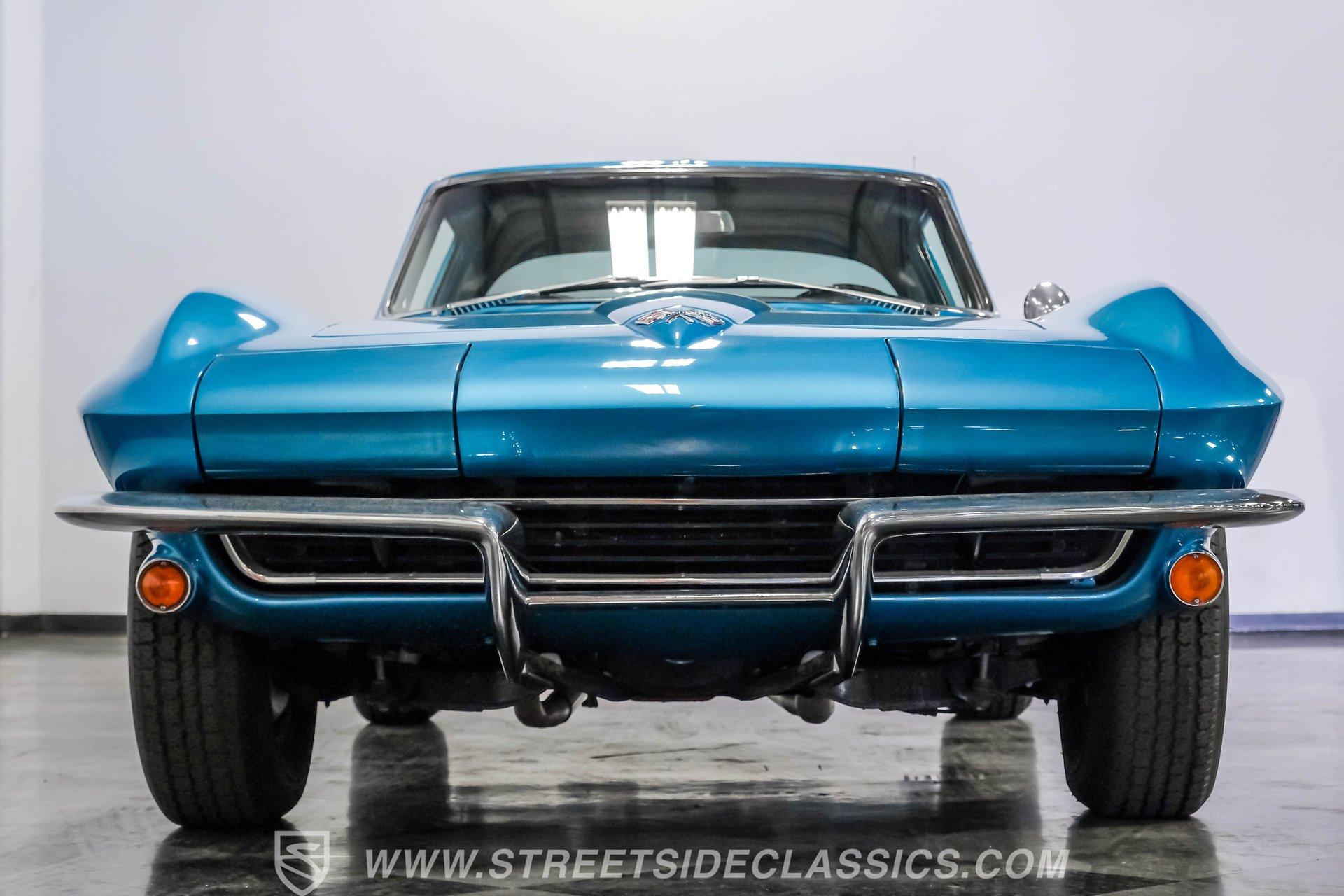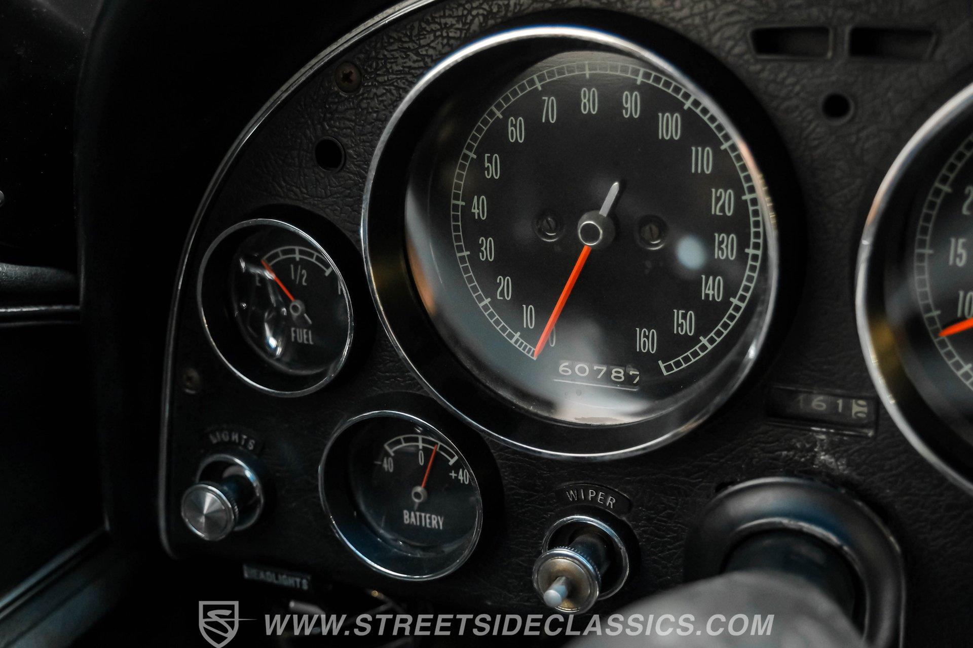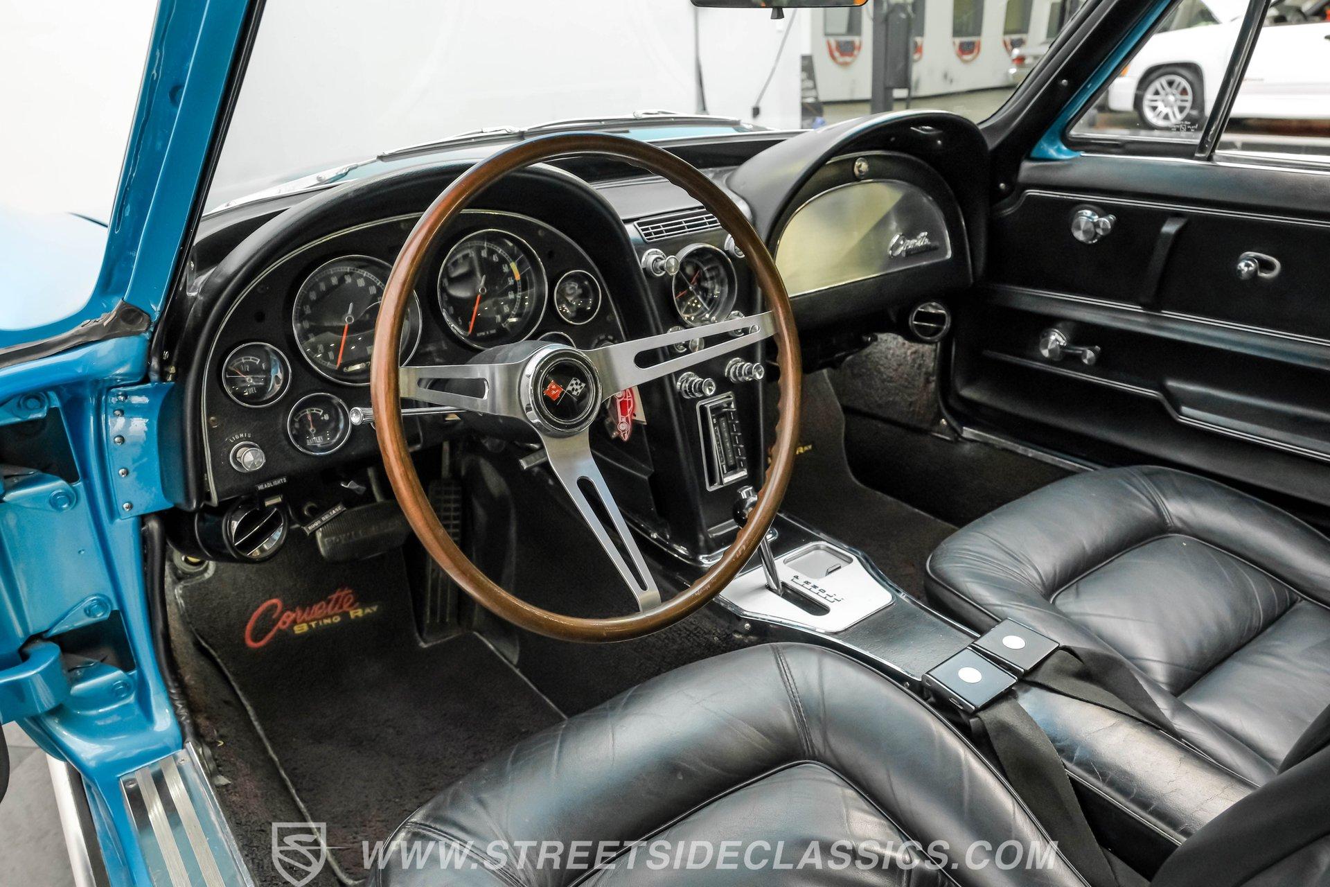 Few cars personify the automotive spirit of the 1960s quite like this numbers-matching 1965 Chevrolet Corvette. Fully repainted in this beautiful Nassau Blue, which showcases its sleek hardtop coupe body style. With plenty of receipts and restoration photos, this well-cared-for C2 is ready to make its next owner a very happy member of the Corvette club. Inside, we find a fully restored black leather interior. A center console separates the dual bucket seats, while a three-spoke, power-assisted, wood-rimmed steering wheel sits just ahead of the C2 six-pod gauge cluster, featuring a 7,000-rpm tachometer and a 160-mph speedometer. A large analog clock sits high atop the center stack, and while the vertical radio is still where it belongs, this head unit has been upgraded to a modern AM/FM/AUX head, while a CD changer is hidden behind the passenger seat. Thanks to the coupe setup, this 'Vette also sports a sizeable cargo area, making road trips equal parts practical and fun. Under that front-hinged hood, we find a clean engine bay that houses a numbers-matching 327 cubic-inch L75 V-8. Thanks to a single four-barrel carburetor and 10.5:1 compression ratio, this small block pumped out an impressive advertised 300 horsepower and 360 pound-feet of torque. That power is routed through a TH350 three-speed automatic transmission that replaced the original Powerglide auto before heading out to the rear wheels. HIGHLIGHTS: Numbers Matching 327 CID V8 L75 300 HP 360 LB FT Full Nassau Blue Repaint Single Four Barrel Carb TH350 Three Speed Auto Corvette Rear End Factory Style Suspension Four Wheel Power Disc Brakes Power Steering Wood Rimmed Wheel Black Leather Interior Bucket Seats AM/FM/AUX Head Unit CD Changer Owner's Manual Receipts Restoration Photos This 1966 Chevrolet Corvette rides on fully independent factory-style suspension, while four-wheel power disc brakes stand ready to rein in speed whenever called upon, allowing you to simply enjoy the ride. If you've been on the hunt for a numbers-matching embodiment of the Golden Age of muscle cars, then this is the car you've been waiting for. But don't wait, call today!