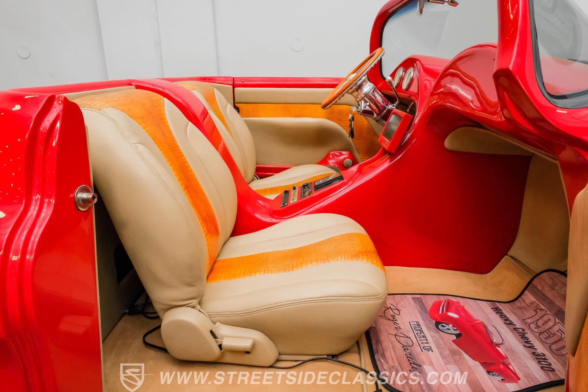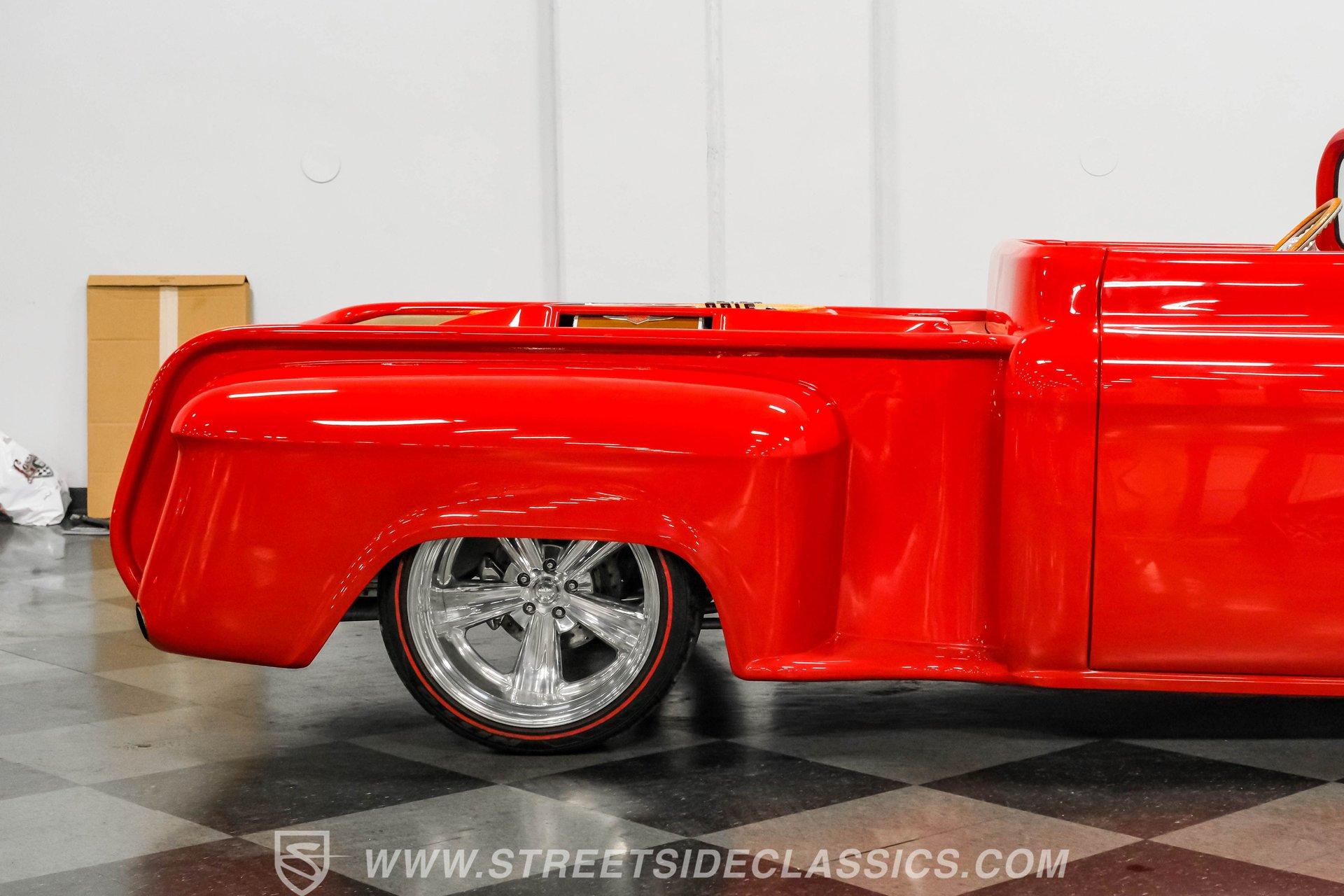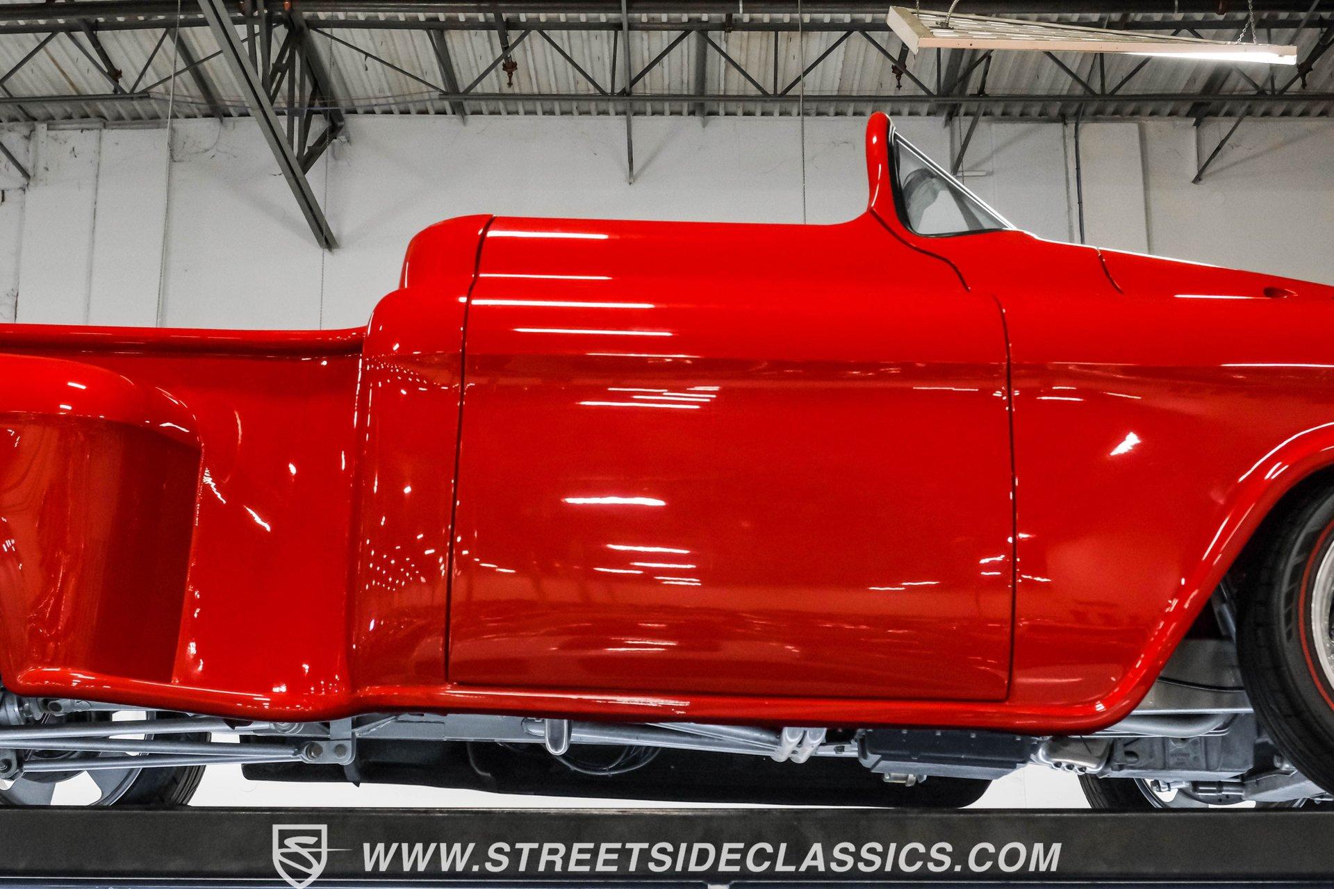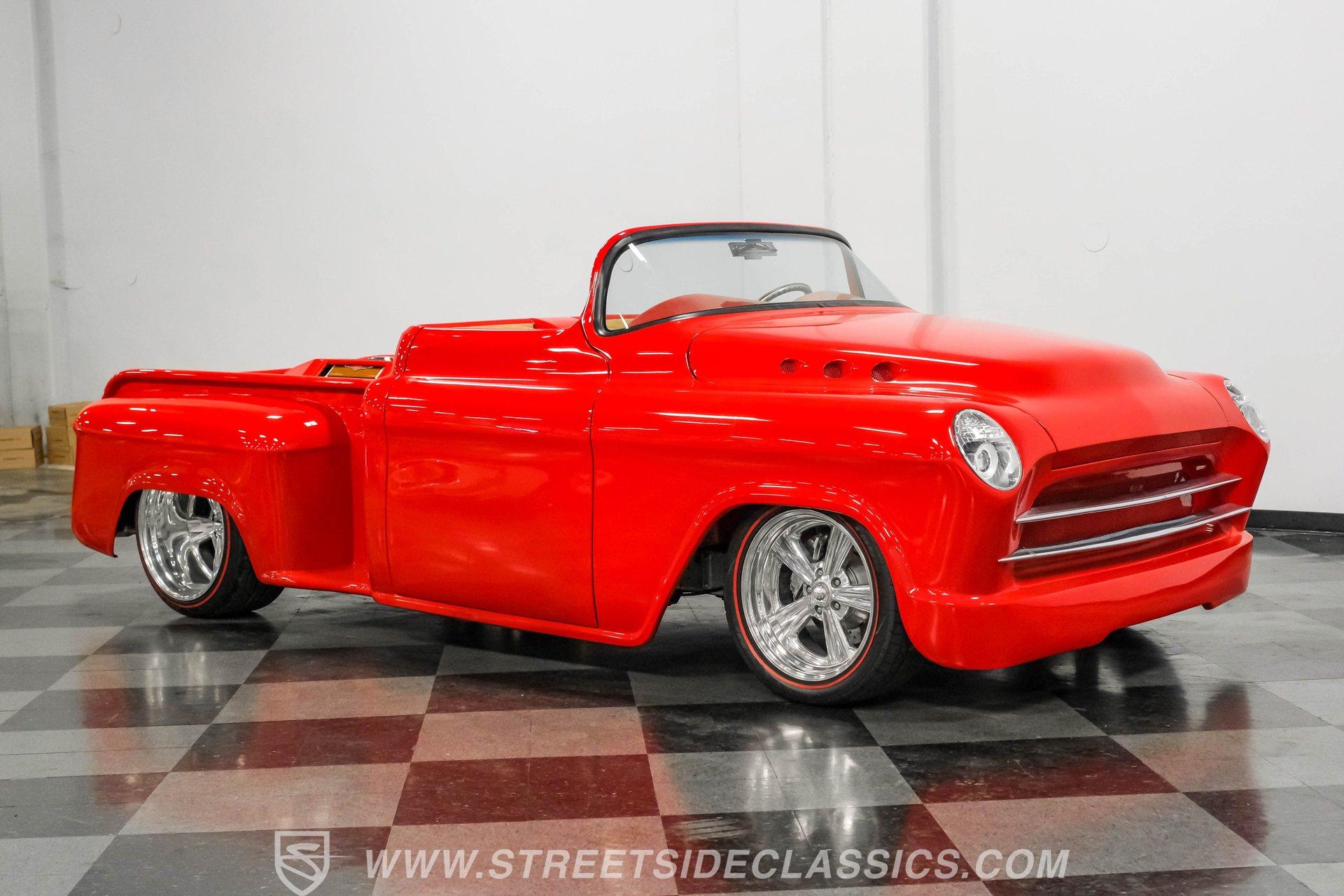 This 1956 Chevrolet 3100 Custom Roadster is not just a truck; it's a statement of passion and precision, built by the capable hands from the folks on TLC's "Rides". From its sleek, all-steel custom body to its head-turning custom details, this roadster embodies the spirit of American automotive innovation and style. Whether parked at a show or cruising down the highway, it evokes nostalgia while delivering contemporary performance. If you're ready to own a piece of automotive art that's as thrilling to drive as it is to behold, this '56 Chevy 3100 is your perfect match. Inside, the cabin is a testament to custom luxury and sound. Built with meticulous attention to detail by Jesse's Upholstery, the interior features rich leather upholstery with distinctive alligator skin inserts. The Colorado Custom steering wheel and Classic Instruments gauges blend vintage aesthetics with modern functionality. The full custom dash and console complement the high-end sound system, featuring an Alpine AM/FM/CD/USB head unit, ARC audio components including dual 12" subs in the bed, and custom door panels housing speakers. This interior invites you to enjoy every ride in comfort and style. Under the hood, power meets refinement with a supercharged 5.7-liter LS1 V8 engine, delivering exhilarating performance without sacrificing smoothness. The Magnuson supercharger enhances power output, while the EFI system ensures precise fuel management. Paired with a Bowler's Performance 700R4 four-speed automatic transmission, this roadster offers seamless shifting and responsive acceleration. The drivetrain is complemented by a Speedway Engineering Super Max quick-change rear axle, tubular A-arms with airbags, and a custom 4-link suspension with air shocks, all contributing to a superior driving experience that balances power and control. Highlights 1,655 Miles Since Built All Steel Body With Custom Panels 5.7L LS1 V8 Supercharged Engine Magnuson Supercharger Bowler's Performance 700R4 4-Speed Automatic Speedway Engineering Super Max Quick Change Axle Tubular A-Arms With Airbags And Shocks Custom 4-Link Rear Suspension With Air Shocks Power Steering And Power Disc Brakes Full Custom Leather Interior With Alligator Inlay Alpine AM/FM/CD/USB Audio System Dual 12" ARC Subwoofers In Bed Full Airlift Performance System Financing Available Vehicle Protection Plans Available Worldwide Shipping This 1956 Chevrolet 3100 Custom Roadster is a rare find that combines timeless style with modern performance upgrades. It's a unique opportunity to own a beautifully restored and thoughtfully customized classic that delivers excitement on every drive. Don't miss your chance to make this iconic roadster yours. Call, email, or come visit our showroom today!