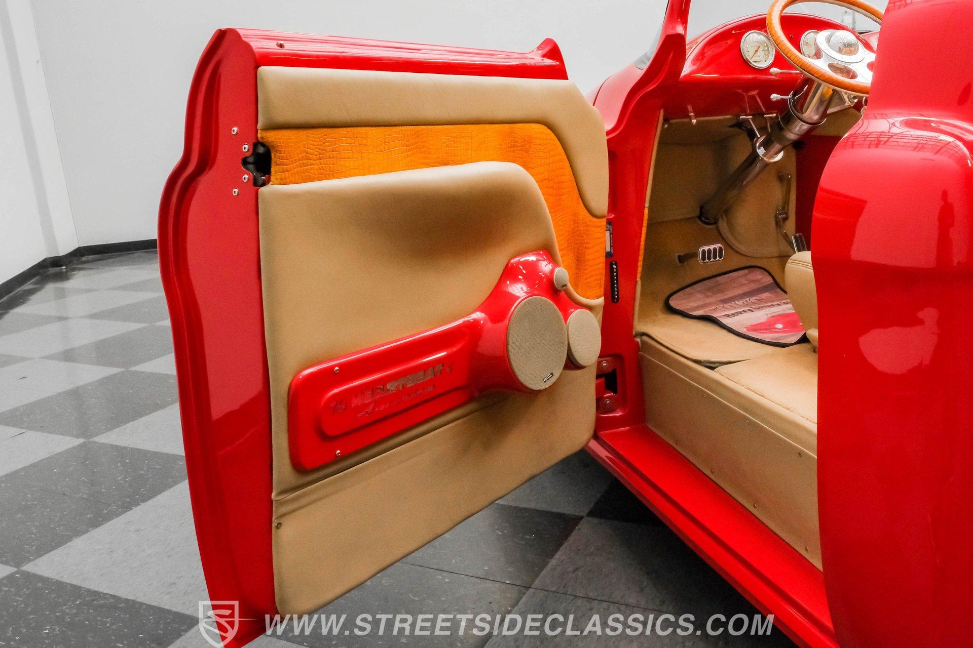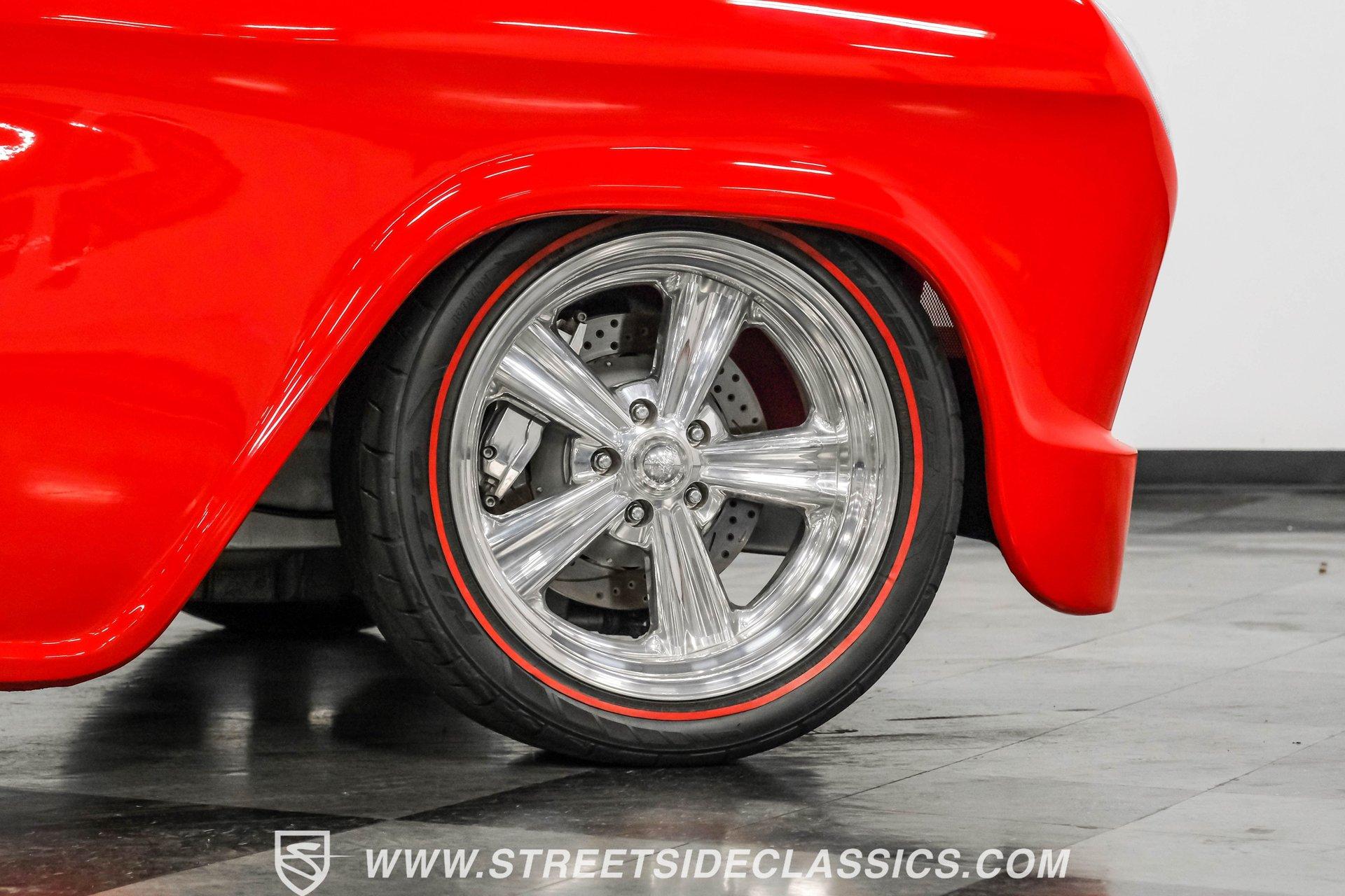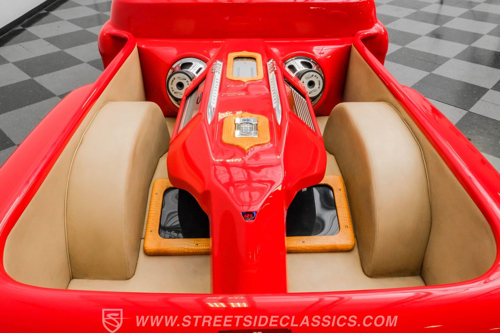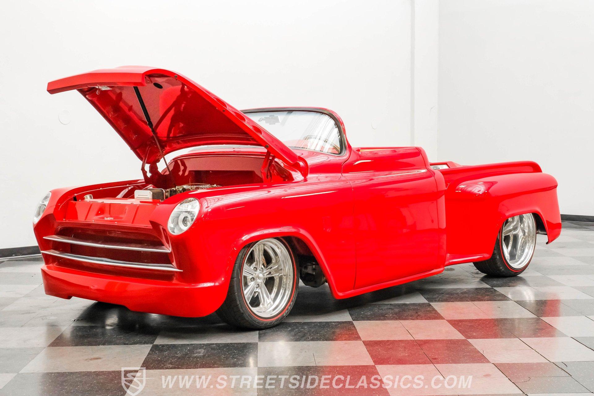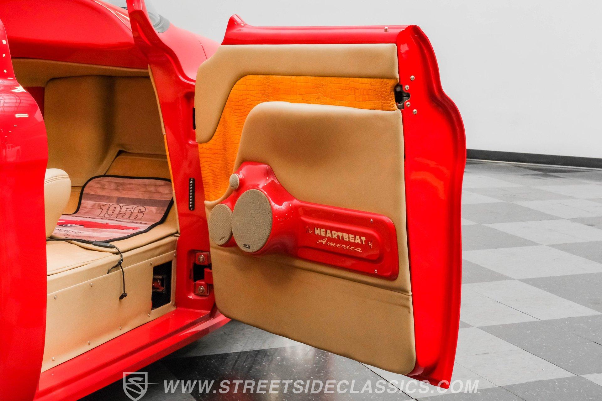 This 1956 Chevrolet 3100 Custom Roadster is not just a truck; it's a statement of passion and precision, built by the capable hands from the folks on TLC's "Rides". From its sleek, all-steel custom body to its head-turning custom details, this roadster embodies the spirit of American automotive innovation and style. Whether parked at a show or cruising down the highway, it evokes nostalgia while delivering contemporary performance. If you're ready to own a piece of automotive art that's as thrilling to drive as it is to behold, this '56 Chevy 3100 is your perfect match. Inside, the cabin is a testament to custom luxury and sound. Built with meticulous attention to detail by Jesse's Upholstery, the interior features rich leather upholstery with distinctive alligator skin inserts. The Colorado Custom steering wheel and Classic Instruments gauges blend vintage aesthetics with modern functionality. The full custom dash and console complement the high-end sound system, featuring an Alpine AM/FM/CD/USB head unit, ARC audio components including dual 12" subs in the bed, and custom door panels housing speakers. This interior invites you to enjoy every ride in comfort and style. Under the hood, power meets refinement with a supercharged 5.7-liter LS1 V8 engine, delivering exhilarating performance without sacrificing smoothness. The Magnuson supercharger enhances power output, while the EFI system ensures precise fuel management. Paired with a Bowler's Performance 700R4 four-speed automatic transmission, this roadster offers seamless shifting and responsive acceleration. The drivetrain is complemented by a Speedway Engineering Super Max quick-change rear axle, tubular A-arms with airbags, and a custom 4-link suspension with air shocks, all contributing to a superior driving experience that balances power and control. Highlights 1,655 Miles Since Built All Steel Body With Custom Panels 5.7L LS1 V8 Supercharged Engine Magnuson Supercharger Bowler's Performance 700R4 4-Speed Automatic Speedway Engineering Super Max Quick Change Axle Tubular A-Arms With Airbags And Shocks Custom 4-Link Rear Suspension With Air Shocks Power Steering And Power Disc Brakes Full Custom Leather Interior With Alligator Inlay Alpine AM/FM/CD/USB Audio System Dual 12" ARC Subwoofers In Bed Full Airlift Performance System Financing Available Vehicle Protection Plans Available Worldwide Shipping This 1956 Chevrolet 3100 Custom Roadster is a rare find that combines timeless style with modern performance upgrades. It's a unique opportunity to own a beautifully restored and thoughtfully customized classic that delivers excitement on every drive. Don't miss your chance to make this iconic roadster yours. Call, email, or come visit our showroom today!