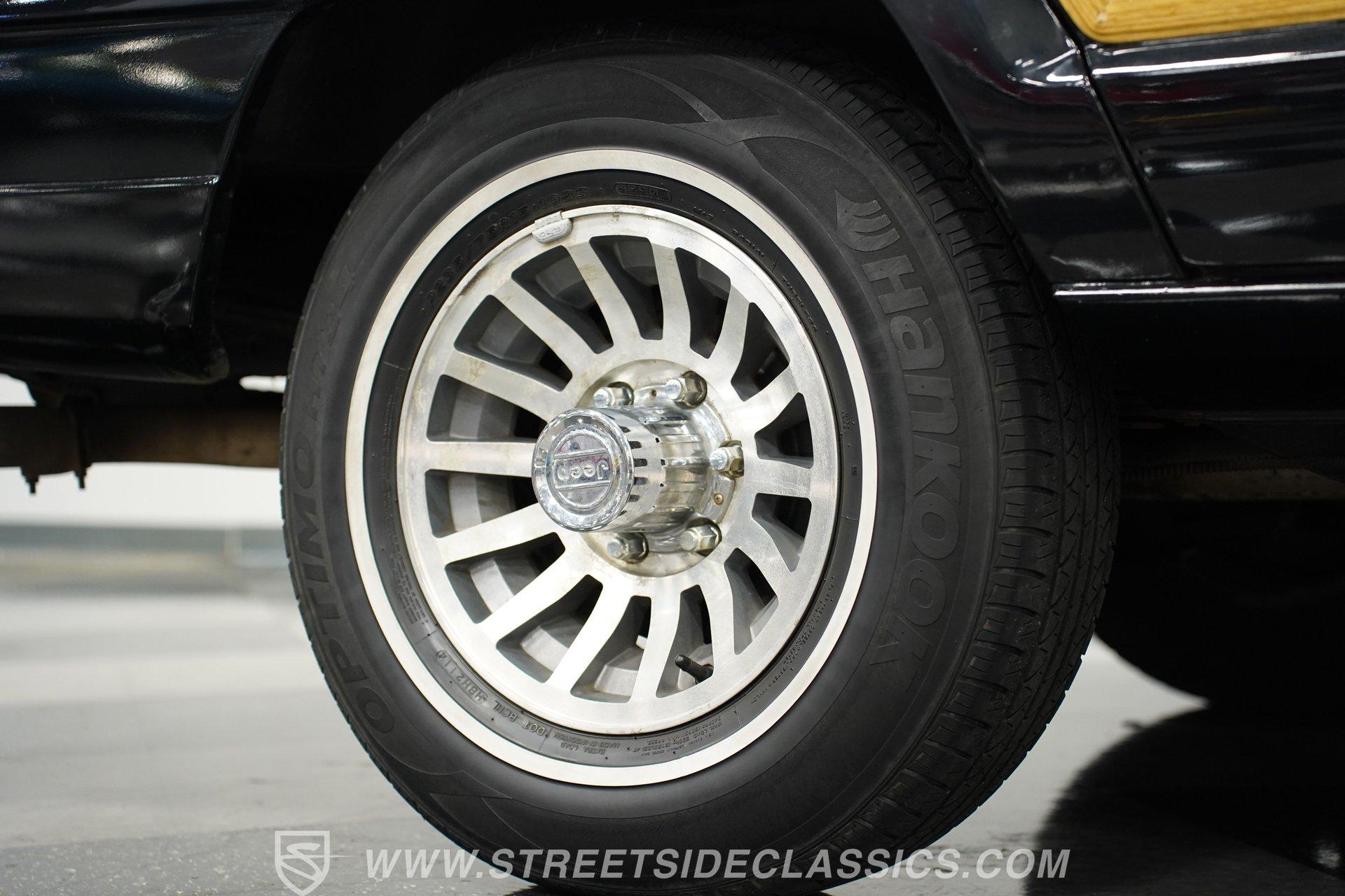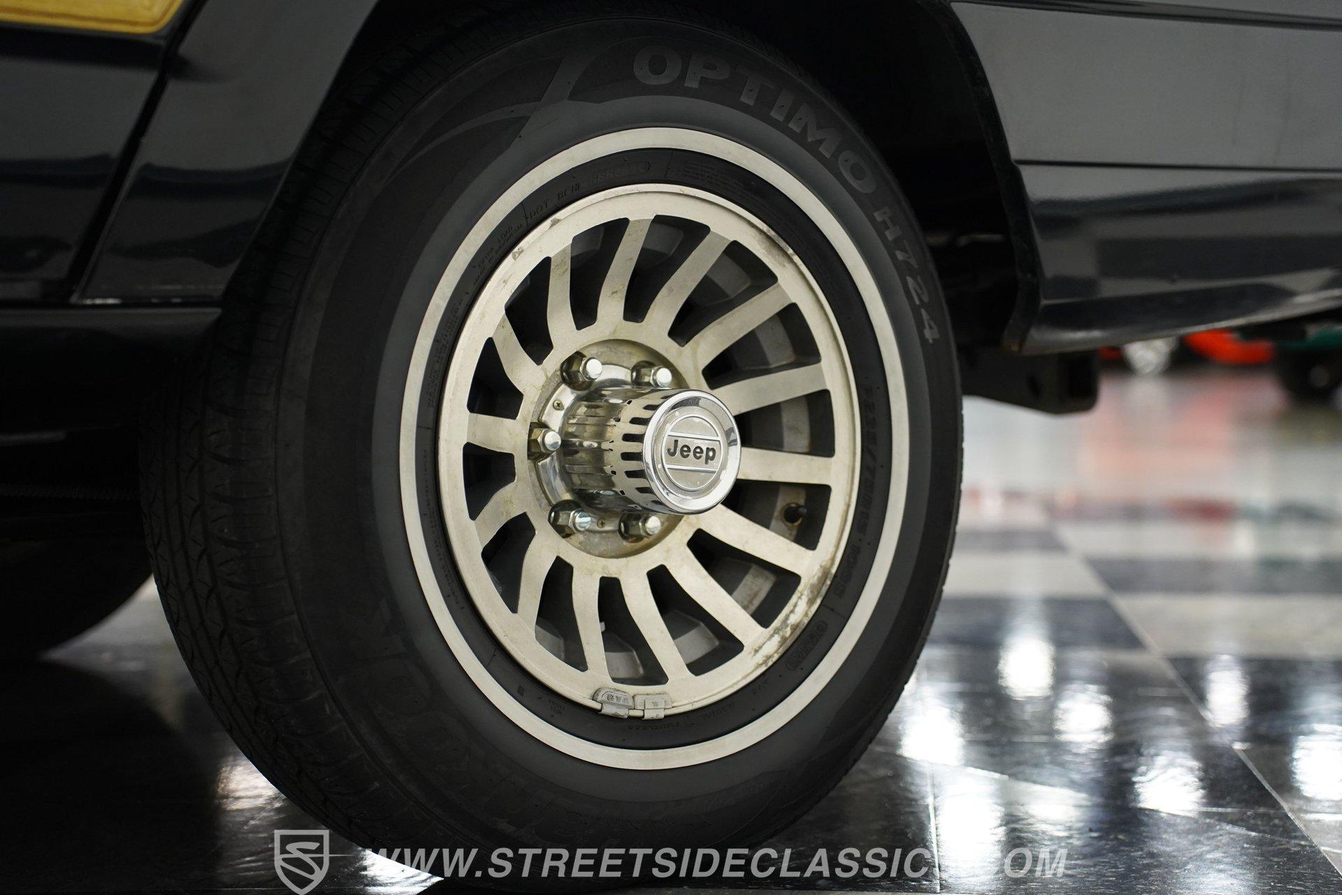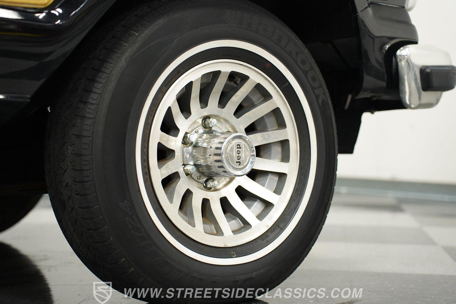 Although the CJ and Wrangler get much of the attention when it comes to Jeep vehicles, this 1988 Jeep Grand Wagoneer reminds us that the iconic manufacturer was also capable of producing a memorable luxury SUV. With only 149,521 believed actual miles on its odometer, this big sport utility vehicle is fully repainted in black, complemented by its unmistakable signature woodgrain paneling. With its full tow hitch, trailer brake controller, four-wheel-drive, and big 20-gallon fuel tank, this Grand Wagoneer is ready to go wherever your imagination can dream up. Inside, we find a mostly stock, possibly original, maroon vinyl-and-cloth interior. A folding armrest and a custom cupholder over the transmission tunnel separate a pair of plush bucket seats. A two-spoke, power-assisted steering wheel sits just ahead of a five-pod gauge cluster, featuring a square 100 mph speedometer flanked by a pair of rectangular auxiliary gauges on either side. An upgraded Pioneer AM/FM/CD/AUX head unit also offers Bluetooth connectivity, providing a significant upgrade in entertainment options over the original unit it replaces. Power seats, locks, and windows, along with a sunroof, air conditioning and cruise control, offer all the modern amenities anyone could ask for in the late 1980s. Under the hood, we find a big 5.9-liter overhead valve Jasper V-8 engine. This replacement motor has approximately 10,000 miles on it, leaving plenty of life left for its next owner. Power is routed through an A727 Torqueflite three-speed automatic transmission before heading out to either the rear wheels or all four corners via a pair of Dana front and rear axles. HIGHLIGHTS: Woodgrain Paneling Full Black Repaint 149,521 Believed Actual Miles 360 CID Jasper V8 10K Miles on Motor Single Two Barrel Carb A727 Three Speed Auto Four Wheel Drive Power Brakes Front Disc Brakes Power Steering Mostly Stock Maroon Interior Power Seats Power Windows Power Locks AC Cruise Custom Cupholder Pioneer AM/FM/CD/AUX Bluetooth Sunroof This 1988 Jeep Grand Wagoneer rides on a factory-style suspension, while power brakes featuring a pair of front discs stand ready to scrub off speed whenever needed. Whether it is to drive or collect, this woodgrain Wagoneer will forever stand out in the memories of everyone who had the pleasure of seeing it riding down the highway or over the trails. So if you have been looking for one, this is the truck for you. But don't wait, call today!