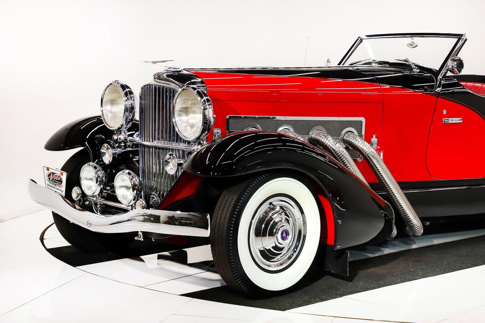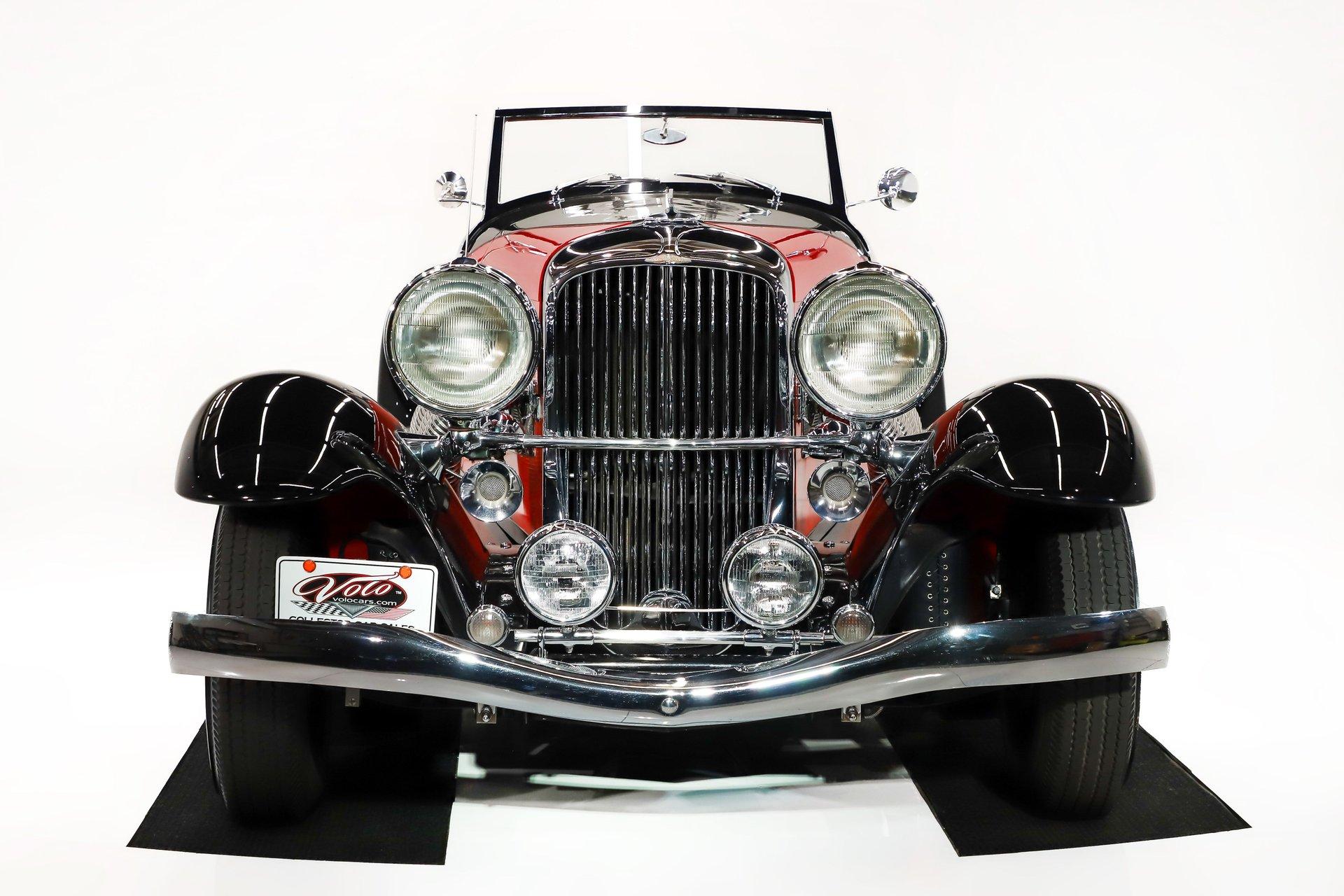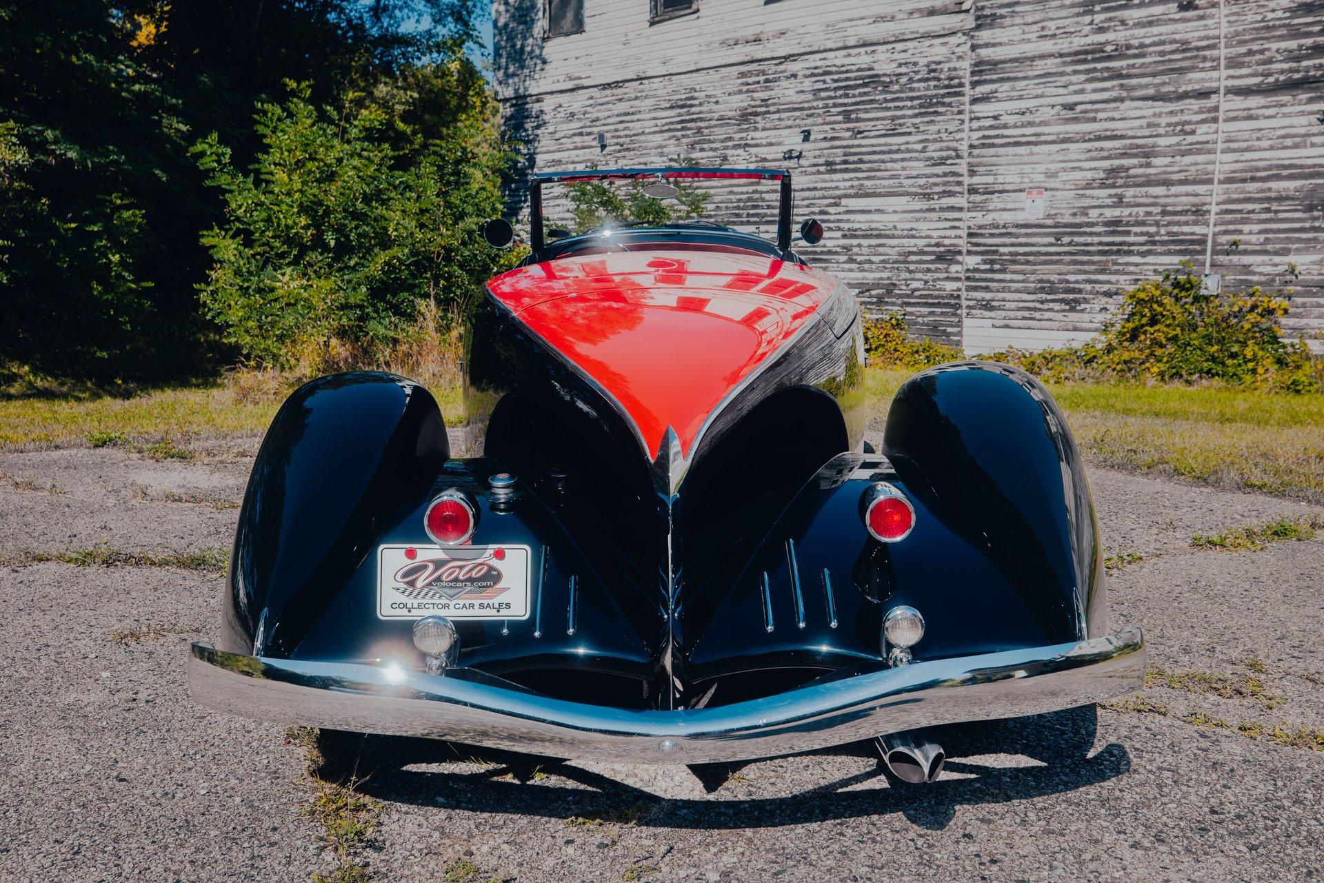 Celebrating our 65 year anniversary! This family owned and operated business was established in 1960, making us the oldest classic car dealership in America. Special thank you to all our customers for entrusting us to park the car of your dreams in your driveway while preserving automotive history for future generations to embrace and enjoy. -Grams family & Volo Museum staff INTRODUCTION: What could you drive that would capture more attention than a Rolls Royce or even a Lamborghini? The Duesenberg ll! This continuation was created as the ultimate modern classic with the objectives of recapturing the aesthetic elegance of the original in a car that was comfortable and practical to use. Over a span of about 35 years only 71 continuation Duesenbergs were made total, there were five models and this is #6 of just 27 speedsters. They're built Ford tough! Each one started with a brand new Ford F-150 truck chassis offering reliable and comfortable performance. Cosmetically each one was built to be virtually indistinguishable from the original. These were factory built, 5,000 hours went into each one which made the cost and wait time considerable. Many people that have owned a Duesenberg II are also collectors of the originals and say they enjoy these more, you can use them! EXTERIOR: Modeled after the 1933 SJ Speedster, one of the fastest production cars of that era. It's only fitting that it looks the part too! Its size is impressive, yet it still looks fast sitting still! The long hood has supercharger pipes flanking each side, the boattail back end and the four boattail fenders effortlessly slice through the air. It is made of a sturdy fiberglass with a steel frame. The body is in excellent shape. The paint presents beautifully, onlookers will be in awe. Although there are touch ups and blemishes from age. The black and red is a stunning combination, under the fenders are even painted red. The chrome lights, grill and medallions are authentic. The convertible top is a rich black cloth with red piping. Of all the models this one is the most all weather friendly, the top folds easily and the windows are power. In an era of spoke wheels, even the smooth hubcaps look aerodynamic. The authentic wrapped in whitewall tires are the finishing touch. INTERIOR: The red pops! It's the same red as the exterior. The seat and door panels are genuine leather. Authentic dash with machine turned panel, a full set of instrumentation including an altimeter, beveled glass lenses. Below the dash a wood panel cleverly conceals the modern amenities such as the stereo, heater controls and power windows. This one has been upgraded with an authentic style steering wheel. Down on the floor is dark red carpet and an automatic shifter that looks like the original 3-speed manual. ENGINE COMPARTMENT: 351s were used in most, this car is equipped with a big 460 motor! Again it was brand new from Ford when built and most all of the components attached to it are factory Ford components. There is only 8,500 miles on this drivetrain, it can be serviced anywhere a Ford can be serviced. TRUNK COMPARTMENT: This model offers the most cargo space. The lid behind the seat opens to give access to a large carpeted trunk. You can easily fit luggage, golf clubs or a shopping spree in there. UNDERSIDE: It's Ford tough! Built on a new F150 truck chassis, can be serviced at Ford. The steering, brakes, suspension are stock. Looking up at the motor it is stock, so is the heavy duty C6 automatic and 9 inch rear. This one has a custom fuel tank, a Flowmaster muffler for a little growl and a battery cut off switch. We also had leather boots made for the front springs. It's very clean even under this car. SERVICE: We take pride in our cars and reputation. Therefore, we built a 2 million dollar, 10,000 square ft service center, and hired a team of technicians to service the essentials on every car we sell. CONCLUSION: Bottomline, this is a car for you! You don't need to be Jay Leno, you don't need to be a billionaire or 90 years old. I believe if there were a new Lamborghini, Bugatti and a Rolls Royce, this would steal the attention! This costs a fraction of what those cost! For nearly 30 years, I, Jay Grams, have personally written the highlights for almost every car in our collection. What I provide is my professional opinion based on my experience with these vehicles. However, opinions can vary, and I strongly recommend a personal inspection to form your own view. Our sales team is always available to answer any questions you may have. One great option is to request a personalized walk-around video, where we can showcase the car and share our team’s insights. **Our cars are displayed within a museum setting. If you are interested in a specific vehicle, please schedule an appointment with a salesperson to view it. Without an appointment, there is an admission fee to enter the showroom. If you decide to purchase a car, your admission will be refunded, and you'll receive a one-year museum membership. ☎️ 815 385 3644 9-5 central ? Sales@volocars.com Answered ASAP Air conditioning Power steering Power disc brakes Power windows Full instrumentation Leather upholstery Pilot Ray lights Supercharger pipes Wheel discs Whitewalls