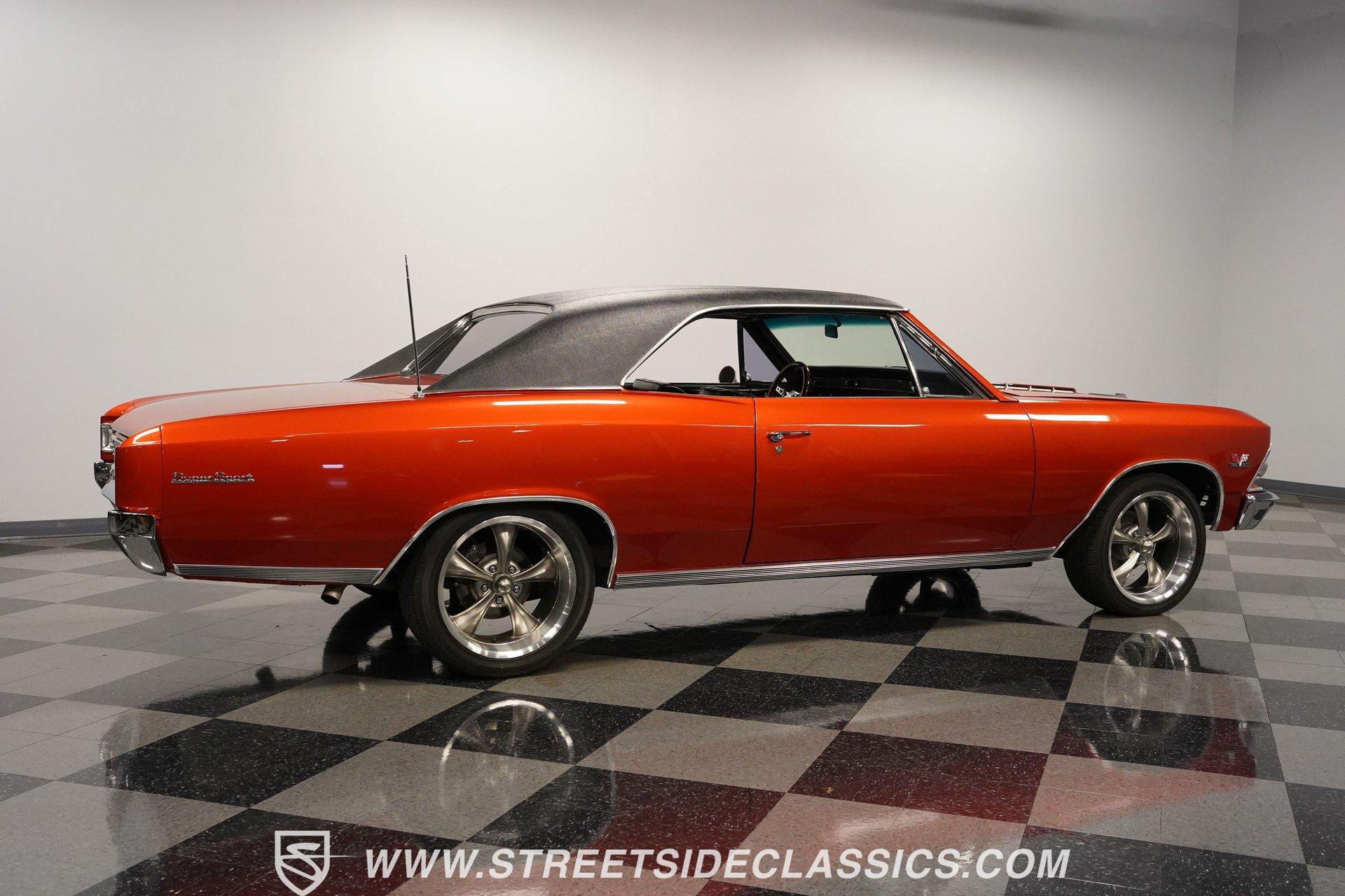 Owning a classic car is more than just having a vehicle; it's about embracing a piece of history that turns heads and stirs memories. Imagine cruising down the road in a car that not only embodies the spirit of the 1960s muscle car era but also offers a thrilling driving experience with modern touches. This 1966 Chevrolet Chevelle SS 454 Tribute is a stunning example of that blend, showcasing a bold orange metallic finish and the iconic SS badging that commands attention wherever it goes. If you're searching for a classic muscle car that delivers both style and power, this Chevelle could be the perfect match. Step inside to experience a well-preserved interior that balances vintage charm with thoughtful upgrades. The black vinyl seats offer comfort, complemented by a clean headliner, carpet, and dash pad. A digital gauge cluster maintains a classic look but with modern reliability, and the Hurst 4-speed shifter combined with an aftermarket wood steering wheel adds a touch of custom style to the cabin. Under the hood, this Chevelle boasts a rebuilt 454 V8 engine, paired with a smooth-shifting Muncie 4-speed manual transmission. The powerful big block engine is enhanced with aluminum heads, a high-rise aluminum intake manifold, a Brawler 4-barrel carburetor, and Hedman long tube headers, all cooled by an aluminum radiator. The drivetrain includes a GM 12-bolt rear end and a stock-style suspension with rear air bags for added comfort. Power steering and manual 4-wheel disc brakes ensure responsive handling and stopping power, while dual exhaust with FlowMaster mufflers completes the aggressive performance package. Highlights 1966 Chevrolet Chevelle SS 454 Tribute Bold Orange Metallic Paint Finish 454 V8 Engine Muncie 4-Speed Manual Transmission Aluminum Heads and High-Rise Intake Brawler 4BBL Carburetor Hedman Long Tube Headers Aluminum Radiator GM 12-Bolt Rear End 4-Wheel Disc Brakes Power Steering Vinyl Interior with Digital Gauges Aftermarket Wood Steering Wheel 18" Ridler Wheels with Sumitomo Tires Financing Available Vehicle Protection Plans Available Worldwide Shipping This 1966 Chevrolet Chevelle SS 454 Tribute offers an exciting blend of classic muscle car aesthetics with performance and comfort upgrades that make it a joy to drive and show. Whether you're a seasoned collector or a muscle car enthusiast looking for a standout ride, this Chevelle is a compelling choice. Call, email, or come visit our showroom today!