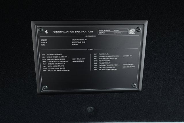 Ferrari California T- SPECIAL HANDLING PACKAGE -- FERRARI CERTIFIED PRE-OWNED - AVAILABLE EXTENDED FERRARI WARRANTY -- Grigio Silverstone over Rosso Ferrari - Two Owners - Excellent Condition - Many Fine Options - Sold as New by Our Dealership - Expertly Maintained by Our Factory Trained Technicians - Available Extended Warranty and Maintenance Plans -Factory Options:- Special Handling Package- Carbon Fiber Driver Zone with LED Steering Wheel- 20-inch Forged Dark Painted Wheels- Yellow Brake Calipers- Scuderia Ferrari SHields- Full Electric Seats- Cavallino Stitched to Headrests in Grigio Scuro- Special Stitching in Grigio Scuro- Seat Piping in Charcoal- Colored Steering Wheel in Rosso Ferrari- Leather Center Console in Rosso Ferrari- Embroidered Mats with Logo- Inner and Outer Electrochromic Mirrors with HomeLink- Parking Camera- Red Rev Counter- Tire Pressure Management SystemIf you are in the market for a Ferrari California T, please call or email us today.This Ferrari has passed a multi-point inspection performed by our factory trained technicians, and has been enrolled in the Ferrari Approved Certified Pre-Owned Program. The Certified program makes available up to two years of additional Ferrari Power Approved Warranty coverage. Please see dealer for more details.