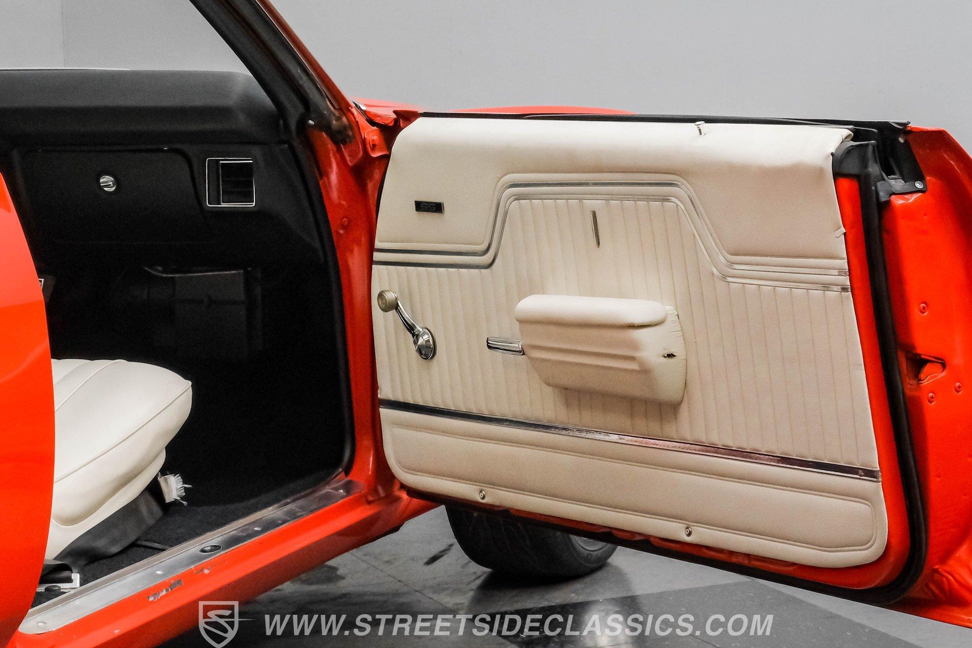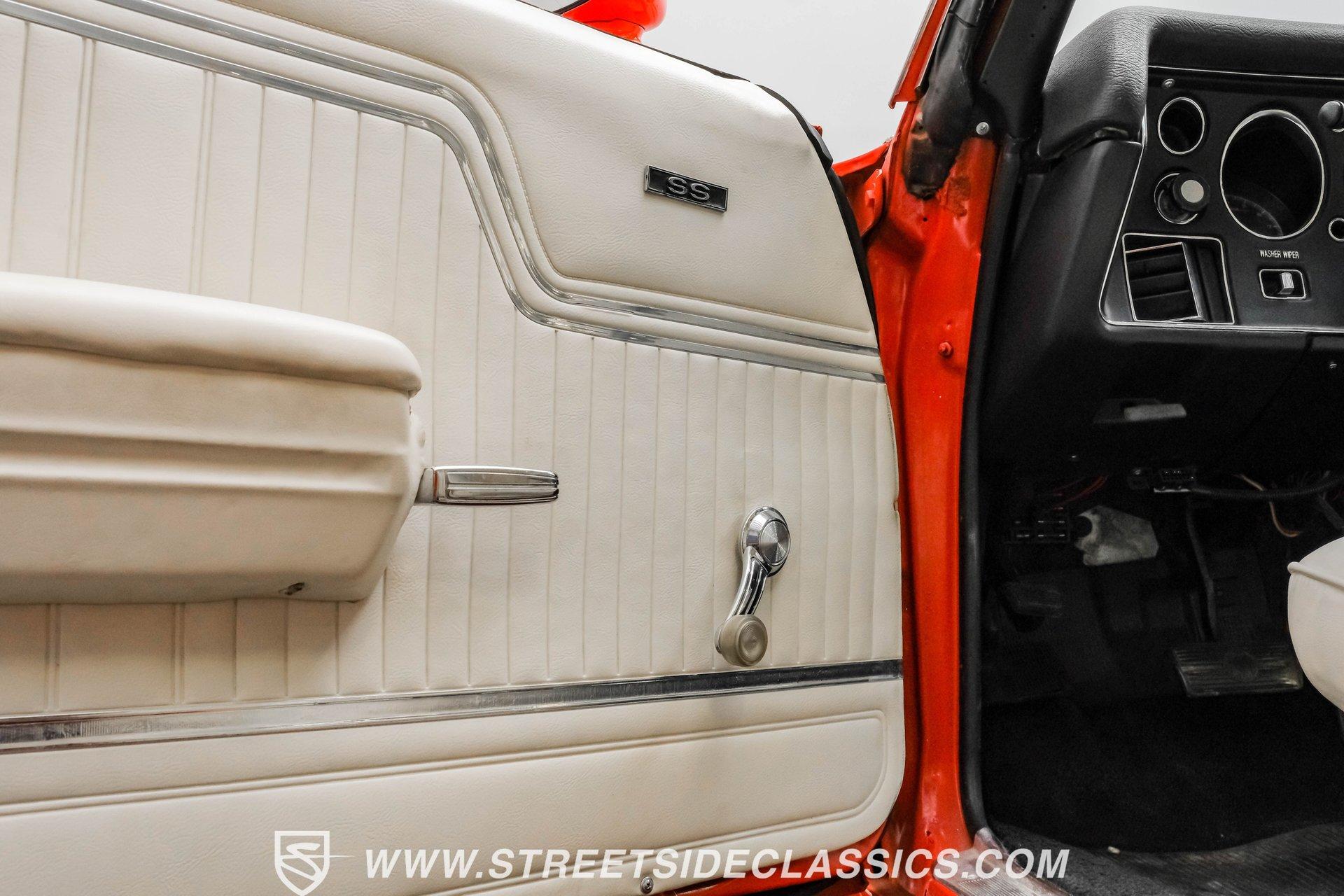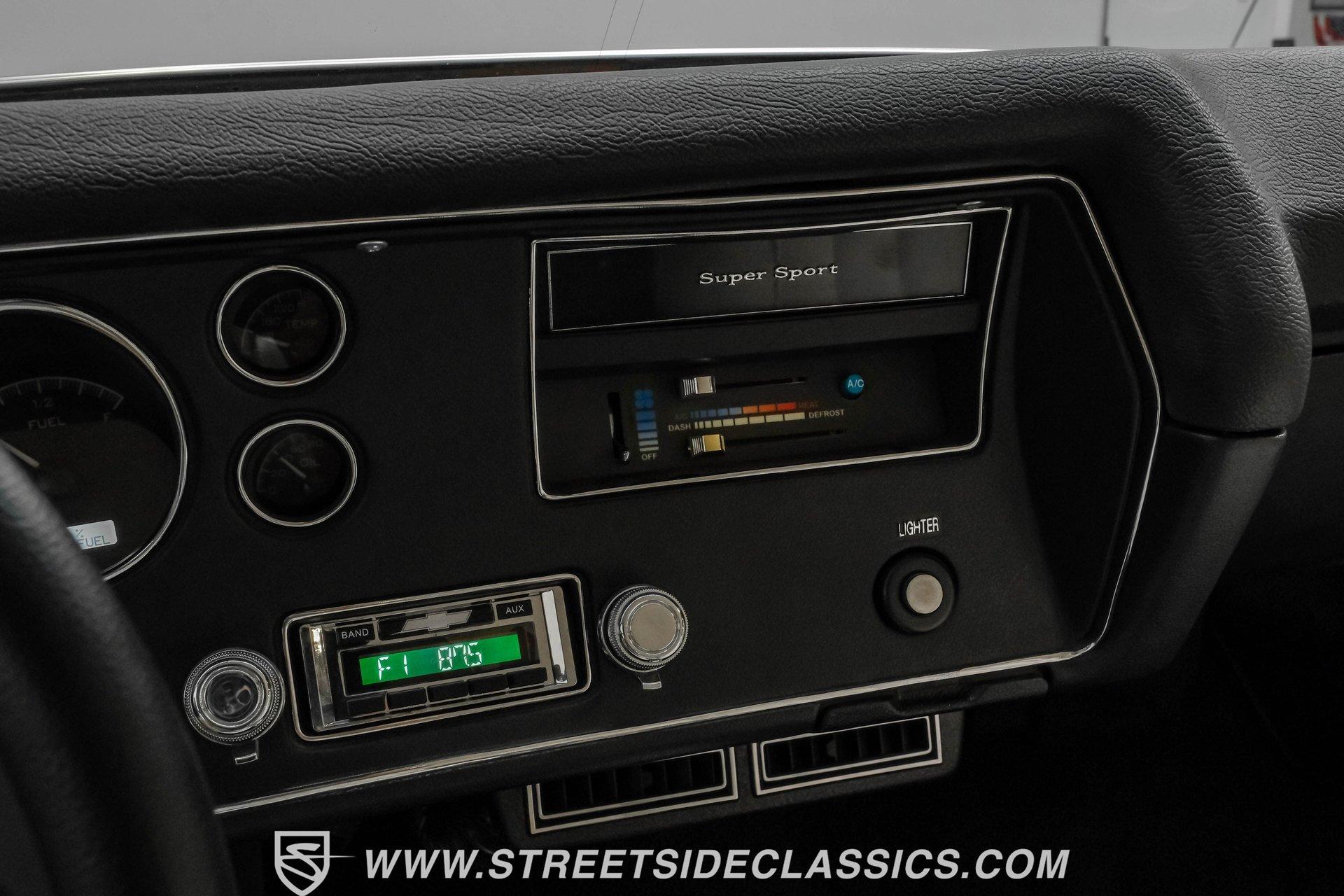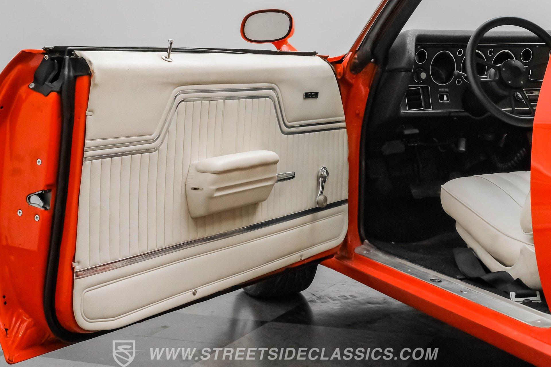 Few names from the Golden Age of muscle cars inspire more intimidation and respect than the Chevelle. In fact, the only way to make one of GM's baddest cars even meaner is to use modern technology to improve its performance. That thinking is why this 1972 Chevrolet Chevelle Malibu SS Restomod is the perfect choice for anyone looking for a powerful old-school-meets-new-school vehicle that turns heads everywhere it goes. Fully repainted in its original Orange Flame exterior paint, a 1972-only option, this car also sports dual full-length black racing stripes to give it an even more imposing presence. Inside, we find a well-appointed, correct-looking interior that has been subtly upgraded. A custom three-spoke leather-wrapped steering wheel sits before a three-pod digital/analog hybrid gauge cluster. An AM/FM/Aux RetroRadio handles tunes while the center console and staple-style shifter add a touch of practical flair. An aftermarket air-conditioning system is the perfect addition to keep your legs from sticking to the custom white vinyl-trimmed Strato bucket seats. Under the cowl hood of this Chevelle sits a modern 5.3-liter LS Vortec V-8. With its aluminum block and 862 aluminum heads, this small block has a power-to-weight ratio better than almost originally available in 1972. Using electronic fuel injection, shorty-style headers, and a dual exhaust capped off with a sweet-sounding FlowMaster exhaust, this Chevelle has plenty of bark to back up its wicked bite. That power gets routed through a 4L60E four-speed automatic transmission before being sent out to a ten-bolt rear. HIGHLIGHTS: Full Orange Flame Repaint 5.3L Vortec LS V8 862 Aluminum Heads EFI Shorty Headers w/ FlowMaster Exhaust 4L60E Four Speed Auto Power Brakes w/ Front Disc Power Steering Custom Steering Wheel Strato Bucket Seats RetroRadio Stereo Digital Analog Gauges Aftermarket AC Staple Style Shifter Factory Buildsheet This 1972 Chevrolet Chevelle SS Restomod rides on a lowered suspension and features a set of staggered American Racing wheels. Seventeen-inch units up front and bigger eighteen-inch in back, giving this car a menacing stance from any angle. Power steering and power front disc brakes add just enough convenience to make driving fun without being work. If you've always loved and wanted a classic Chevelle but also enjoy the perks of modern engineering, this car combines the best of both worlds and is just the one you've been waiting for. Call today!