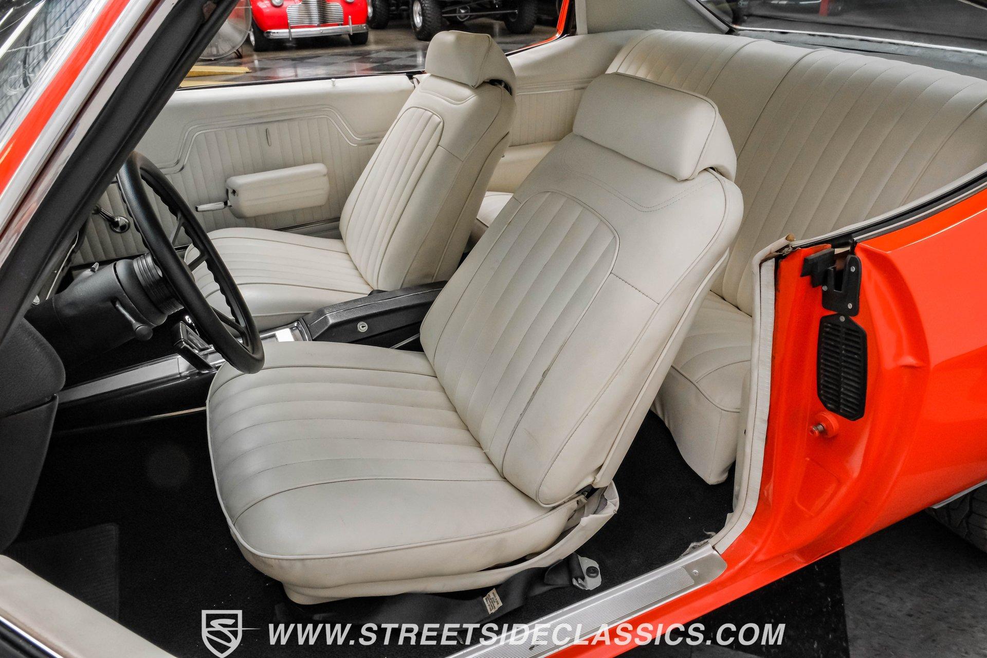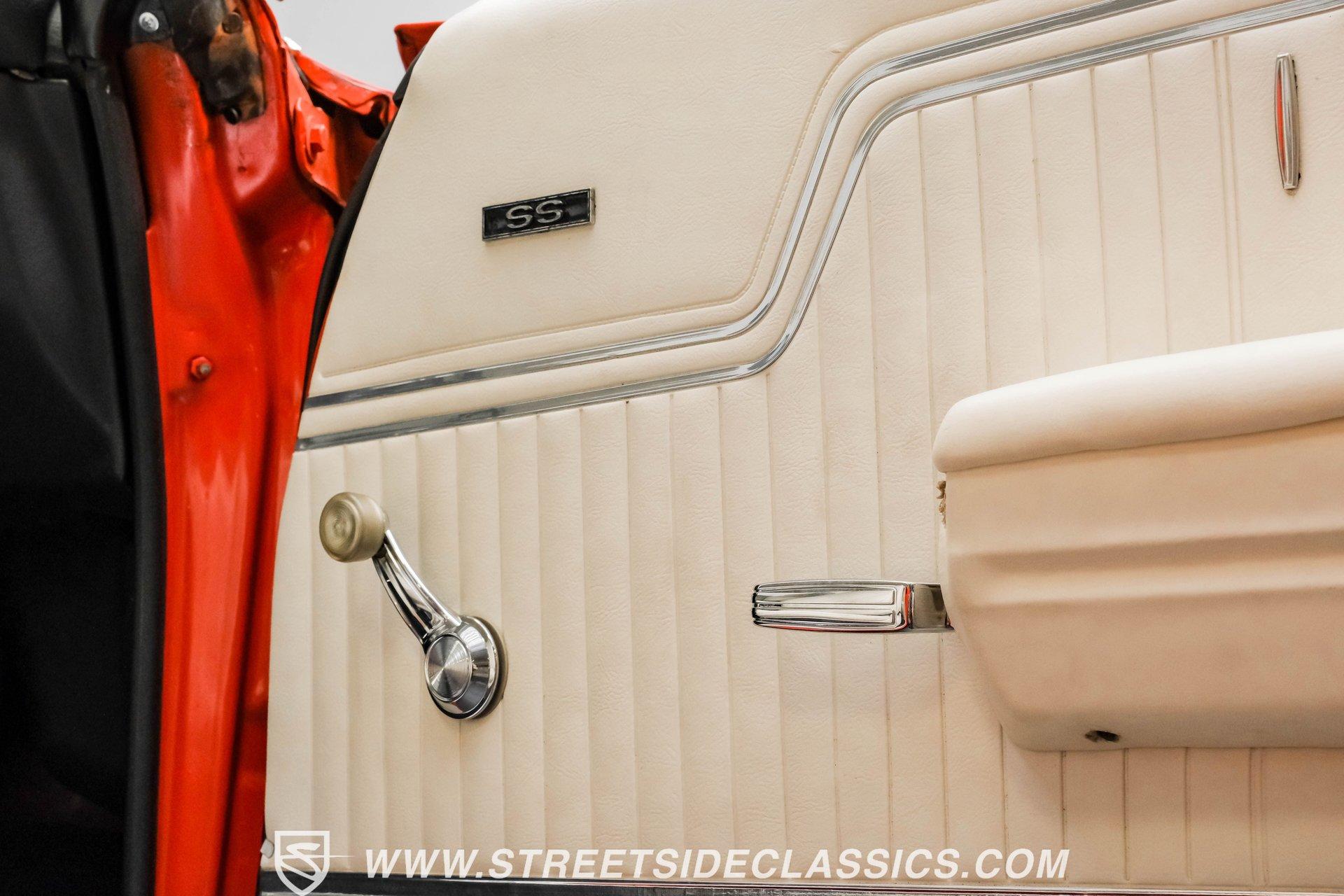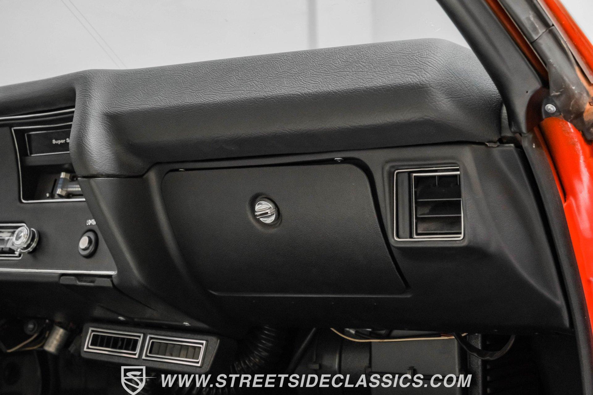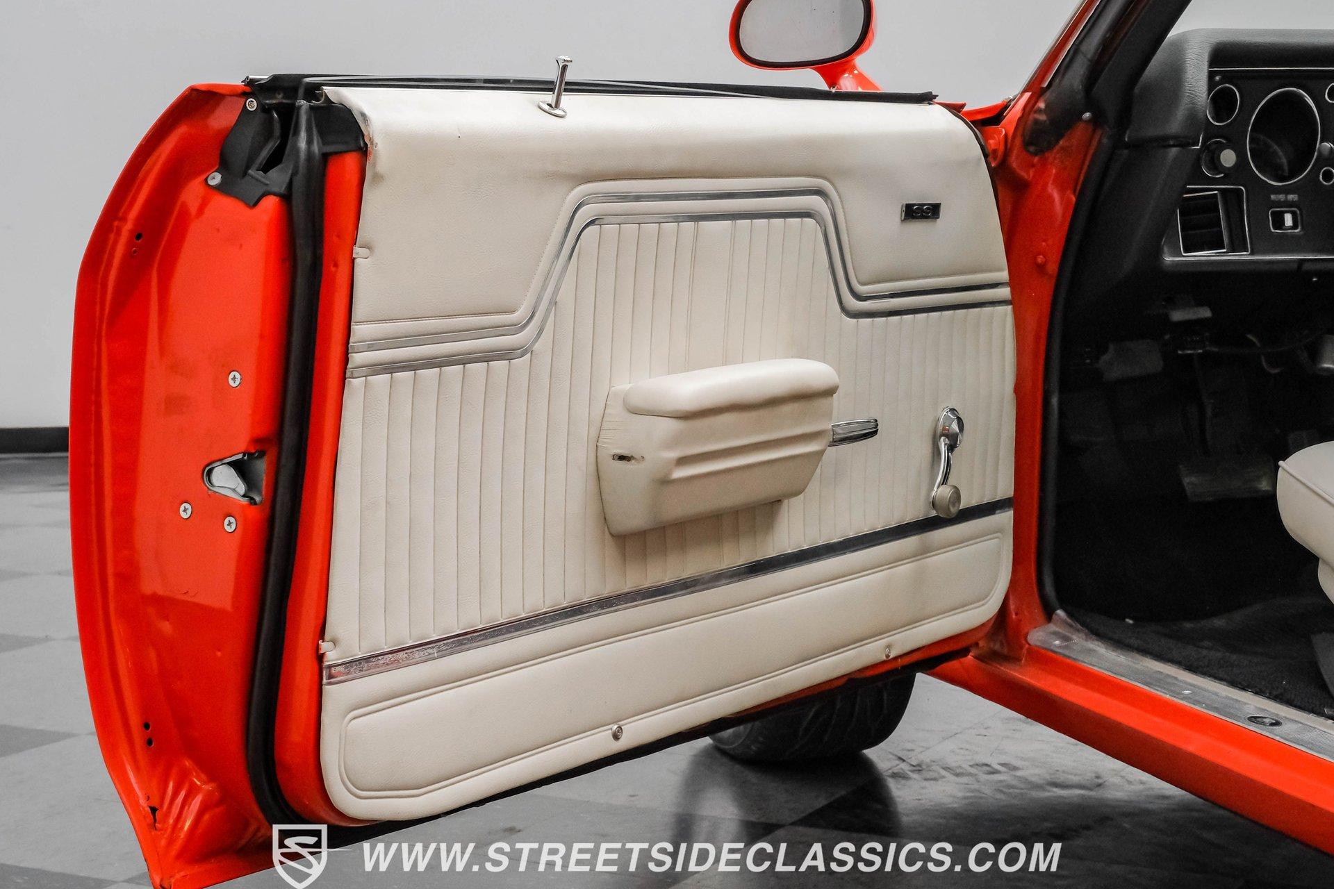 Few names from the Golden Age of muscle cars inspire more intimidation and respect than the Chevelle. In fact, the only way to make one of GM's baddest cars even meaner is to use modern technology to improve its performance. That thinking is why this 1972 Chevrolet Chevelle Malibu SS Restomod is the perfect choice for anyone looking for a powerful old-school-meets-new-school vehicle that turns heads everywhere it goes. Fully repainted in its original Orange Flame exterior paint, a 1972-only option, this car also sports dual full-length black racing stripes to give it an even more imposing presence. Inside, we find a well-appointed, correct-looking interior that has been subtly upgraded. A custom three-spoke leather-wrapped steering wheel sits before a three-pod digital/analog hybrid gauge cluster. An AM/FM/Aux RetroRadio handles tunes while the center console and staple-style shifter add a touch of practical flair. An aftermarket air-conditioning system is the perfect addition to keep your legs from sticking to the custom white vinyl-trimmed Strato bucket seats. Under the cowl hood of this Chevelle sits a modern 5.3-liter LS Vortec V-8. With its aluminum block and 862 aluminum heads, this small block has a power-to-weight ratio better than almost originally available in 1972. Using electronic fuel injection, shorty-style headers, and a dual exhaust capped off with a sweet-sounding FlowMaster exhaust, this Chevelle has plenty of bark to back up its wicked bite. That power gets routed through a 4L60E four-speed automatic transmission before being sent out to a ten-bolt rear. HIGHLIGHTS: Full Orange Flame Repaint 5.3L Vortec LS V8 862 Aluminum Heads EFI Shorty Headers w/ FlowMaster Exhaust 4L60E Four Speed Auto Power Brakes w/ Front Disc Power Steering Custom Steering Wheel Strato Bucket Seats RetroRadio Stereo Digital Analog Gauges Aftermarket AC Staple Style Shifter Factory Buildsheet This 1972 Chevrolet Chevelle SS Restomod rides on a lowered suspension and features a set of staggered American Racing wheels. Seventeen-inch units up front and bigger eighteen-inch in back, giving this car a menacing stance from any angle. Power steering and power front disc brakes add just enough convenience to make driving fun without being work. If you've always loved and wanted a classic Chevelle but also enjoy the perks of modern engineering, this car combines the best of both worlds and is just the one you've been waiting for. Call today!