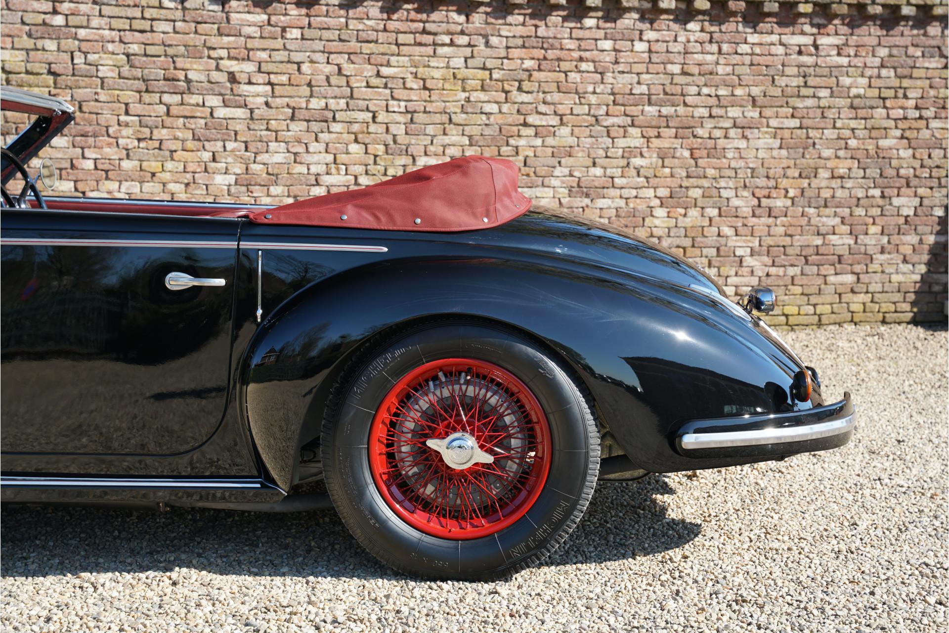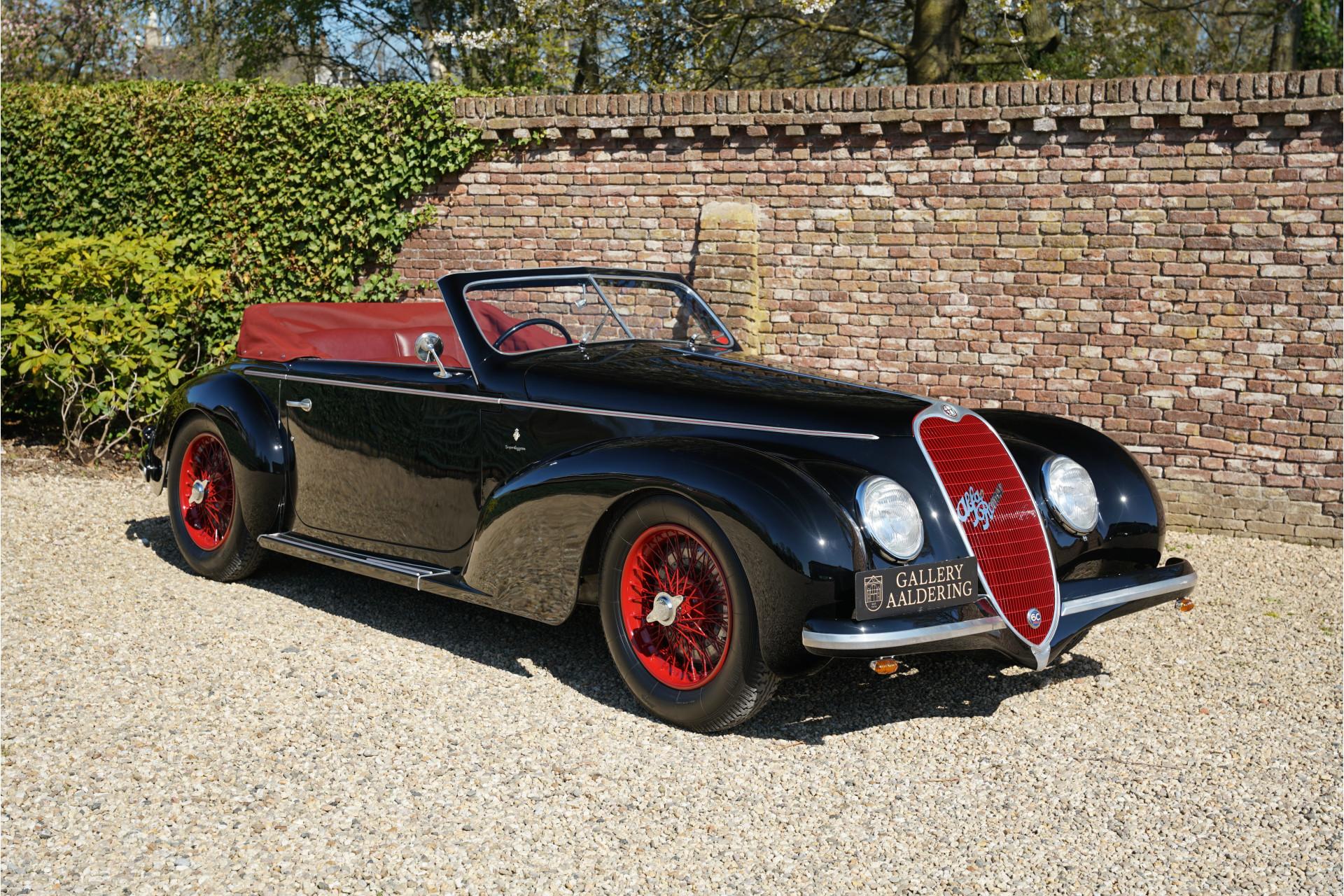 An immaculate and rare Alfa Romeo meticulously restored with all the period-correct parts and details. A distinguished prewar automobile that allows you to participate in the great events of the classic car world.