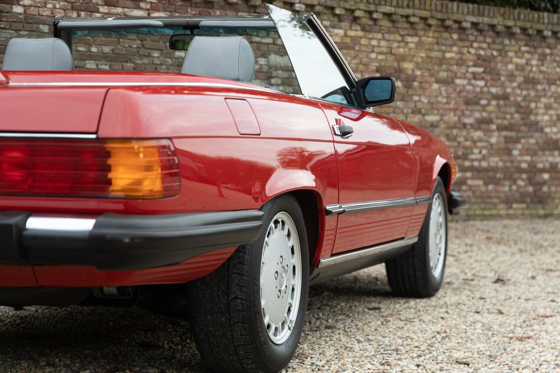 The Mercedes-Benz 560 SL. An icon from an era when Mercedes built cars with the precision of a Swiss watch. This 1986 Mercedes-Benz 560 SL was delivered new in—how fitting—The Garden State, New Jersey. Finished in Signal Red with Alpaca Grey leather upholstery, it's a color combination that says it all: timeless elegance with just the right touch of confidence. Even more remarkable, this example still retains most of its original paint.