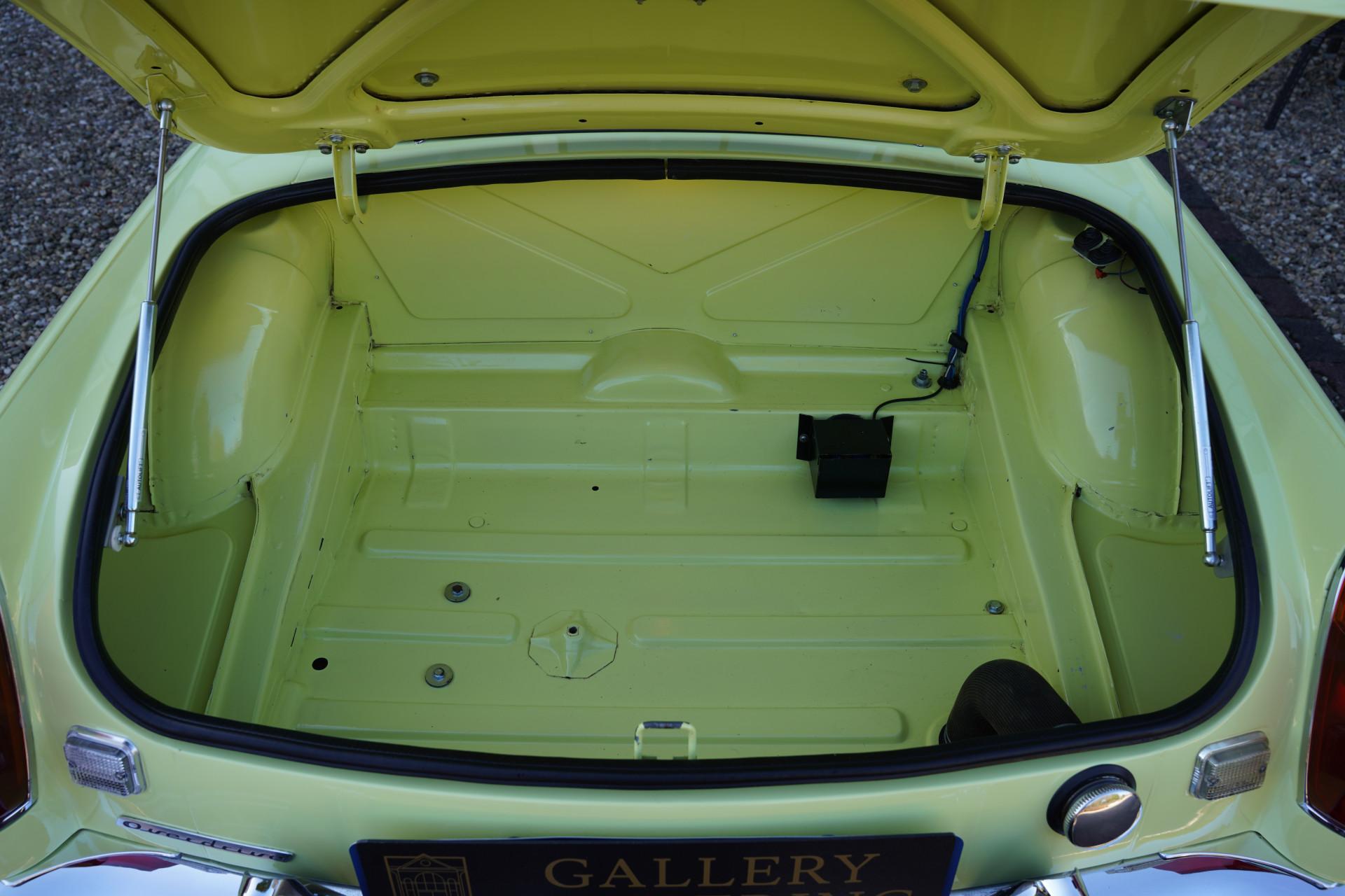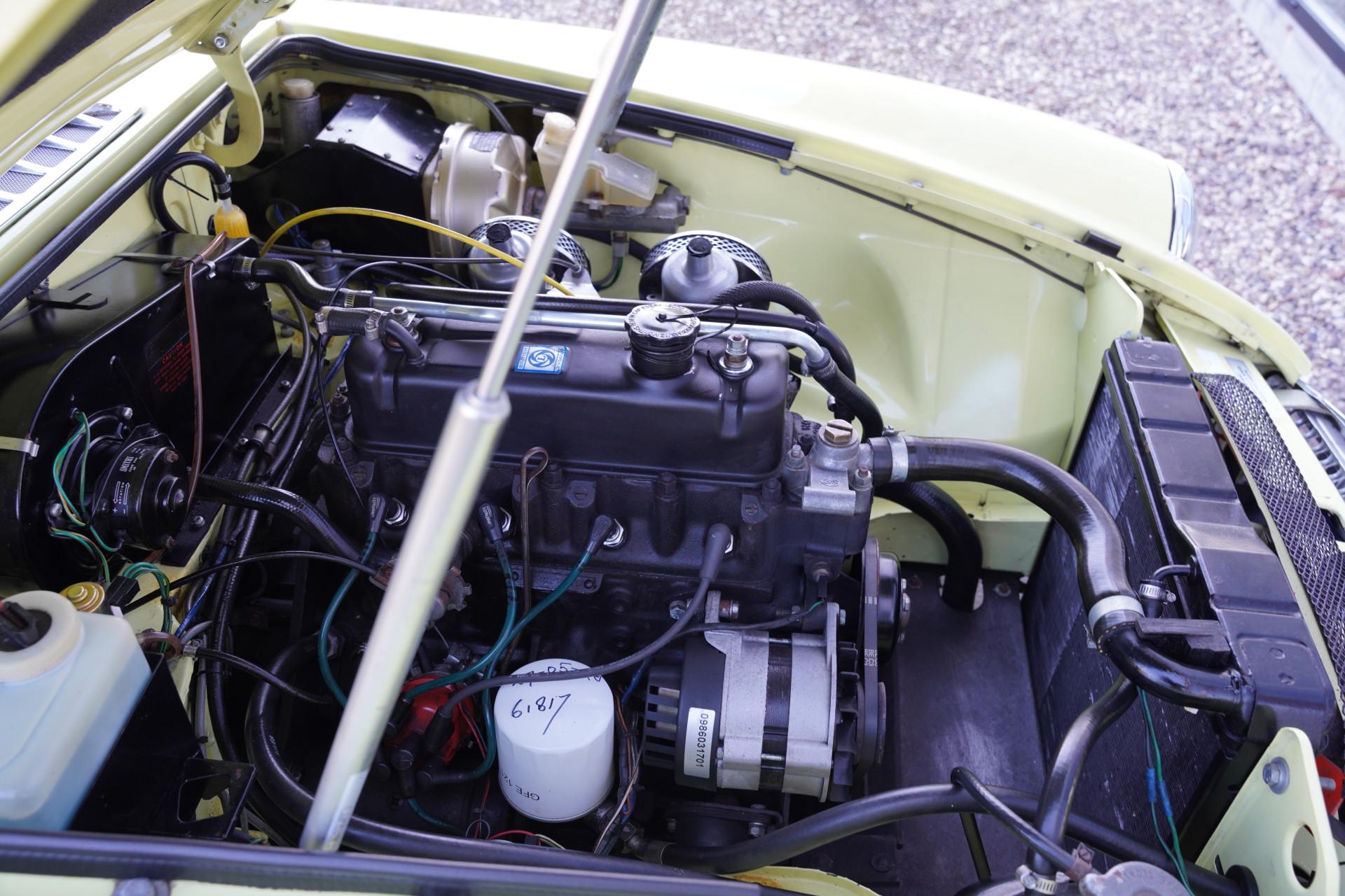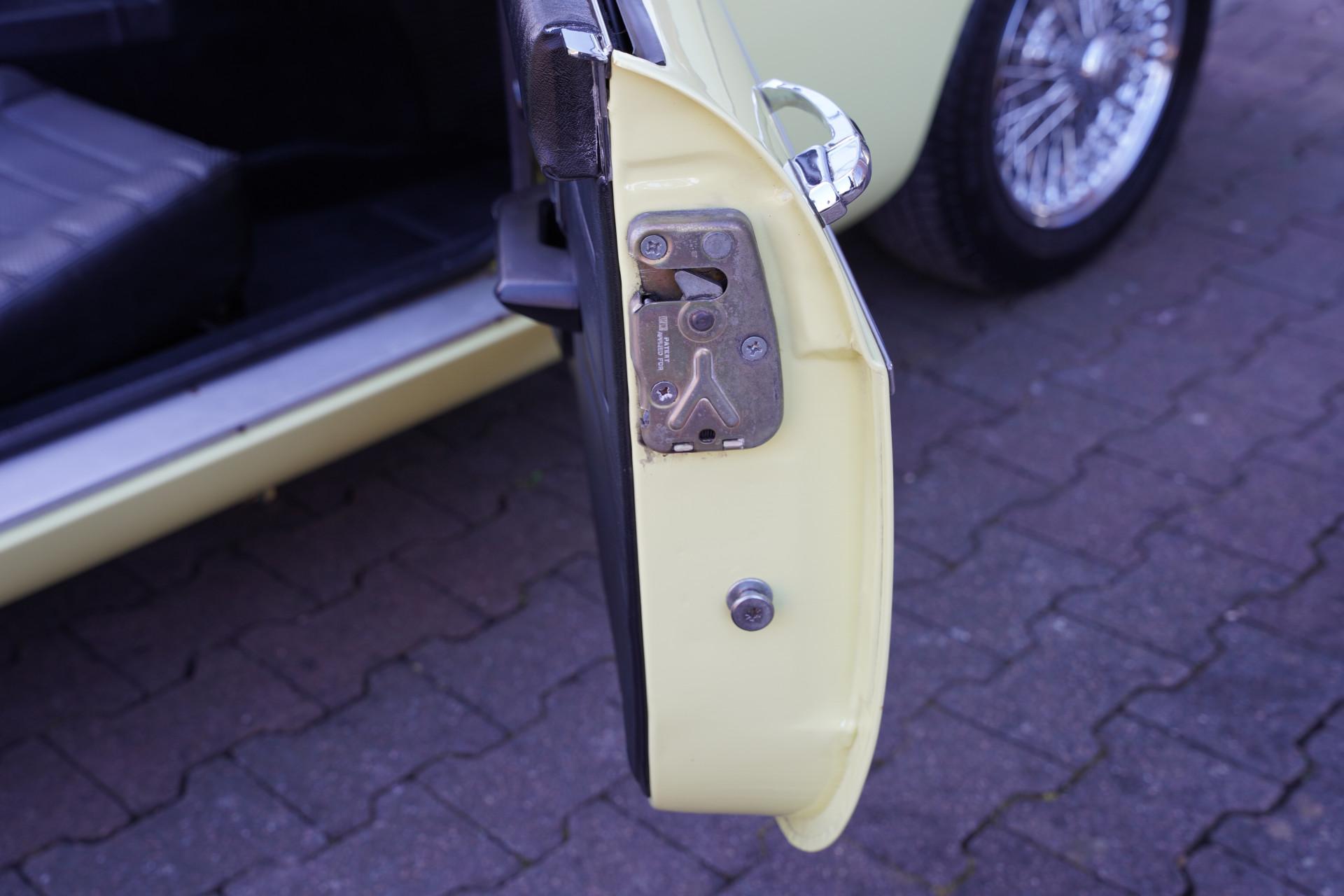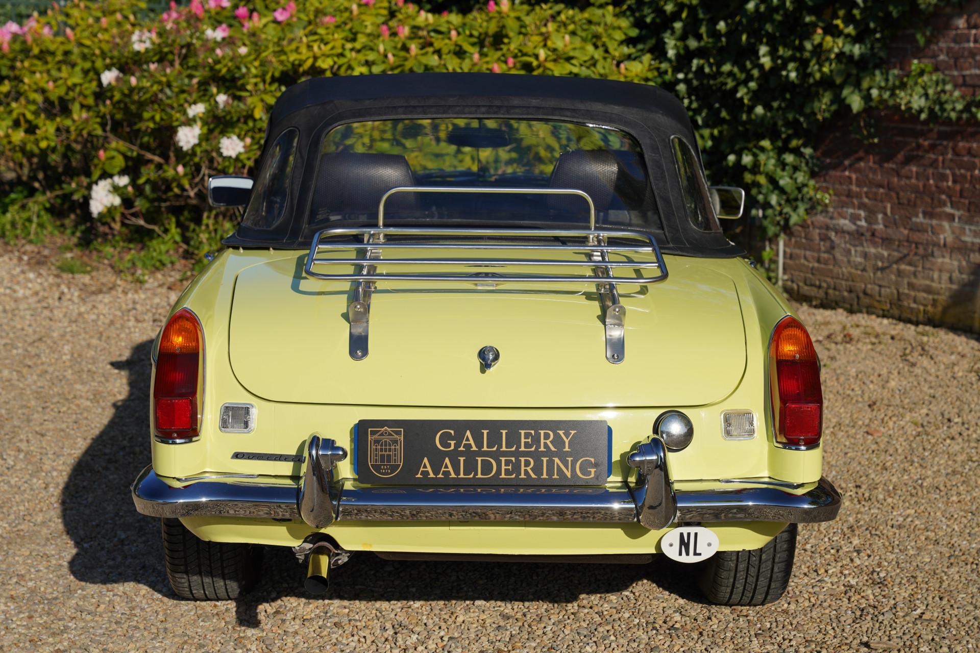 Experts will immediately notice that the production year of this particular model conflicts with the chrome bumpers is sports. However, there will be few people who see this as a drawback. The '77 B you see here was delivered new in the Netherlands and was sold to the owner after four years, who kept hold of it until now. The proud gentleman drove his soft yellow English convertible for over 40 years, during which the car underwent a complete restoration about halfway through that period. No half-measures and certainly not rushed: the two-seater was completely overhauled, and there is an enormous stack of invoices documenting the restoration. From the chrome bumpers and grille to the beautiful wire wheels and the tiniest bolt, everything that was replaced or restored during the restoration (and that list is almost endless) has been documented.
