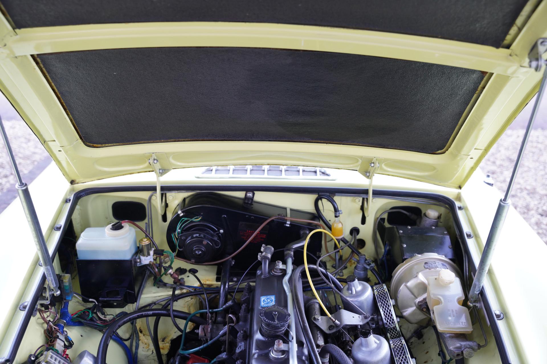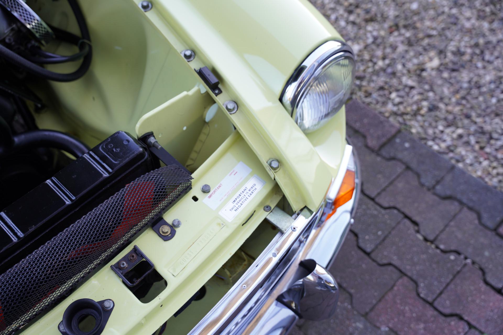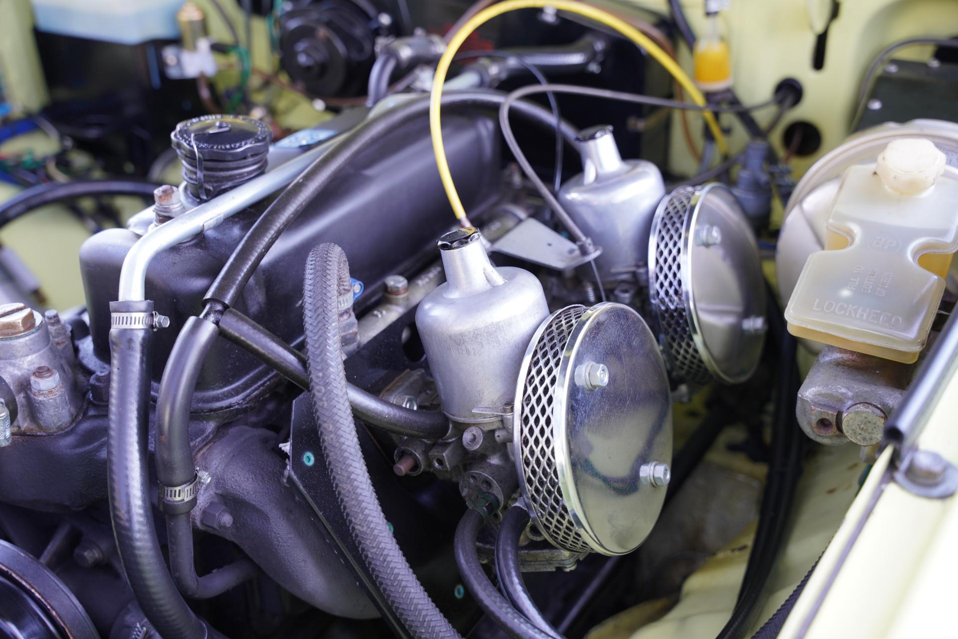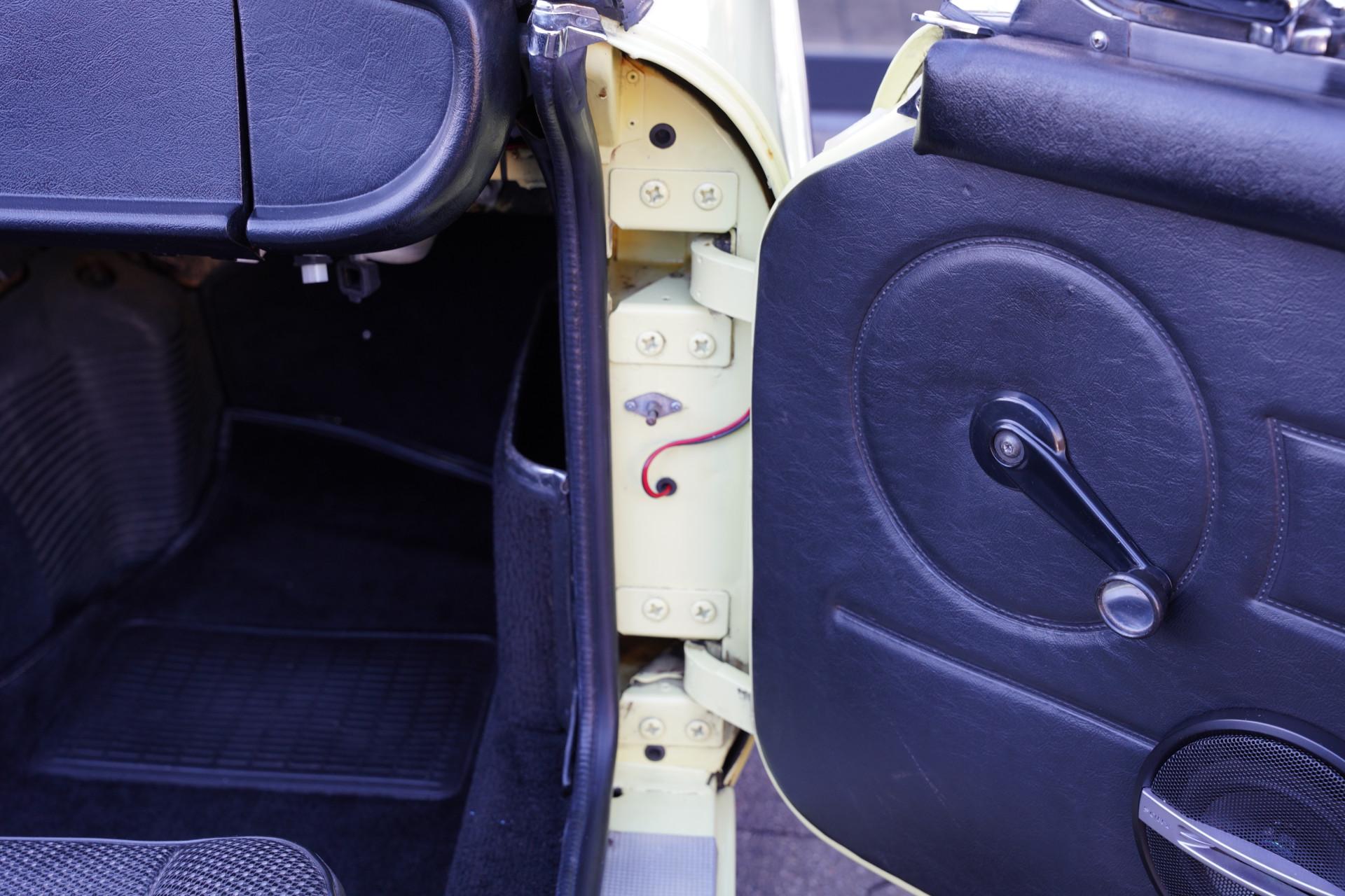 Experts will immediately notice that the production year of this particular model conflicts with the chrome bumpers is sports. However, there will be few people who see this as a drawback. The '77 B you see here was delivered new in the Netherlands and was sold to the owner after four years, who kept hold of it until now. The proud gentleman drove his soft yellow English convertible for over 40 years, during which the car underwent a complete restoration about halfway through that period. No half-measures and certainly not rushed: the two-seater was completely overhauled, and there is an enormous stack of invoices documenting the restoration. From the chrome bumpers and grille to the beautiful wire wheels and the tiniest bolt, everything that was replaced or restored during the restoration (and that list is almost endless) has been documented.