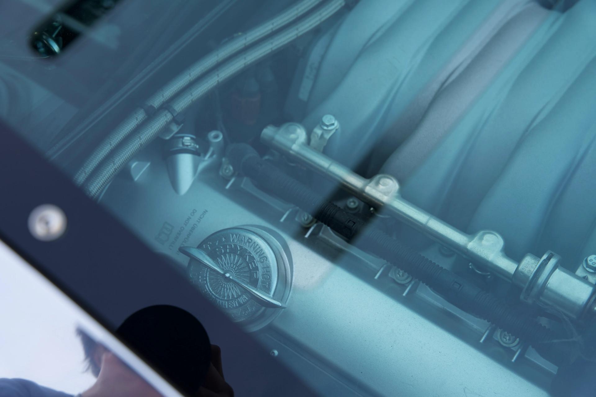 The car's interior is also pure art and is as good as new. The steering wheel has an airbag courtesy of Lamborghini due to the changed laws prohibiting the use of the brilliant air-bagless characteristic 4-spoke steering wheel. The gauges all carry the fine Spyker branding and keep you abreast of the car's vital functions during your trip. The instruments light up in eye-catching green. The seats are really comfortable made of leather sides and Alcantara centres are adorned with diamond stitching. The dashboard features brushed aluminium. The openwork gear mechanism is probably one of the more eye-catching features. Spyker was as a newcomer instantaneously as famous as Ferrari thanks to this kind of brilliant design. It not only looks great it works flawlessly as well, which is quite important in a purebred sports car.