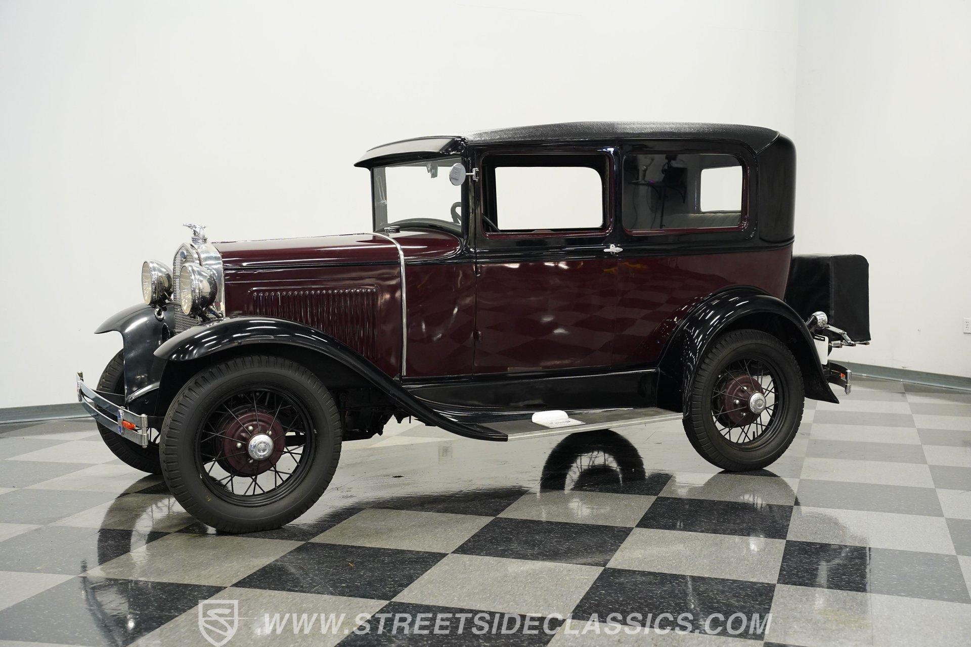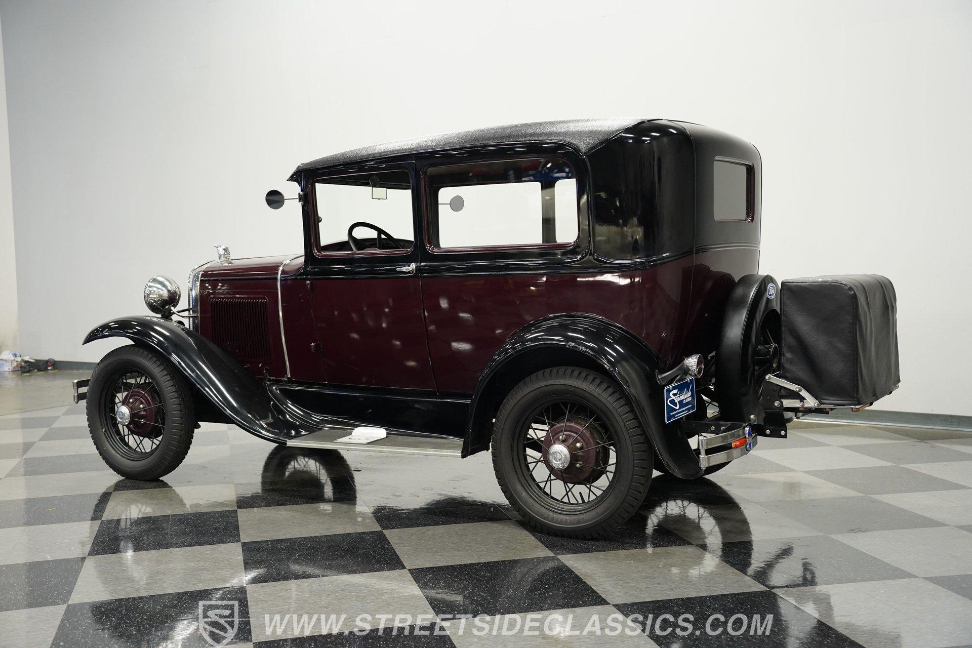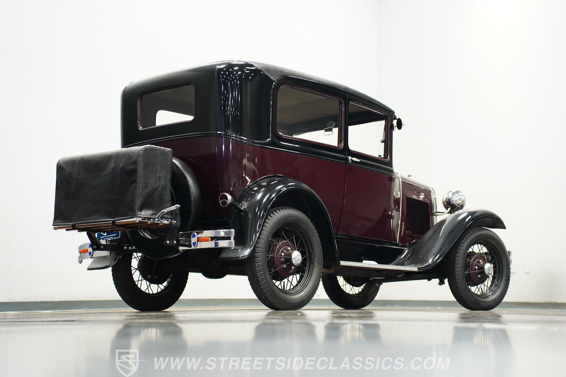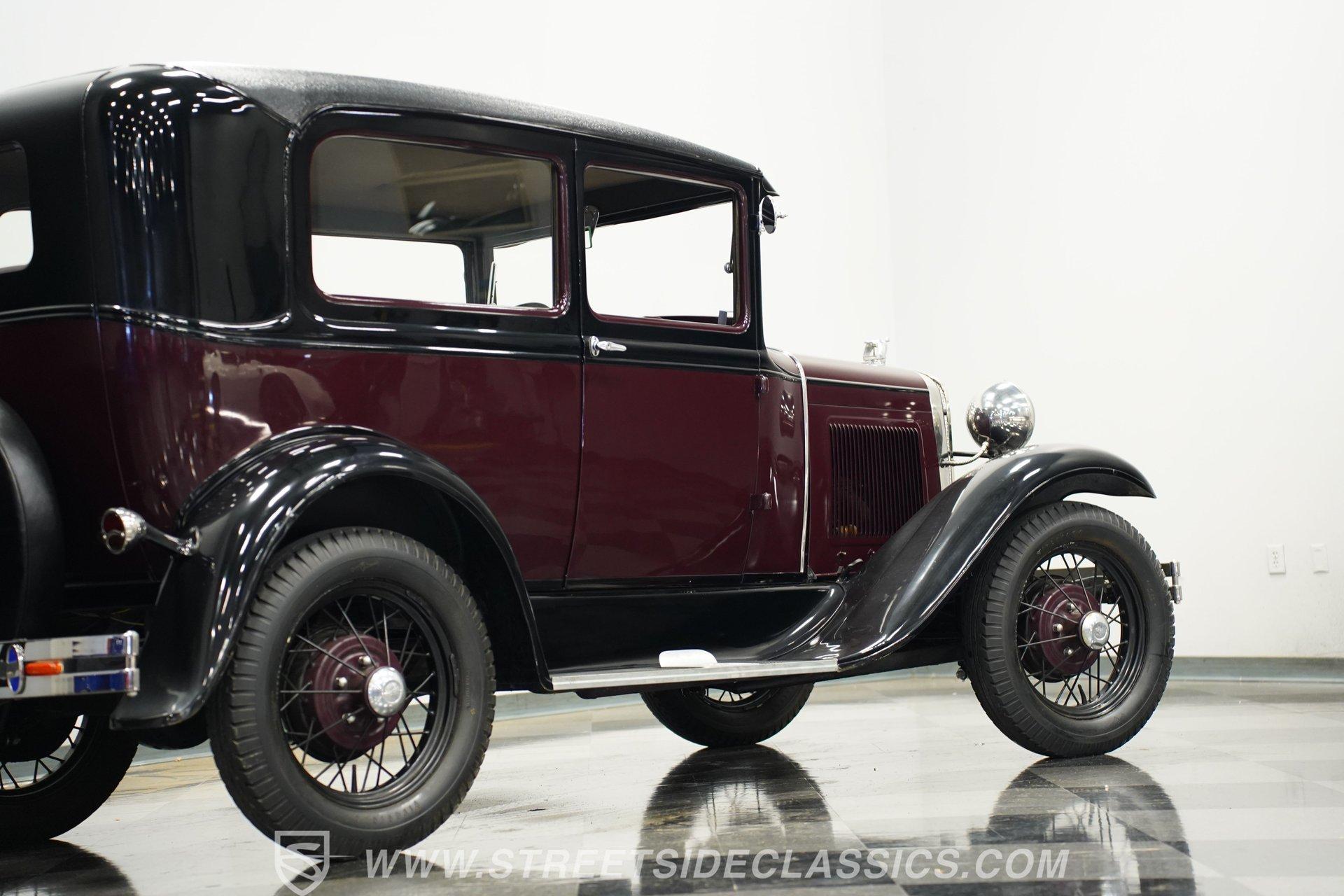 This 1931 Ford Model A Tudor Sedan is a genuine piece of automotive heritage. Its burgundy and black exterior gleams with a hint of nostalgia, showcasing the iconic Model A silhouette that defined an era. Rolling on black and burgundy 19-inch wheels wrapped in 4.75/5.00-19 tires, this classic maintains its original stance and road presence. The accessory grill guard, Quail radiator cap and trunk rack with removable trunk add to the appeal of this handsome Model A. Small turn signal lights have been added for safety. Inside, the cabin exudes vintage appeal with its cloth seats. The simplicity of the era shines through in the spartan yet functional interior. A floor-mounted shifter for the 3-speed manual transmission sits ready for action, while the dash sports clear gauges that have stood the test of time. The cloth mohair-style door and trim panels add texture and period-correct ambiance to the cockpit. The windshield tilts out from the bottom to provide fresh air to the cabin. Under the hood, the 201 CI 4-cylinder engine represents the core of early Ford innovation. This powerplant, paired with a 3-speed manual transmission, delivers an authentic driving experience. The single-barrel carburetor feeds the engine, while a single exhaust system provides the signature Model A sound. An upgraded electrical system with alternator insures easy starts and more reliability. HIGHLIGHTS: 201 CI 4 Cylinder Engine 3-Speed Manual Transmission Single Barrel Carburetor Single Exhaust System Alternator Upgrade Tilt Front Windshield 19" Wheels in 4.75/5.00-19 Tires Classic Tudor Design Luggage Rack Running Boards Accessory Grill Guard Floor-Mounted Shifter Cloth/Mohair-Style Door and Trim Panels Clear Dash Gauges Turn Signals Removable Trunk This 1931 Ford Model A, with its classic Tudor design and trunk rack, offers a genuine slice of automotive history. Its 201 CI engine, paired with a 3-speed manual, delivers an authentic driving experience. Call today!