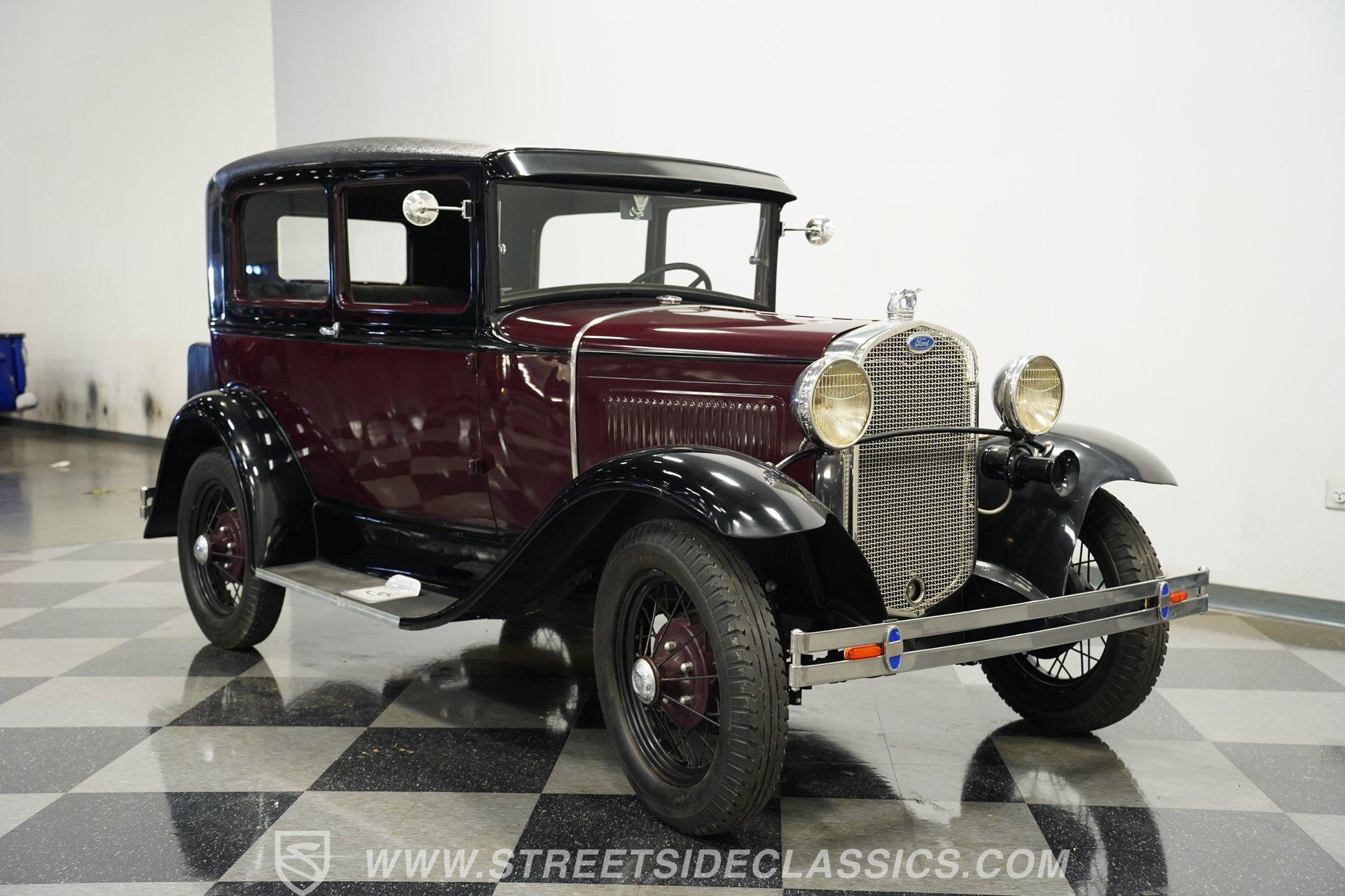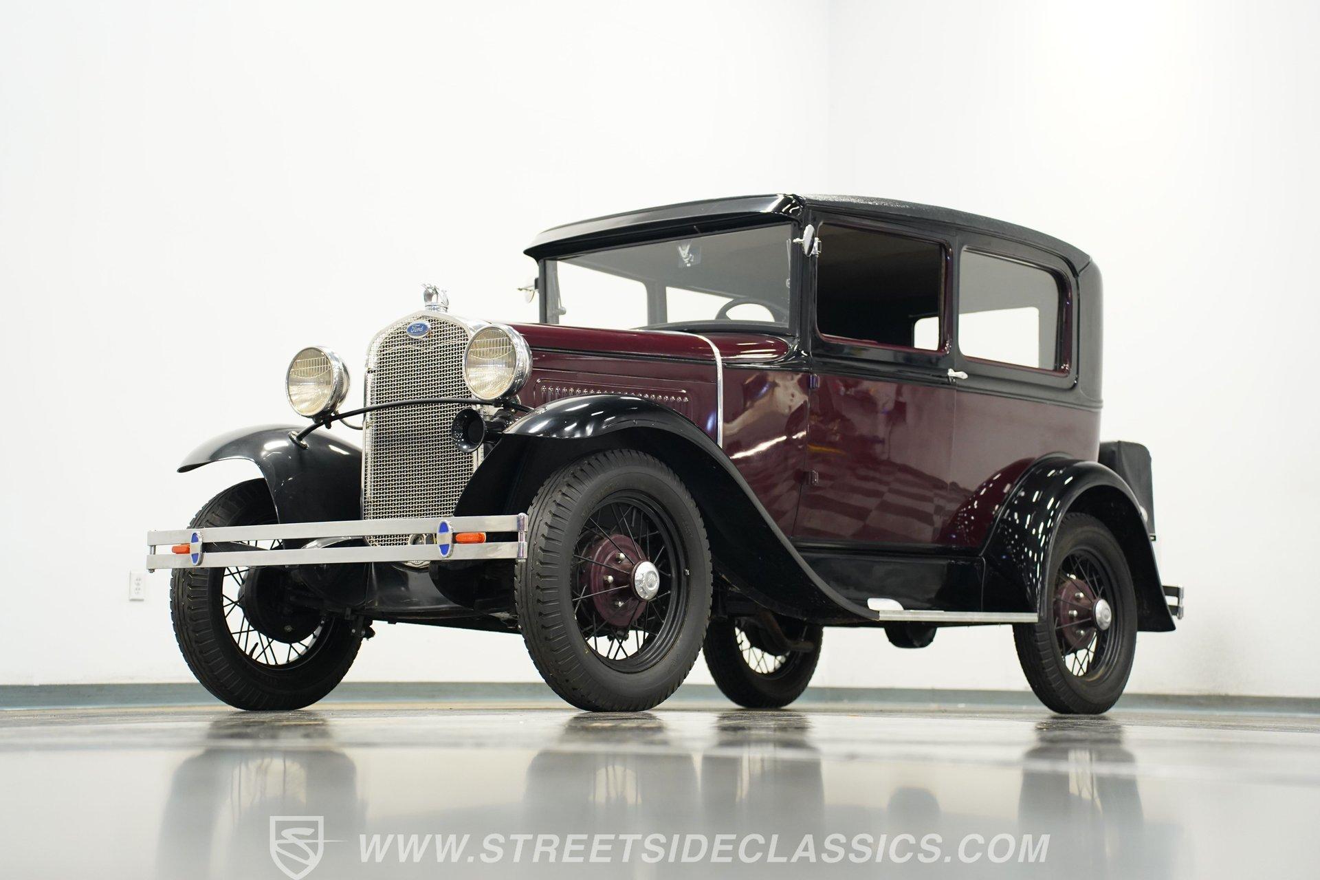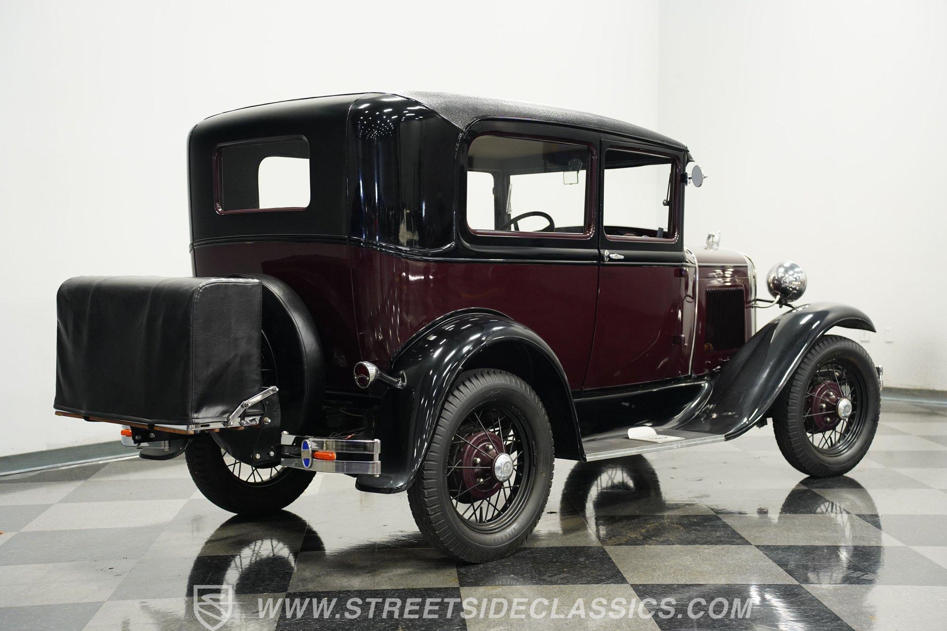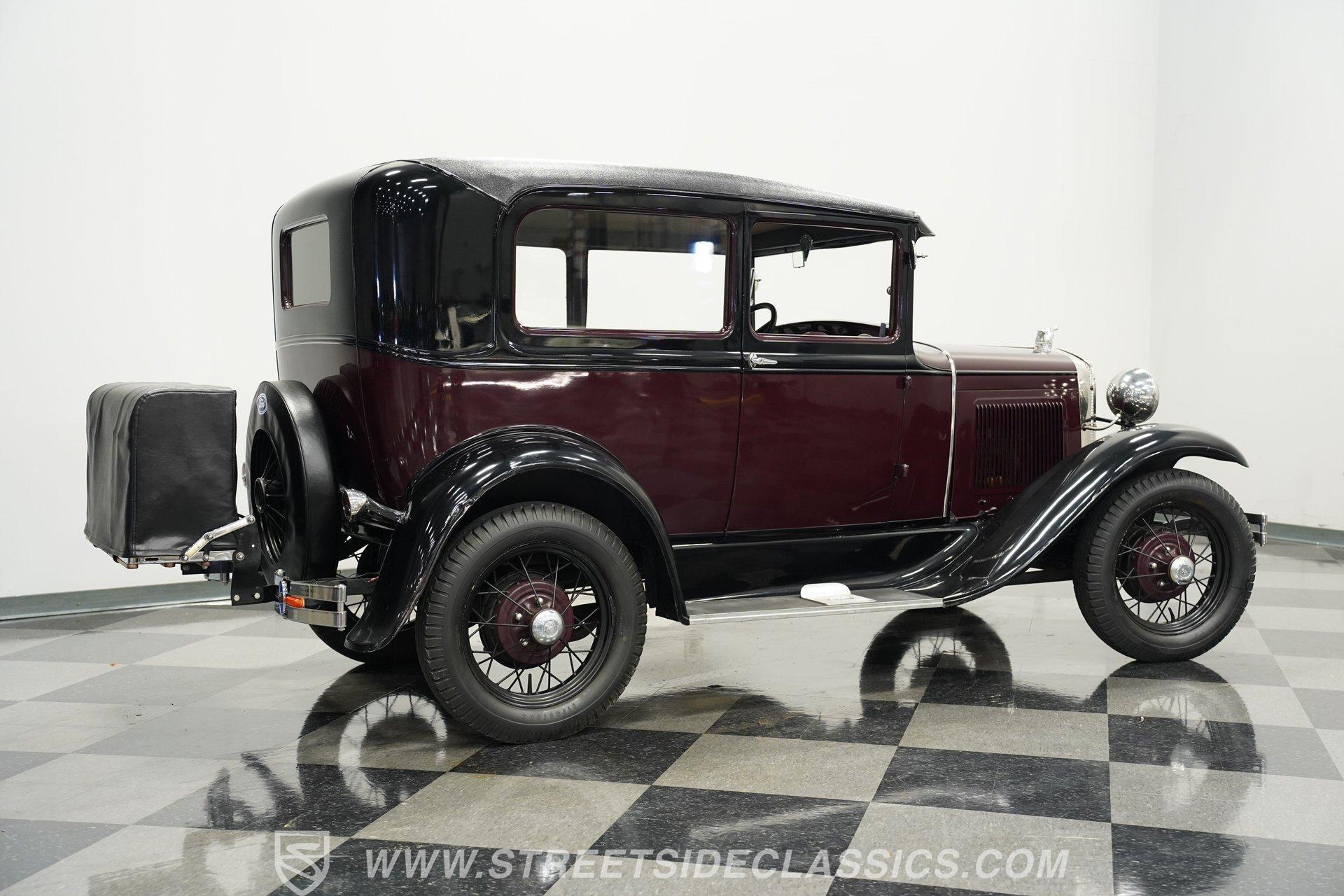 This 1931 Ford Model A Tudor Sedan is a genuine piece of automotive heritage. Its burgundy and black exterior gleams with a hint of nostalgia, showcasing the iconic Model A silhouette that defined an era. Rolling on black and burgundy 19-inch wheels wrapped in 4.75/5.00-19 tires, this classic maintains its original stance and road presence. The accessory grill guard, Quail radiator cap and trunk rack with removable trunk add to the appeal of this handsome Model A. Small turn signal lights have been added for safety. Inside, the cabin exudes vintage appeal with its cloth seats. The simplicity of the era shines through in the spartan yet functional interior. A floor-mounted shifter for the 3-speed manual transmission sits ready for action, while the dash sports clear gauges that have stood the test of time. The cloth mohair-style door and trim panels add texture and period-correct ambiance to the cockpit. The windshield tilts out from the bottom to provide fresh air to the cabin. Under the hood, the 201 CI 4-cylinder engine represents the core of early Ford innovation. This powerplant, paired with a 3-speed manual transmission, delivers an authentic driving experience. The single-barrel carburetor feeds the engine, while a single exhaust system provides the signature Model A sound. An upgraded electrical system with alternator insures easy starts and more reliability. HIGHLIGHTS: 201 CI 4 Cylinder Engine 3-Speed Manual Transmission Single Barrel Carburetor Single Exhaust System Alternator Upgrade Tilt Front Windshield 19" Wheels in 4.75/5.00-19 Tires Classic Tudor Design Luggage Rack Running Boards Accessory Grill Guard Floor-Mounted Shifter Cloth/Mohair-Style Door and Trim Panels Clear Dash Gauges Turn Signals Removable Trunk This 1931 Ford Model A, with its classic Tudor design and trunk rack, offers a genuine slice of automotive history. Its 201 CI engine, paired with a 3-speed manual, delivers an authentic driving experience. Call today!