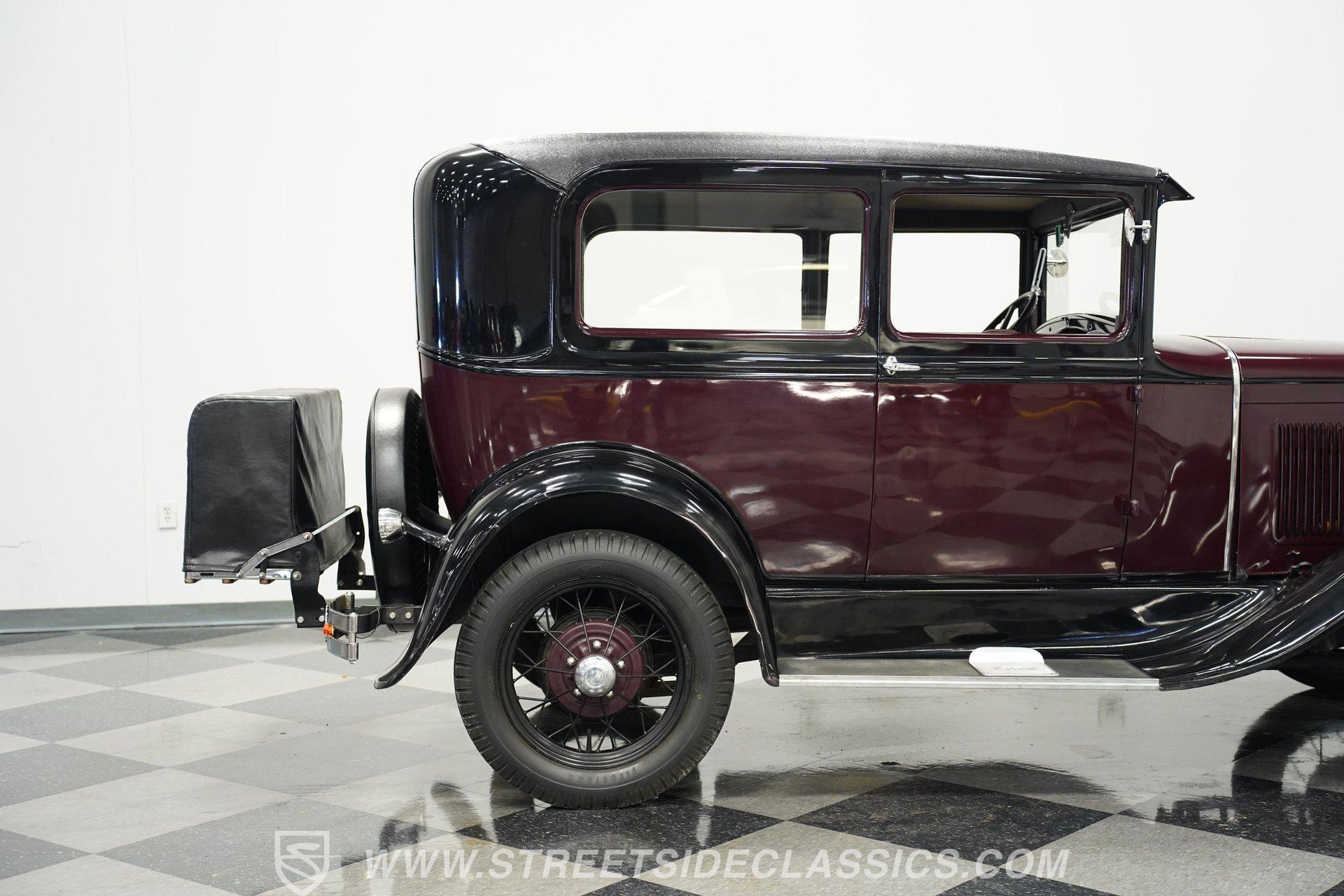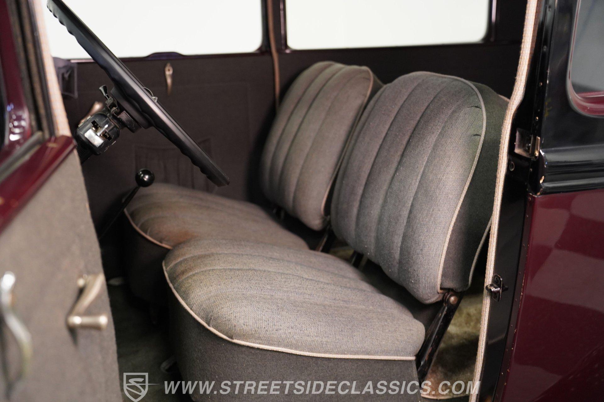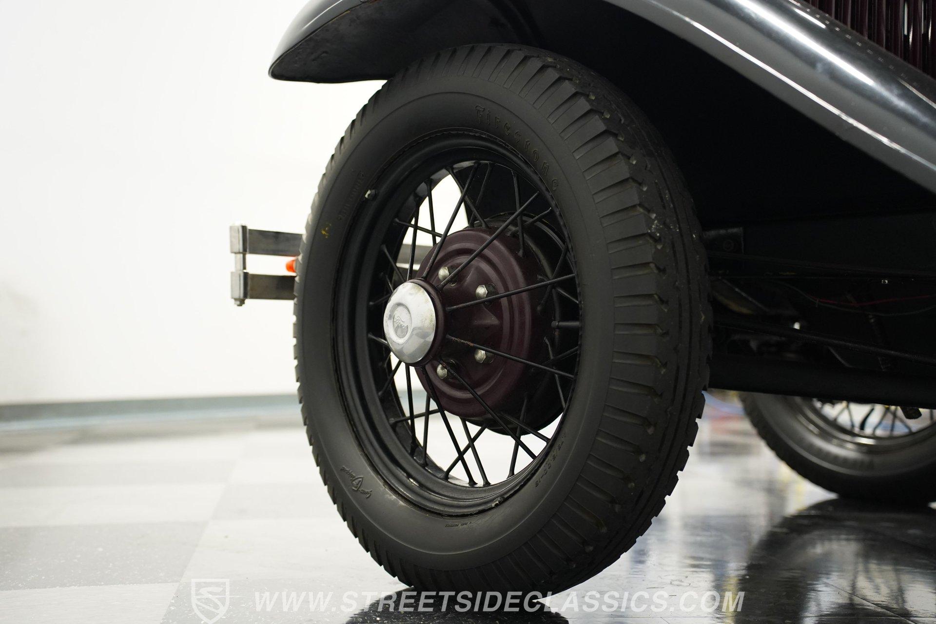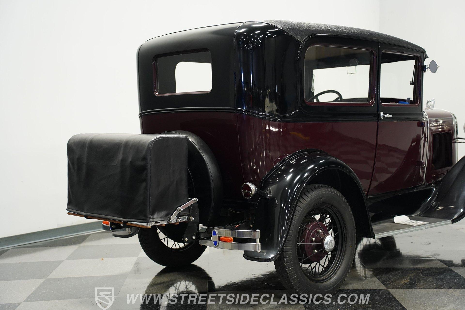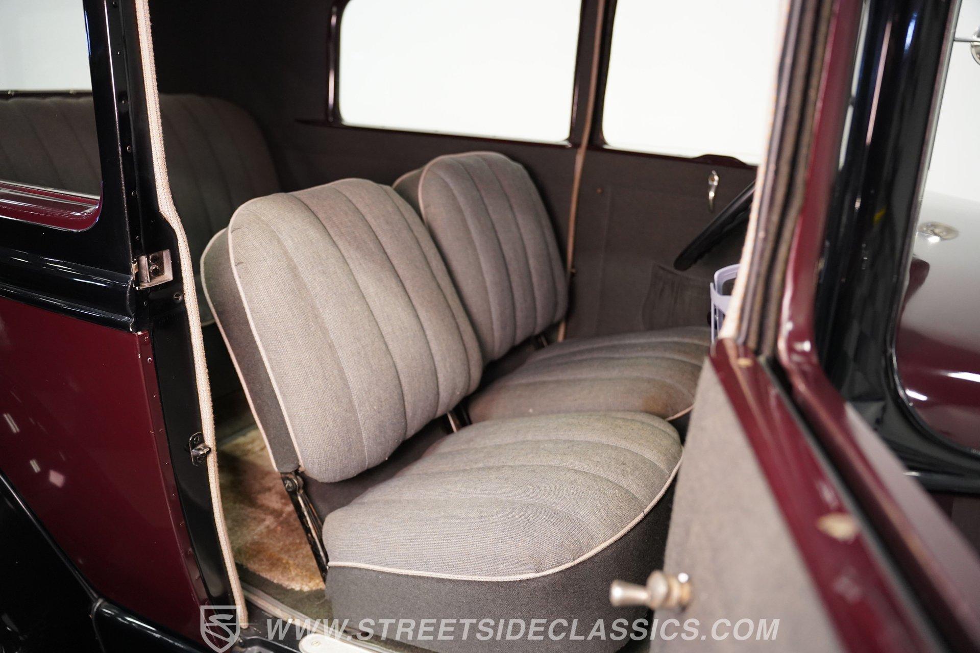 This 1931 Ford Model A Tudor Sedan is a genuine piece of automotive heritage. Its burgundy and black exterior gleams with a hint of nostalgia, showcasing the iconic Model A silhouette that defined an era. Rolling on black and burgundy 19-inch wheels wrapped in 4.75/5.00-19 tires, this classic maintains its original stance and road presence. The accessory grill guard, Quail radiator cap and trunk rack with removable trunk add to the appeal of this handsome Model A. Small turn signal lights have been added for safety. Inside, the cabin exudes vintage appeal with its cloth seats. The simplicity of the era shines through in the spartan yet functional interior. A floor-mounted shifter for the 3-speed manual transmission sits ready for action, while the dash sports clear gauges that have stood the test of time. The cloth mohair-style door and trim panels add texture and period-correct ambiance to the cockpit. The windshield tilts out from the bottom to provide fresh air to the cabin. Under the hood, the 201 CI 4-cylinder engine represents the core of early Ford innovation. This powerplant, paired with a 3-speed manual transmission, delivers an authentic driving experience. The single-barrel carburetor feeds the engine, while a single exhaust system provides the signature Model A sound. An upgraded electrical system with alternator insures easy starts and more reliability. HIGHLIGHTS: 201 CI 4 Cylinder Engine 3-Speed Manual Transmission Single Barrel Carburetor Single Exhaust System Alternator Upgrade Tilt Front Windshield 19" Wheels in 4.75/5.00-19 Tires Classic Tudor Design Luggage Rack Running Boards Accessory Grill Guard Floor-Mounted Shifter Cloth/Mohair-Style Door and Trim Panels Clear Dash Gauges Turn Signals Removable Trunk This 1931 Ford Model A, with its classic Tudor design and trunk rack, offers a genuine slice of automotive history. Its 201 CI engine, paired with a 3-speed manual, delivers an authentic driving experience. Call today!