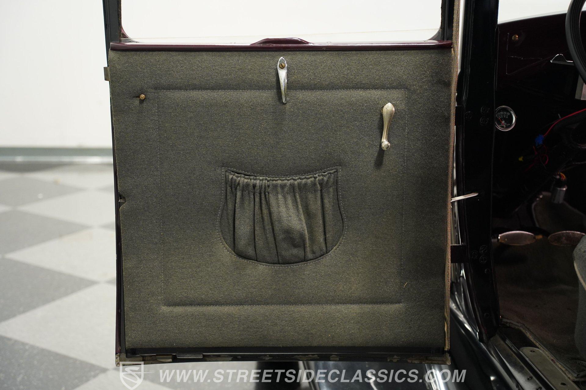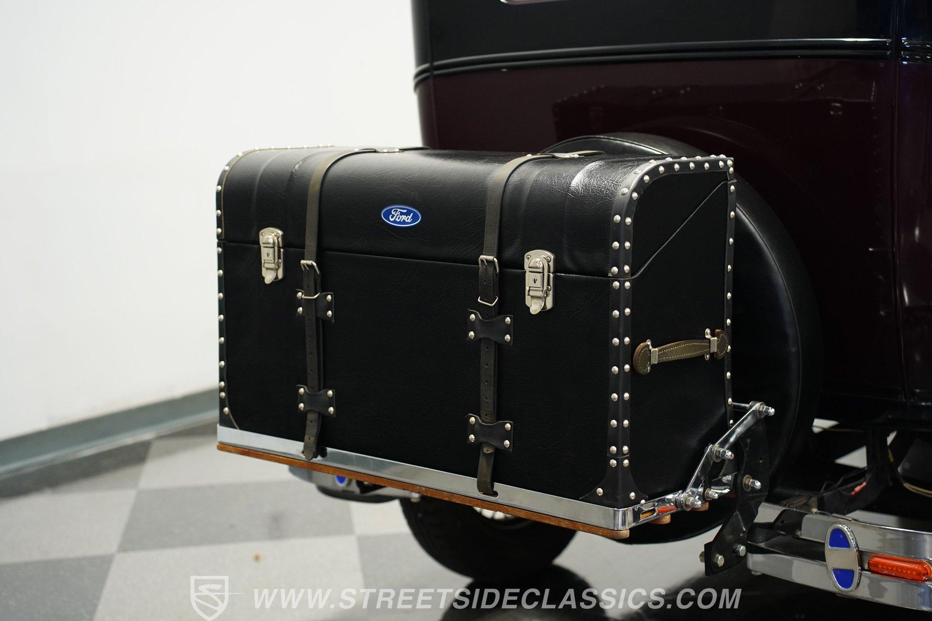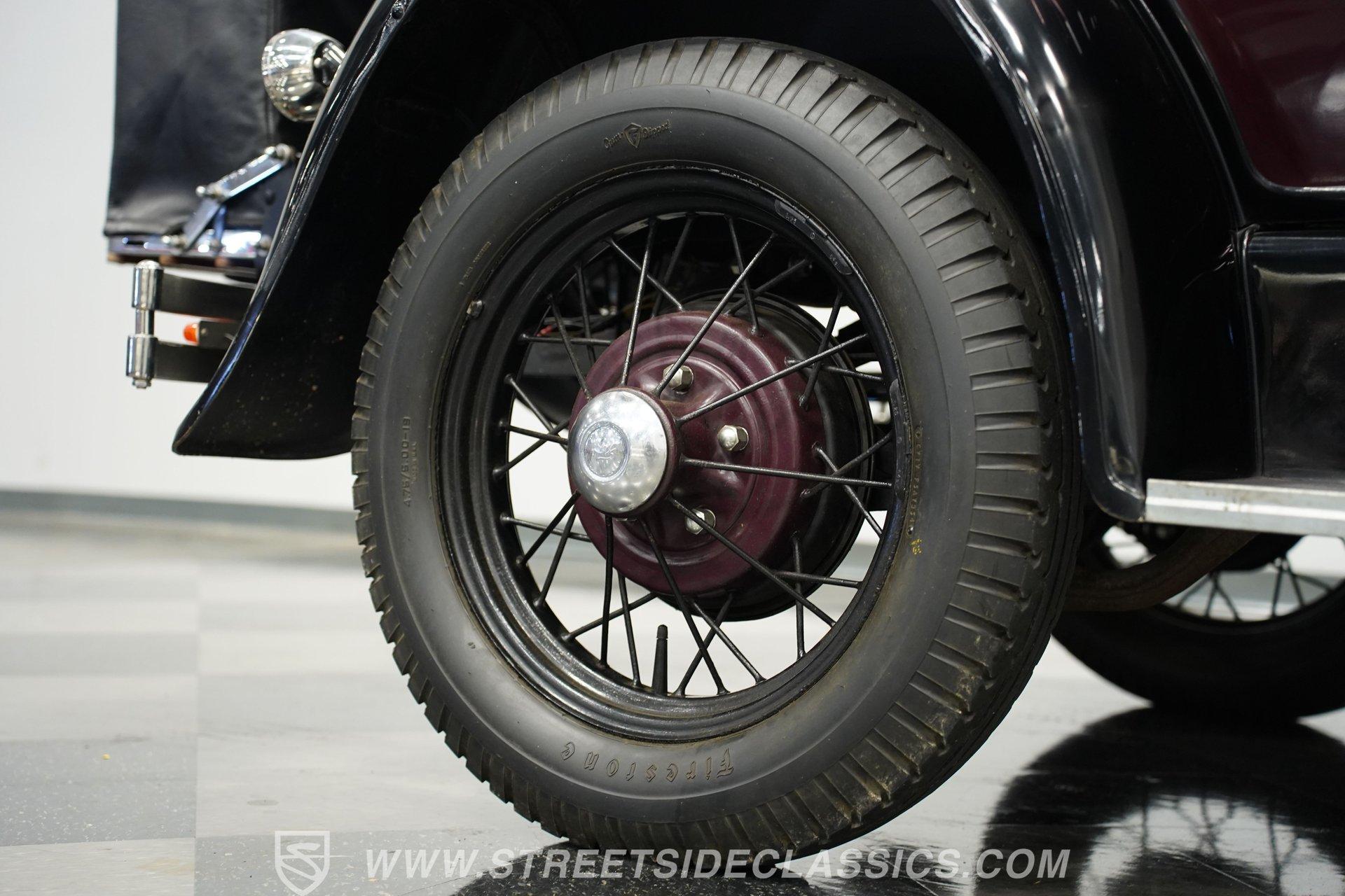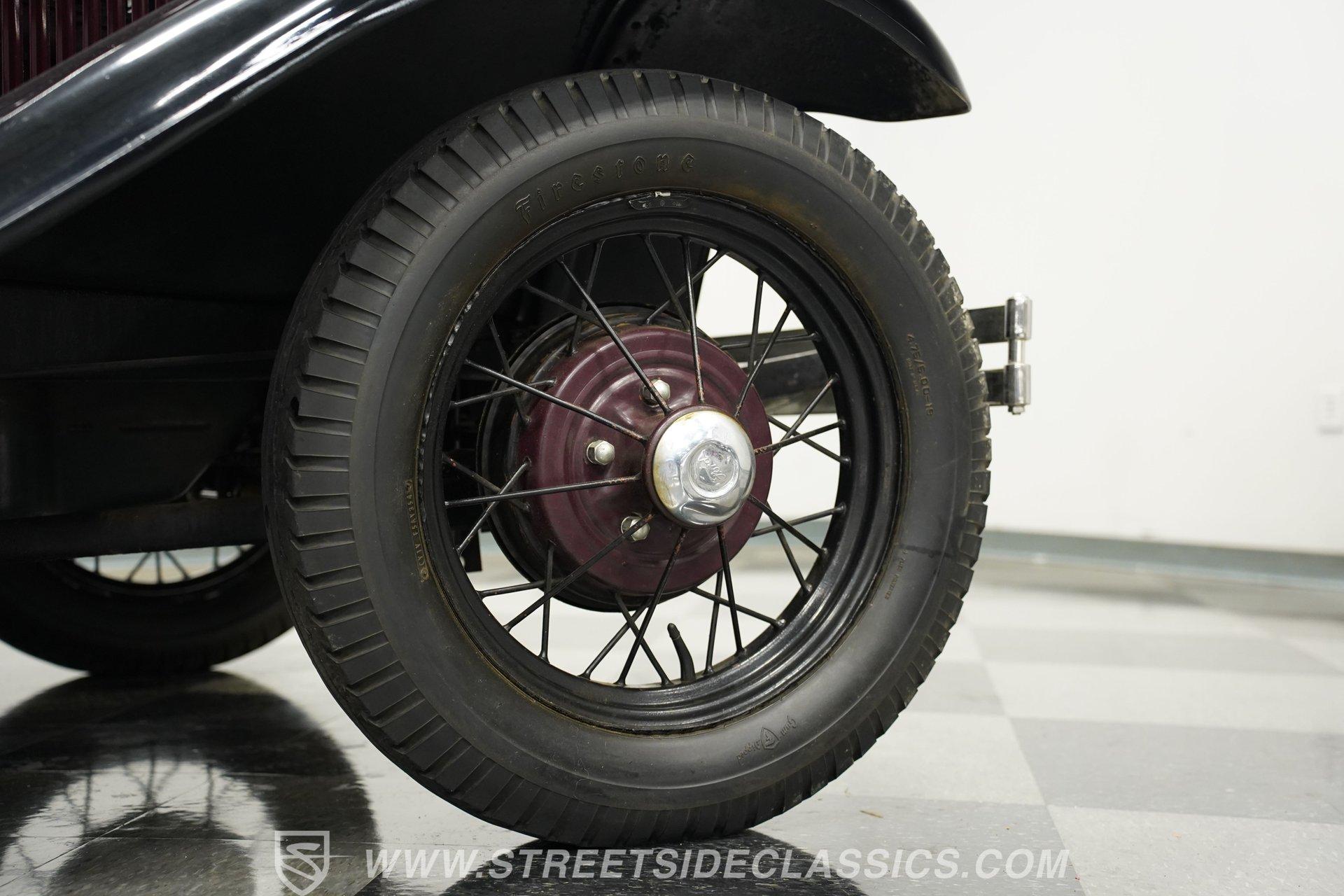 This 1931 Ford Model A Tudor Sedan is a genuine piece of automotive heritage. Its burgundy and black exterior gleams with a hint of nostalgia, showcasing the iconic Model A silhouette that defined an era. Rolling on black and burgundy 19-inch wheels wrapped in 4.75/5.00-19 tires, this classic maintains its original stance and road presence. The accessory grill guard, Quail radiator cap and trunk rack with removable trunk add to the appeal of this handsome Model A. Small turn signal lights have been added for safety. Inside, the cabin exudes vintage appeal with its cloth seats. The simplicity of the era shines through in the spartan yet functional interior. A floor-mounted shifter for the 3-speed manual transmission sits ready for action, while the dash sports clear gauges that have stood the test of time. The cloth mohair-style door and trim panels add texture and period-correct ambiance to the cockpit. The windshield tilts out from the bottom to provide fresh air to the cabin. Under the hood, the 201 CI 4-cylinder engine represents the core of early Ford innovation. This powerplant, paired with a 3-speed manual transmission, delivers an authentic driving experience. The single-barrel carburetor feeds the engine, while a single exhaust system provides the signature Model A sound. An upgraded electrical system with alternator insures easy starts and more reliability. HIGHLIGHTS: 201 CI 4 Cylinder Engine 3-Speed Manual Transmission Single Barrel Carburetor Single Exhaust System Alternator Upgrade Tilt Front Windshield 19" Wheels in 4.75/5.00-19 Tires Classic Tudor Design Luggage Rack Running Boards Accessory Grill Guard Floor-Mounted Shifter Cloth/Mohair-Style Door and Trim Panels Clear Dash Gauges Turn Signals Removable Trunk This 1931 Ford Model A, with its classic Tudor design and trunk rack, offers a genuine slice of automotive history. Its 201 CI engine, paired with a 3-speed manual, delivers an authentic driving experience. Call today!