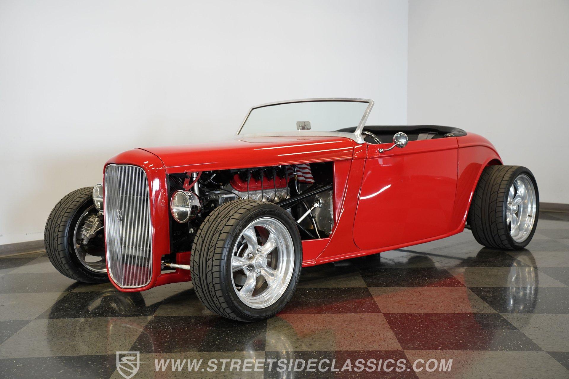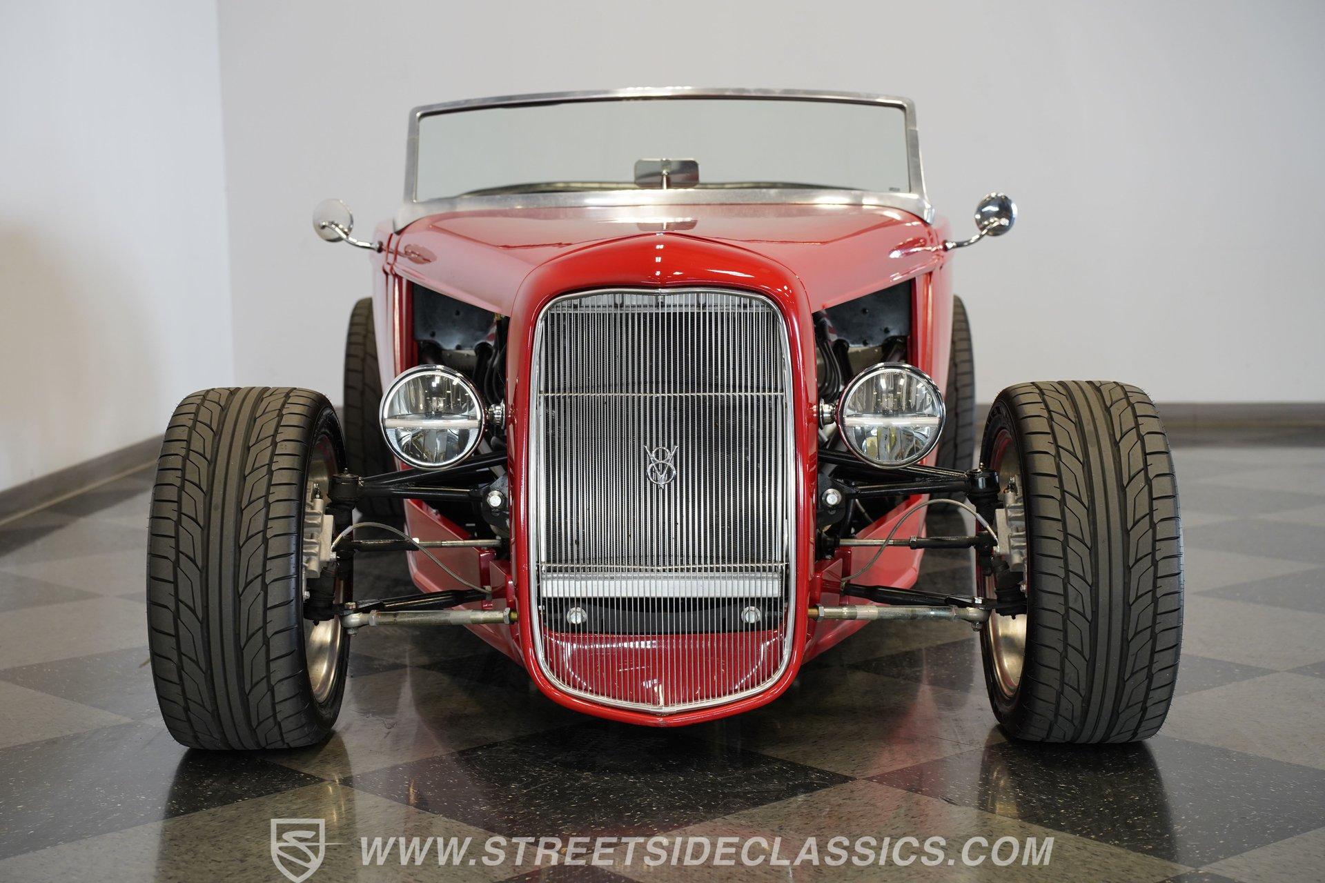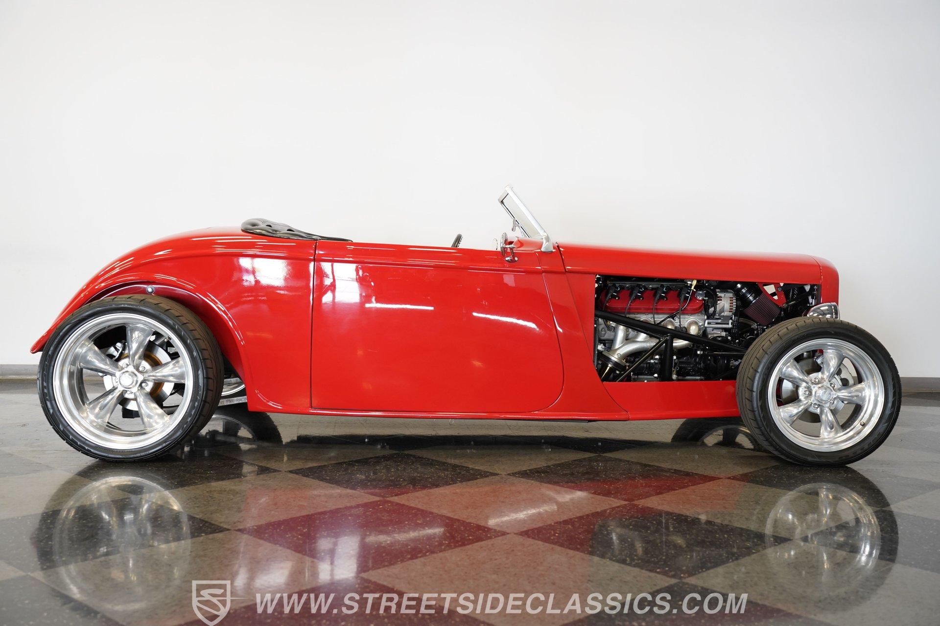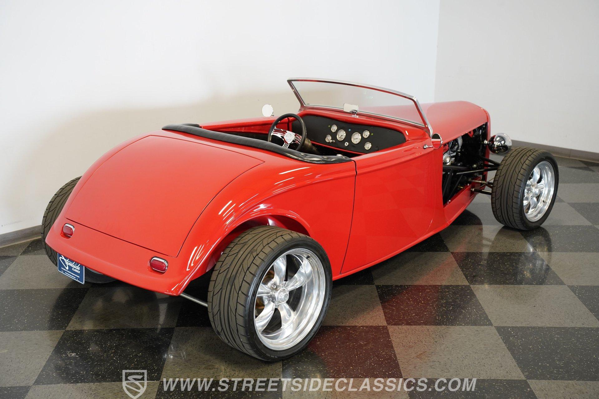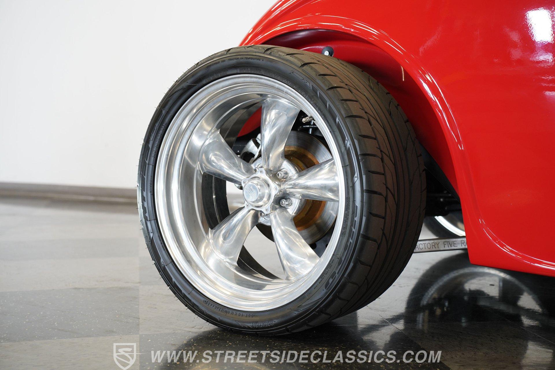 Owning a classic car like the 1933 Factory Five Roadster is more than just having a vehicle – it's about embracing a lifestyle that celebrates automotive heritage and timeless style. This stunning red roadster captures the spirit of the open road with its aggressive stance and sleek lines, making a bold statement wherever it goes. It represents freedom, craftsmanship, and the joy of driving a true hot rod. Whether you're a seasoned collector or someone looking to make unforgettable memories, this Factory Five Roadster is a perfect match. Don't miss your chance to own this beautifully built 1933 Factory Five Roadster. Step inside to find a classic, clean interior that perfectly complements the car's vintage appeal. The black vinyl seats provide a comfortable and supportive ride, while the well-maintained carpet and door panels add to the overall charm. Equipped with both lap and over-the-shoulder seat belts, the interior focuses on safety without sacrificing style. The dashboard is neatly organized with all gauges centered for easy viewing, paired with a floor-mounted shifter and a Factory Five steering wheel that completes the authentic roadster experience. Under the hood, this Factory Five Roadster is powered by a robust 6.0-liter V8 engine featuring EFI for modern reliability and performance. Paired with a smooth-shifting 4-speed 4L60E automatic transmission, the drivetrain delivers a thrilling yet manageable driving experience. The custom boxed steel chassis and sports suspension enhance handling, while the staggered American Racing wheels and performance tires provide a solid grip. With 4-wheel disc brakes and coil-over suspension, this car offers confident stopping power and a precise, engaging ride. Highlights 1933 Factory Five Roadster Model 6.0 Liter EFI V8 Engine 4-Speed 4L60E Automatic Transmission Boxed Steel Custom Chassis Sports Suspension Setup Staggered American Racing Wheels Front 255/40R17 Tires Rear 305/30/20 Nitto 555 Tires Four-Wheel Disc Brakes Coil-Over Suspension Black Vinyl Interior Floor-Mounted Shifter Factory Five Steering Wheel Original Red Paint Financing Available Vehicle Protection Plans Available Worldwide Shipping This 1933 Factory Five Roadster is a fantastic opportunity for anyone looking to own a beautifully crafted hot rod that blends classic looks with modern performance. Its strong motor, smooth transmission, and driver-focused design make it a joy to drive. With its excellent condition and tasteful upgrades, this roadster is ready to hit the road and turn heads. Call, email, or come visit our showroom today!