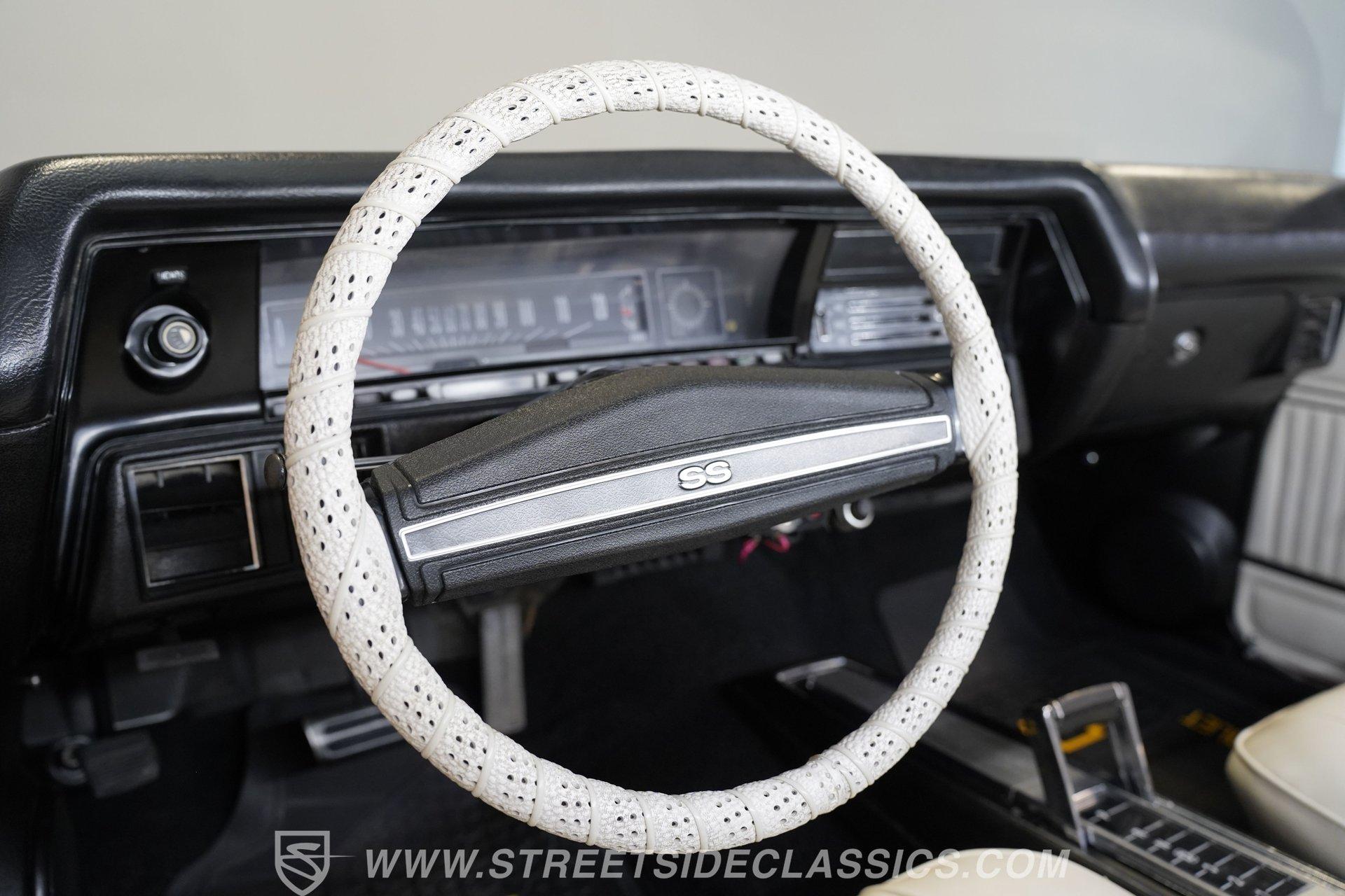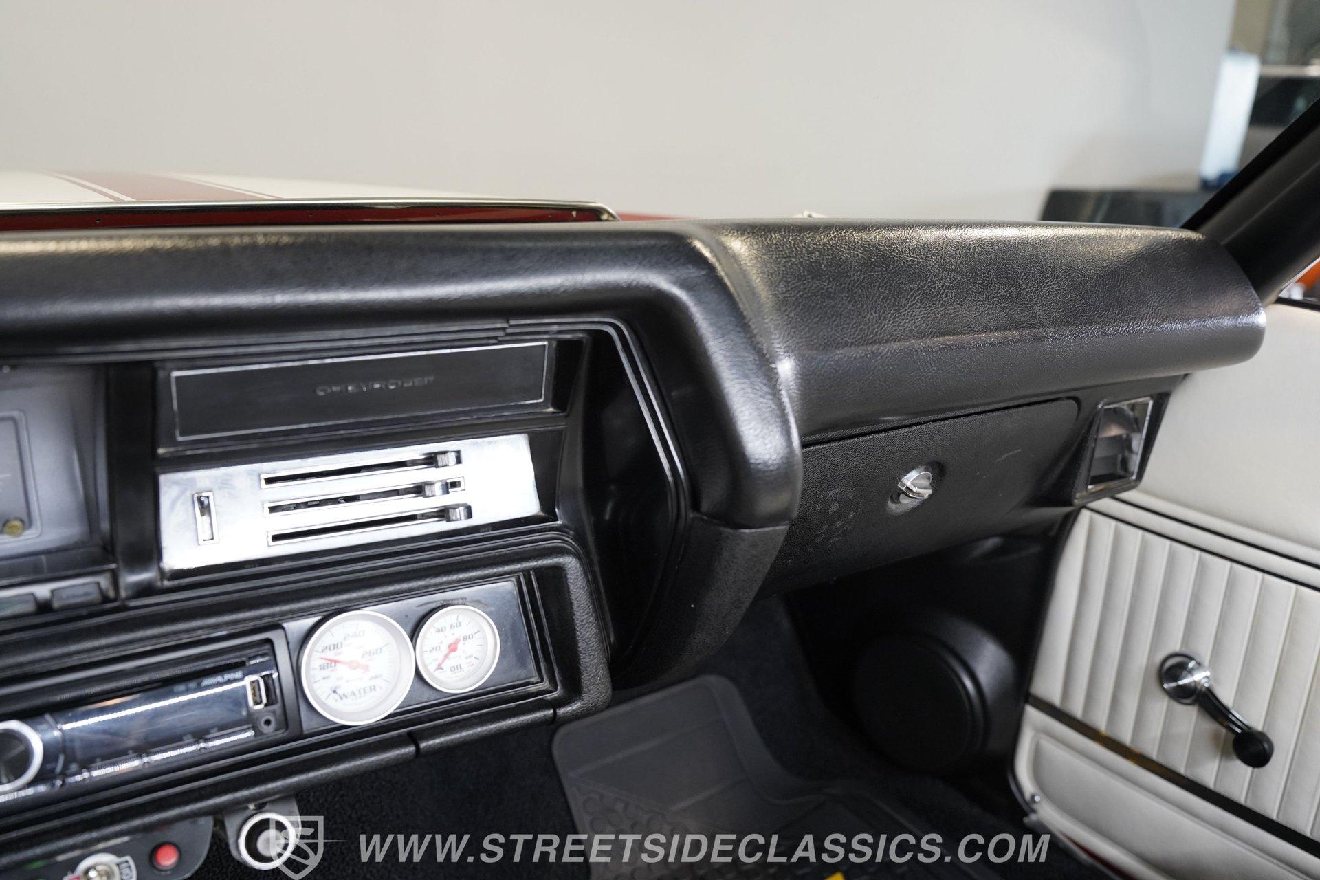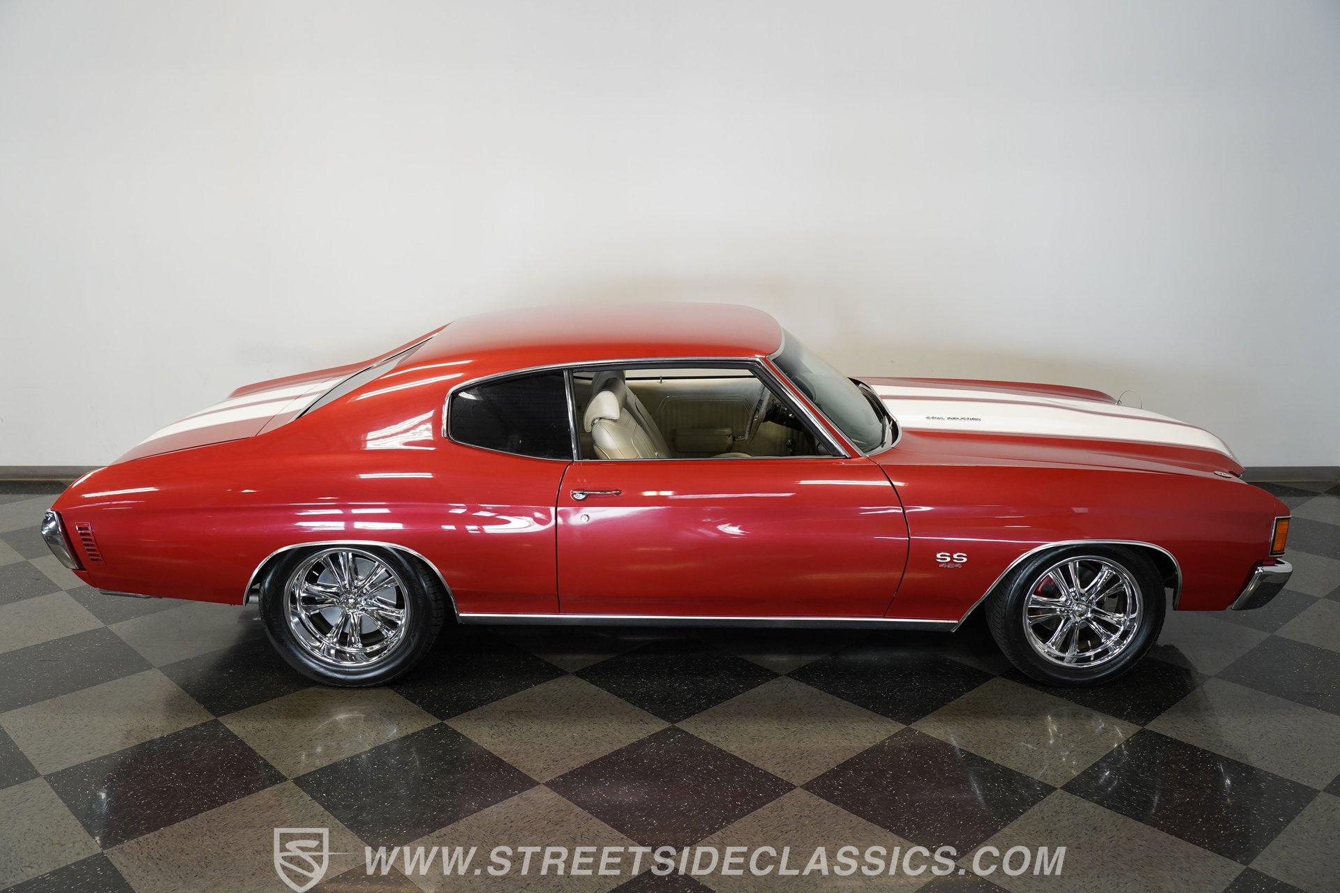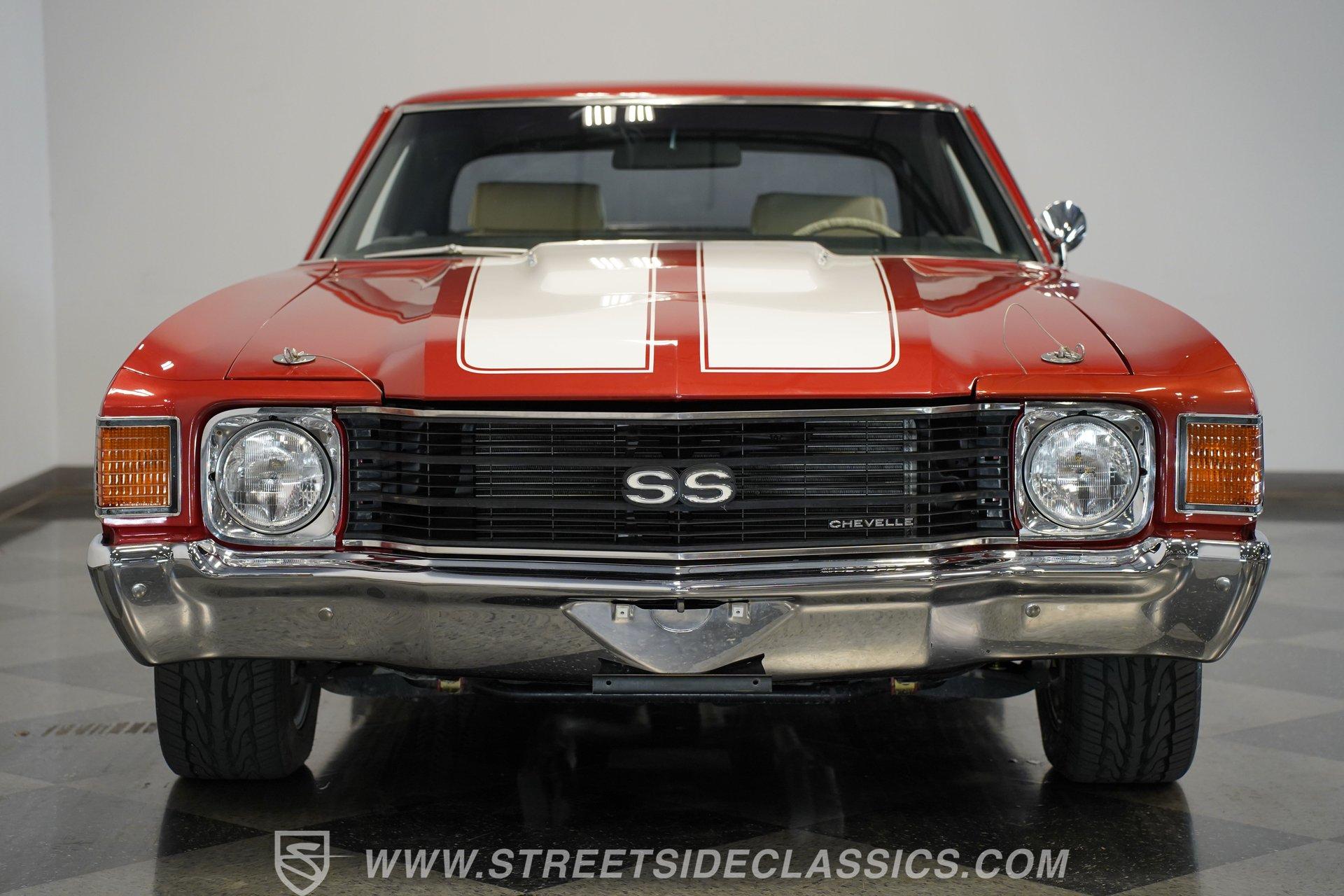 Experience the thrill and nostalgia of American muscle with this stunning 1972 Chevrolet Chevelle SS Tribute. This car embodies the spirit of raw power and classic style, making a bold statement wherever it goes. It's more than just a vehicle; it's a tribute to the golden era of muscle cars, designed to turn heads and ignite passion on every drive. With its aggressive cowl hood, hood pins, and full SS badging, this Chevelle captures the essence of high-performance heritage. If you've been searching for a powerful big block ride, this 454 V8 Chevelle SS Tribute is an opportunity you won't want to miss. Step inside to a factory-looking interior that balances classic charm with modern touches. The cabin is in very good condition, featuring slight wear on the driver's seat and rear side panel that adds character without detracting from its appeal. Enjoy the convenience of an AM/FM CD/USB Alpine stereo deck and additional gauges for volts, water temperature, and oil pressure. The vinyl interior, tilt wheel, and defrost system ensure a comfortable and engaging driving environment. Under the hood, this Chevelle packs a mighty 454 V8 engine equipped with a Demon single 4-barrel carburetor mounted on a high-rise intake manifold. Power delivery is smooth and responsive through a 700R4 4-speed automatic transmission, designed for effortless shifting across all gears. The upgraded SS-style rear suspension includes boxed lower trailing arms and a rear sway bar, enhancing handling and stability. Front power disc brakes with drilled and slotted rotors and rear power drum brakes provide reliable stopping power, while Foose chrome wheels wrapped in Toyo Proxes tires complete the performance package. Highlights 1972 Chevrolet Chevelle SS Tribute 454 V8 Engine with Demon 4-Barrel Carburetor 700R4 4-Speed Automatic Transmission Upgraded SS-Style Rear Suspension Cowl Hood with Hood Pins and Stripes Full SS Badging and Dark Grille Fresh Full Repaint with High-Gloss Finish Foose Chrome Wheels with Toyo Proxes Tires Factory-Looking Vinyl Interior with Alpine Stereo Additional Gauges: Volts, Water Temp, Oil Pressure Tilt Wheel and Defrost System Front Power Disc Brakes with Drilled/Slotted Rotors Rear Power Drum Brakes Power Steering and Power Brakes Average/Driver Quality Underside, No Rust Financing Available Vehicle Protection Plans Available Worldwide Shipping This 1972 Chevrolet Chevelle SS Tribute offers an exciting blend of classic muscle car aesthetics and modern performance upgrades, making it a solid choice for enthusiasts and collectors alike. Don't miss your chance to own a piece of automotive history that drives as good as it looks. Call, email, or come visit our showroom today!